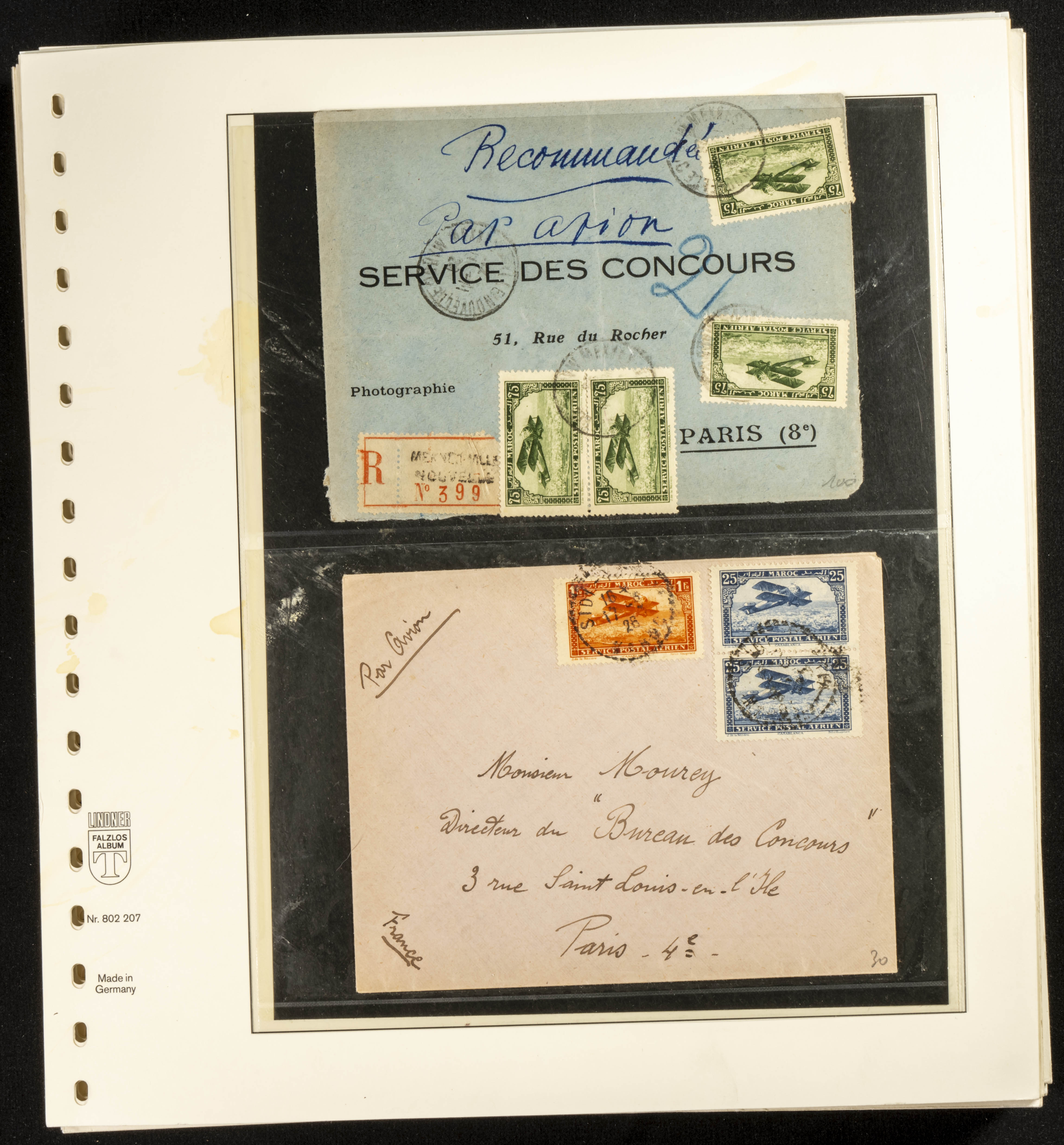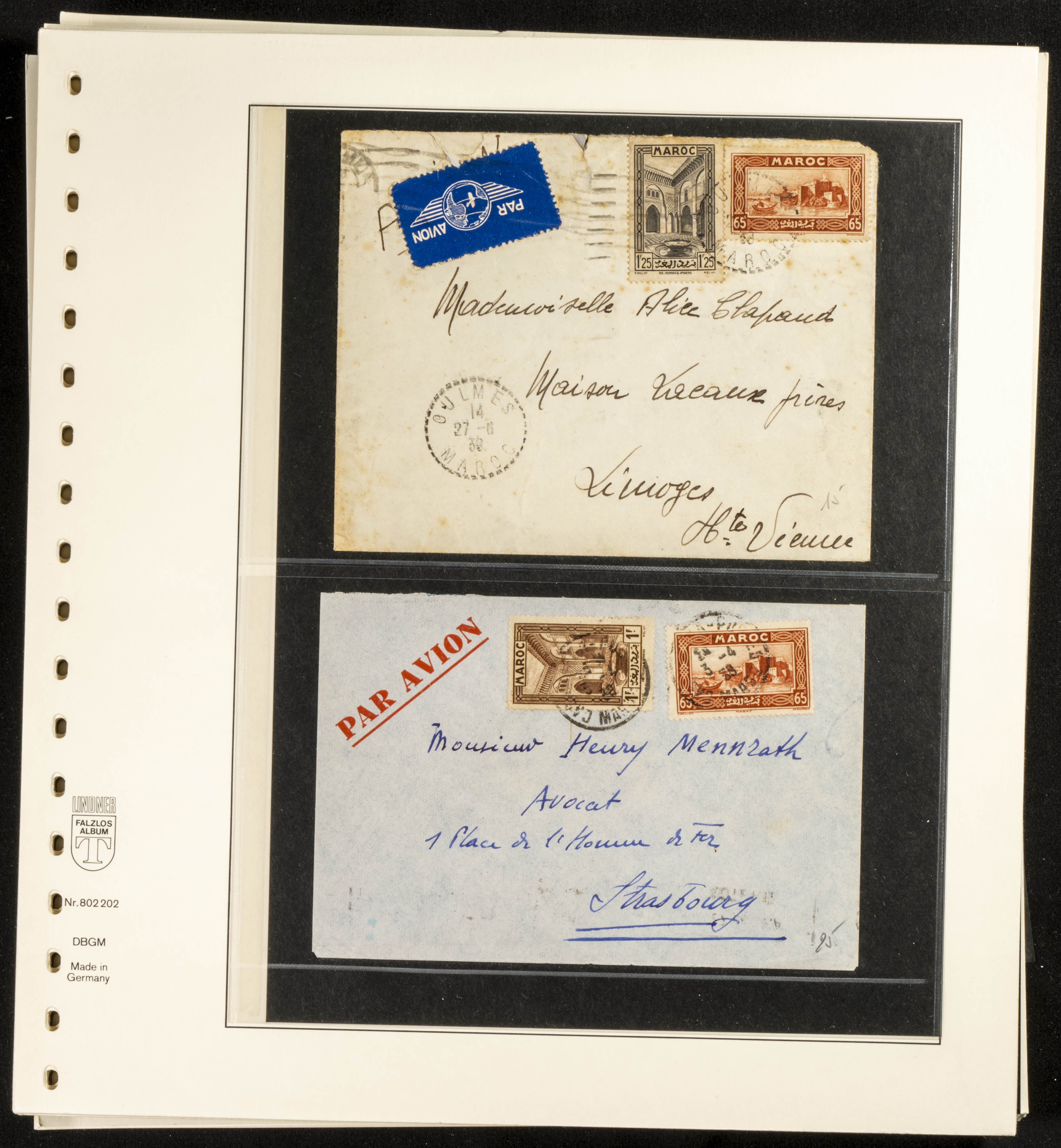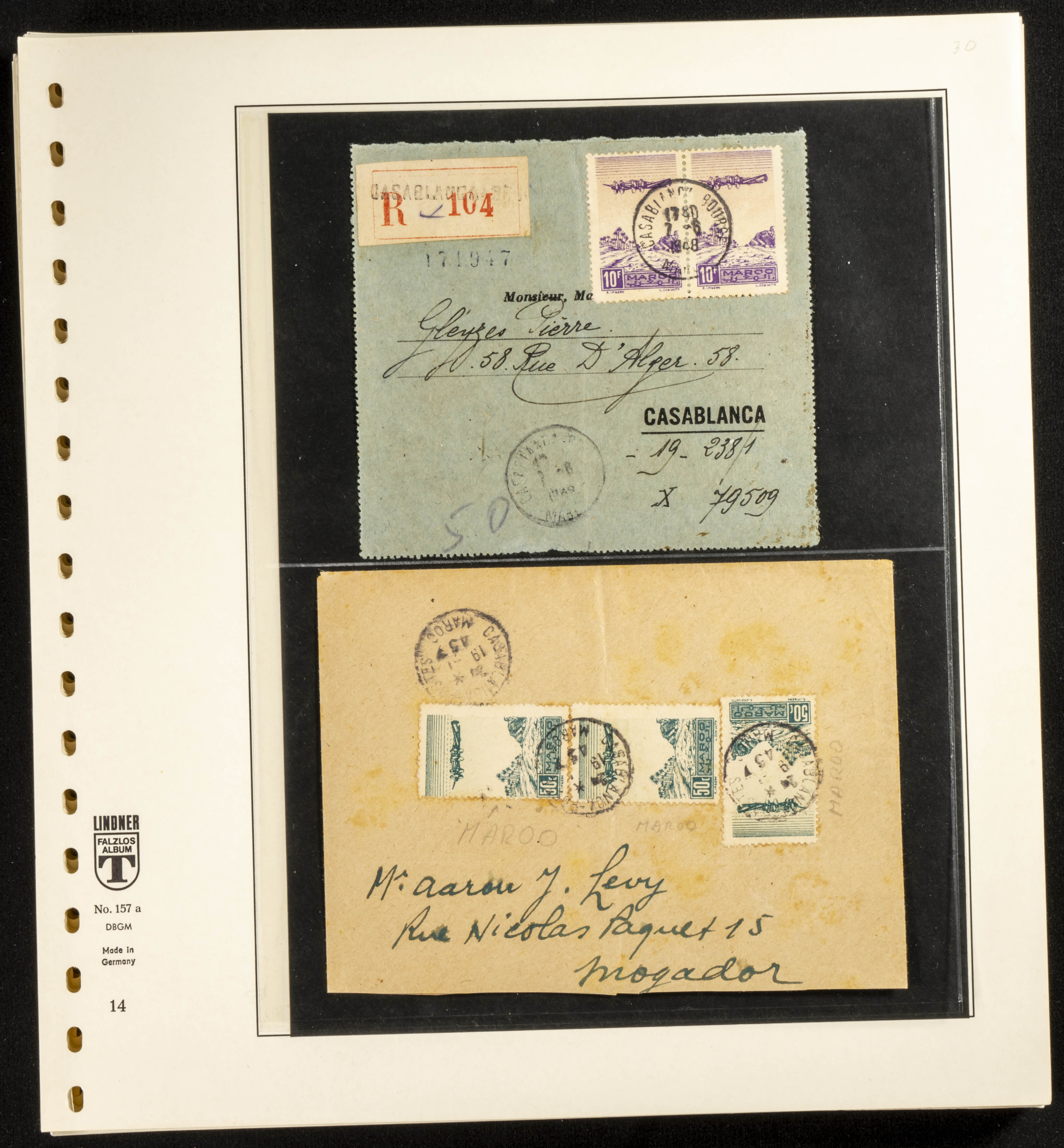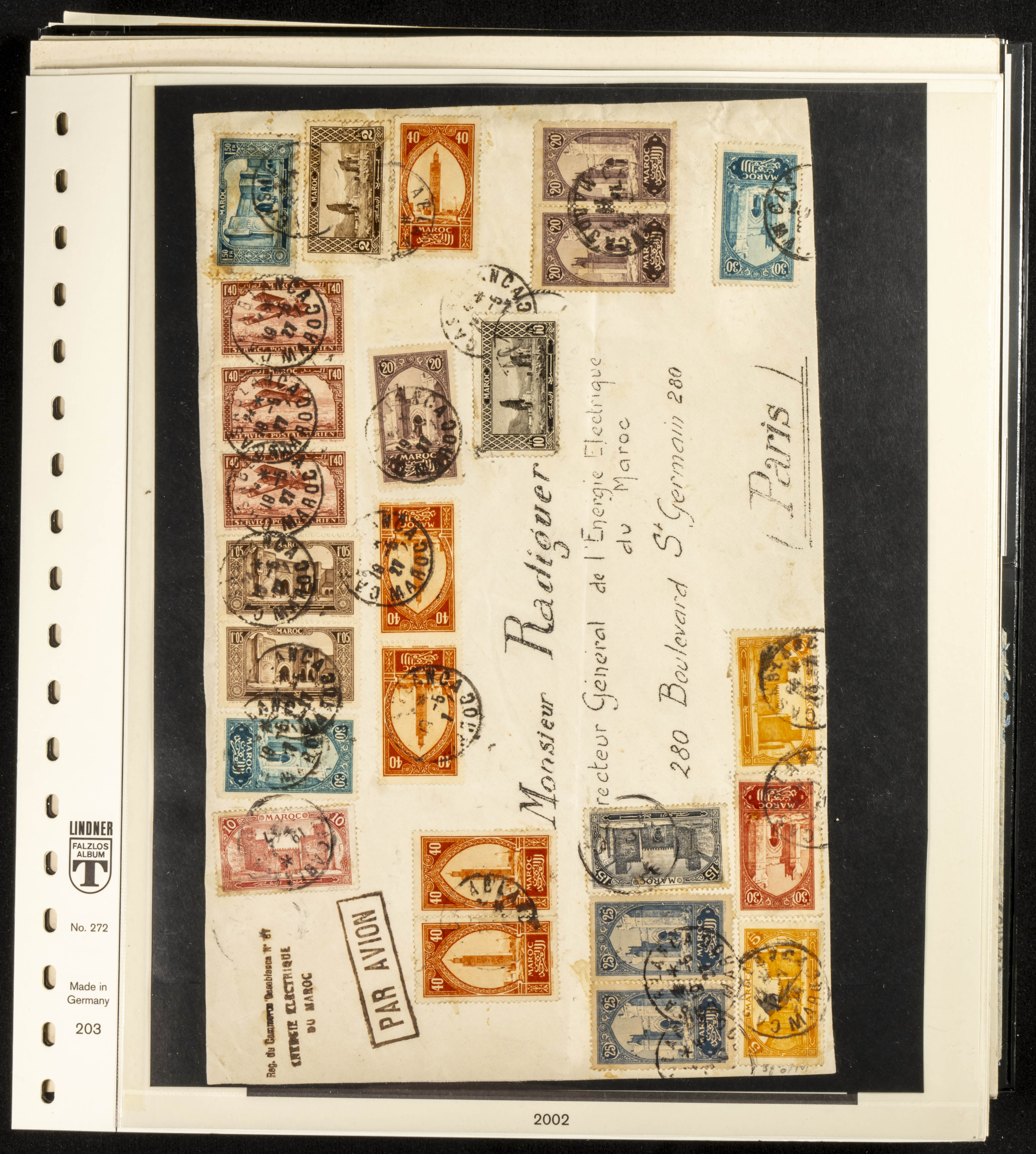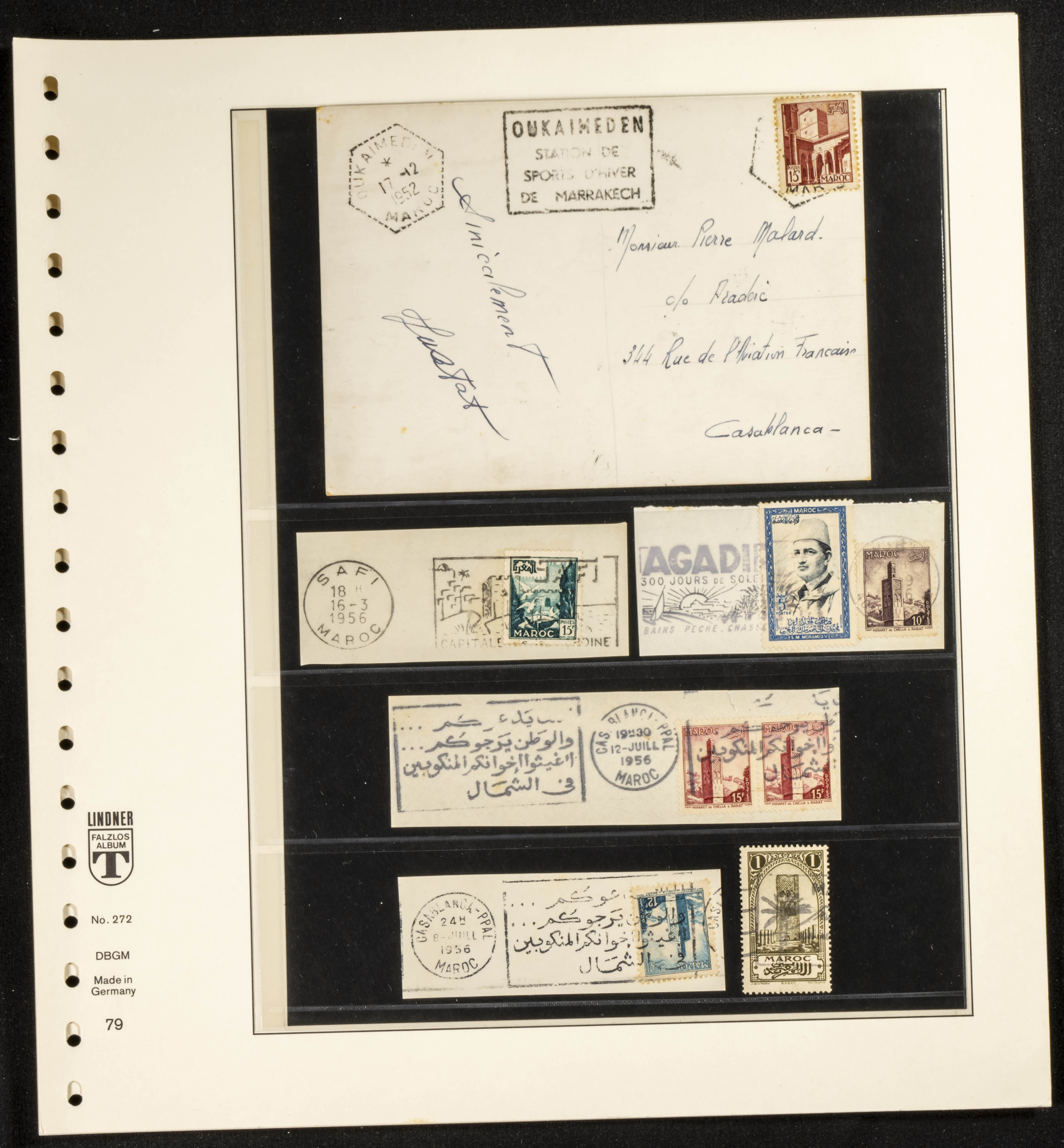 (circa 1891). Spectacular collection of used loose stamps and Postal History of French Morocco between 1891 and 1957. Includes early issues of French stamps with Moroccan postmarks, hundreds of circulated letters and postcards, some sent by registered mail, many with varied letterheads and unusual postage, hundreds of stamps with diverse postmarks (organized by issue alongside the letters), machine-printed postage, airmail, etc. EXAMINATION IS ESSENTIAL.