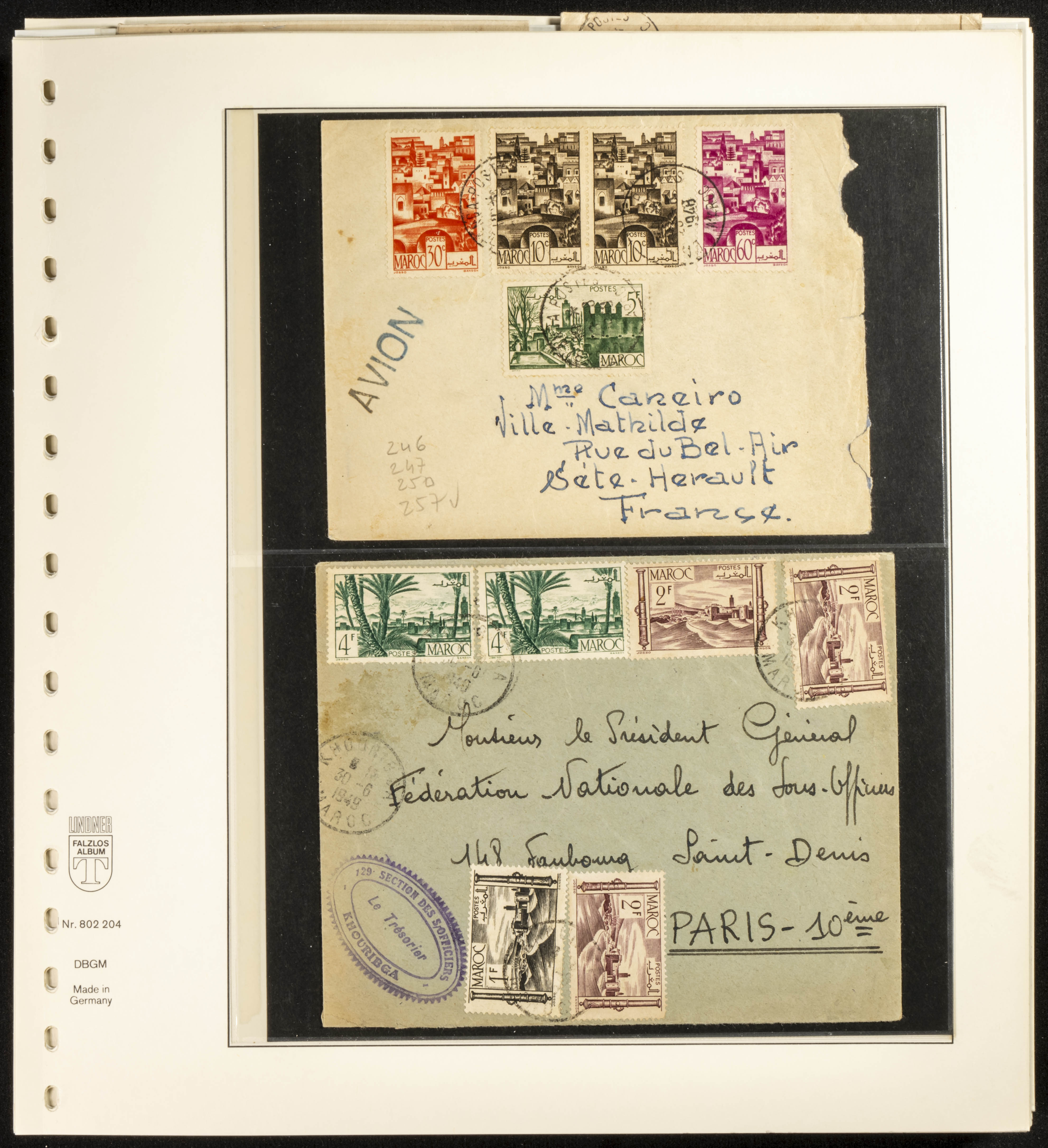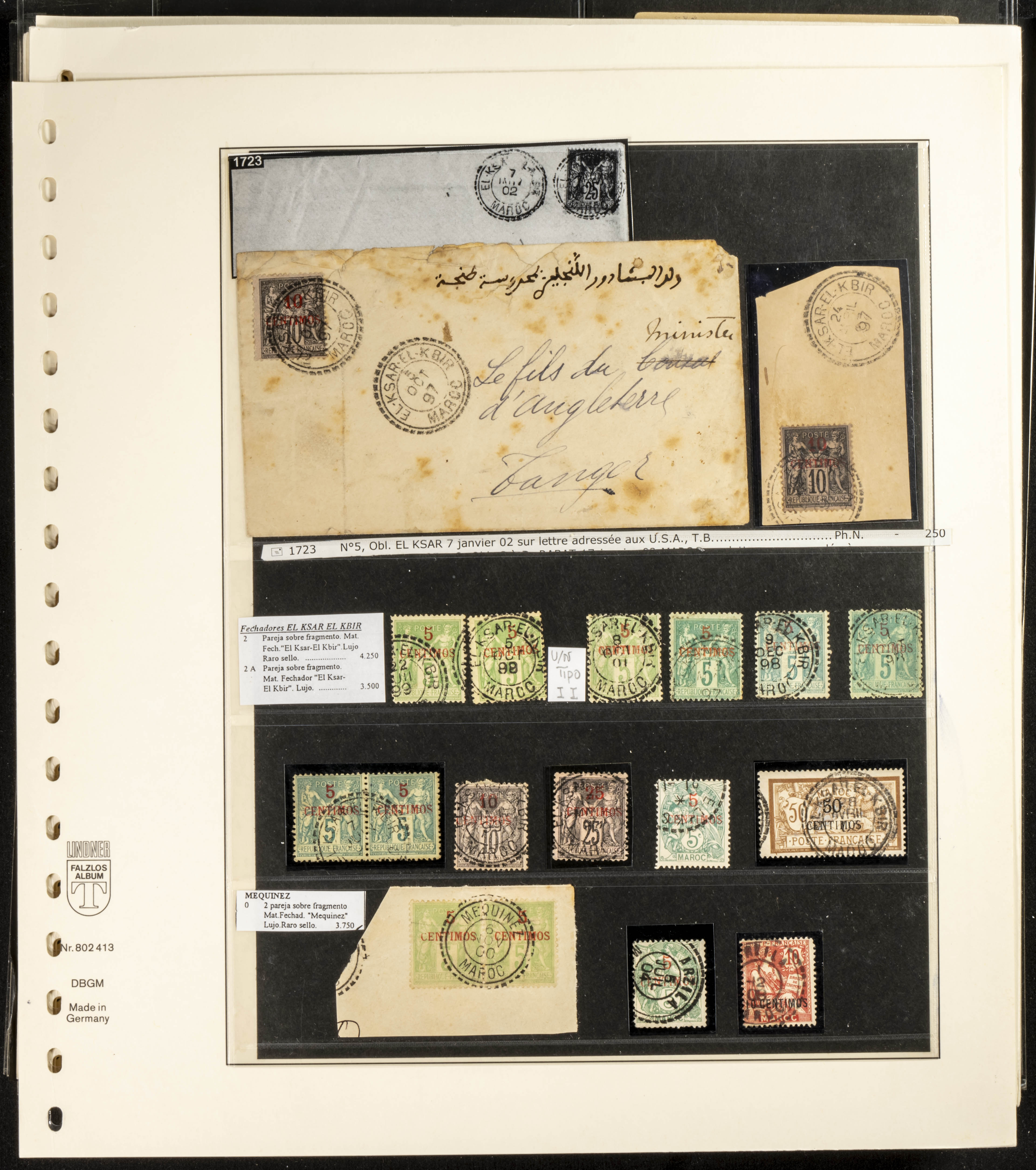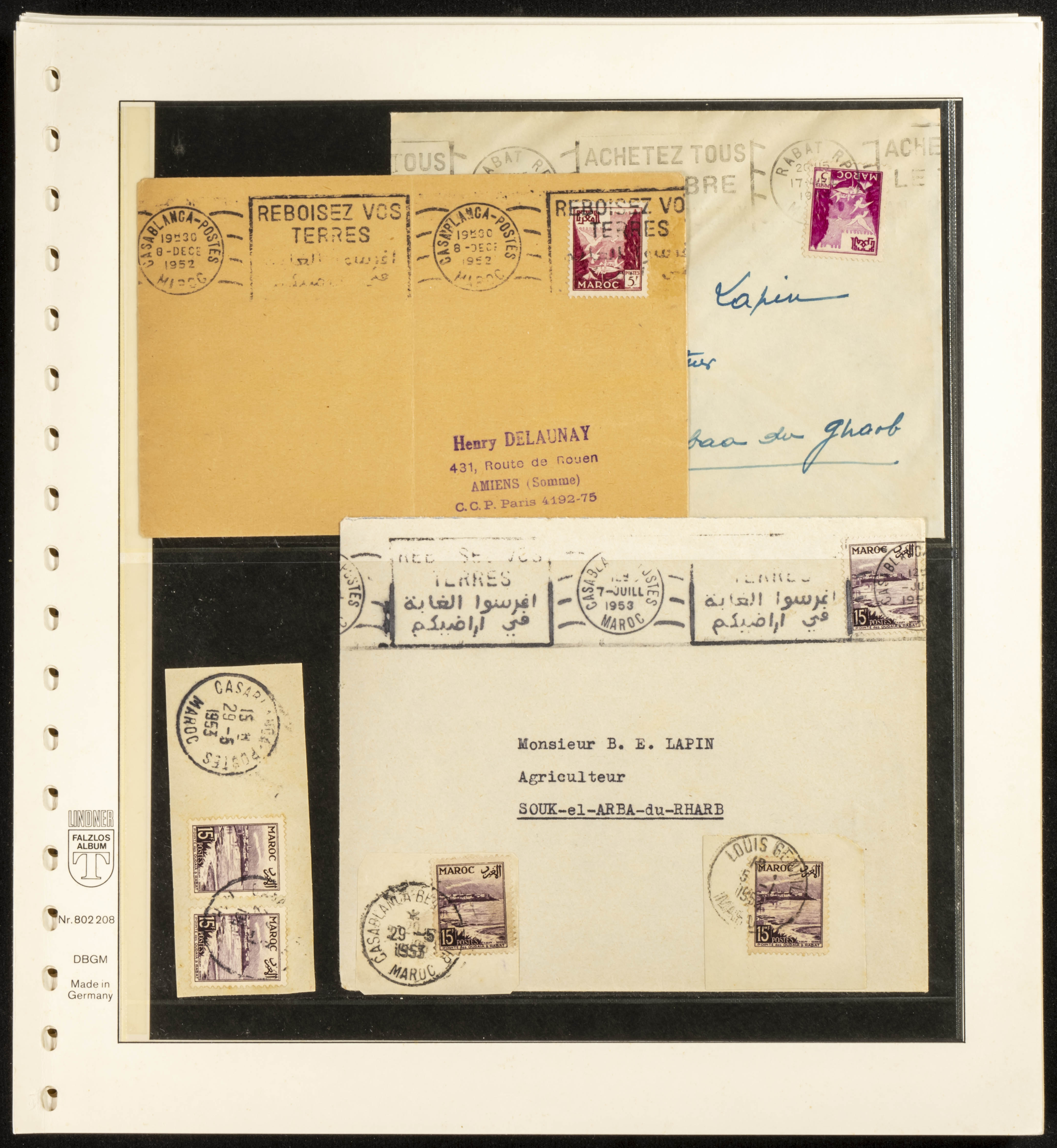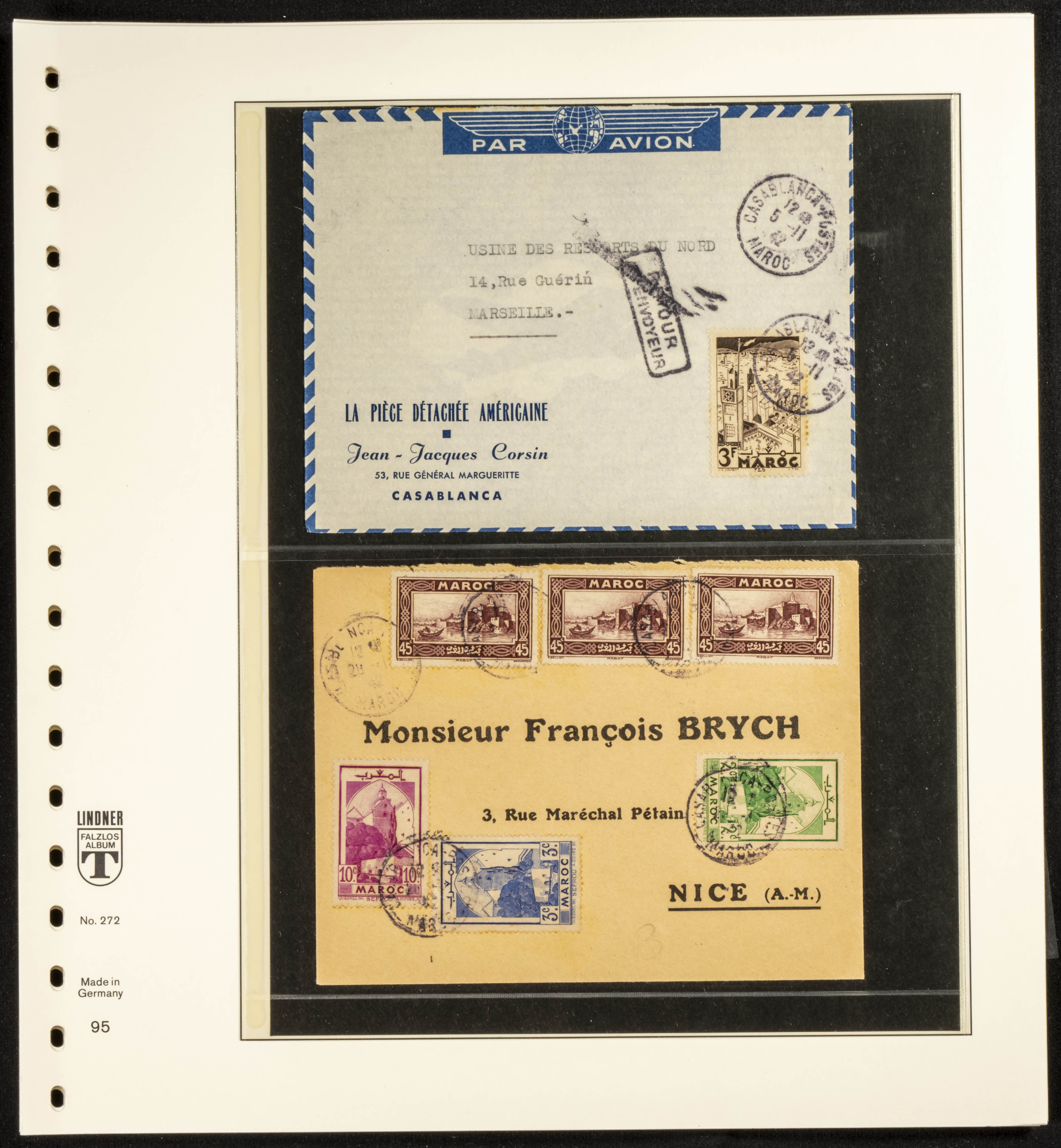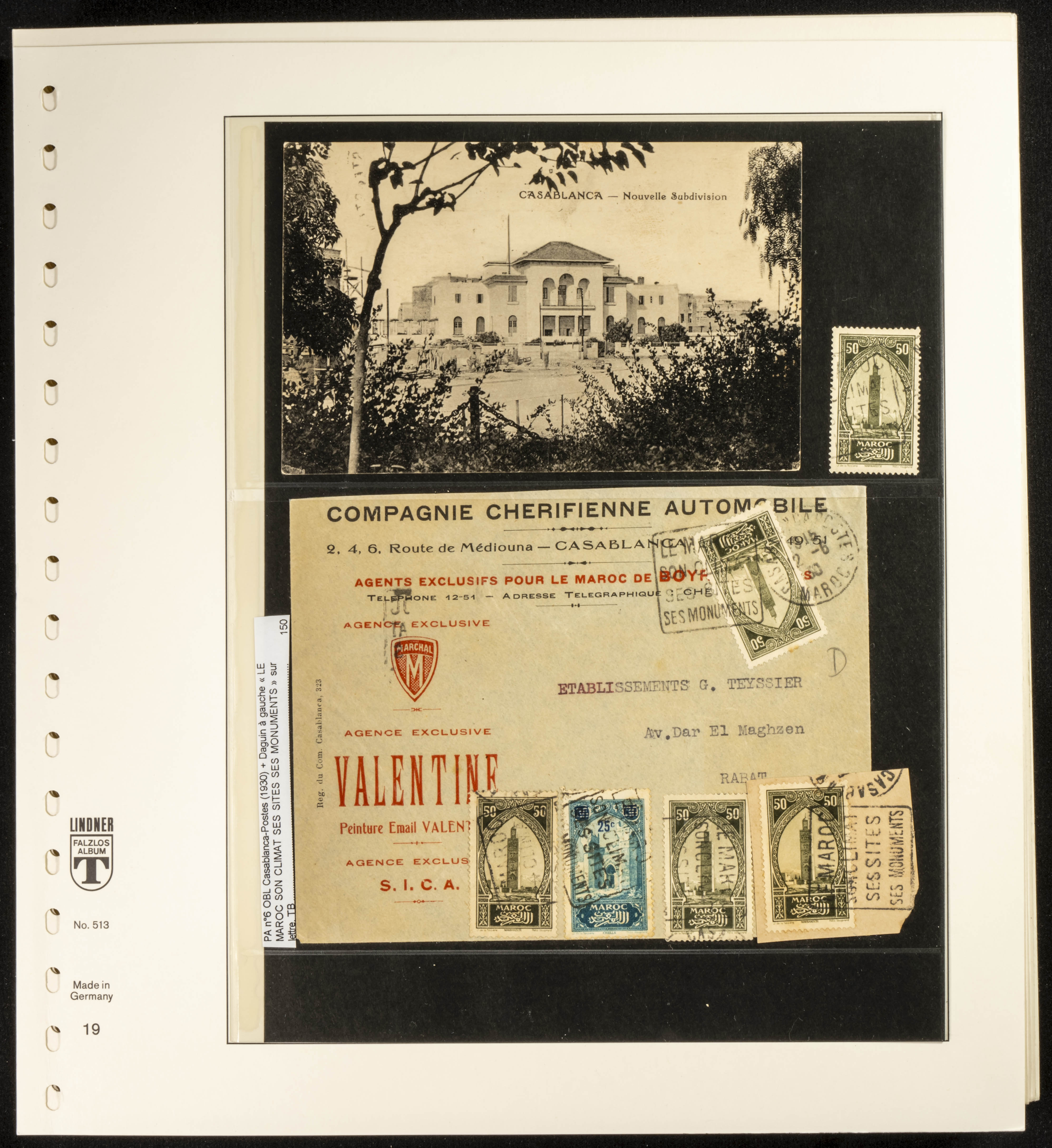 (circa 1891). Spectacular collection of used loose stamps and Postal History of French Morocco between 1891 and 1957. Includes early issues of French stamps with Moroccan postmarks, hundreds of circulated letters and postcards, some sent by registered mail, many with varied letterheads and unusual postage, hundreds of stamps with diverse postmarks (organized by issue alongside the letters), machine-printed postage, airmail, etc. EXAMINATION IS ESSENTIAL.