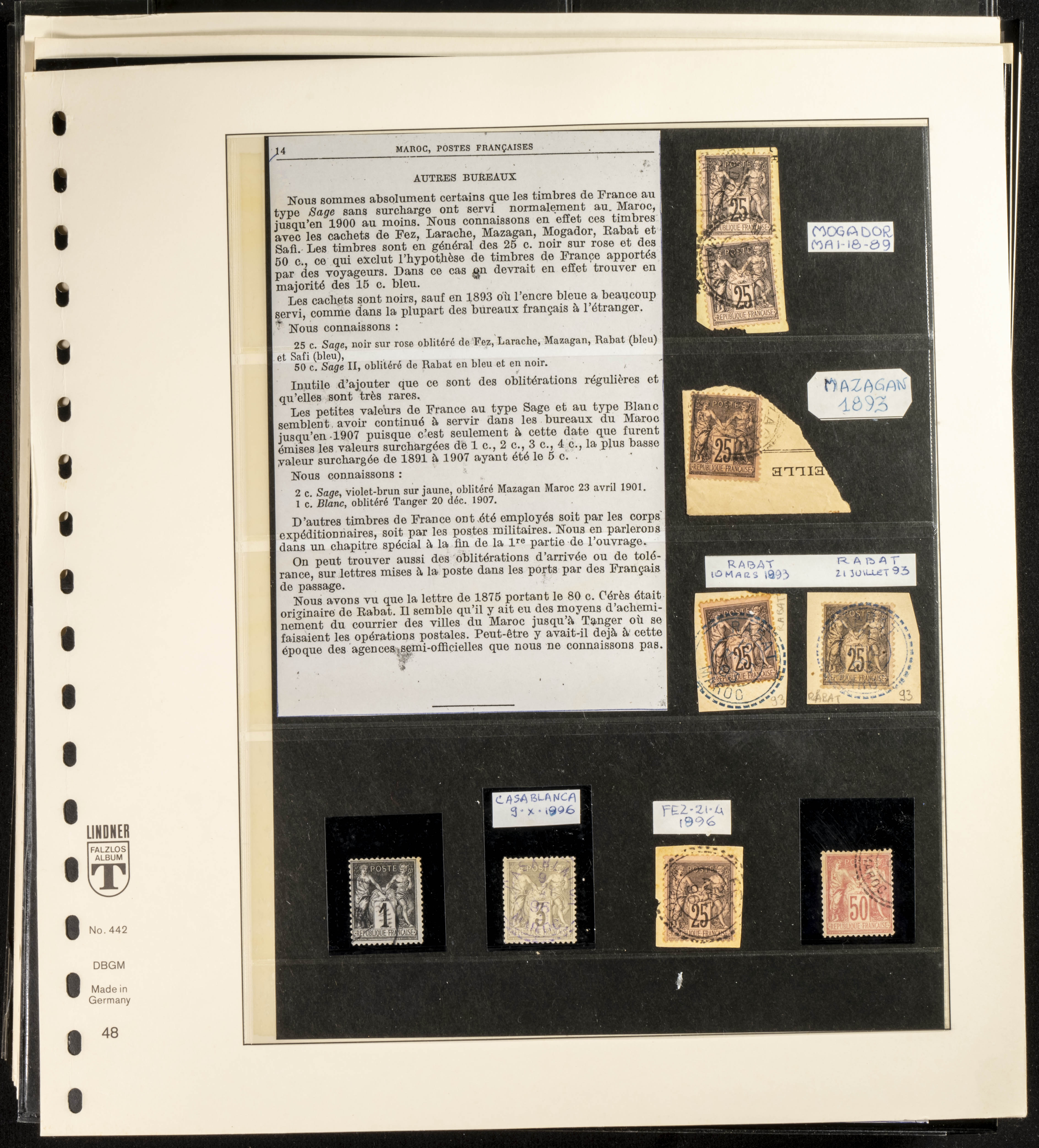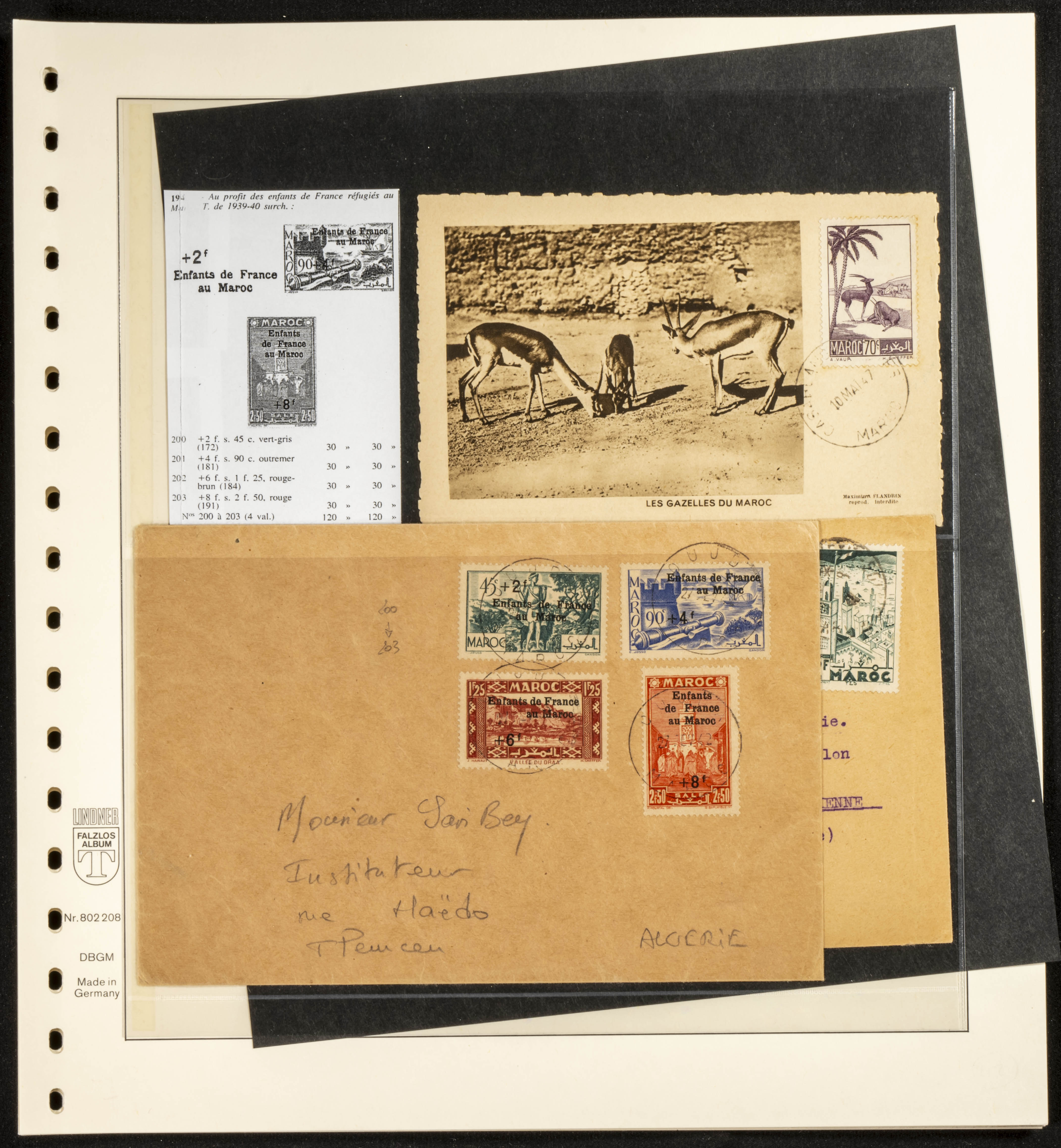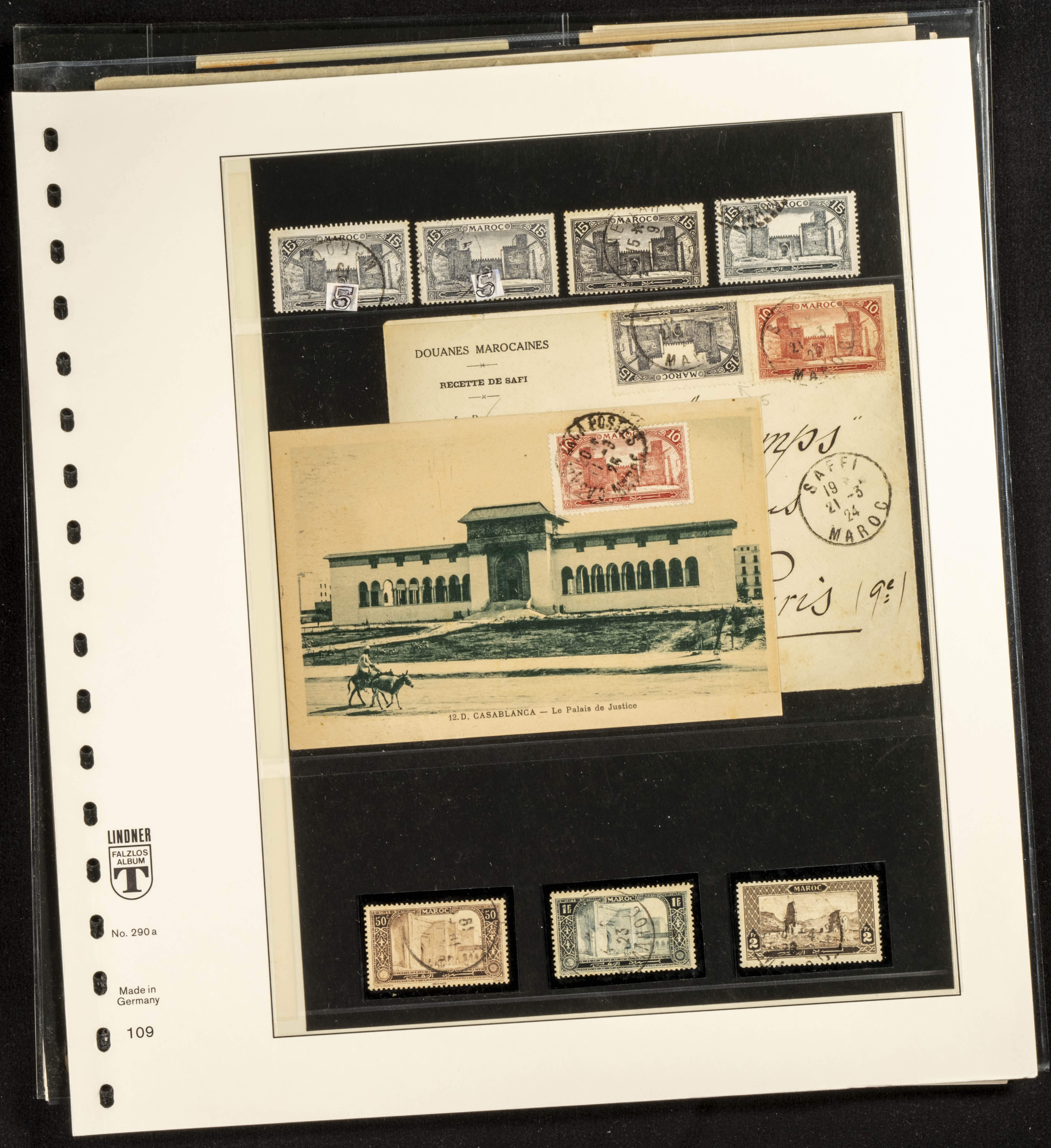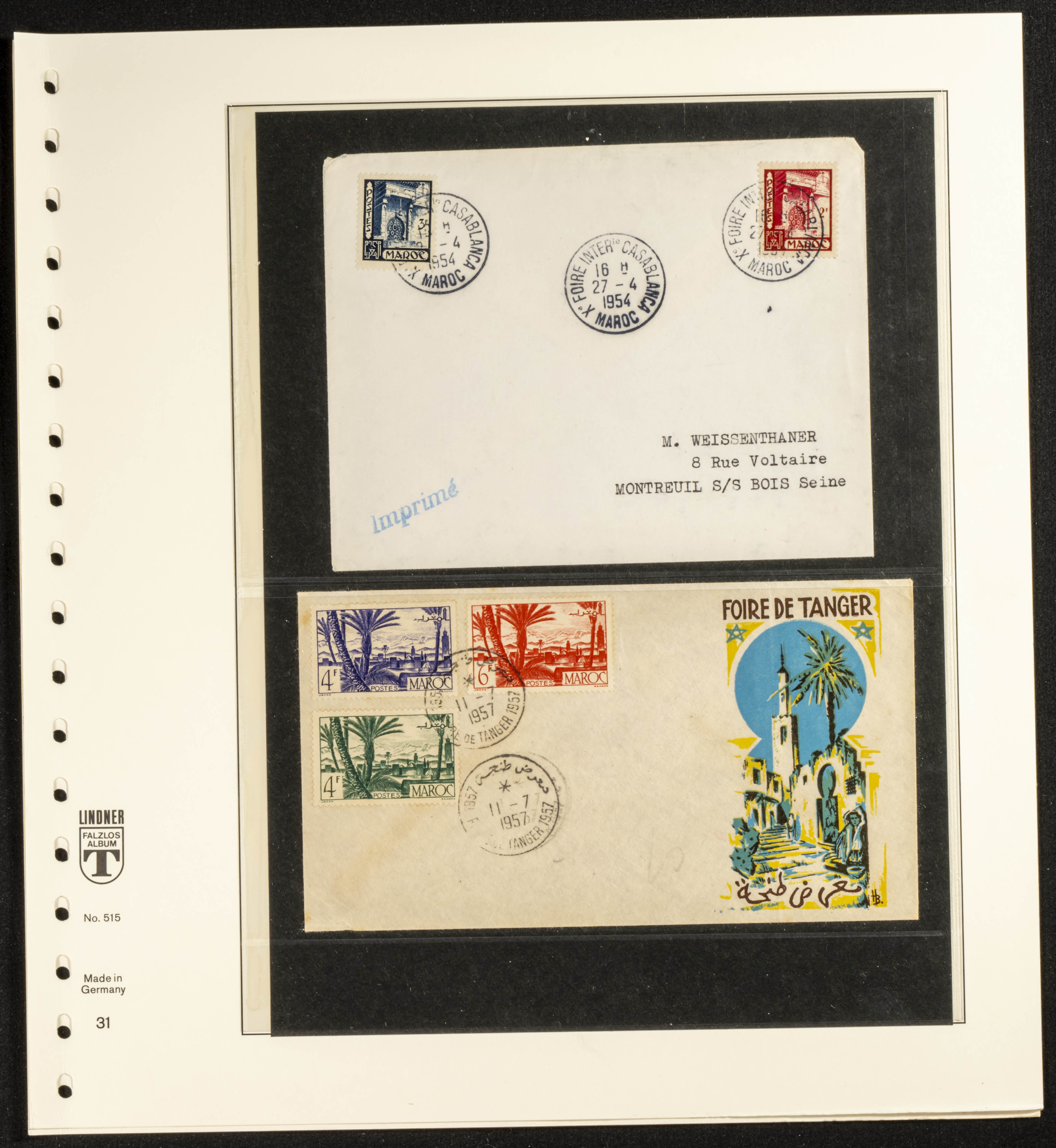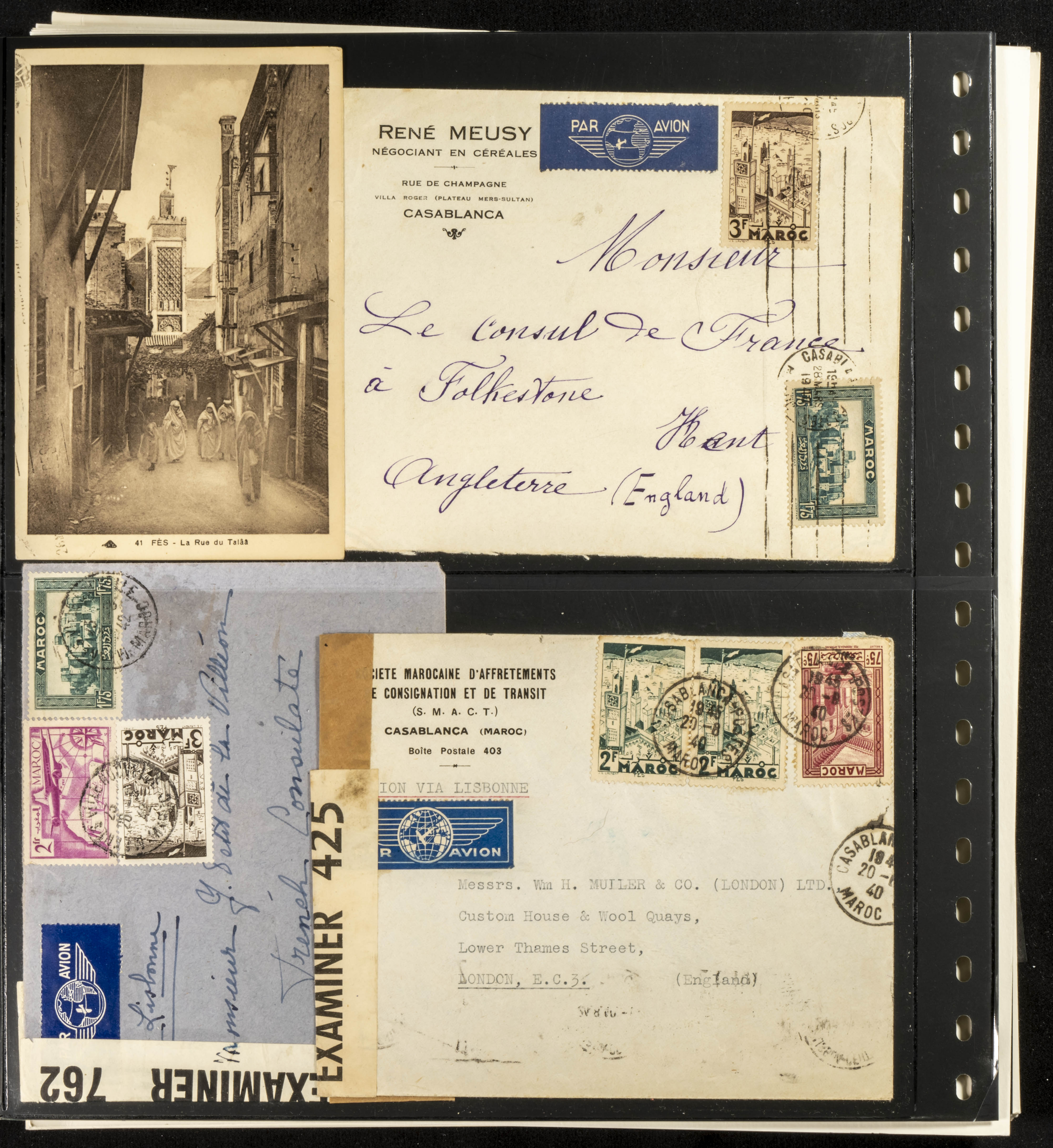 (circa 1891). Spectacular collection of used loose stamps and Postal History of French Morocco between 1891 and 1957. Includes early issues of French stamps with Moroccan postmarks, hundreds of circulated letters and postcards, some sent by registered mail, many with varied letterheads and unusual postage, hundreds of stamps with diverse postmarks (organized by issue alongside the letters), machine-printed postage, airmail, etc. EXAMINATION IS ESSENTIAL.