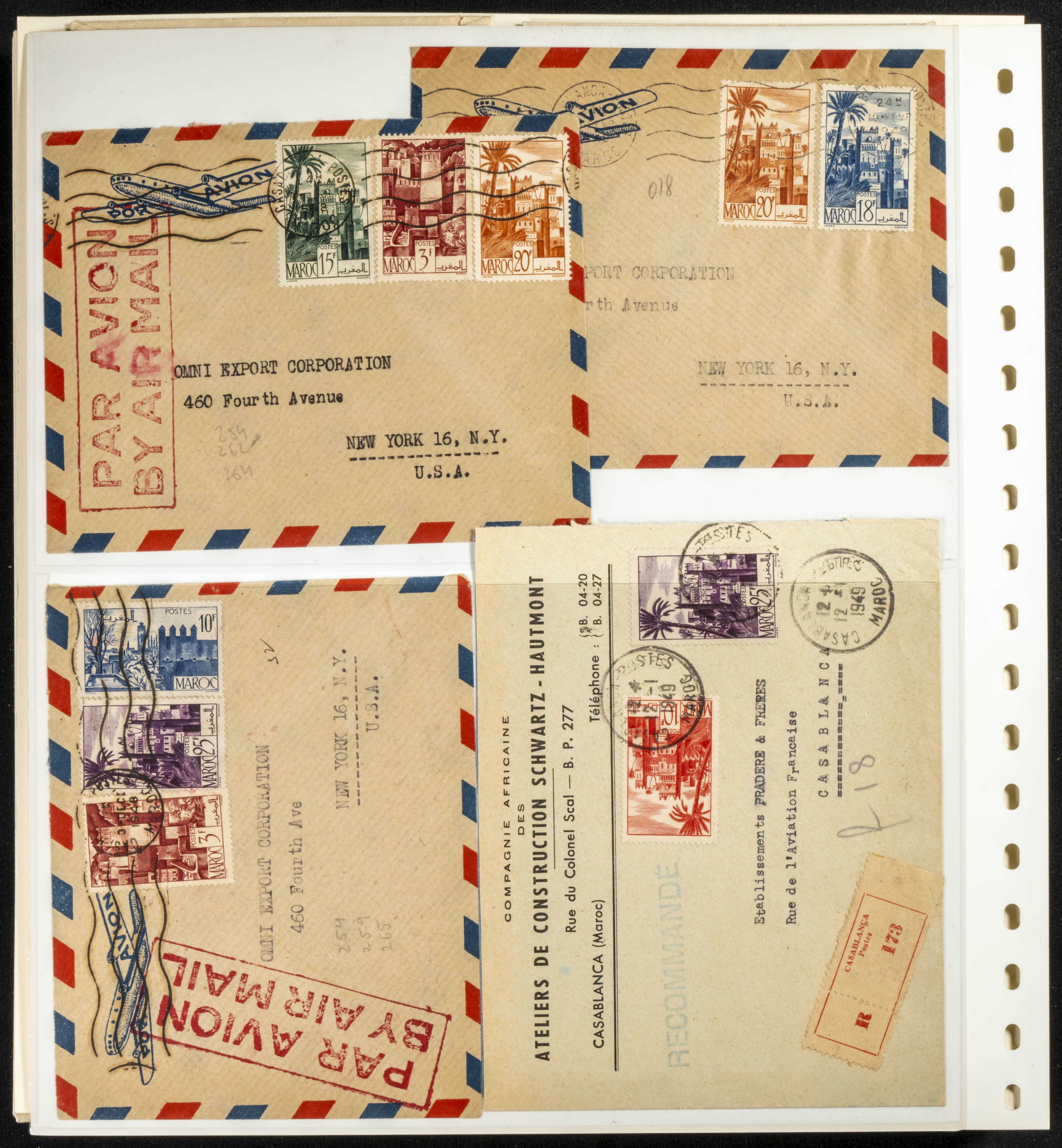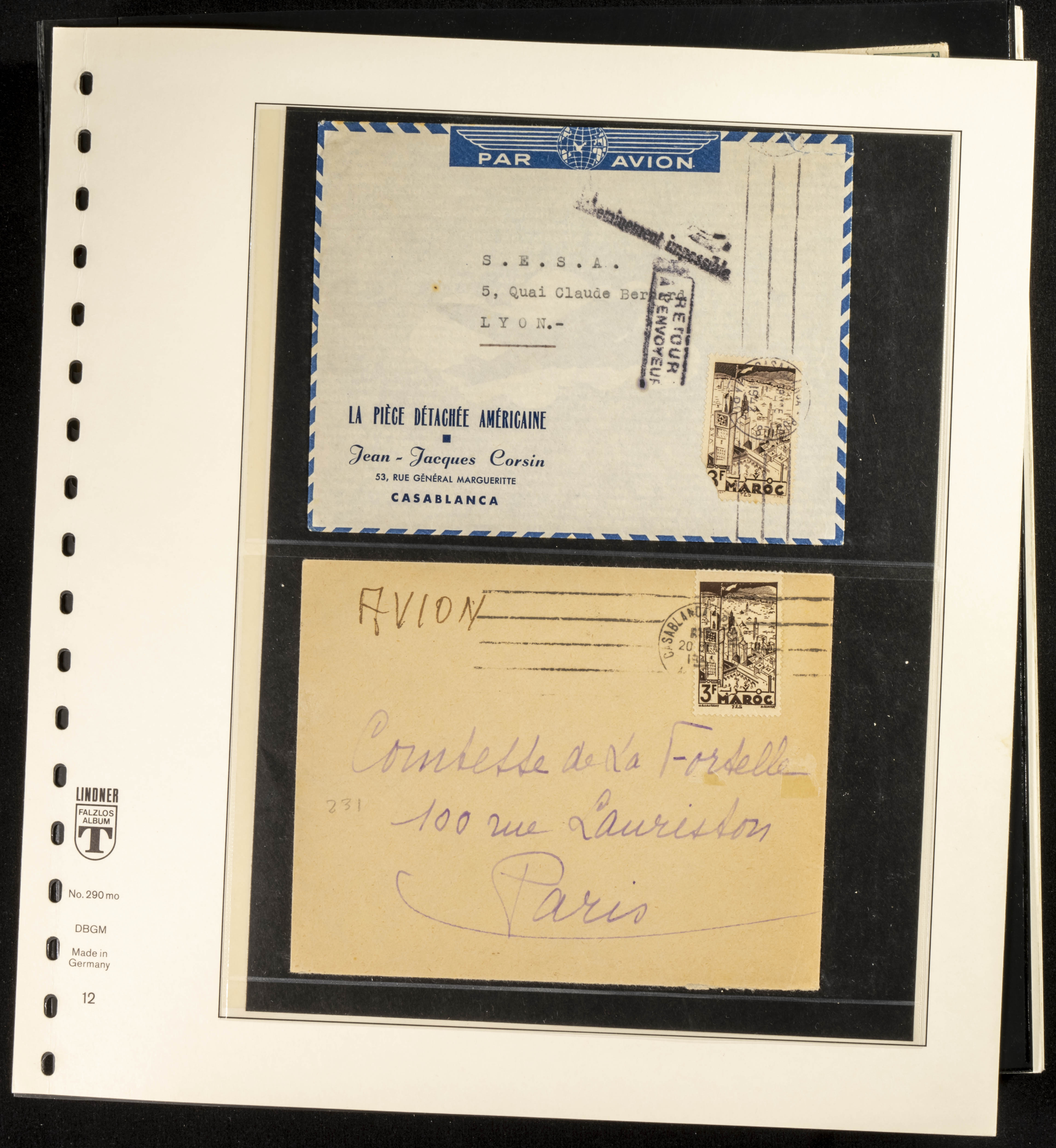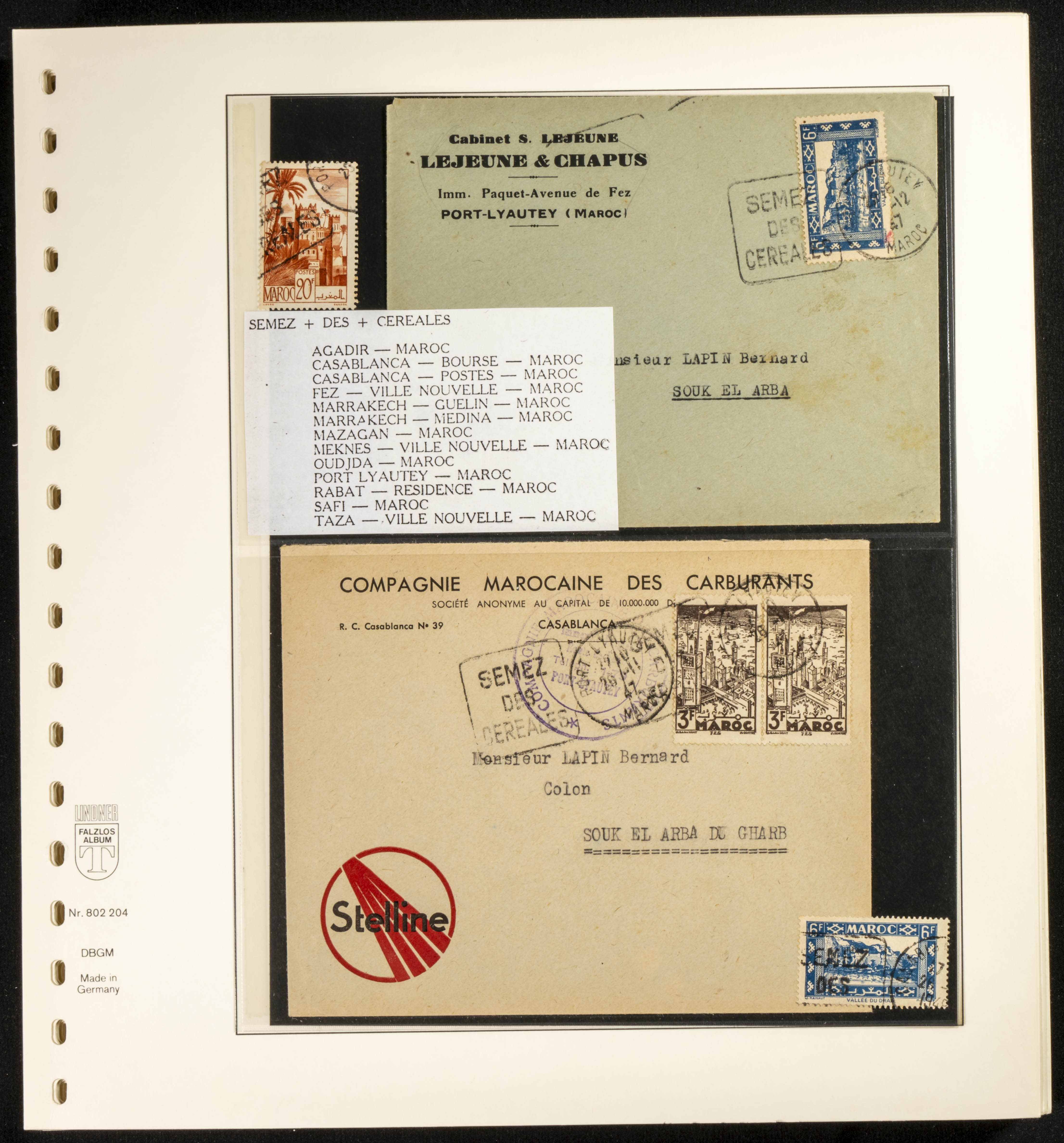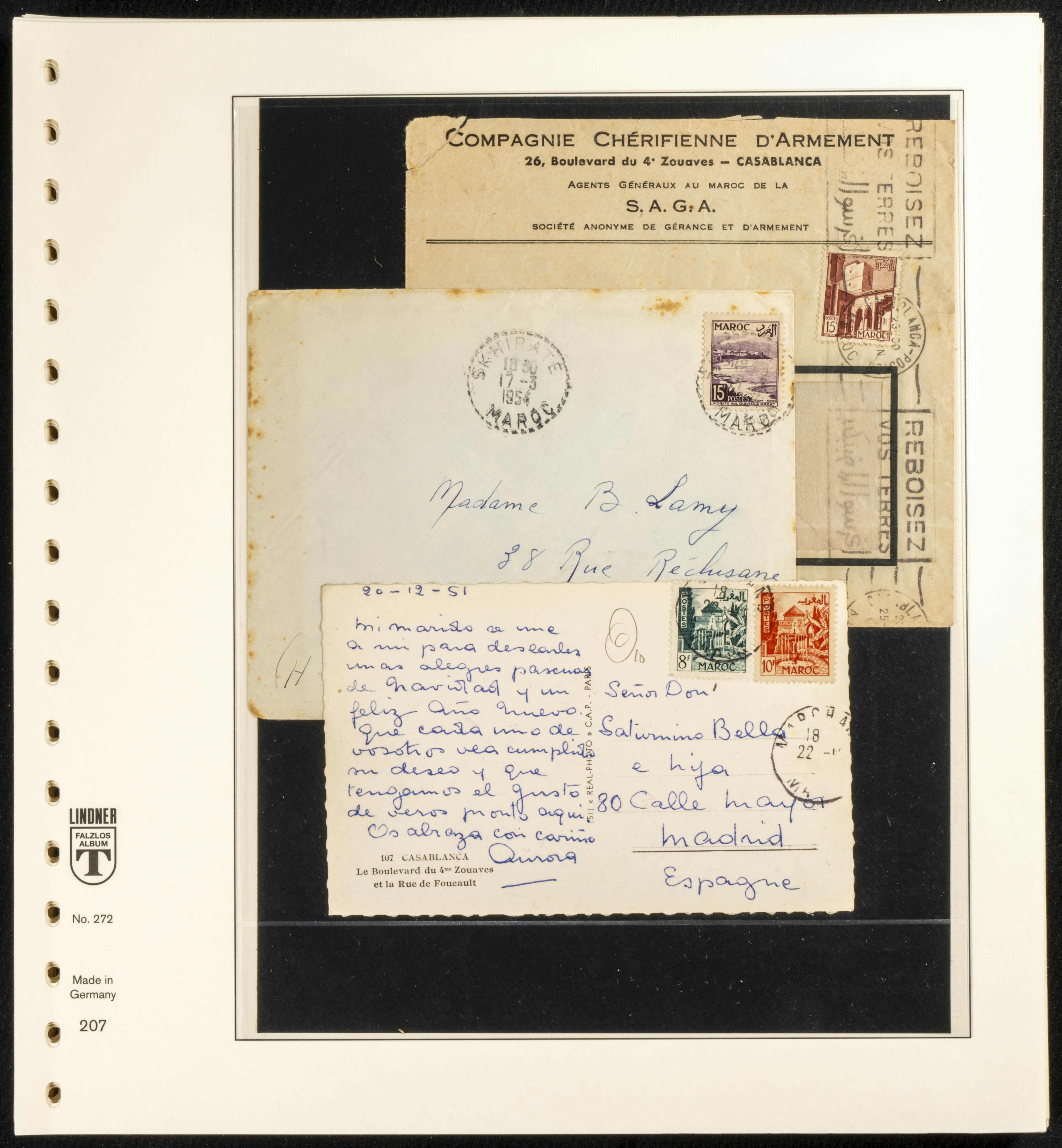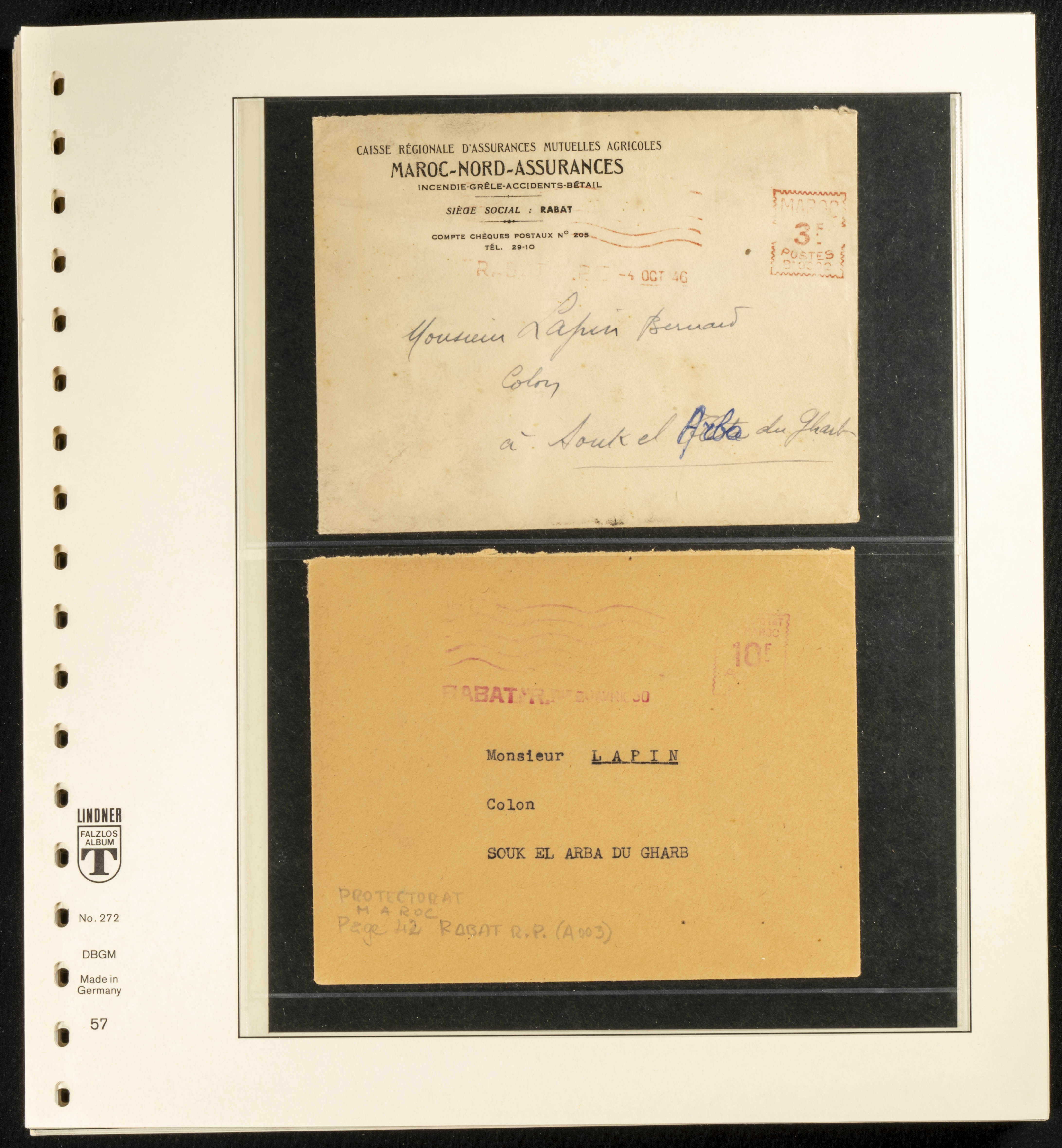 (circa 1891). Spectacular collection of used loose stamps and Postal History of French Morocco between 1891 and 1957. Includes early issues of French stamps with Moroccan postmarks, hundreds of circulated letters and postcards, some sent by registered mail, many with varied letterheads and unusual postage, hundreds of stamps with diverse postmarks (organized by issue alongside the letters), machine-printed postage, airmail, etc. EXAMINATION IS ESSENTIAL.