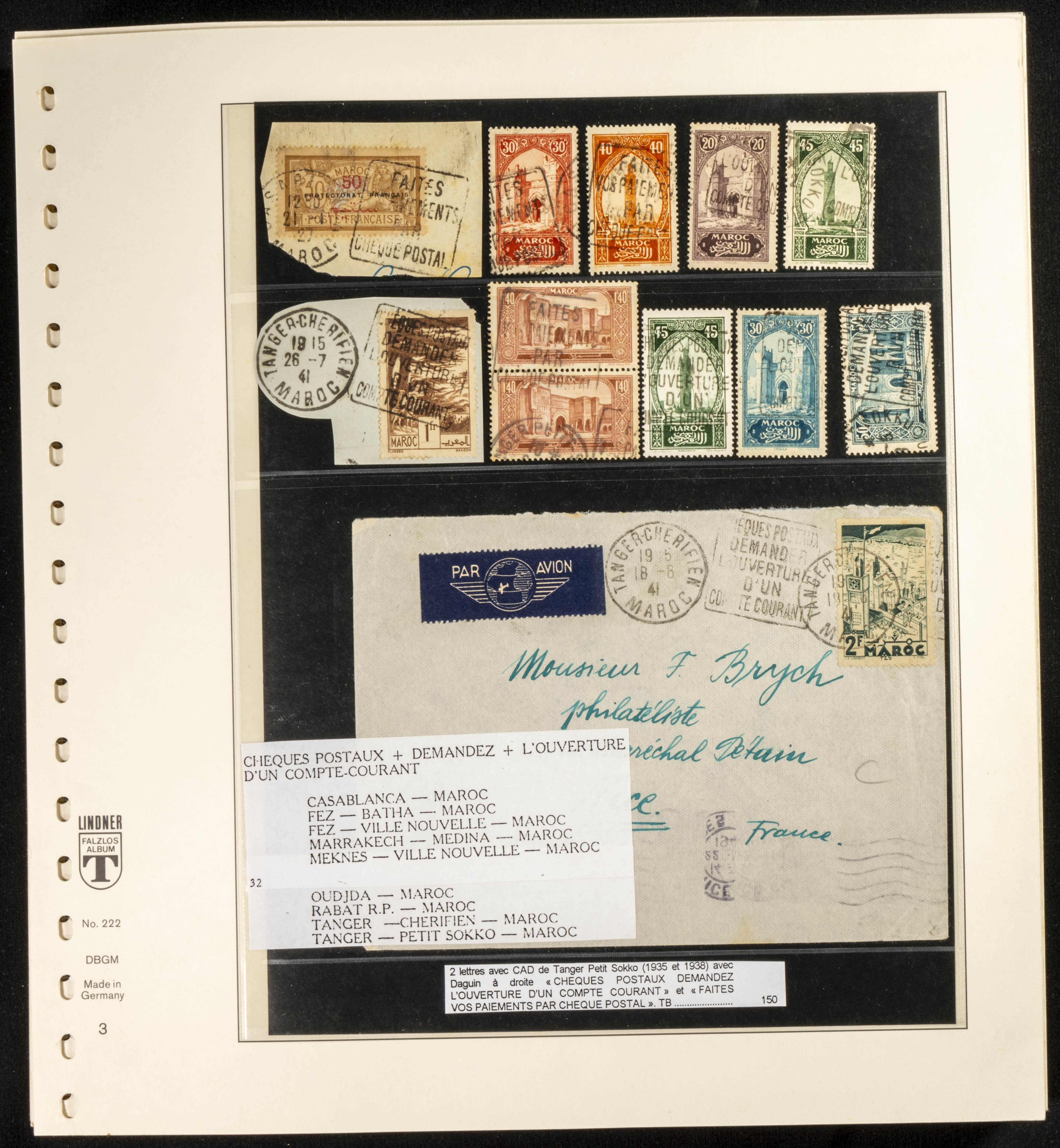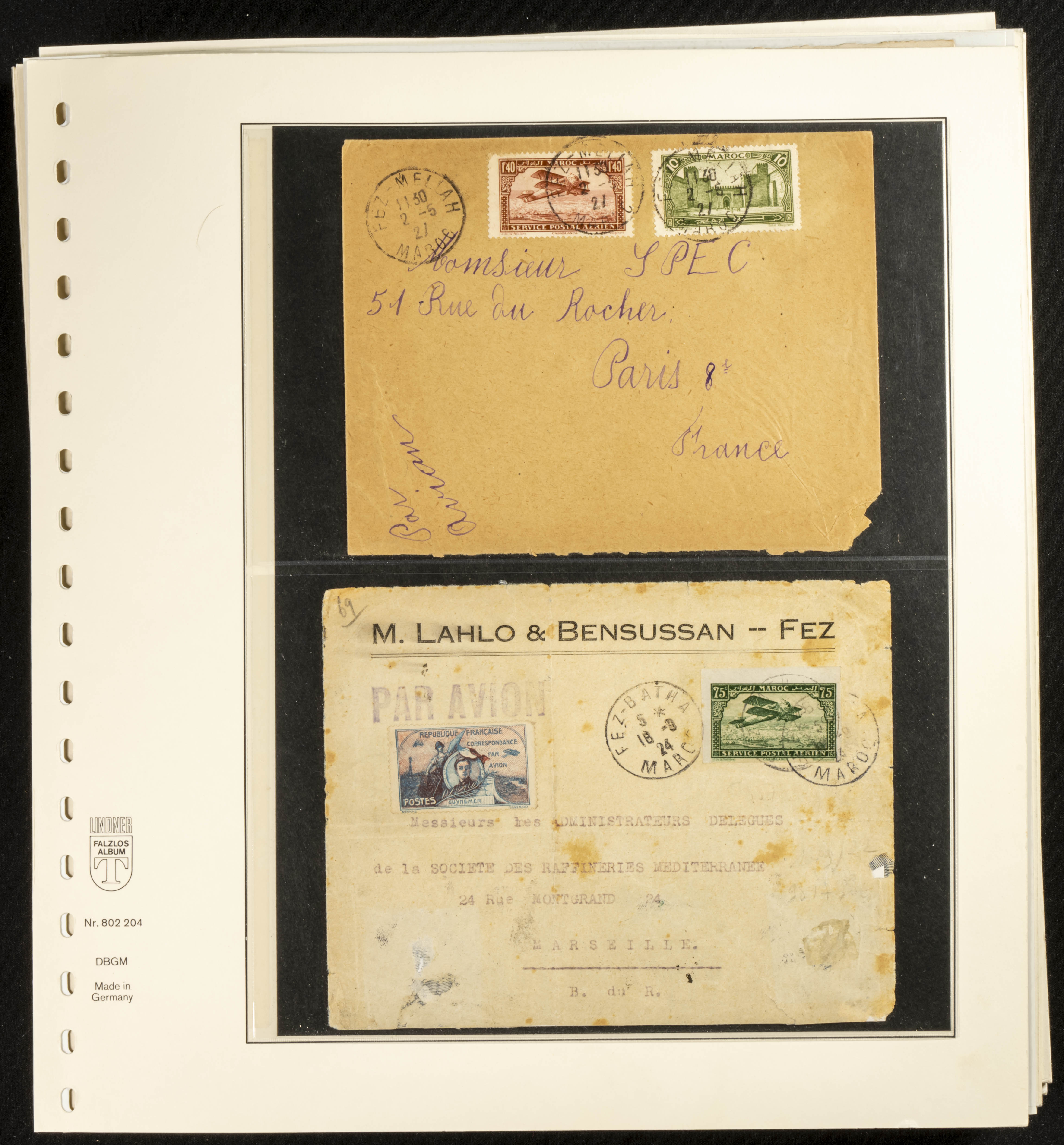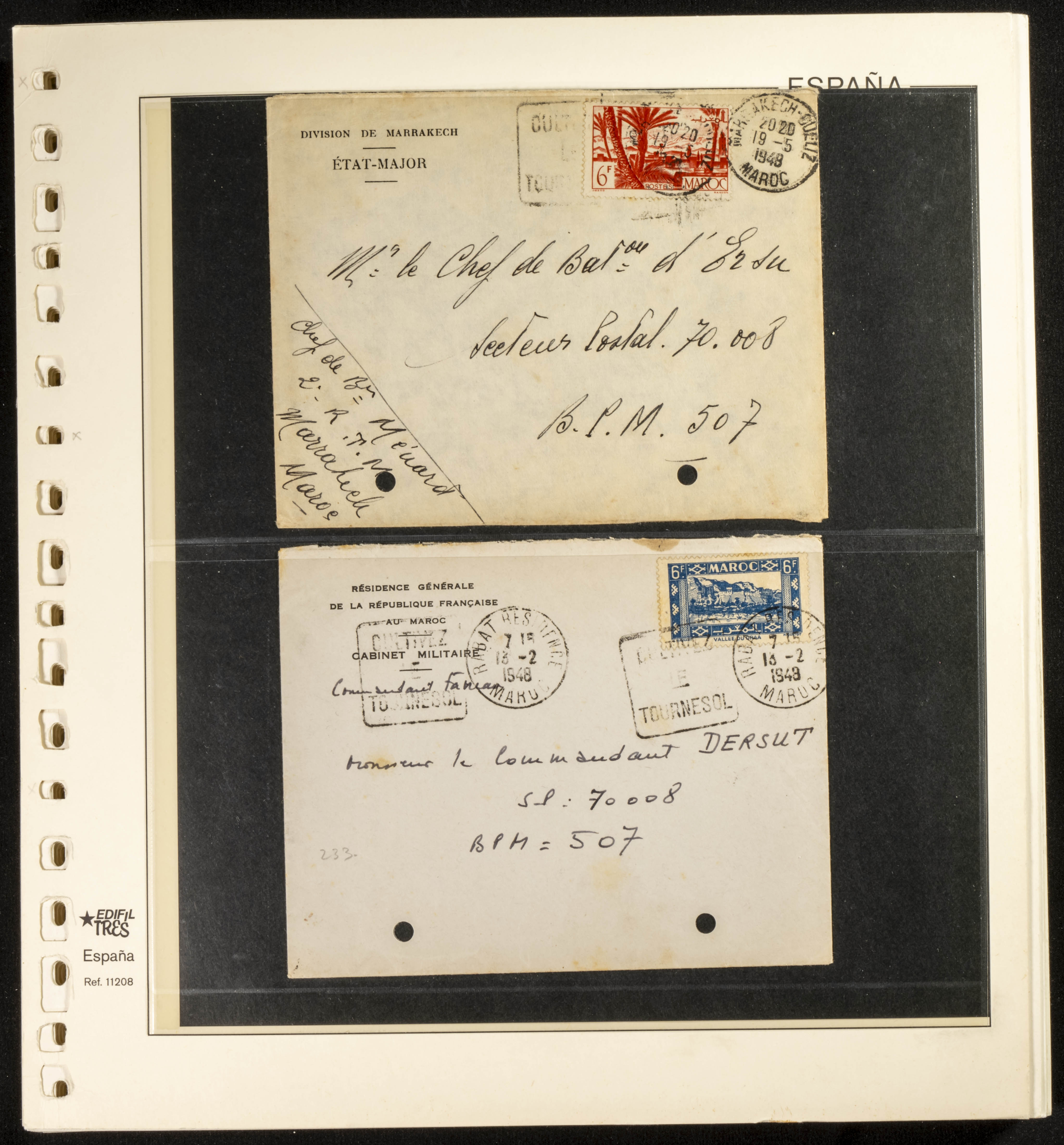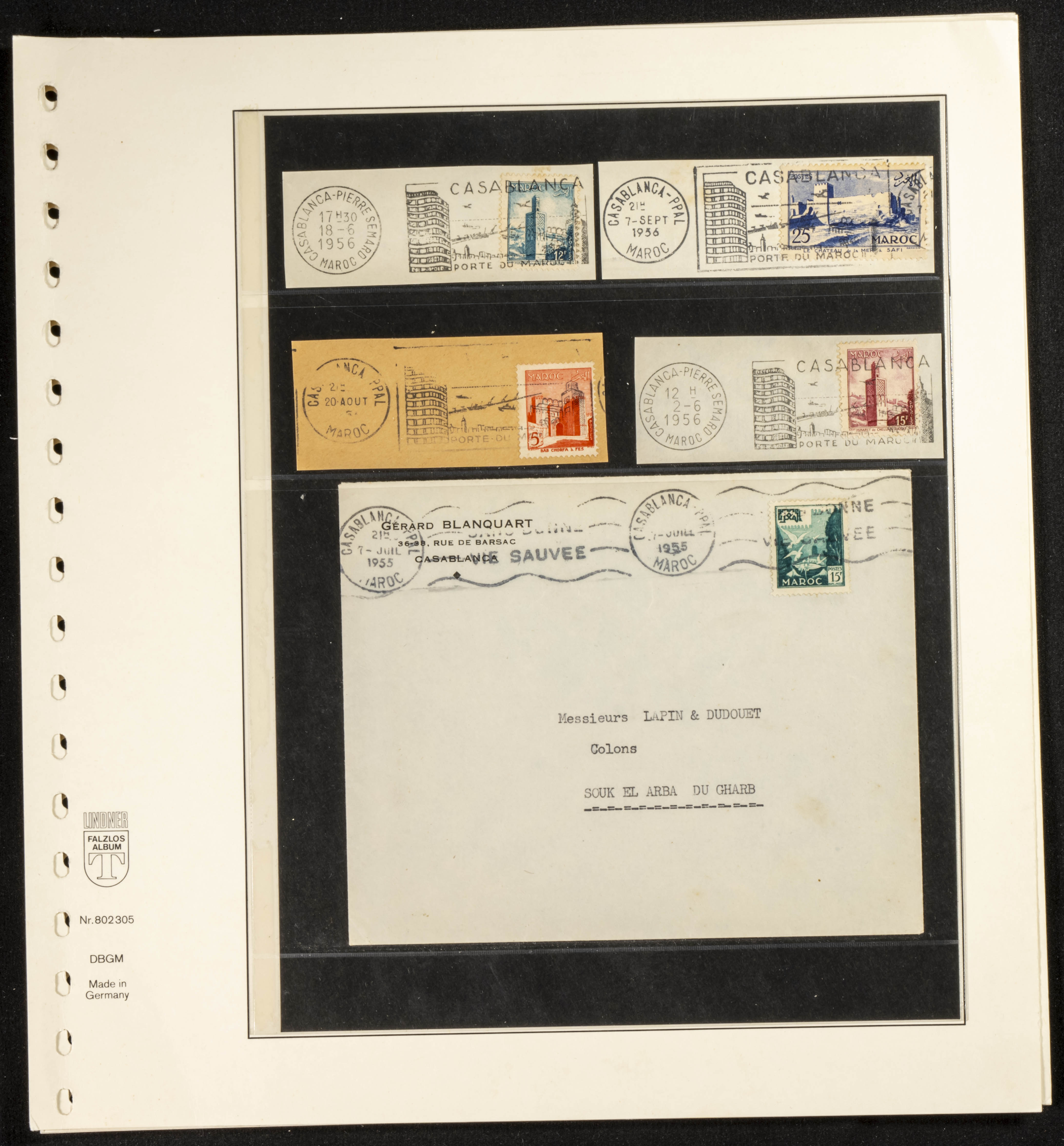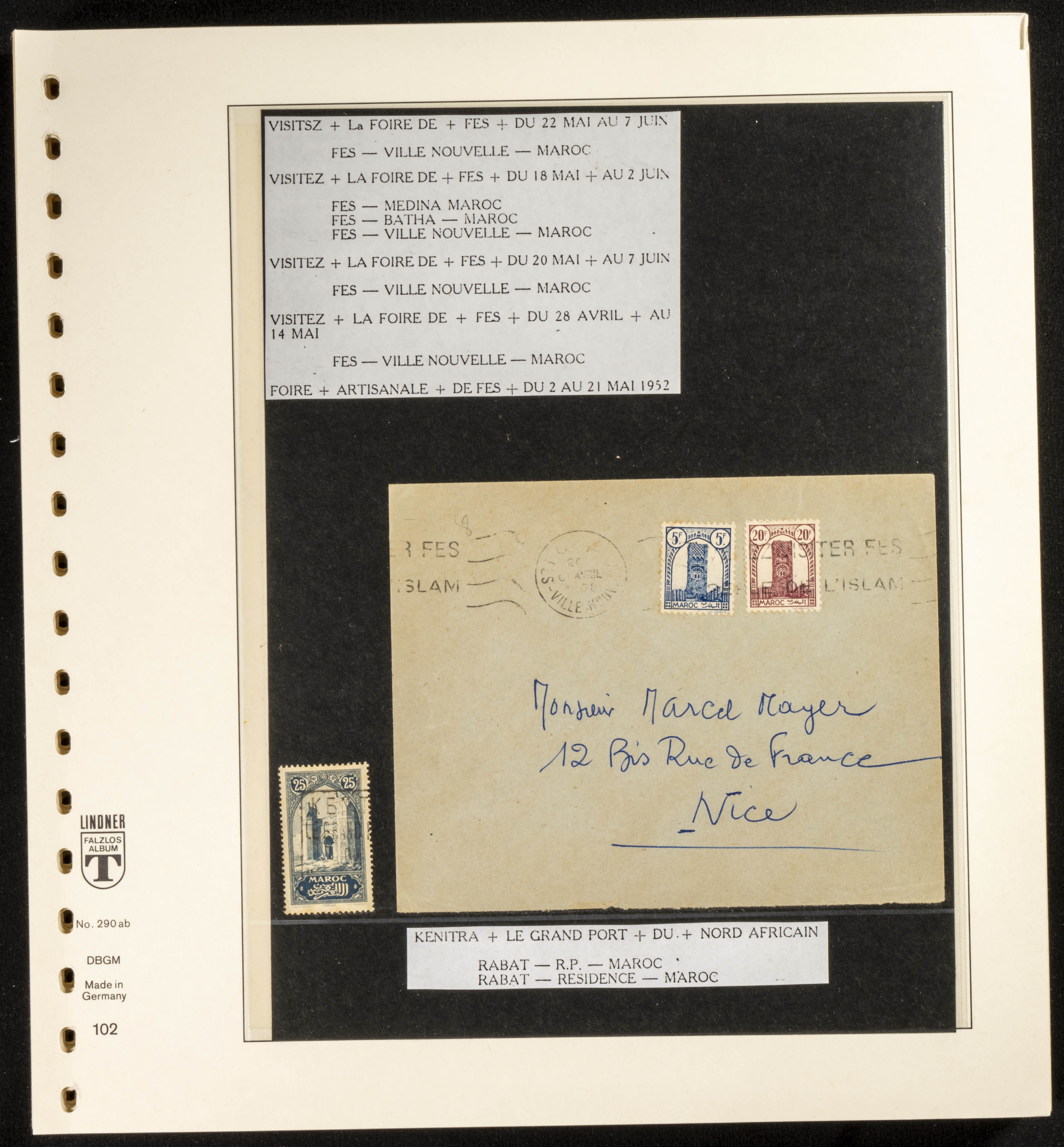 (circa 1891). Spectacular collection of used loose stamps and Postal History of French Morocco between 1891 and 1957. Includes early issues of French stamps with Moroccan postmarks, hundreds of circulated letters and postcards, some sent by registered mail, many with varied letterheads and unusual postage, hundreds of stamps with diverse postmarks (organized by issue alongside the letters), machine-printed postage, airmail, etc. EXAMINATION IS ESSENTIAL.