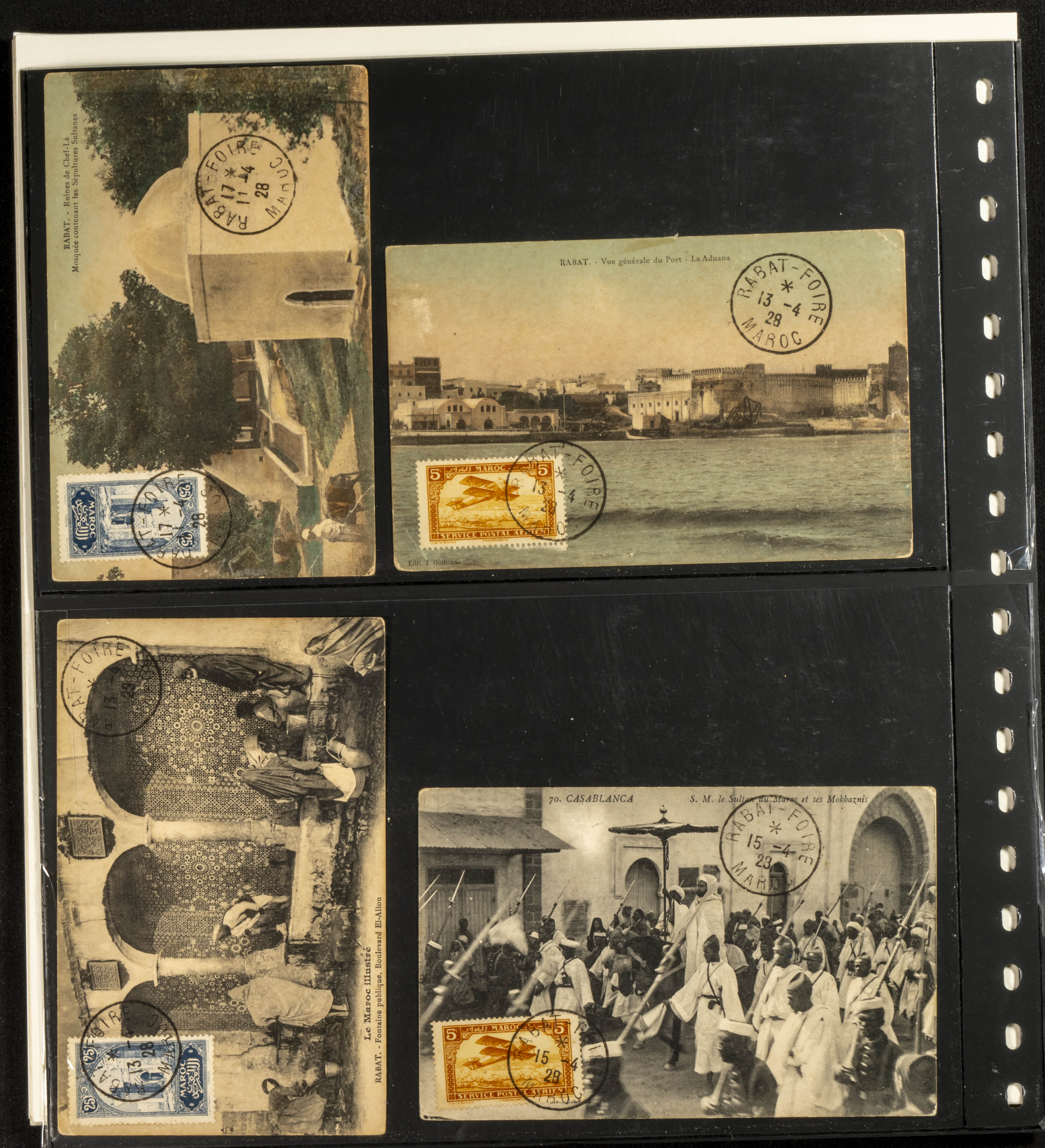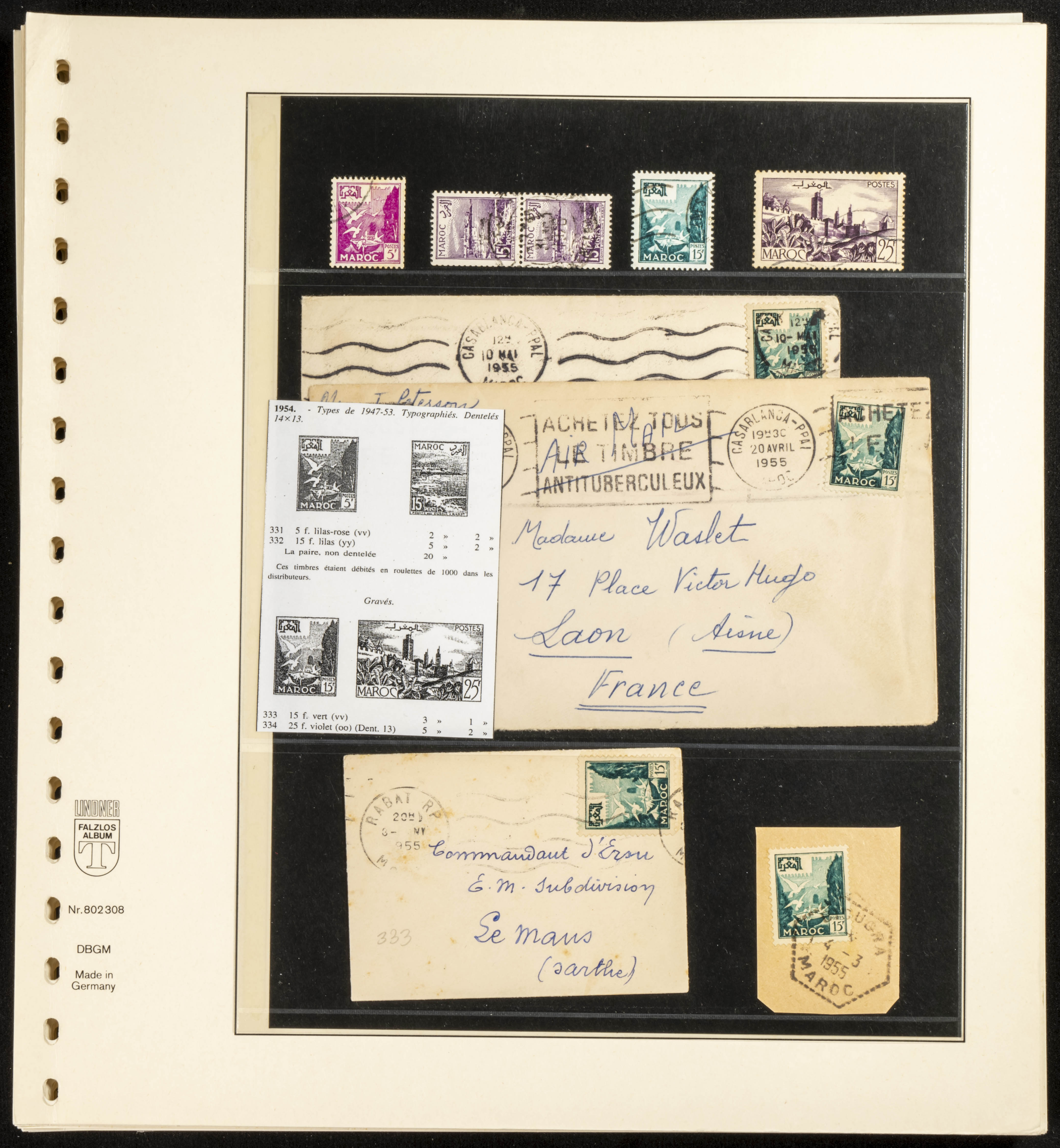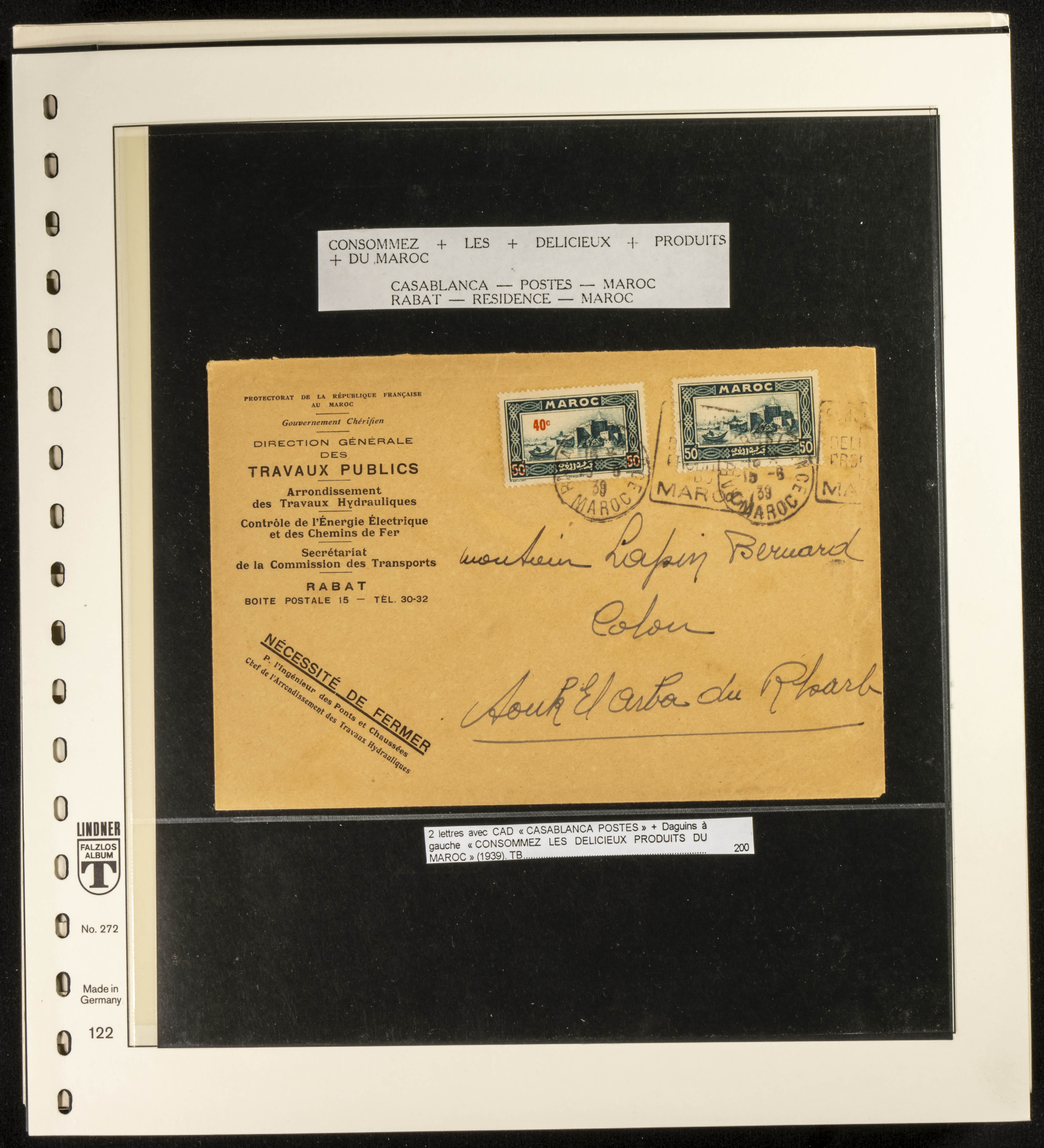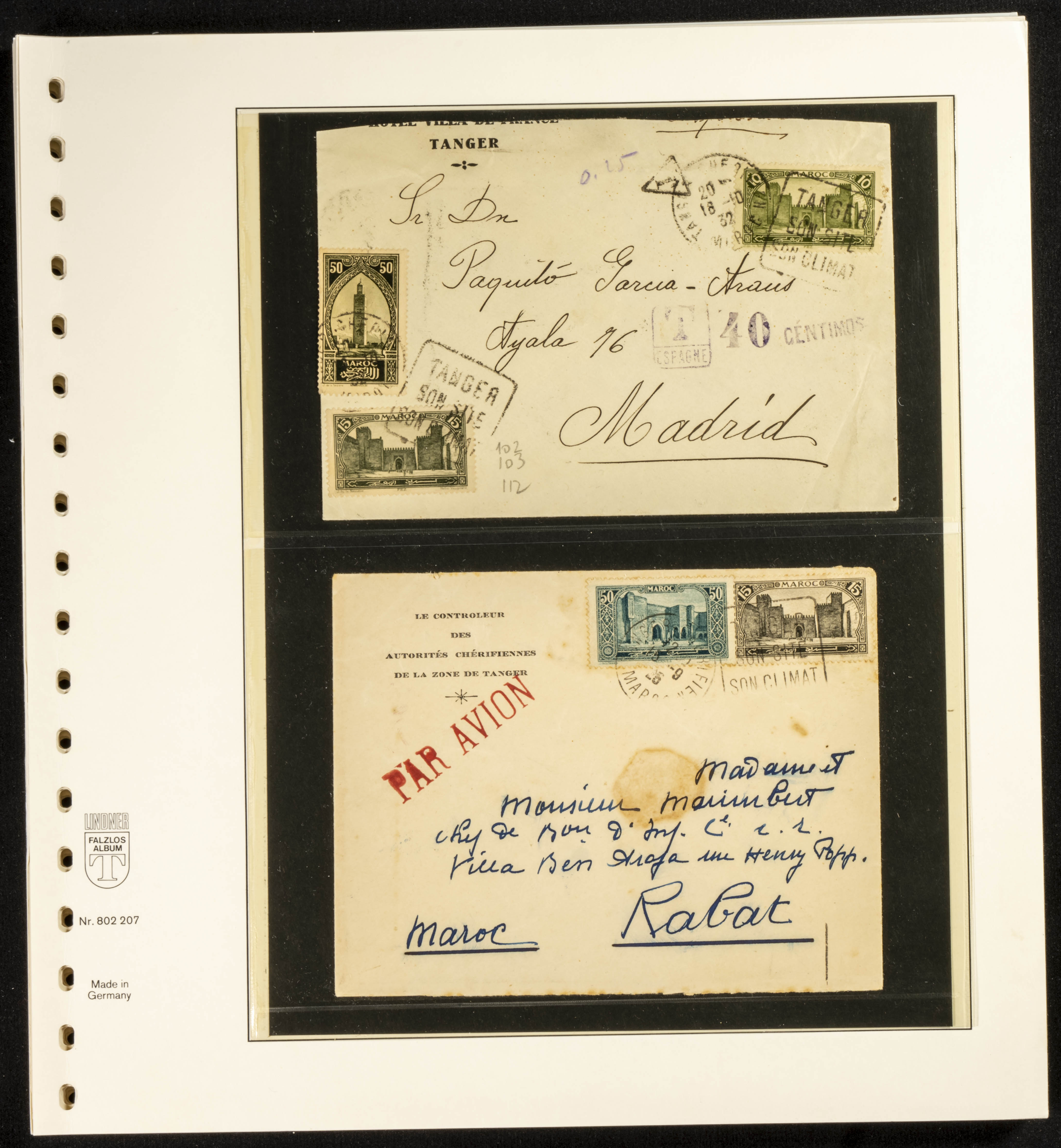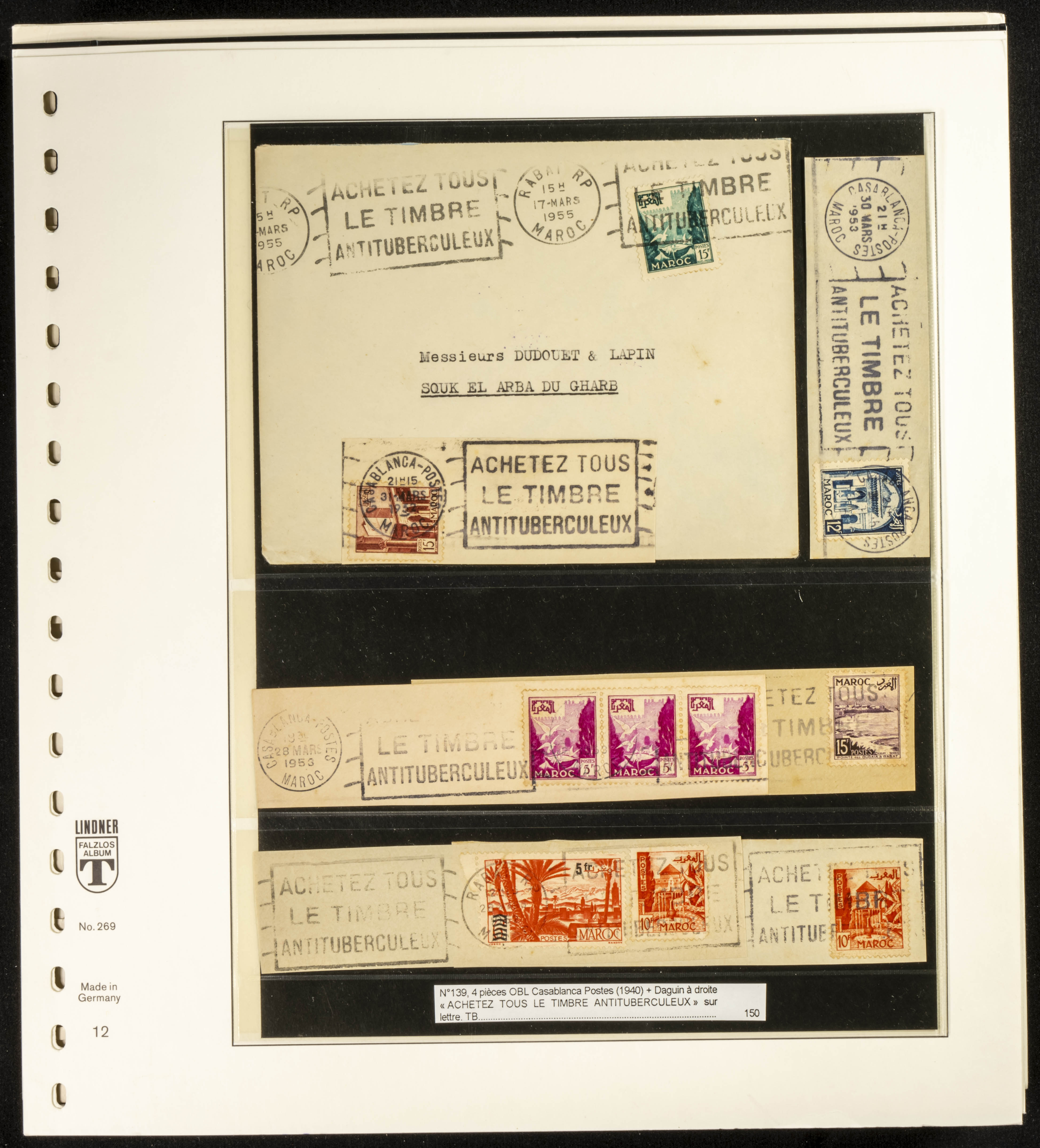 (circa 1891). Spectacular collection of used loose stamps and Postal History of French Morocco between 1891 and 1957. Includes early issues of French stamps with Moroccan postmarks, hundreds of circulated letters and postcards, some sent by registered mail, many with varied letterheads and unusual postage, hundreds of stamps with diverse postmarks (organized by issue alongside the letters), machine-printed postage, airmail, etc. EXAMINATION IS ESSENTIAL.