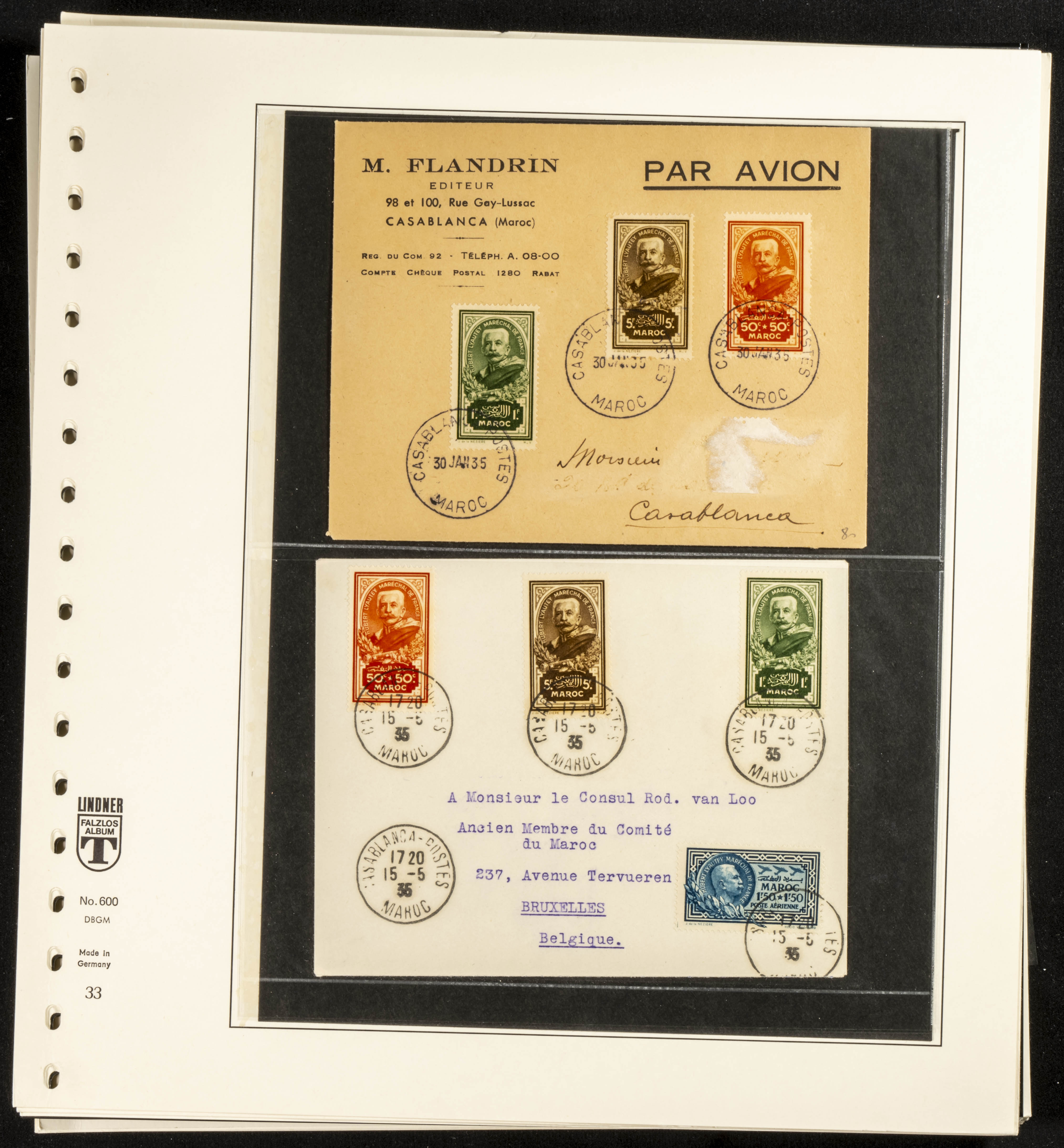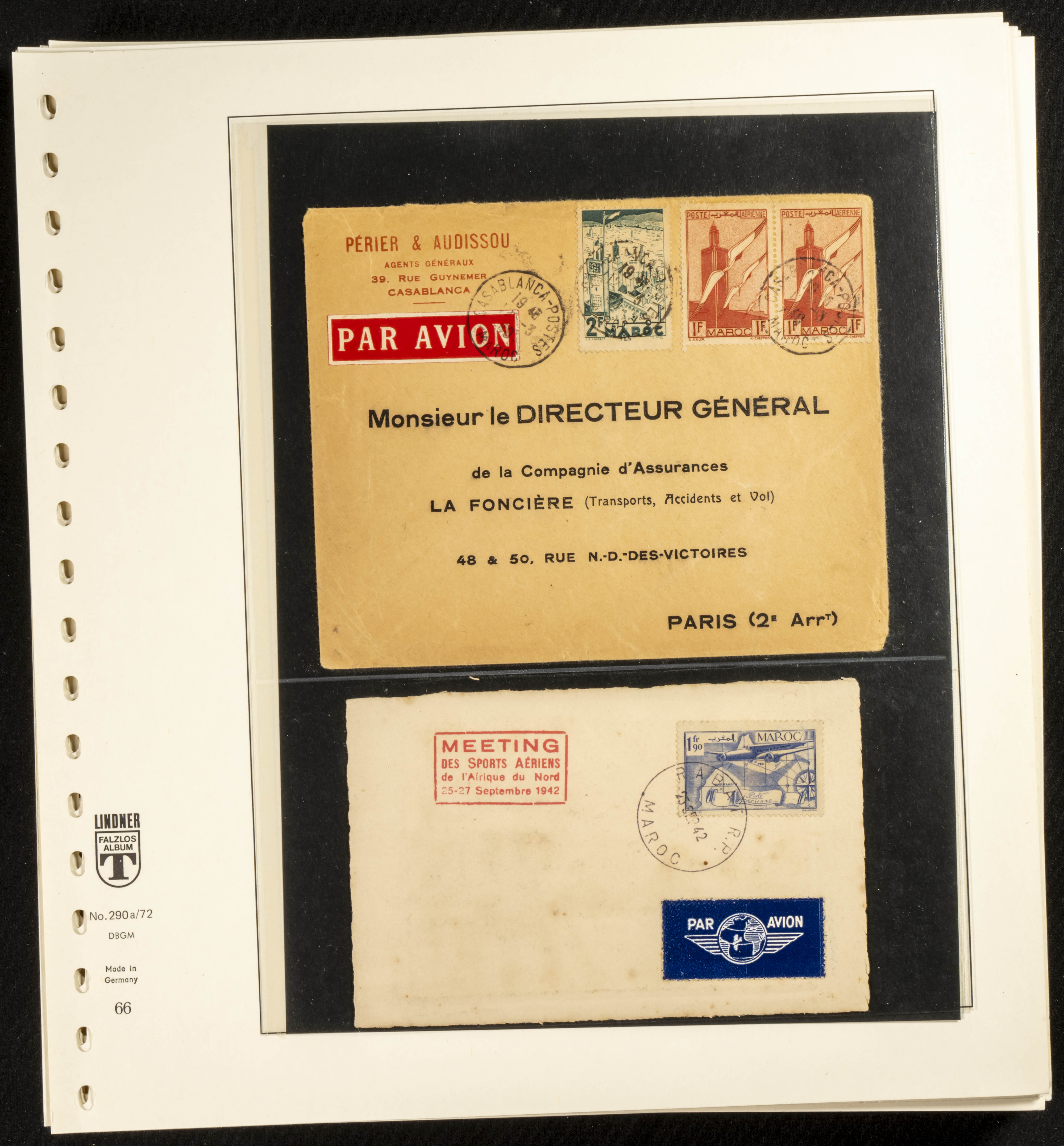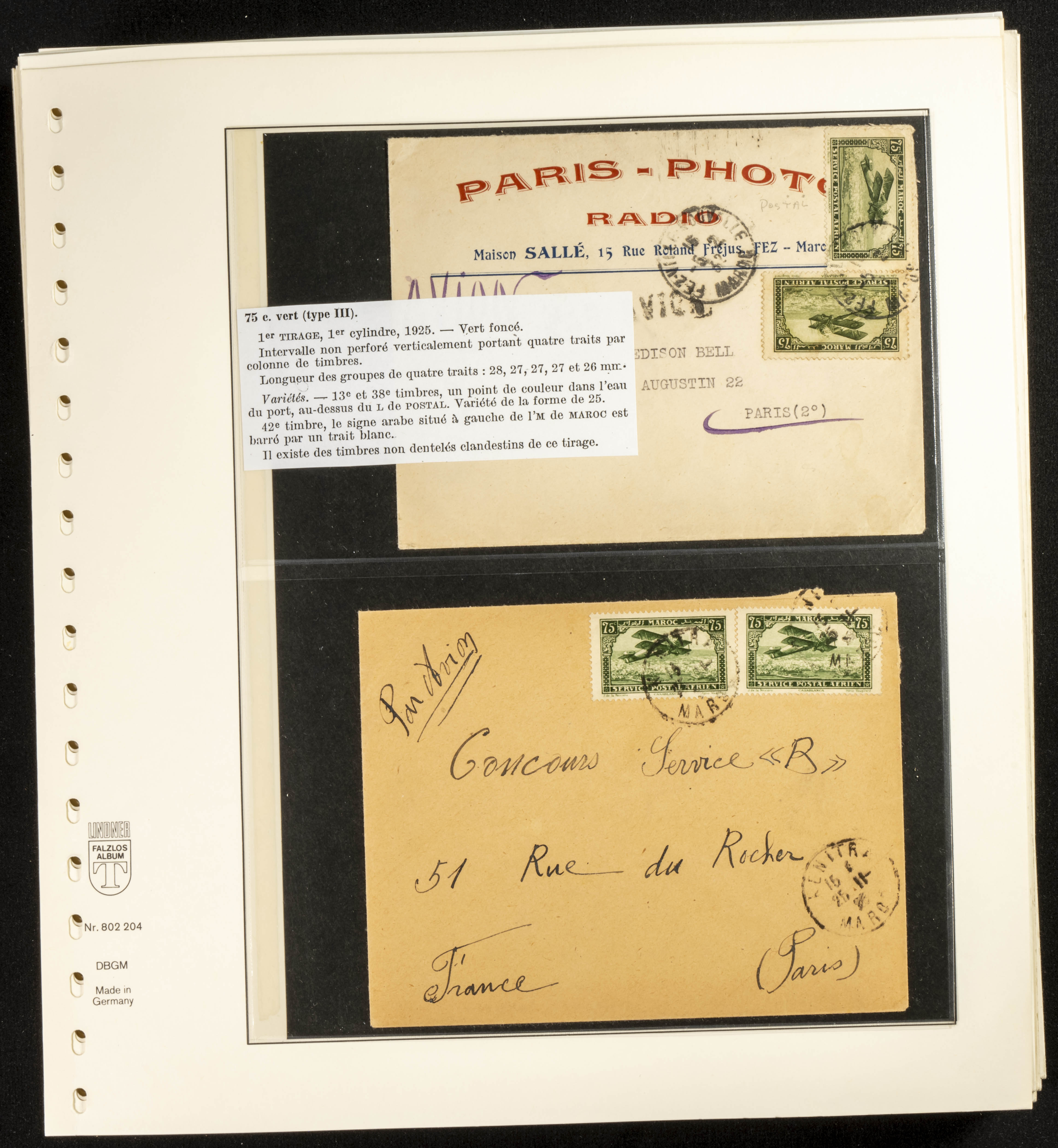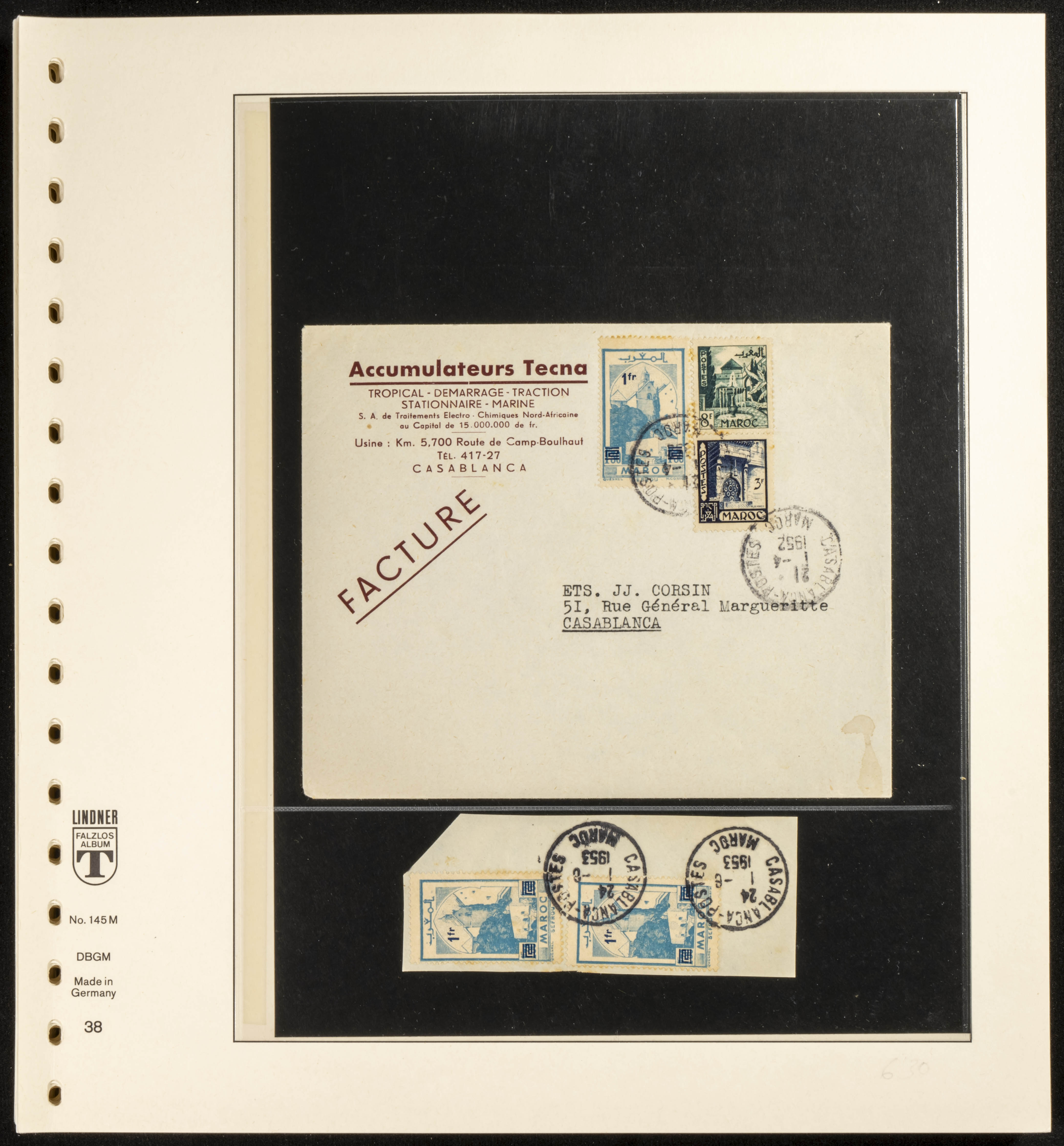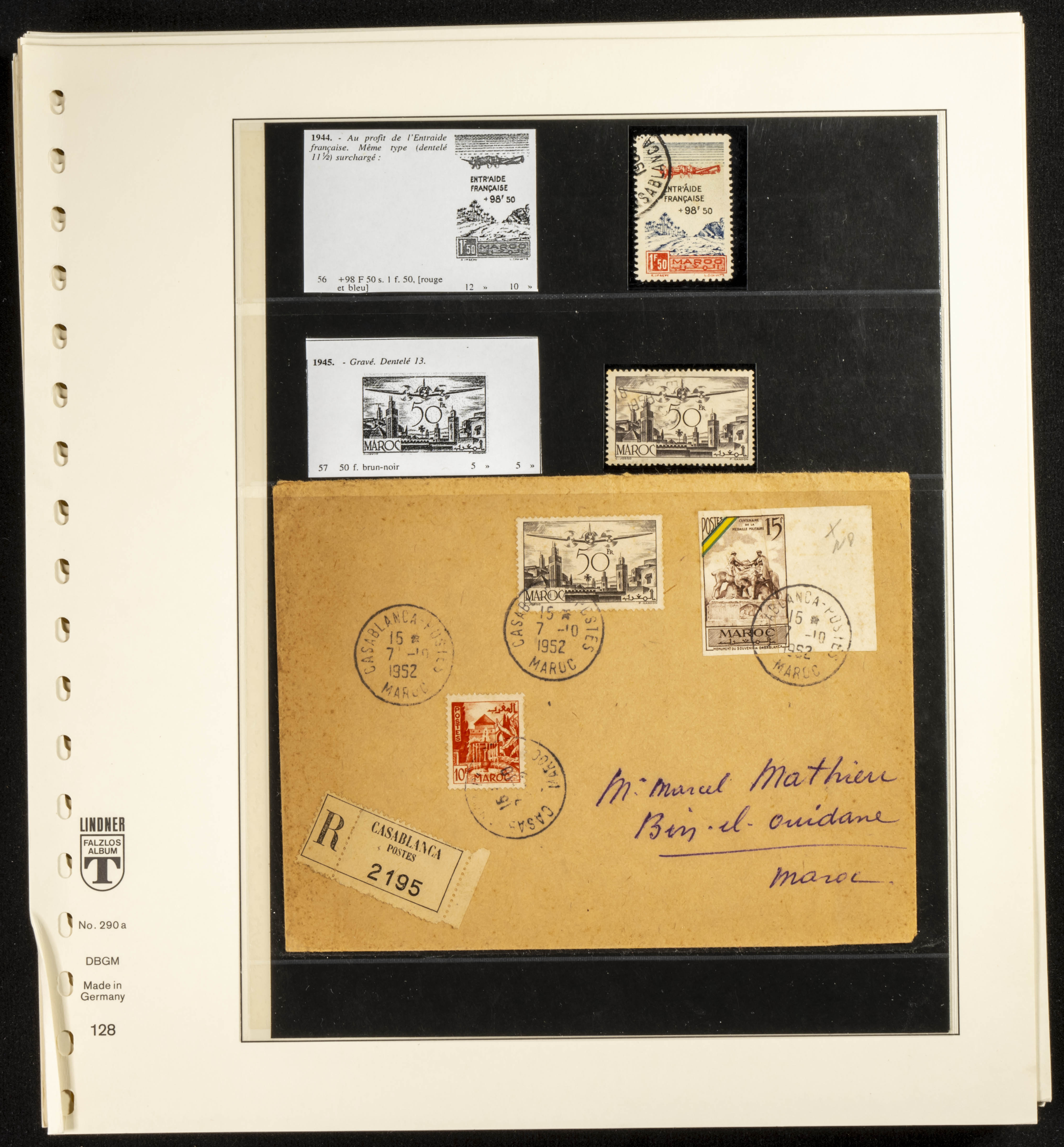 (circa 1891). Spectacular collection of used loose stamps and Postal History of French Morocco between 1891 and 1957. Includes early issues of French stamps with Moroccan postmarks, hundreds of circulated letters and postcards, some sent by registered mail, many with varied letterheads and unusual postage, hundreds of stamps with diverse postmarks (organized by issue alongside the letters), machine-printed postage, airmail, etc. EXAMINATION IS ESSENTIAL.