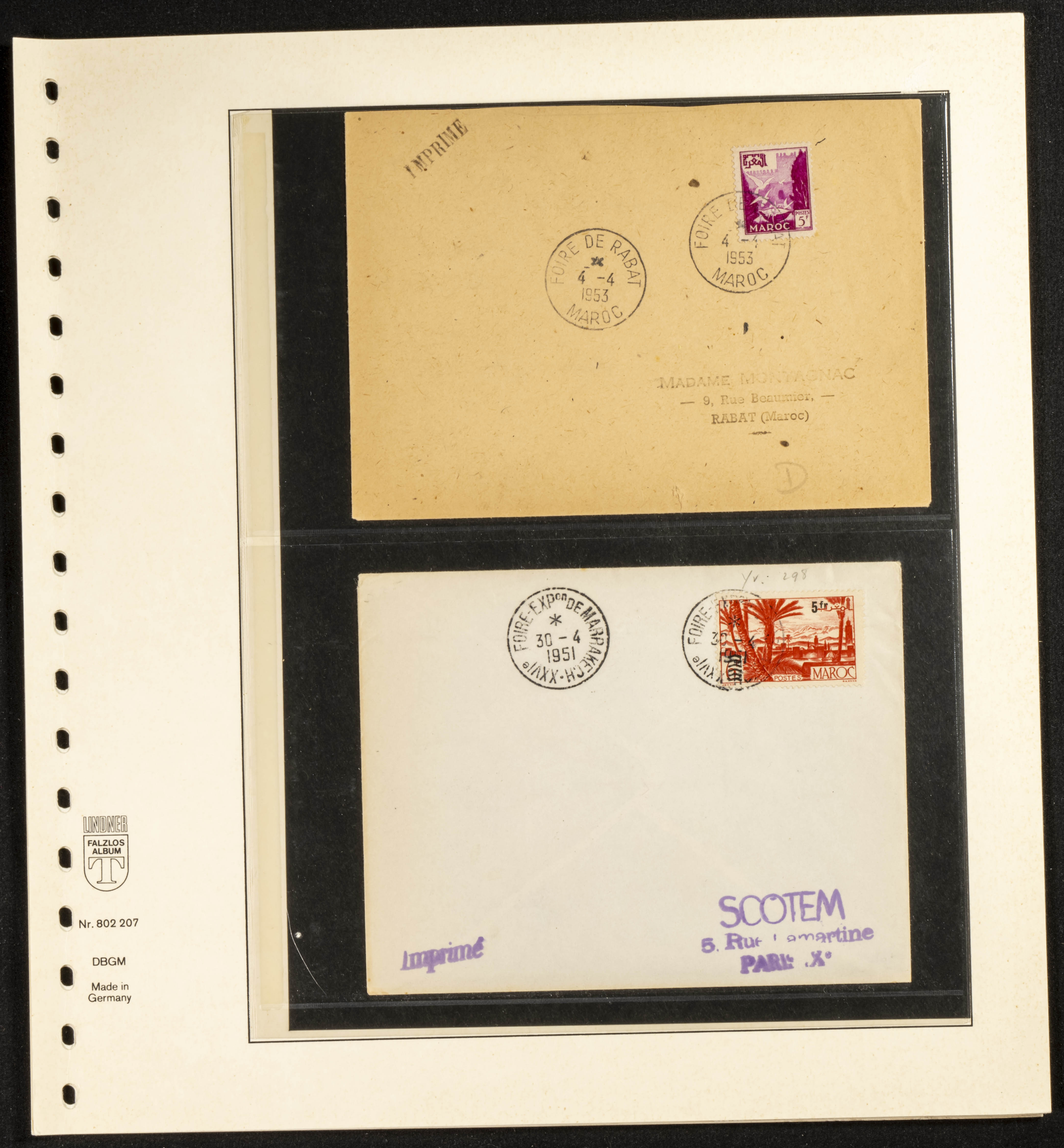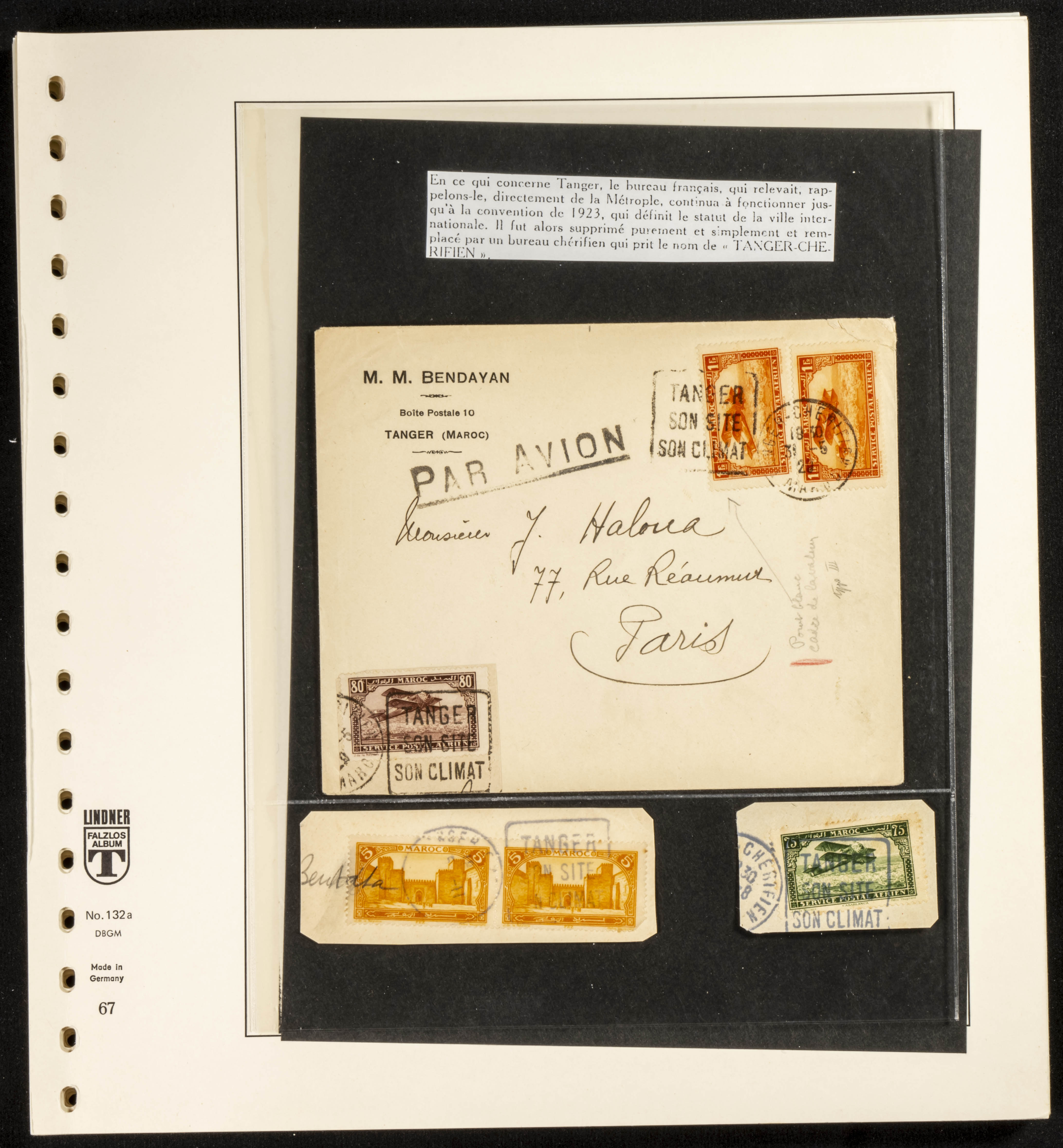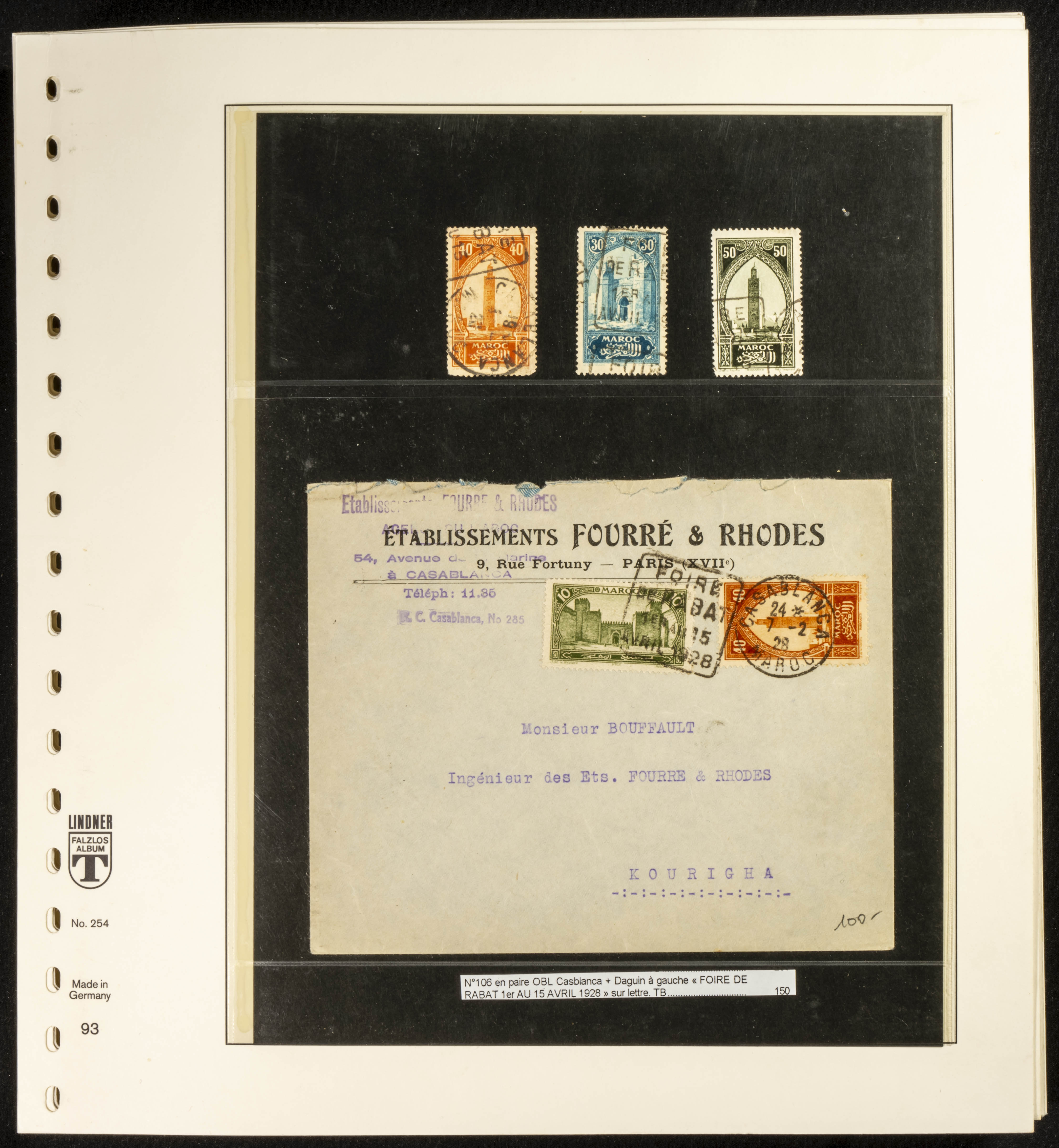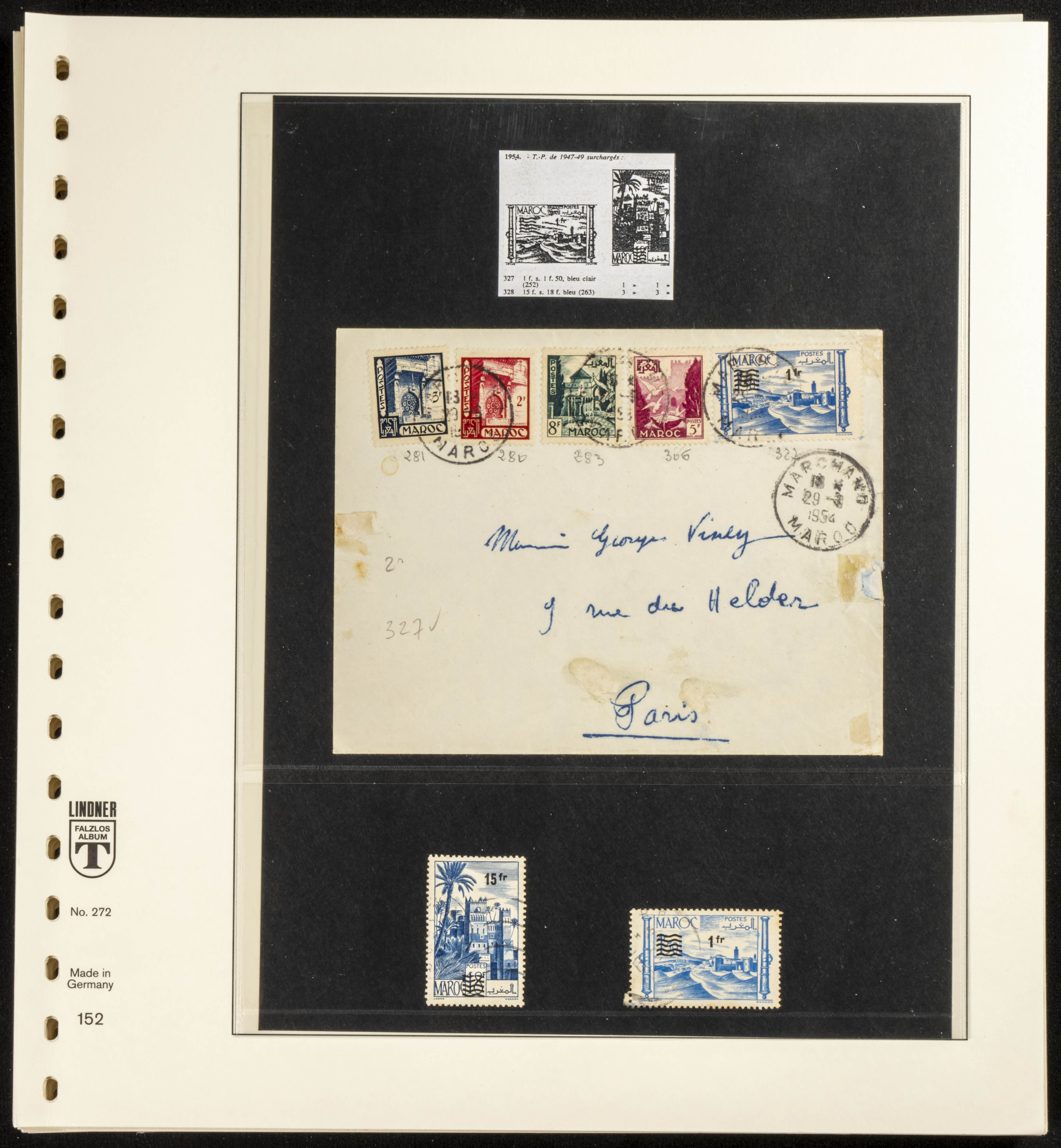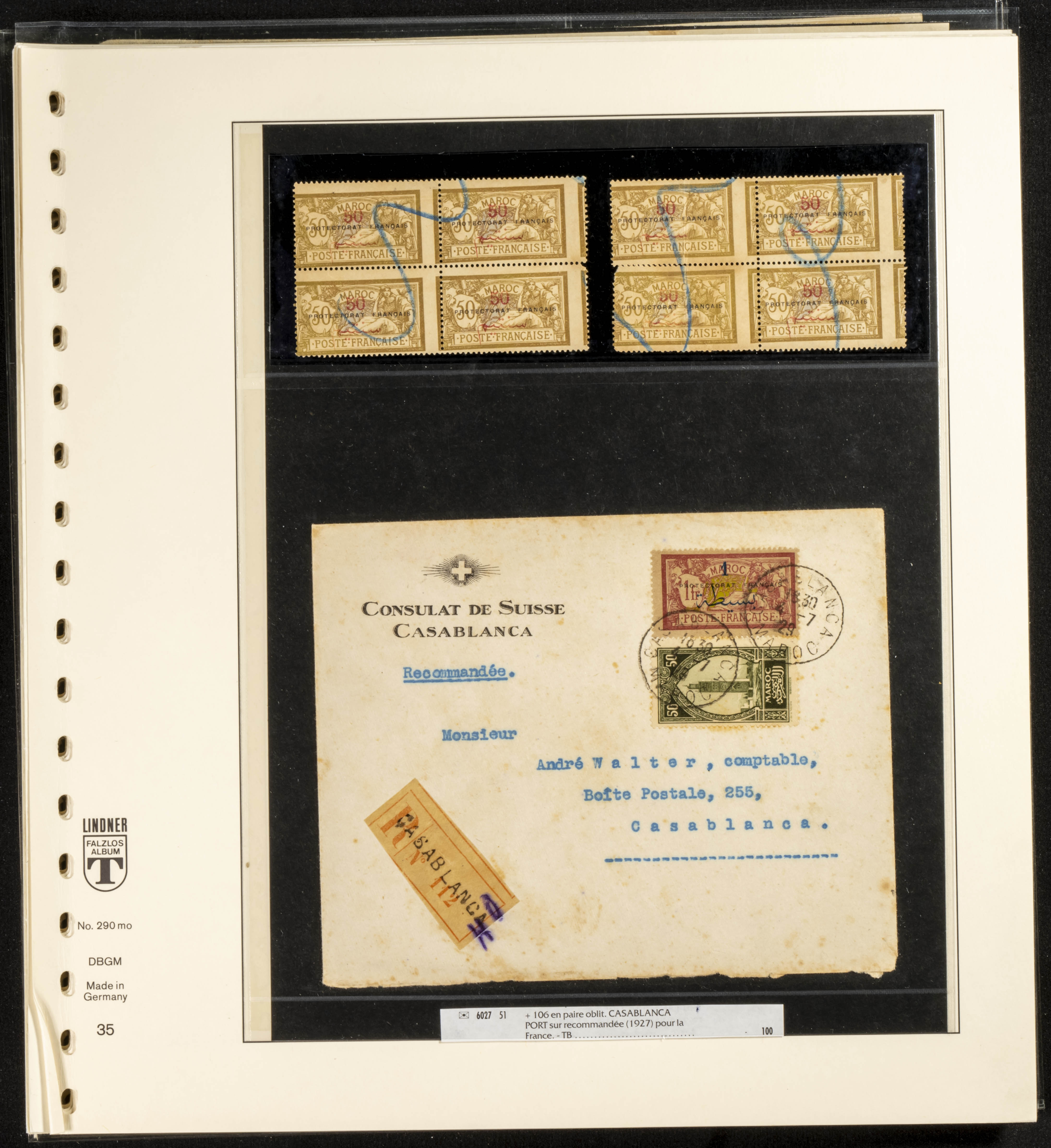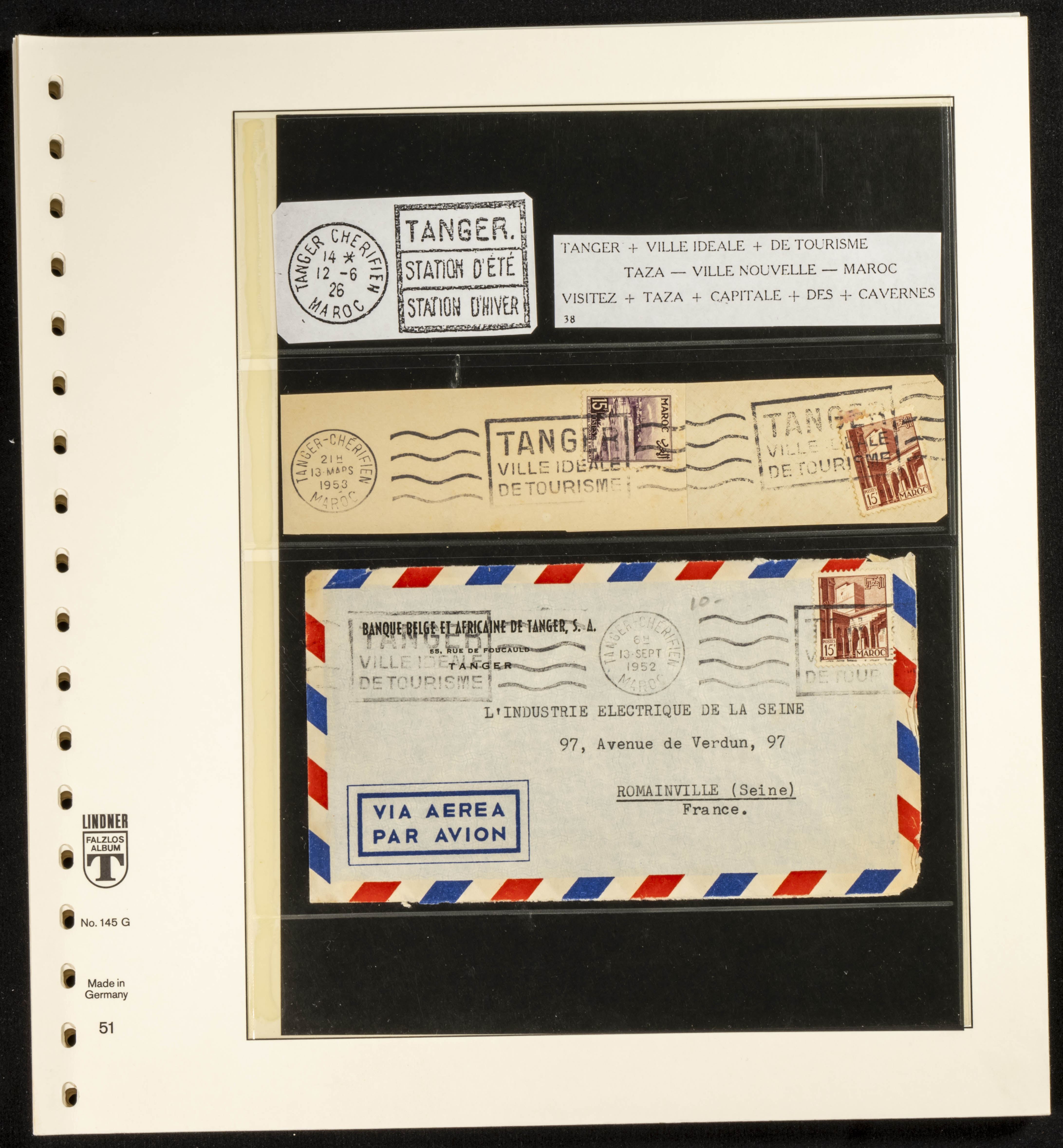 (circa 1891). Spectacular collection of used loose stamps and Postal History of French Morocco between 1891 and 1957. Includes early issues of French stamps with Moroccan postmarks, hundreds of circulated letters and postcards, some sent by registered mail, many with varied letterheads and unusual postage, hundreds of stamps with diverse postmarks (organized by issue alongside the letters), machine-printed postage, airmail, etc. EXAMINATION IS ESSENTIAL.