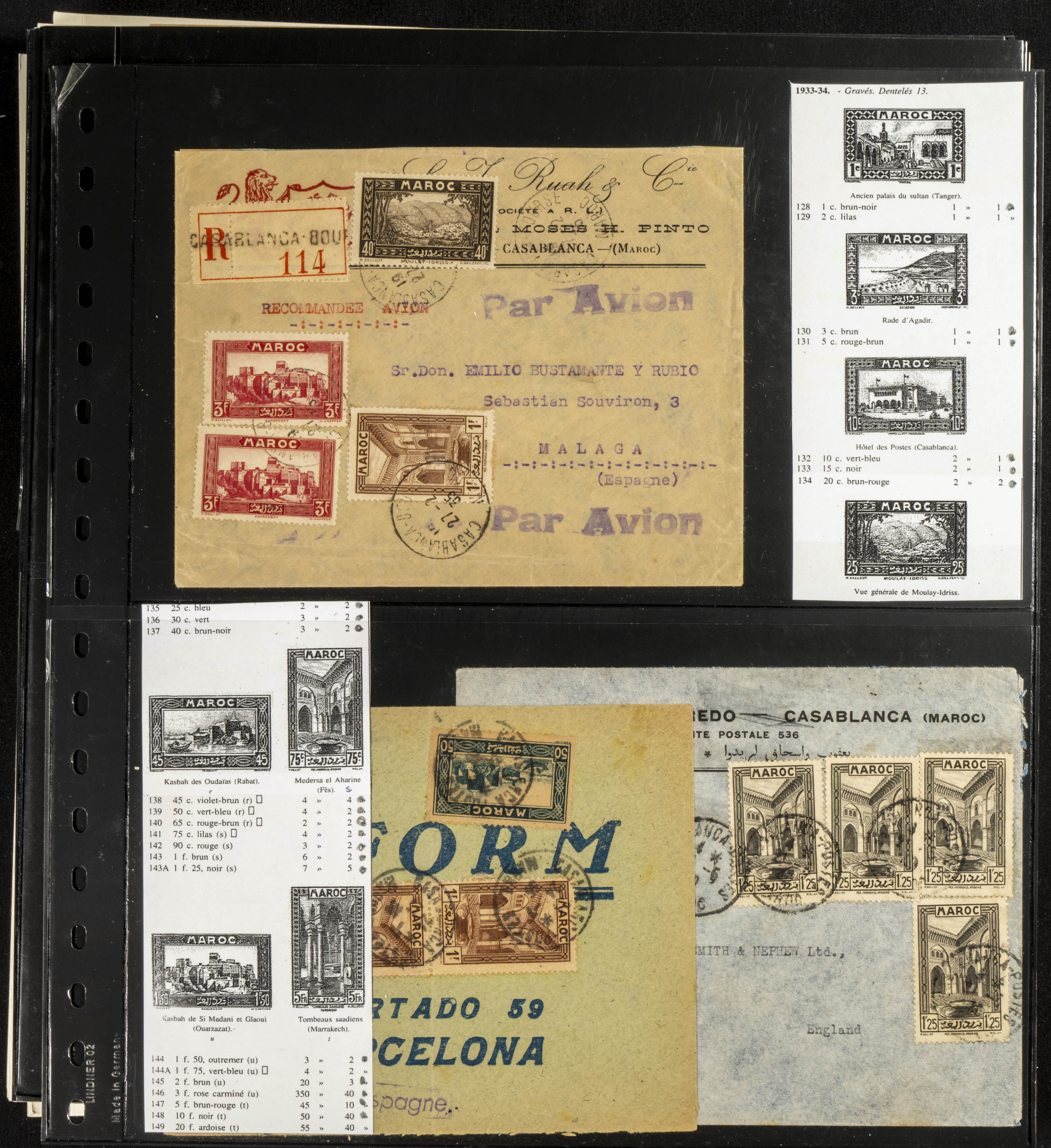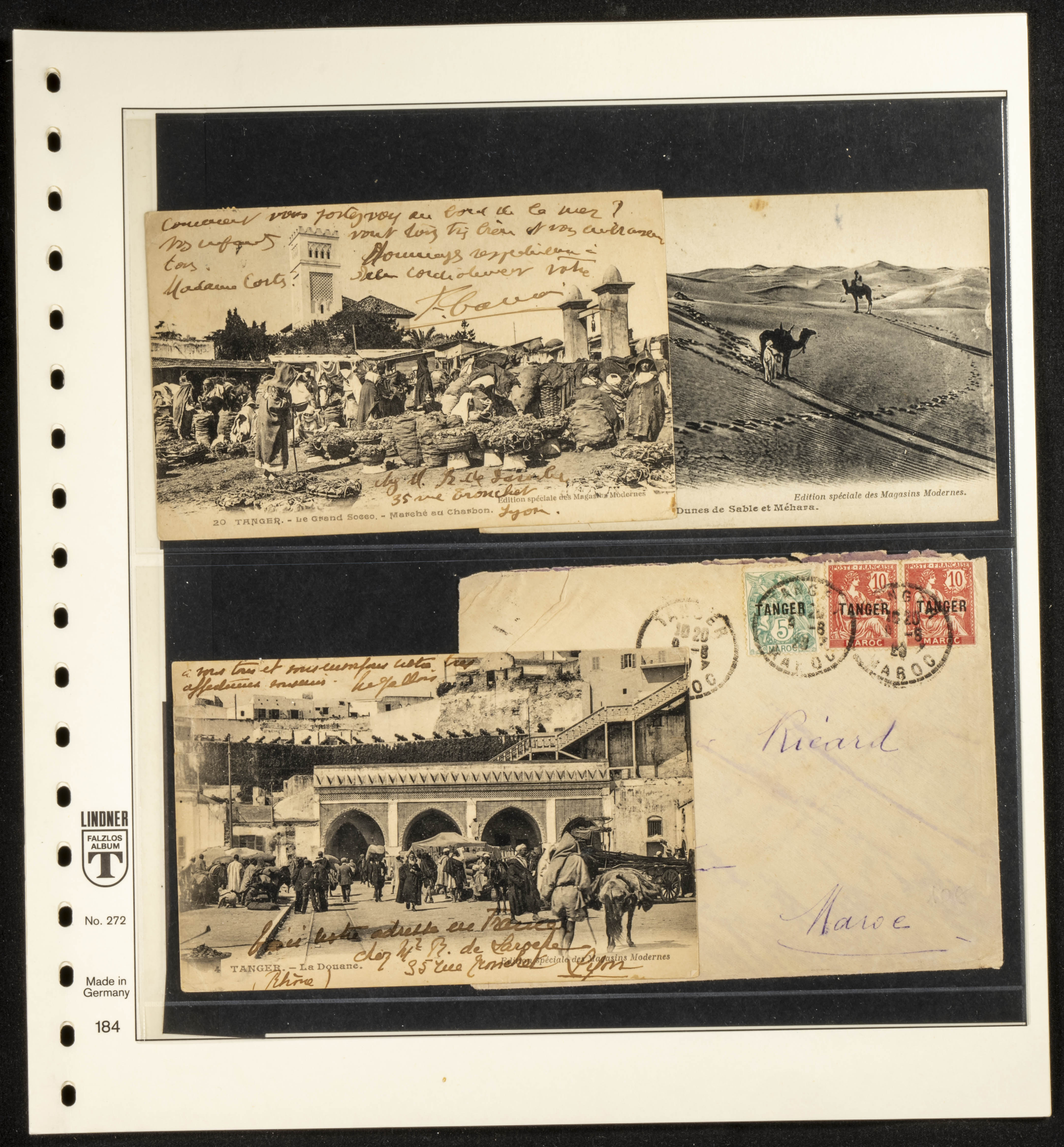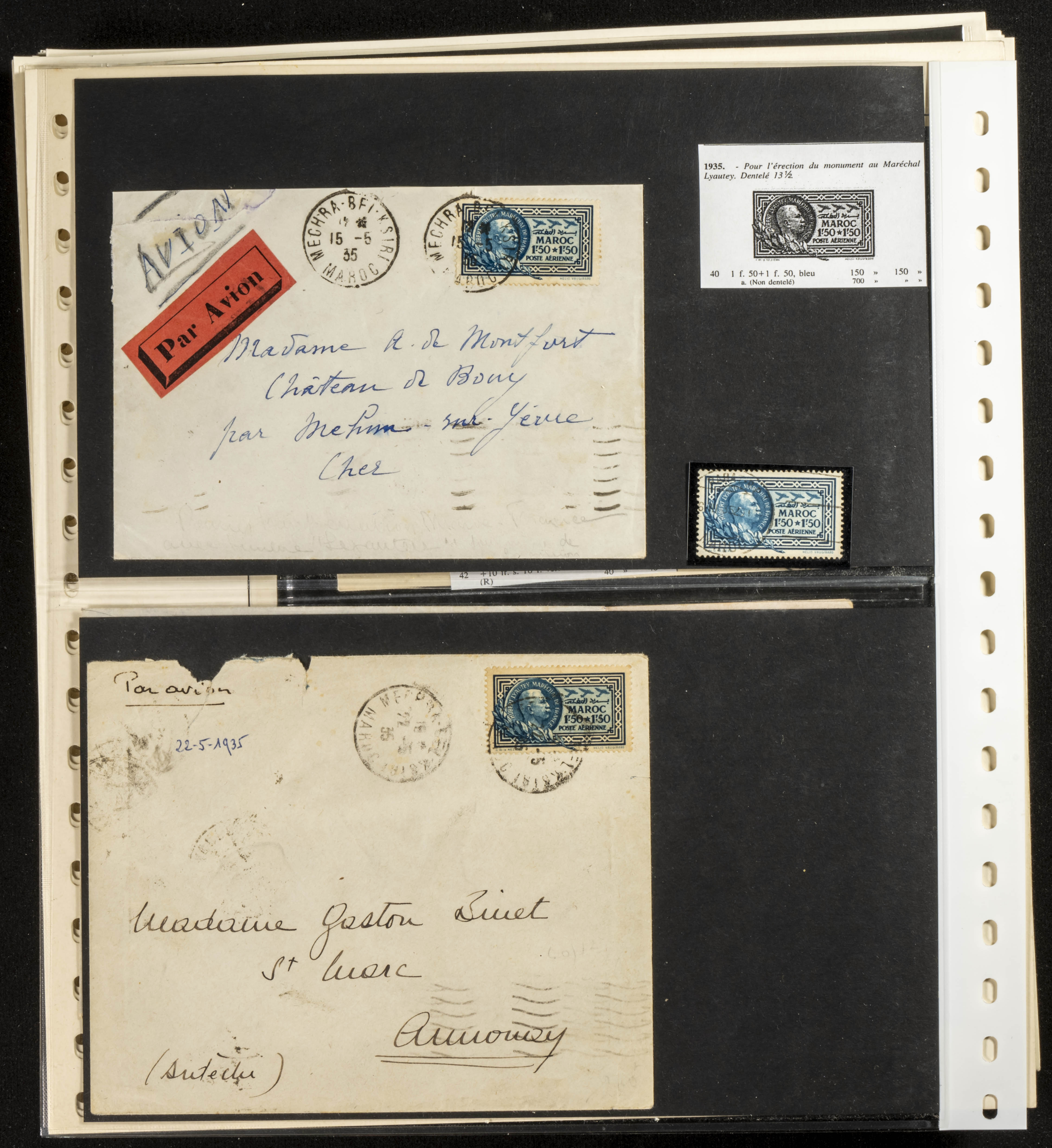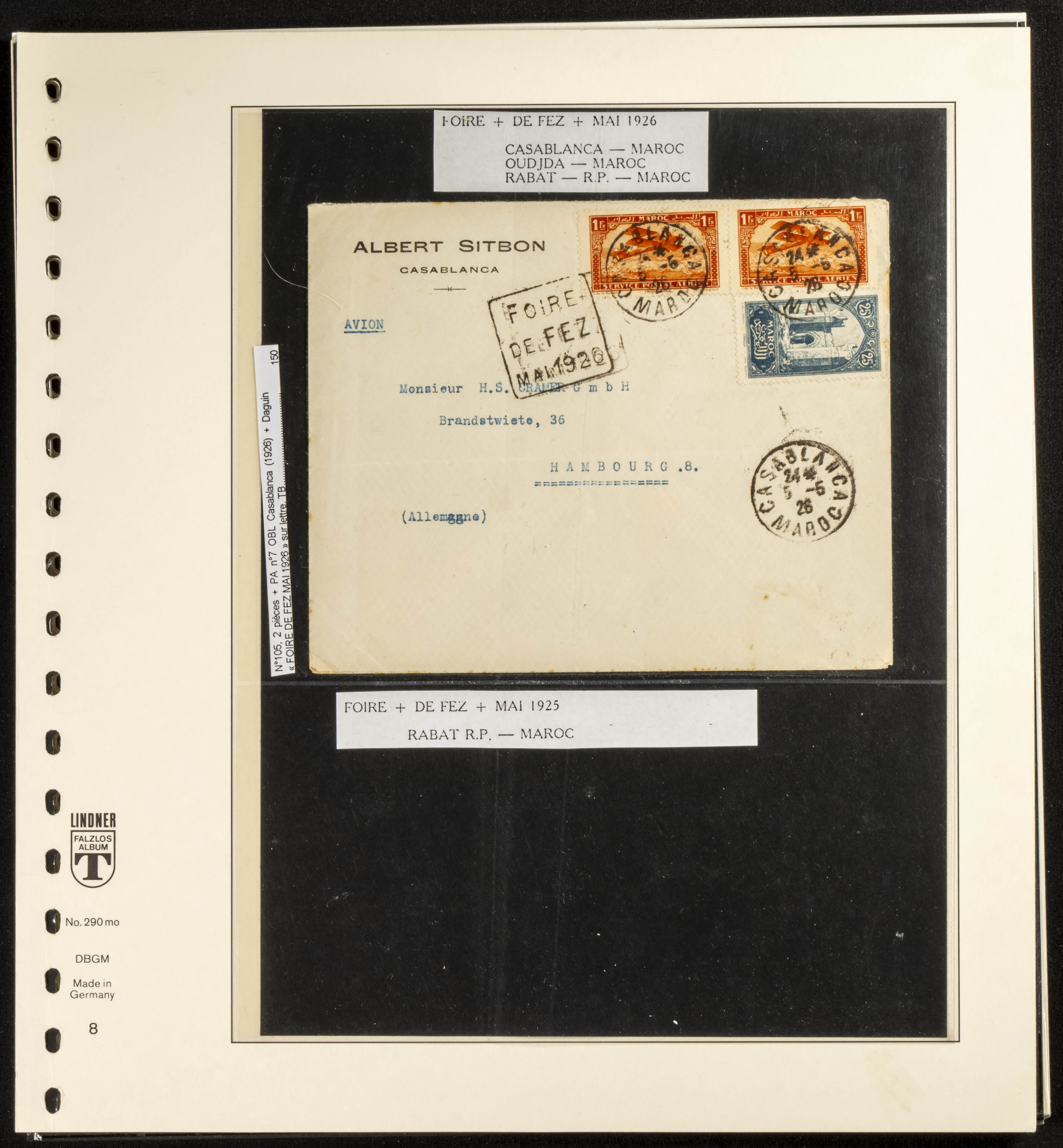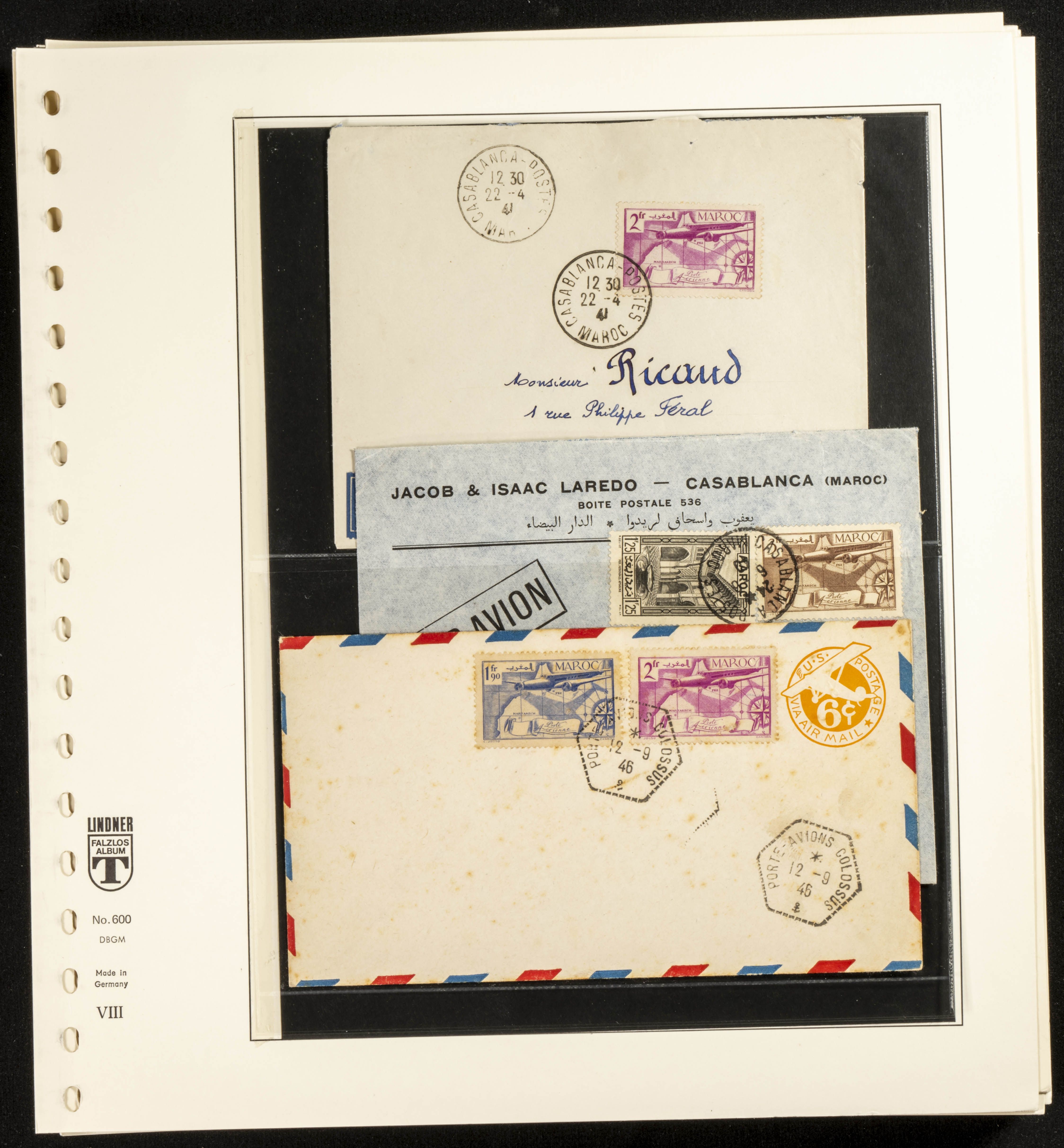 (circa 1891). Spectacular collection of used loose stamps and Postal History of French Morocco between 1891 and 1957. Includes early issues of French stamps with Moroccan postmarks, hundreds of circulated letters and postcards, some sent by registered mail, many with varied letterheads and unusual postage, hundreds of stamps with diverse postmarks (organized by issue alongside the letters), machine-printed postage, airmail, etc. EXAMINATION IS ESSENTIAL.