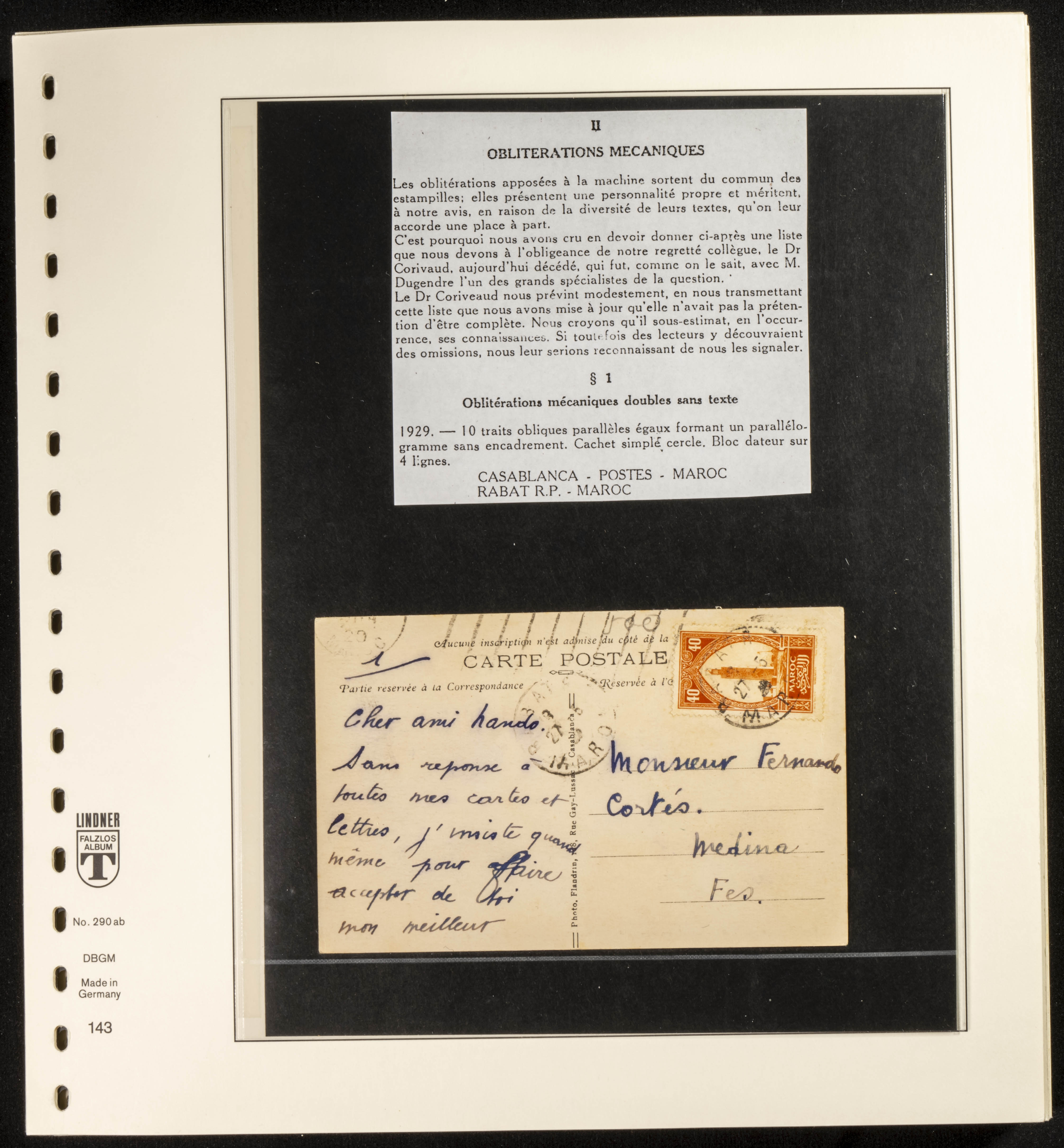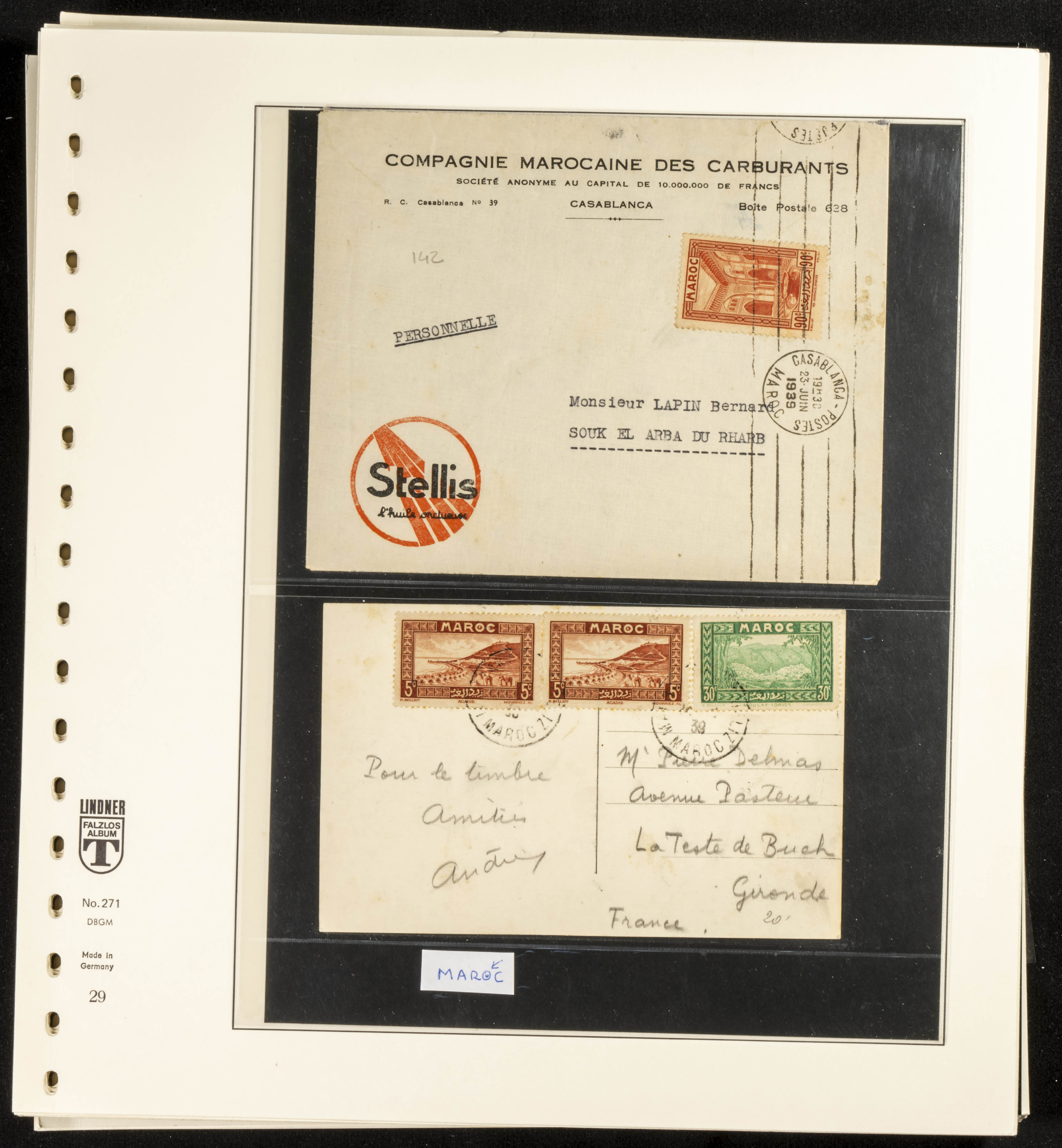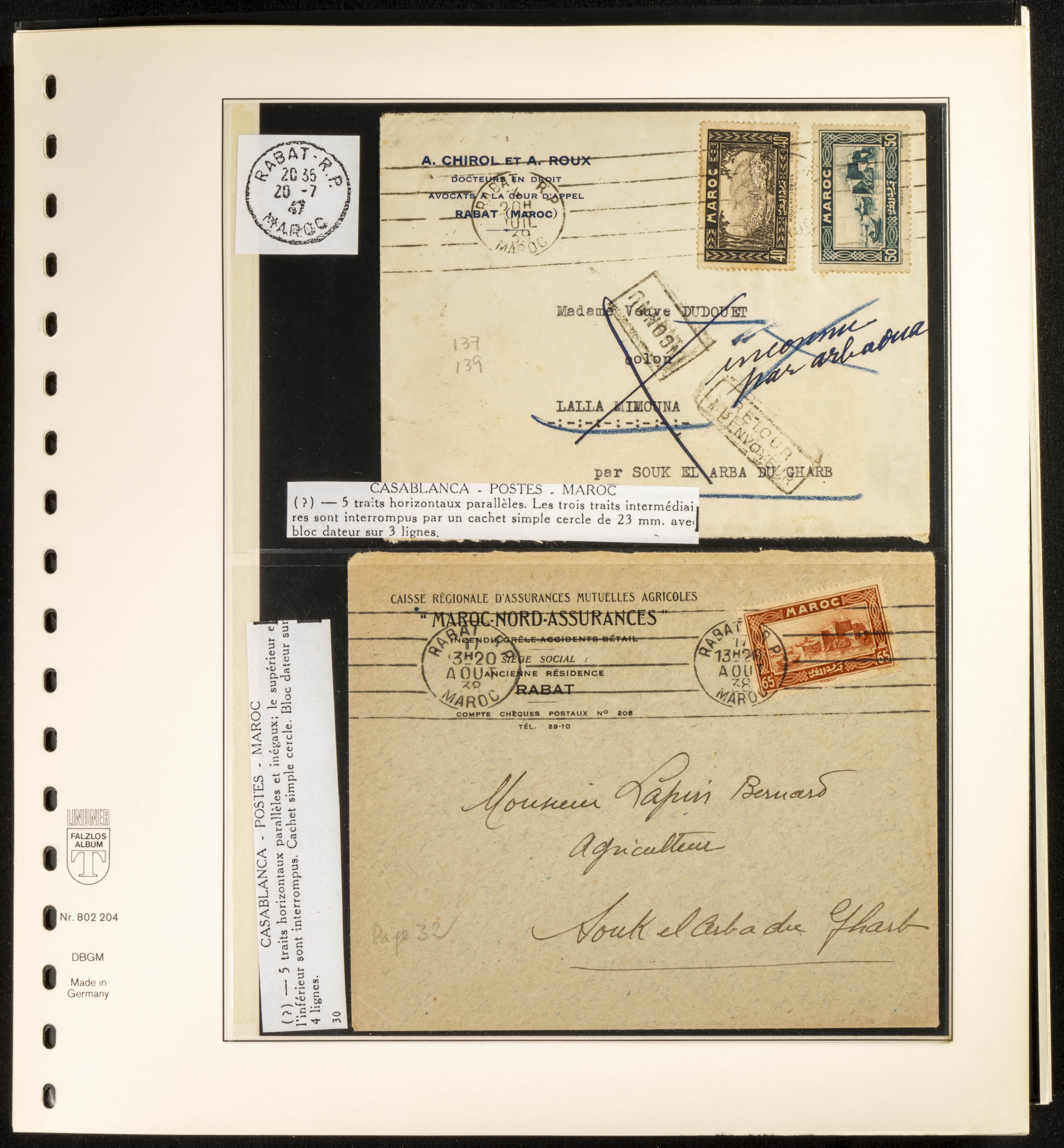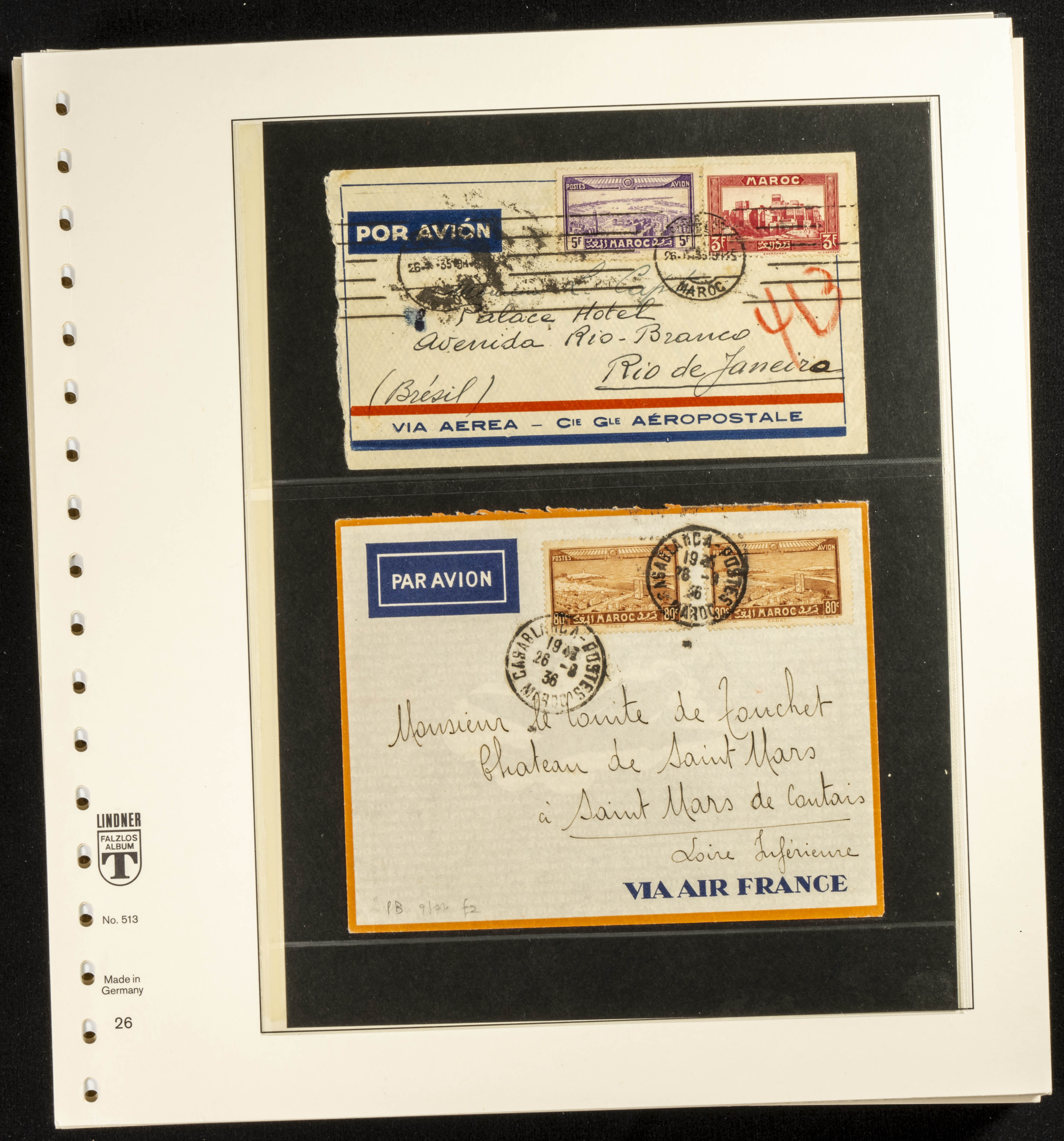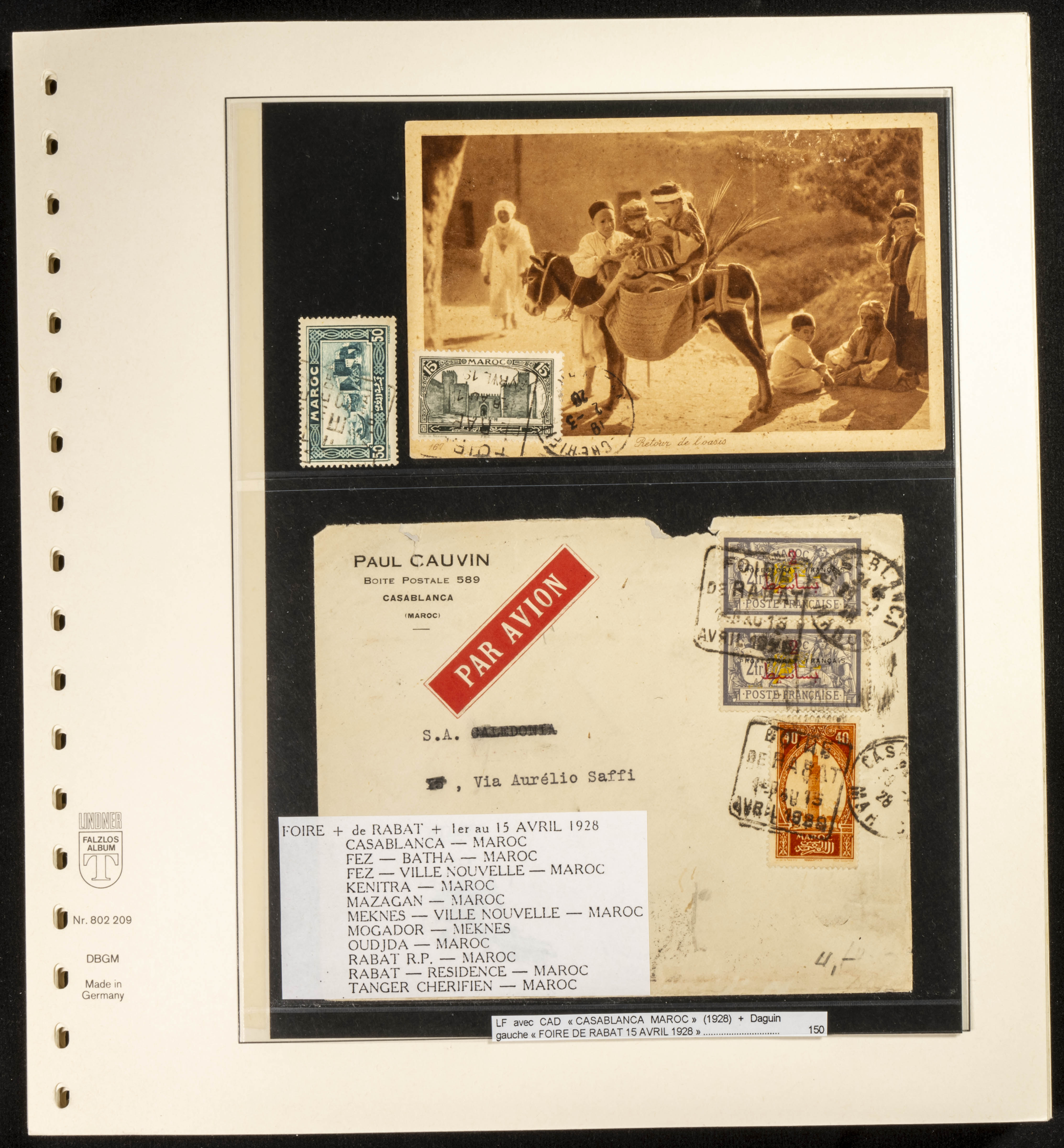 (circa 1891). Spectacular collection of used loose stamps and Postal History of French Morocco between 1891 and 1957. Includes early issues of French stamps with Moroccan postmarks, hundreds of circulated letters and postcards, some sent by registered mail, many with varied letterheads and unusual postage, hundreds of stamps with diverse postmarks (organized by issue alongside the letters), machine-printed postage, airmail, etc. EXAMINATION IS ESSENTIAL.