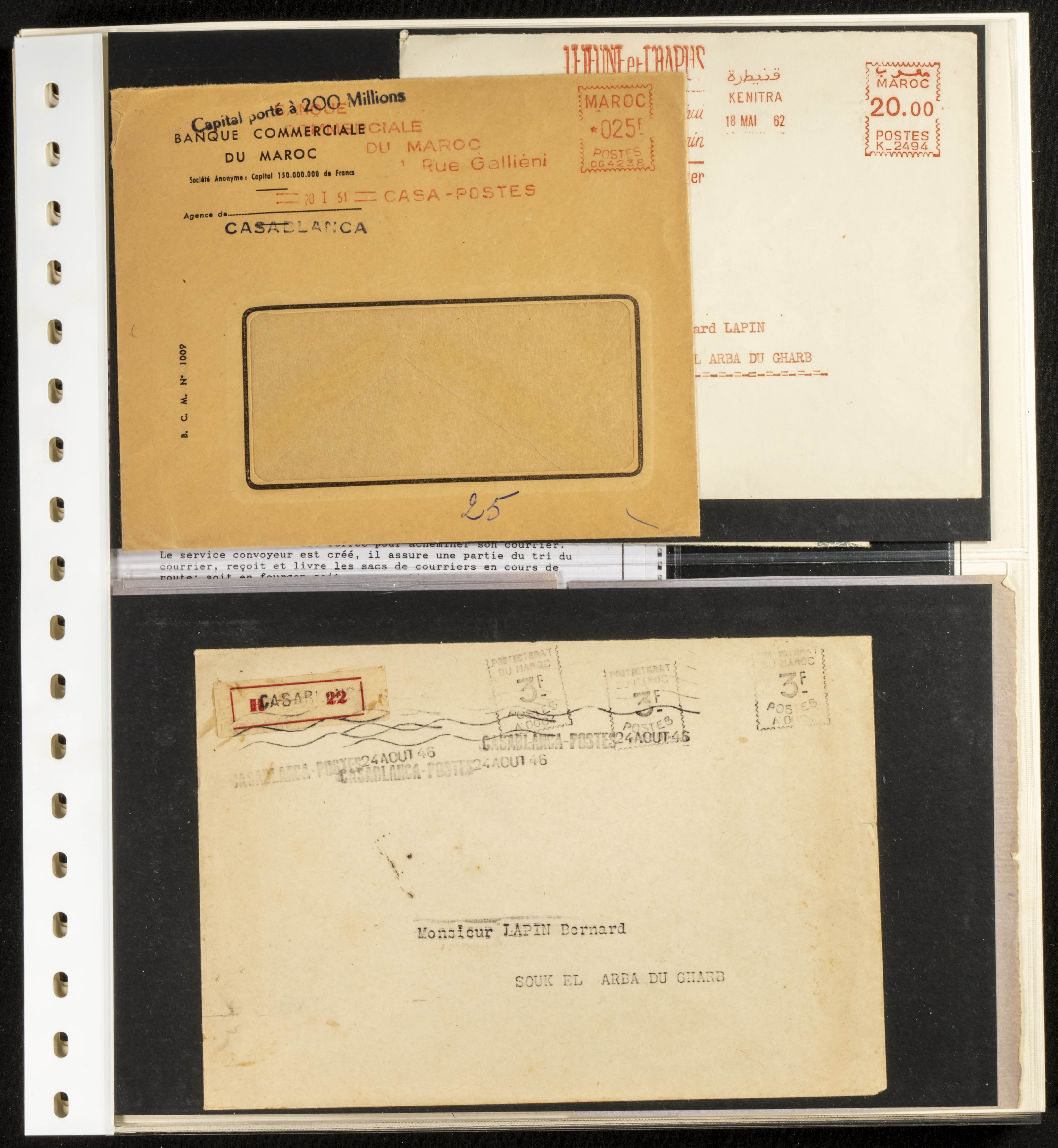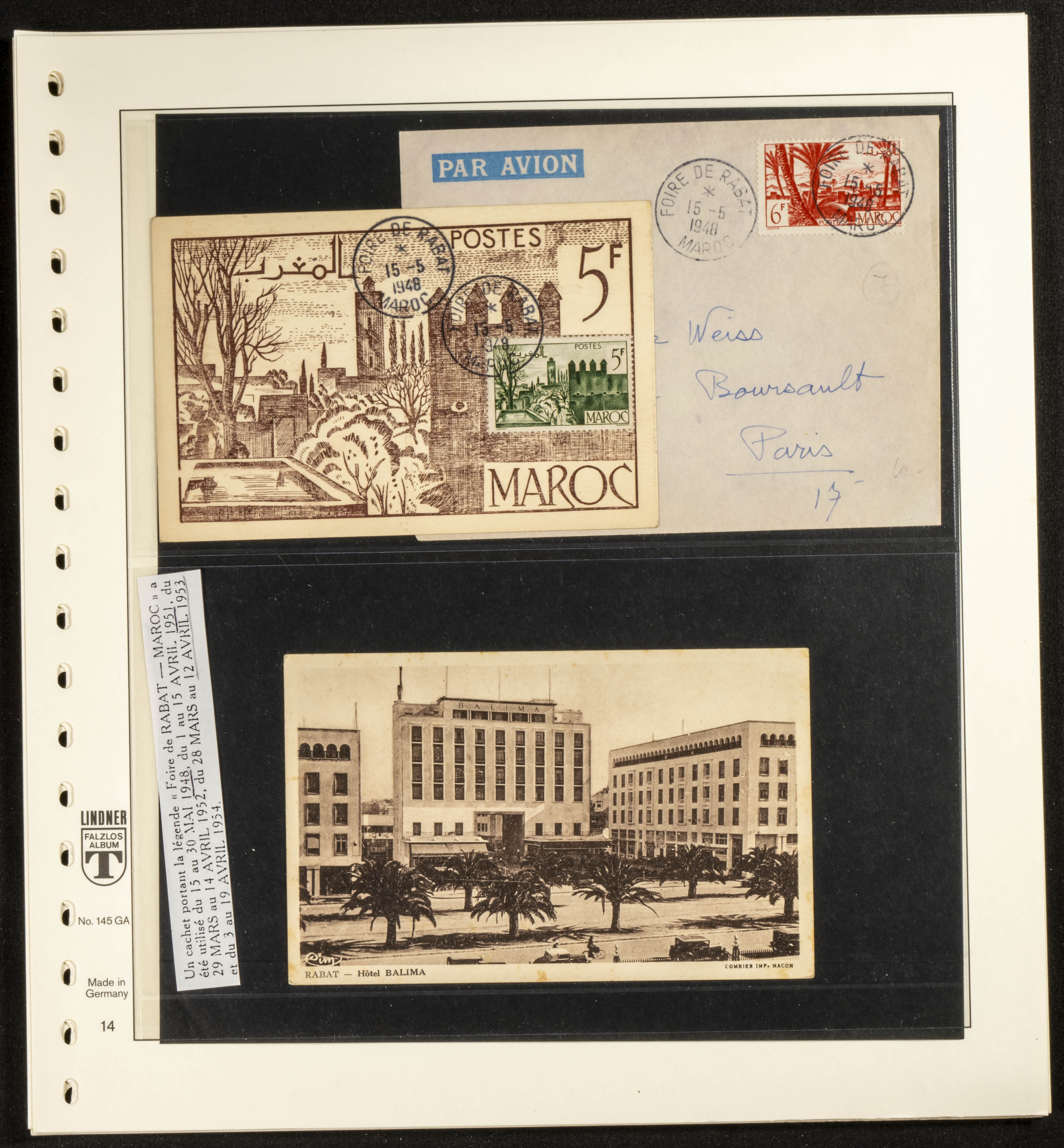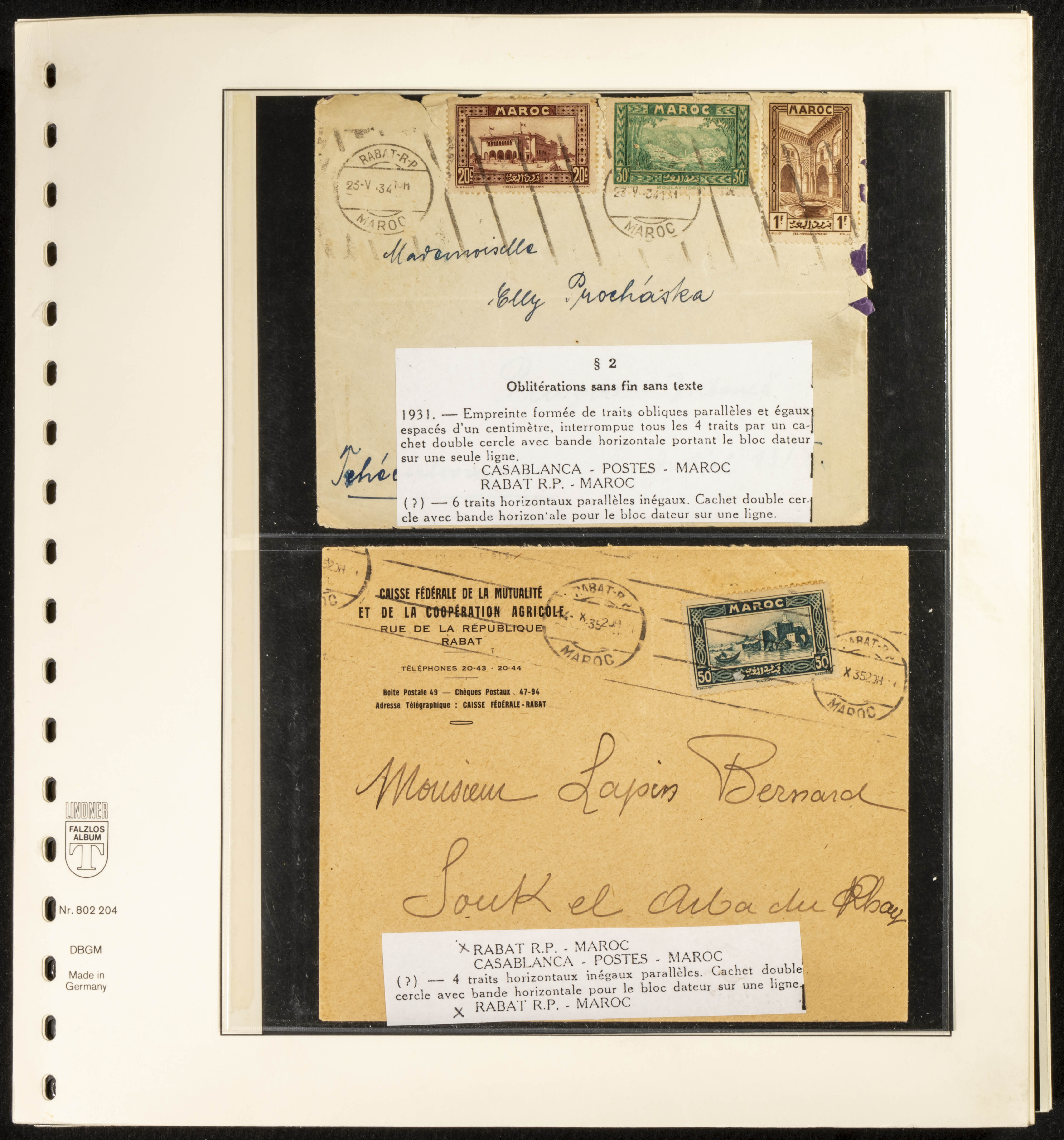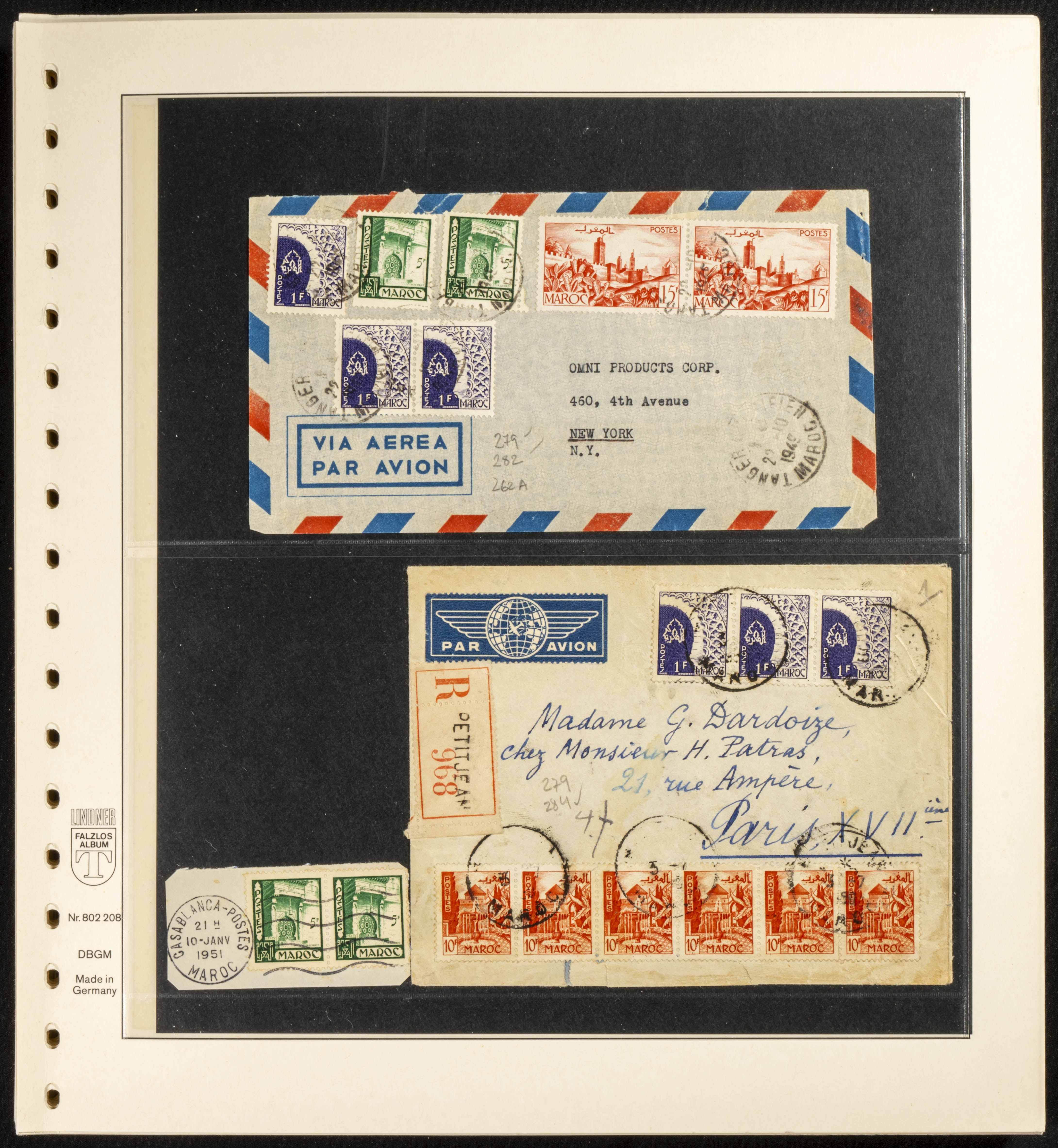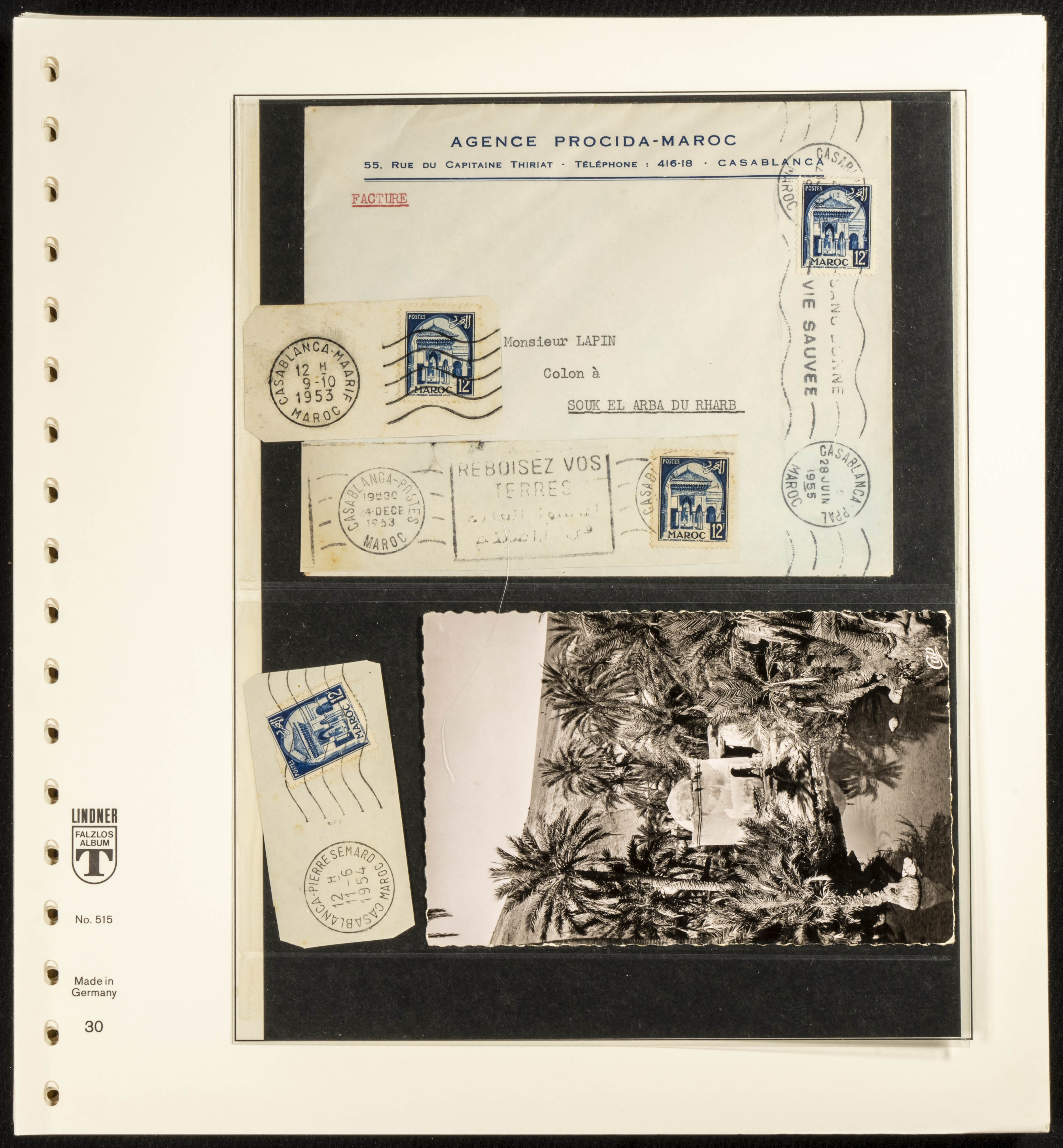 (circa 1891). Spectacular collection of used loose stamps and Postal History of French Morocco between 1891 and 1957. Includes early issues of French stamps with Moroccan postmarks, hundreds of circulated letters and postcards, some sent by registered mail, many with varied letterheads and unusual postage, hundreds of stamps with diverse postmarks (organized by issue alongside the letters), machine-printed postage, airmail, etc. EXAMINATION IS ESSENTIAL.