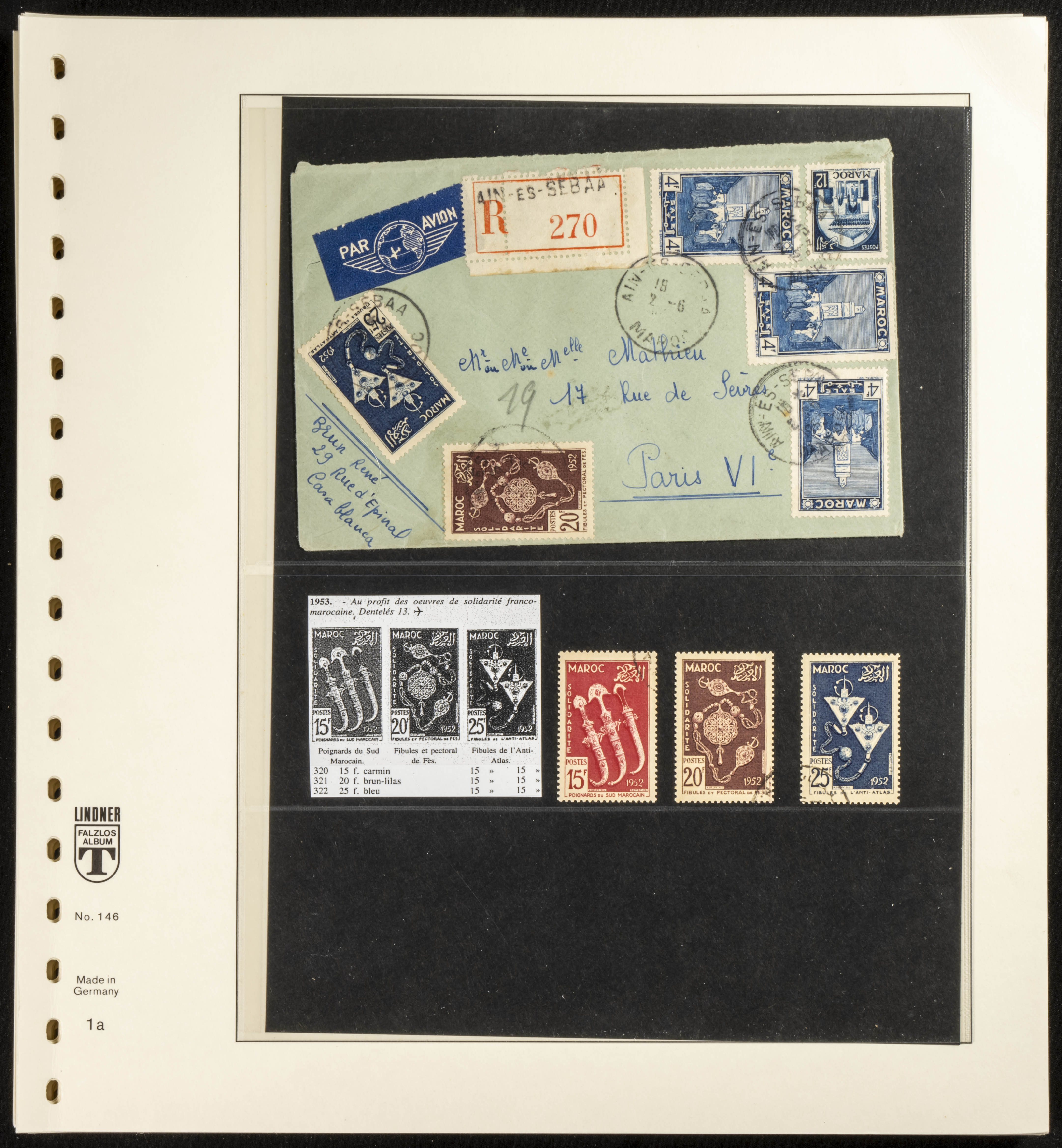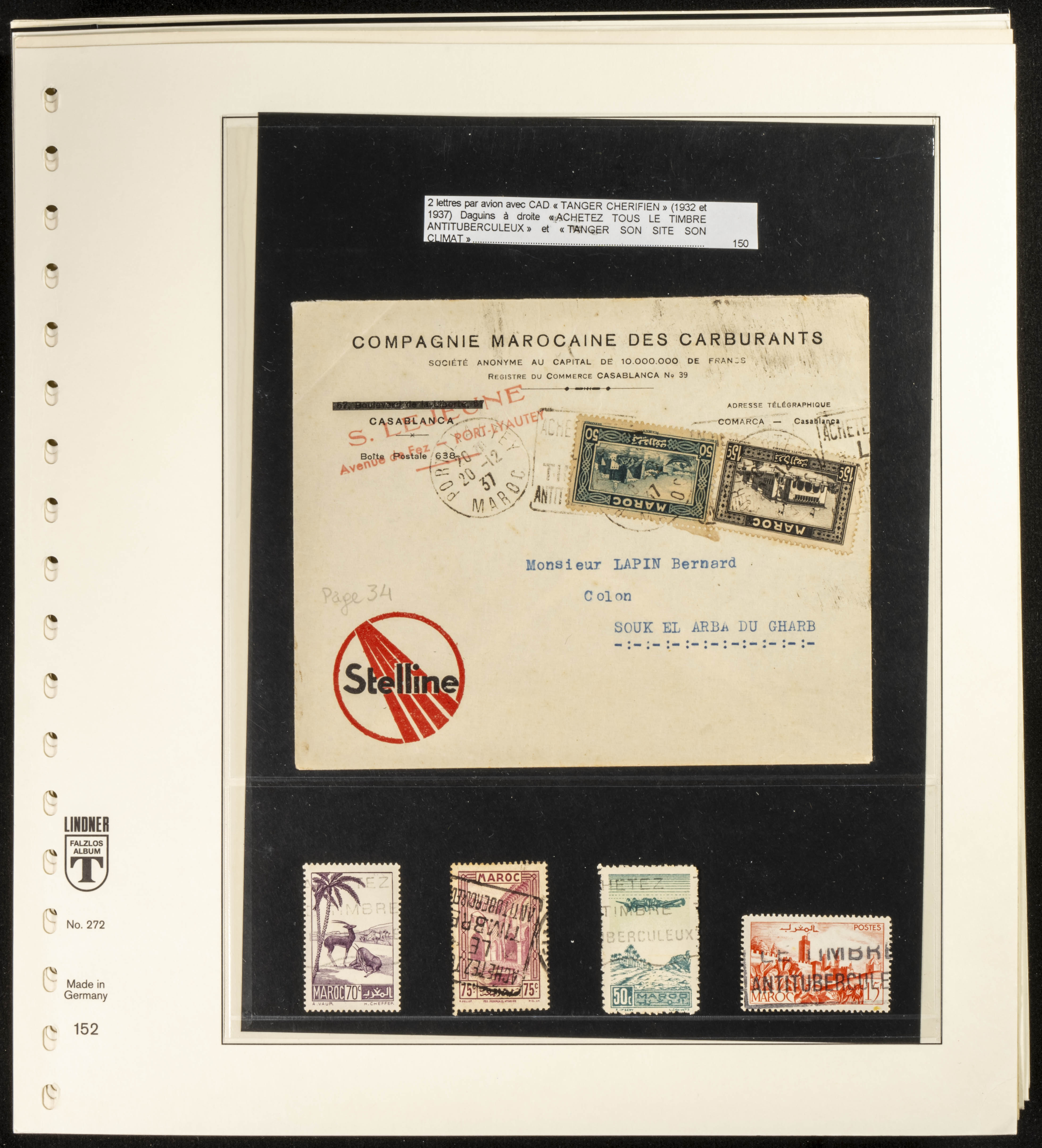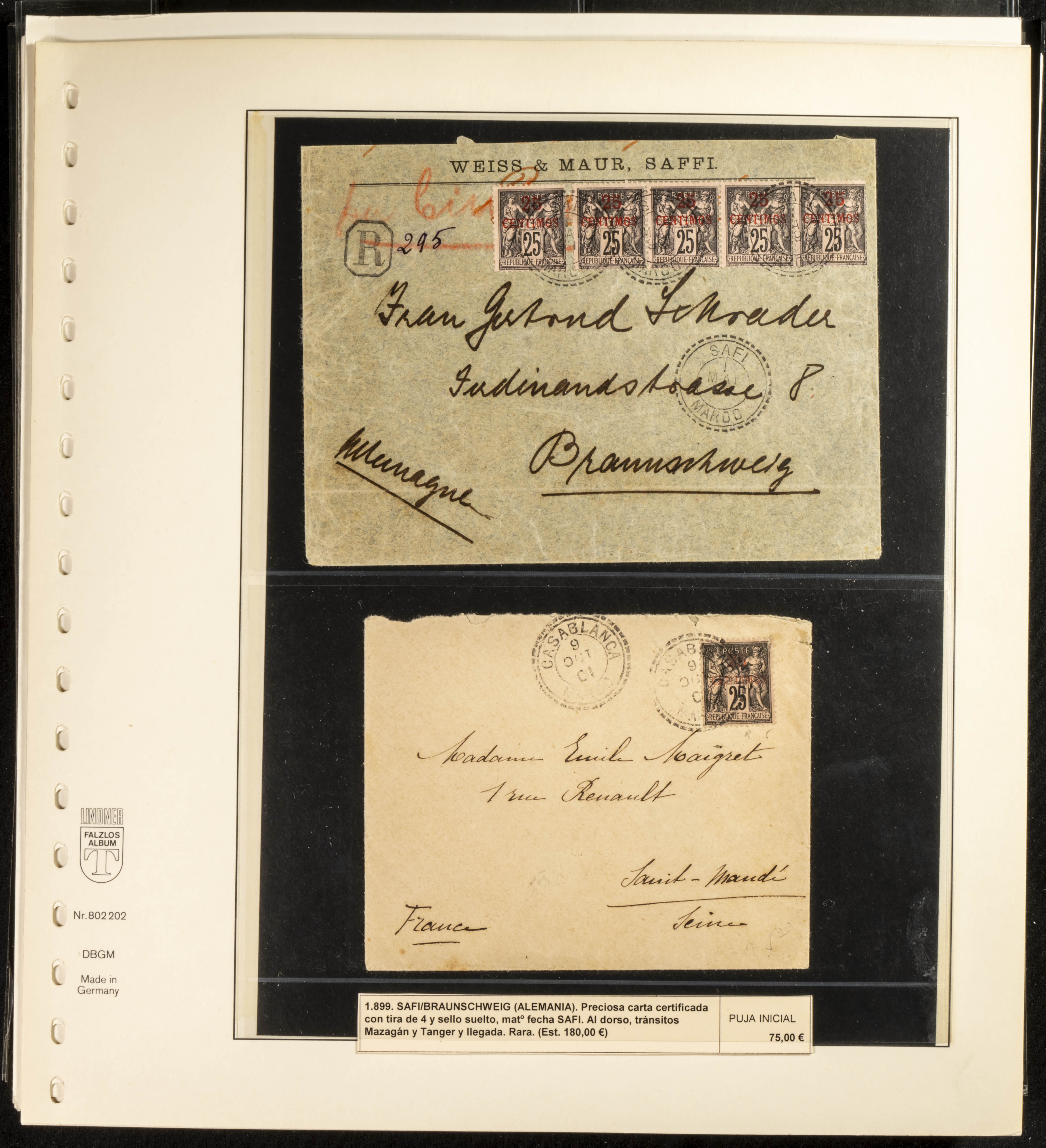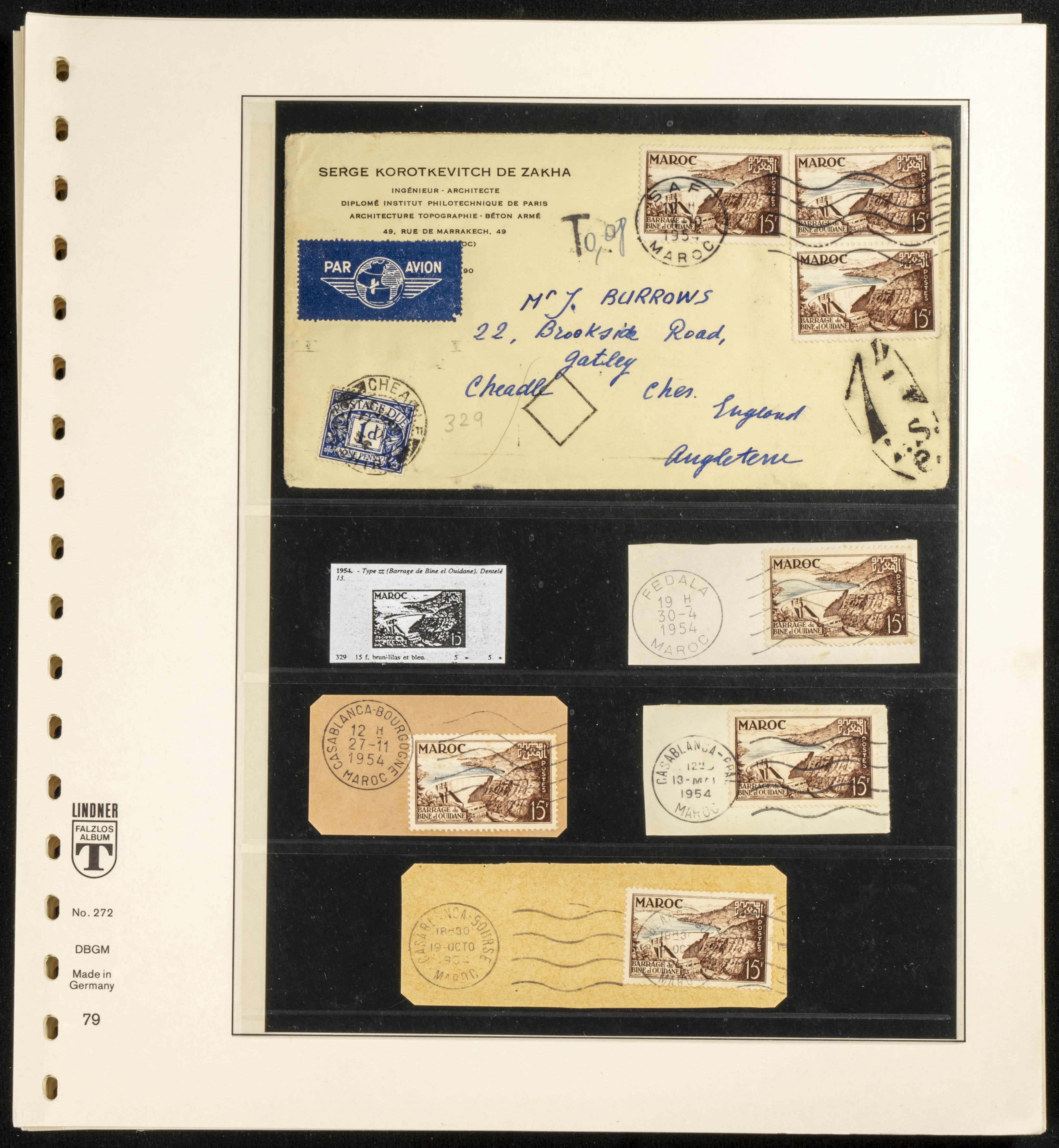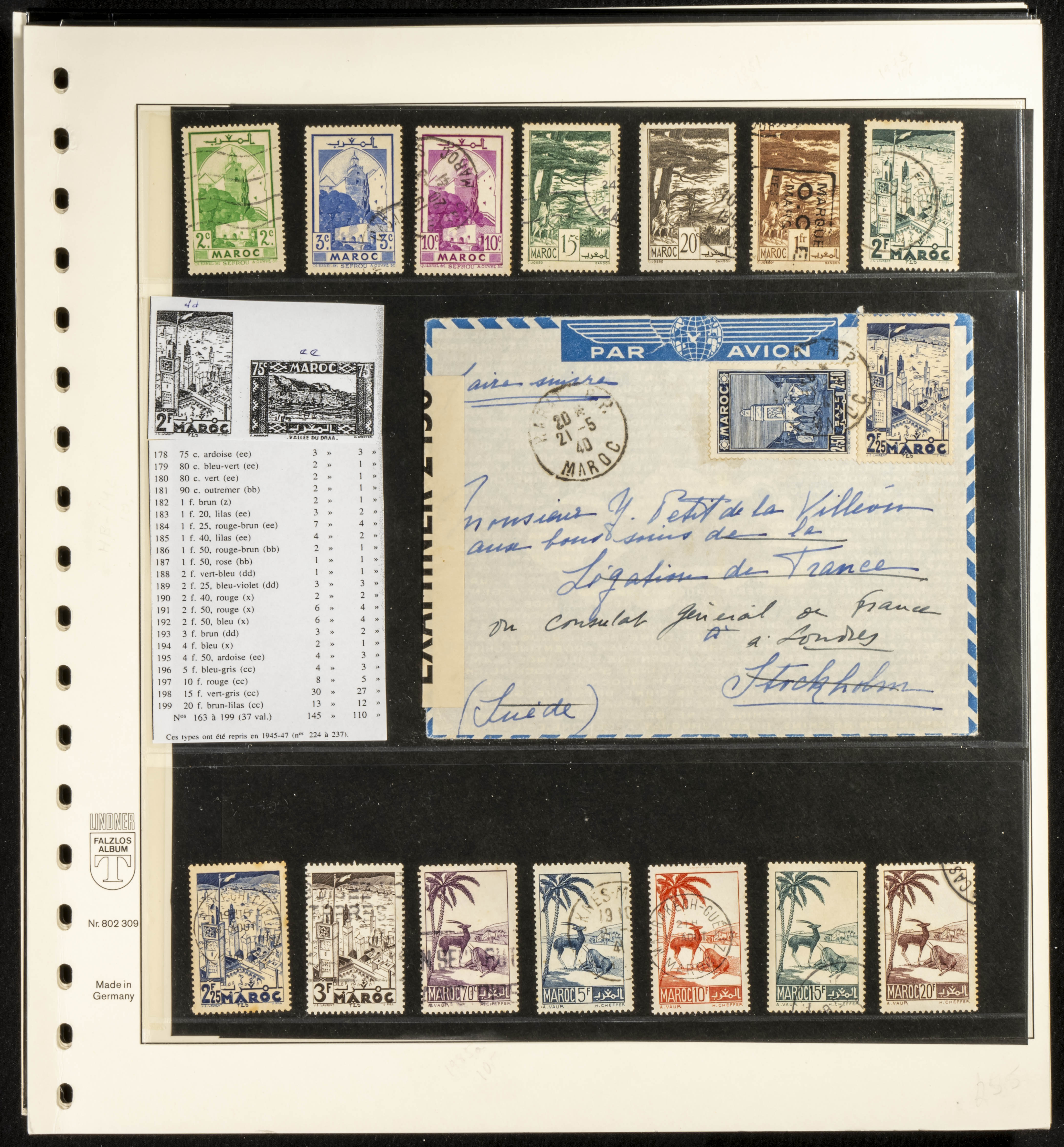 (circa 1891). Spectacular collection of used loose stamps and Postal History of French Morocco between 1891 and 1957. Includes early issues of French stamps with Moroccan postmarks, hundreds of circulated letters and postcards, some sent by registered mail, many with varied letterheads and unusual postage, hundreds of stamps with diverse postmarks (organized by issue alongside the letters), machine-printed postage, airmail, etc. EXAMINATION IS ESSENTIAL.