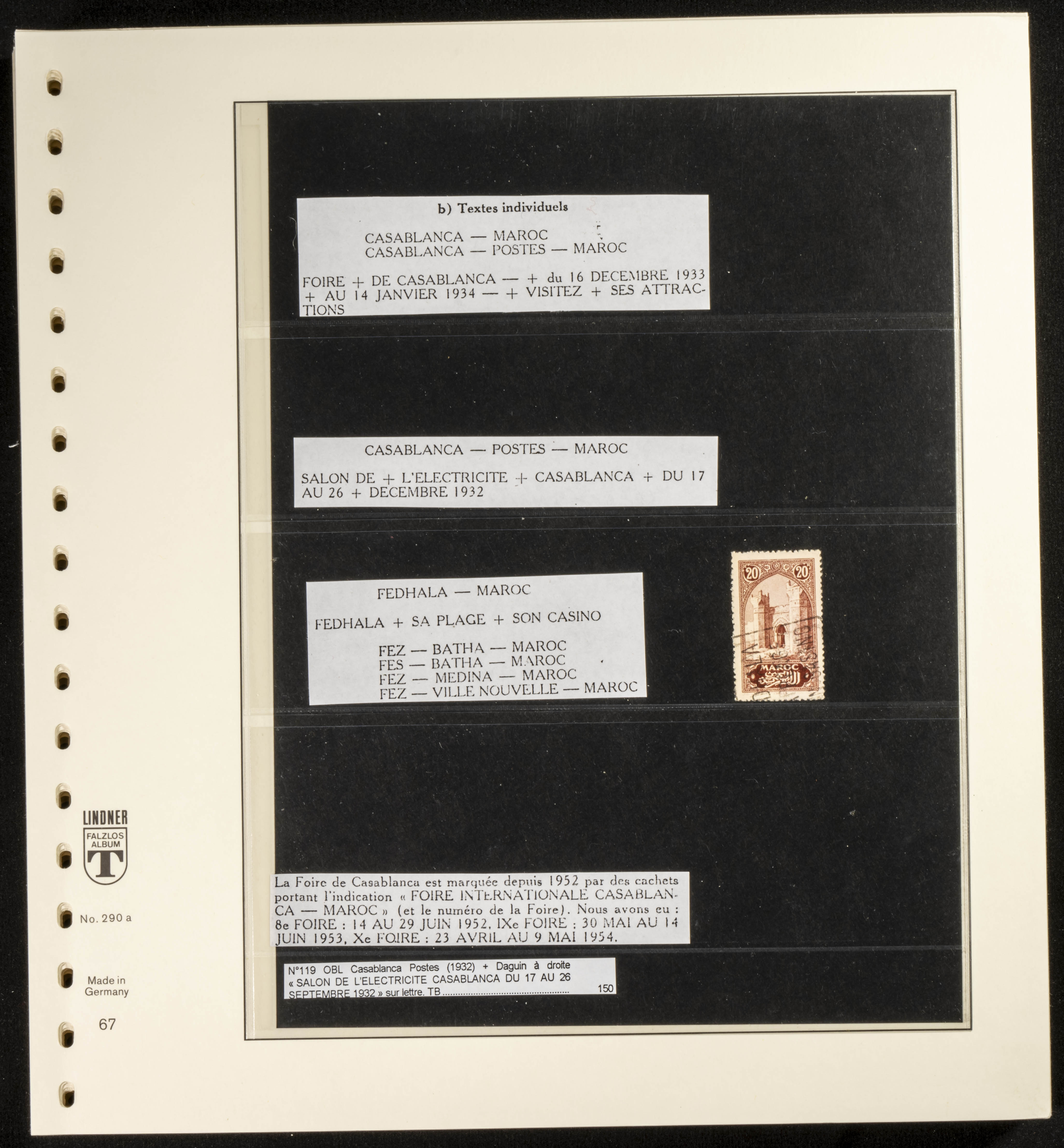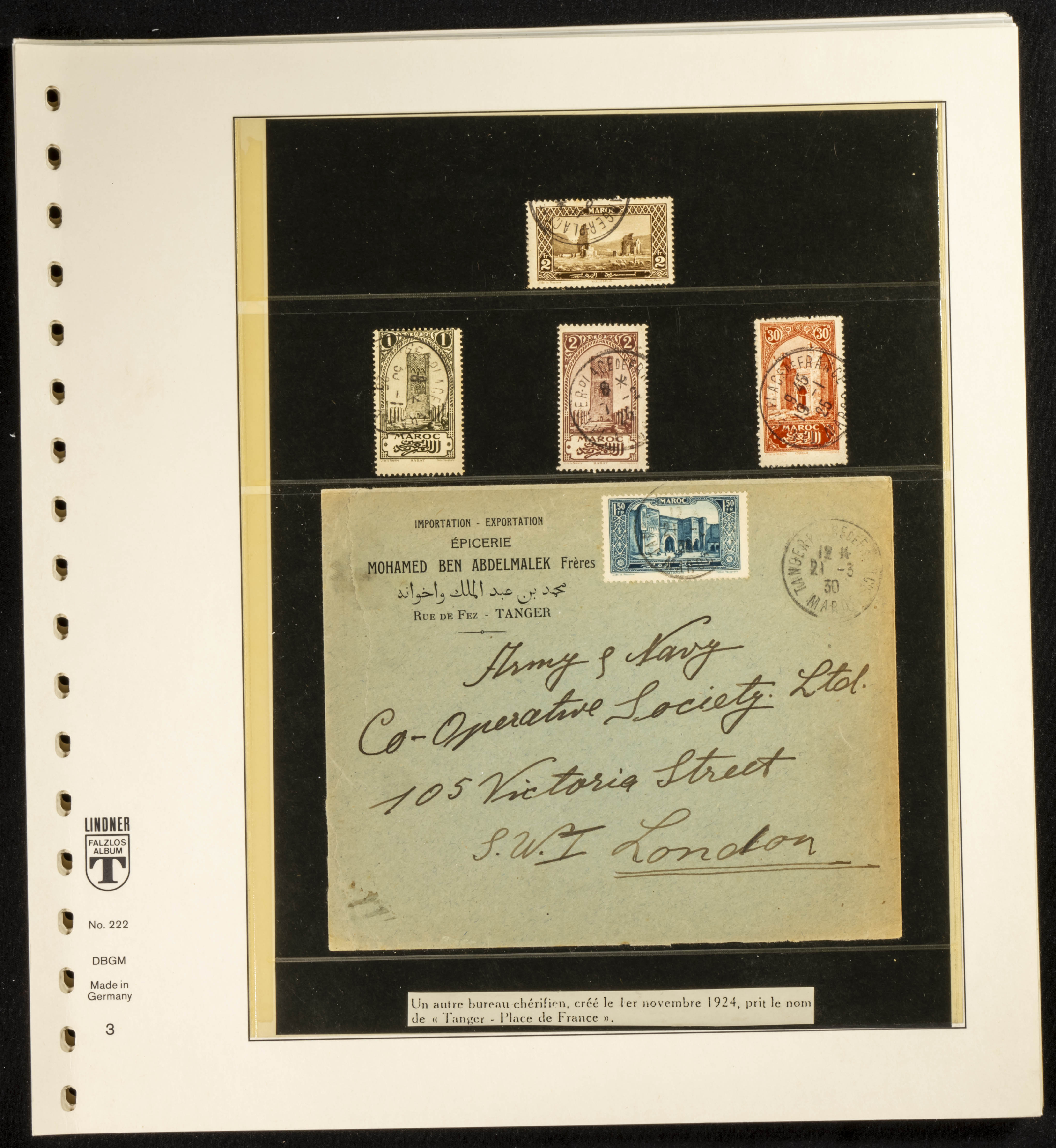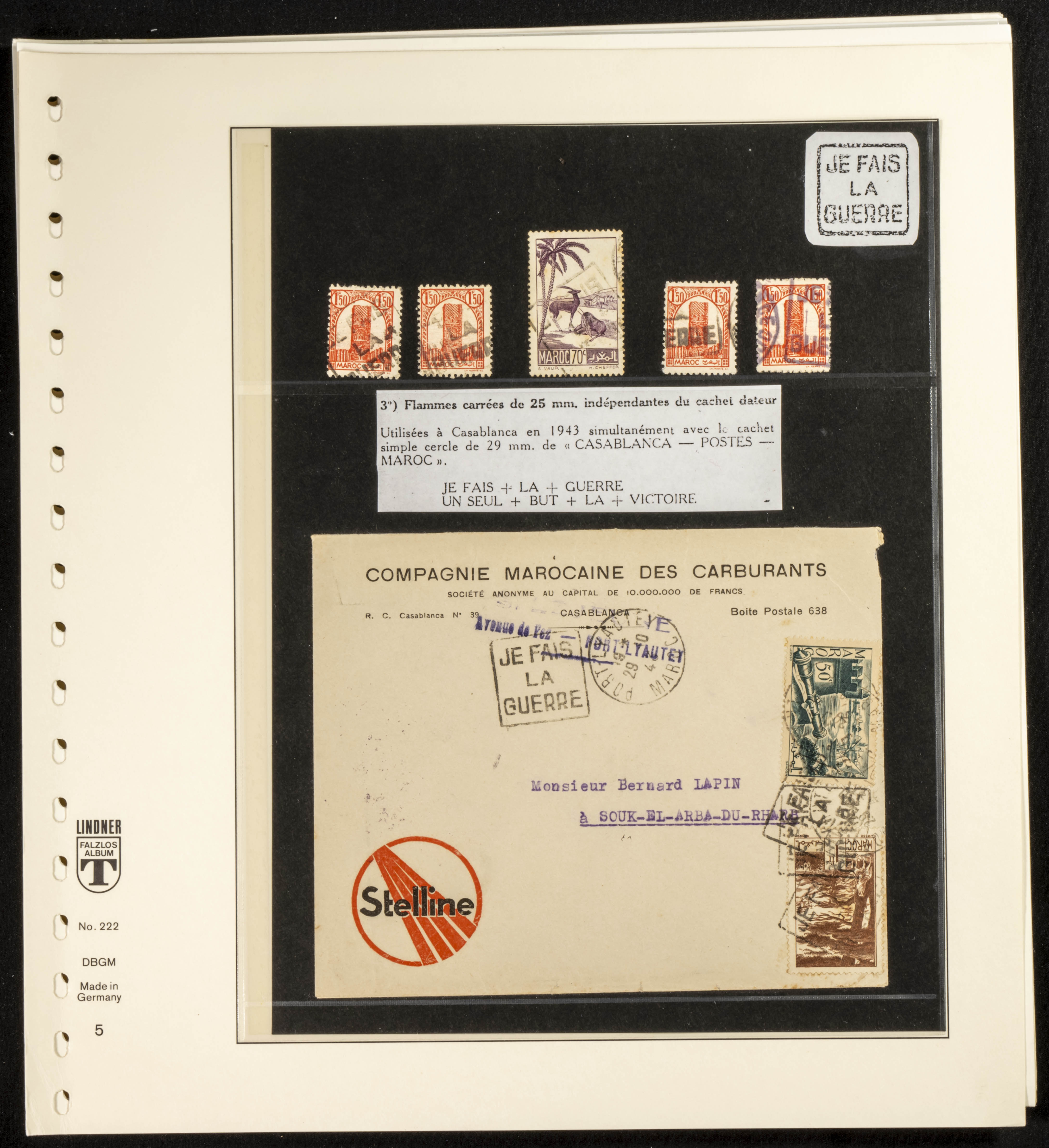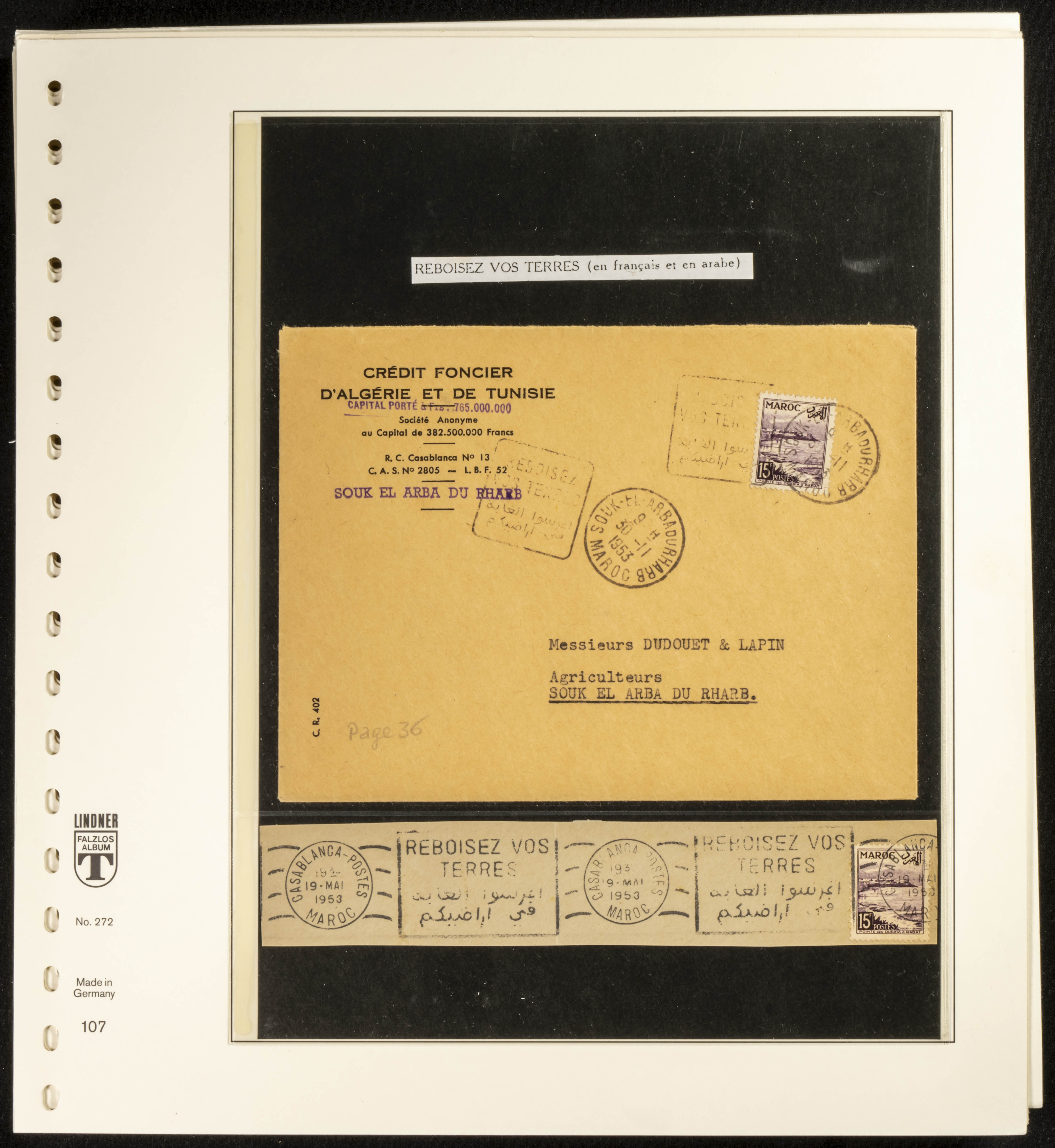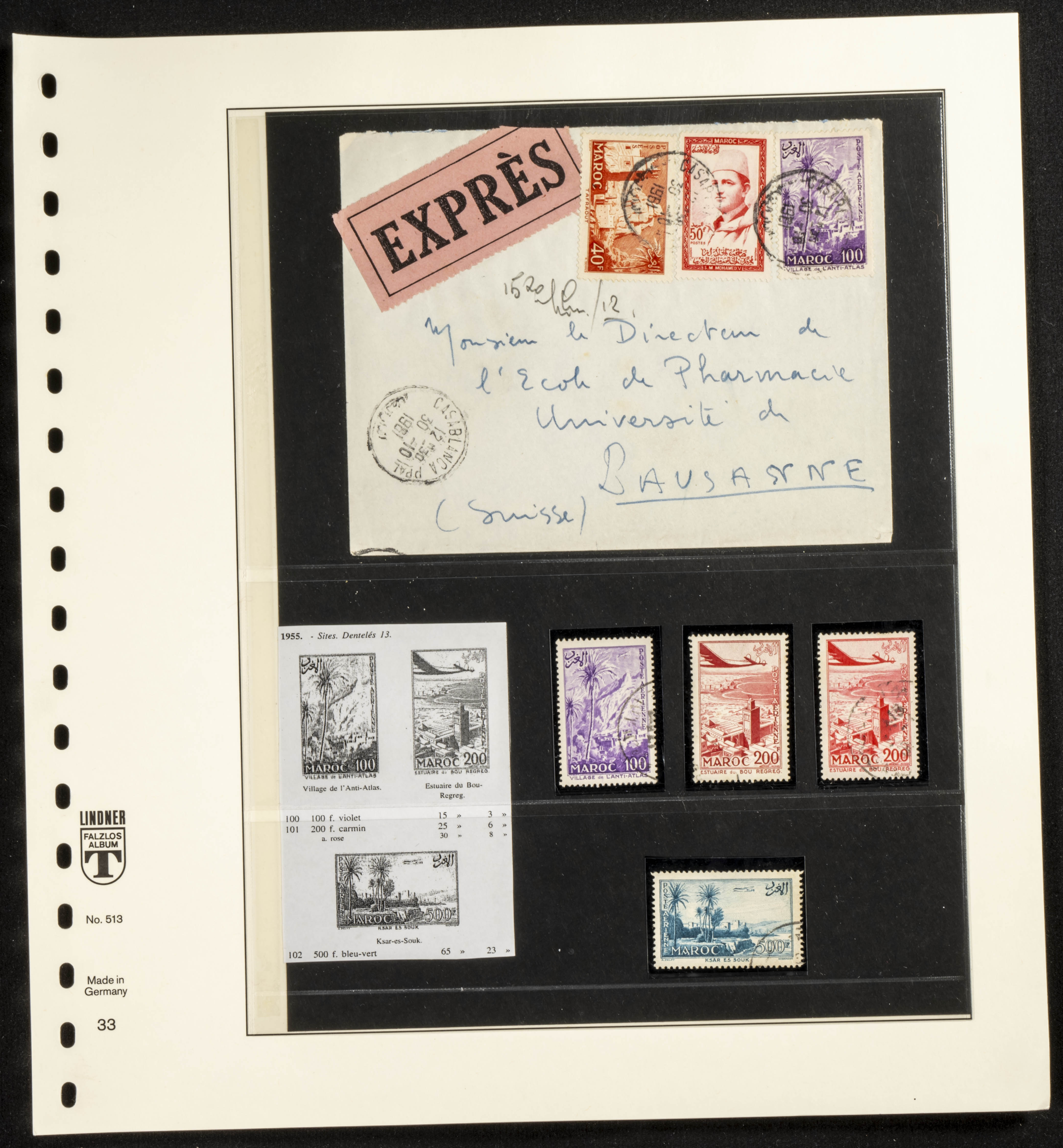 (circa 1891). Spectacular collection of used loose stamps and Postal History of French Morocco between 1891 and 1957. Includes early issues of French stamps with Moroccan postmarks, hundreds of circulated letters and postcards, some sent by registered mail, many with varied letterheads and unusual postage, hundreds of stamps with diverse postmarks (organized by issue alongside the letters), machine-printed postage, airmail, etc. EXAMINATION IS ESSENTIAL.