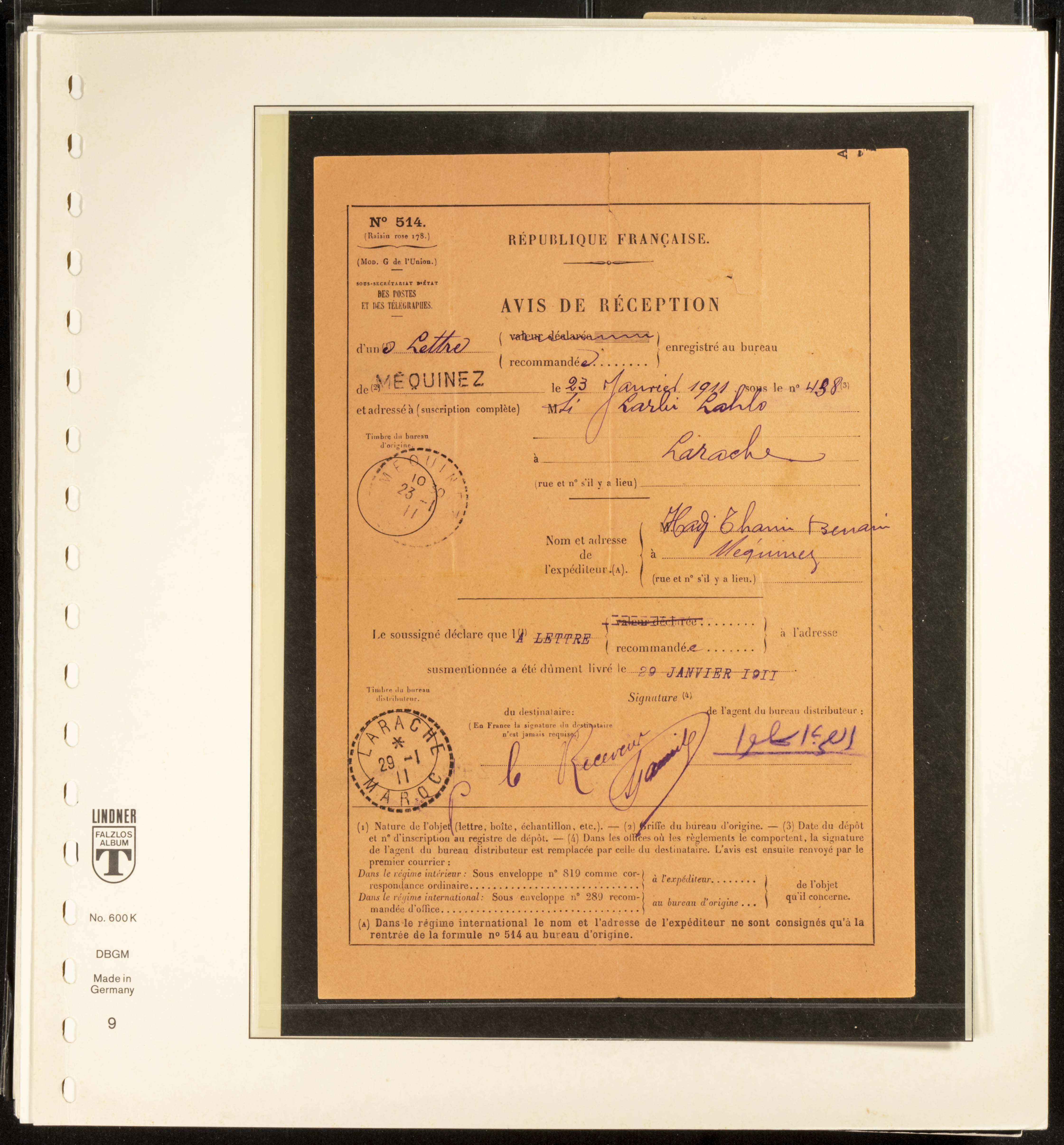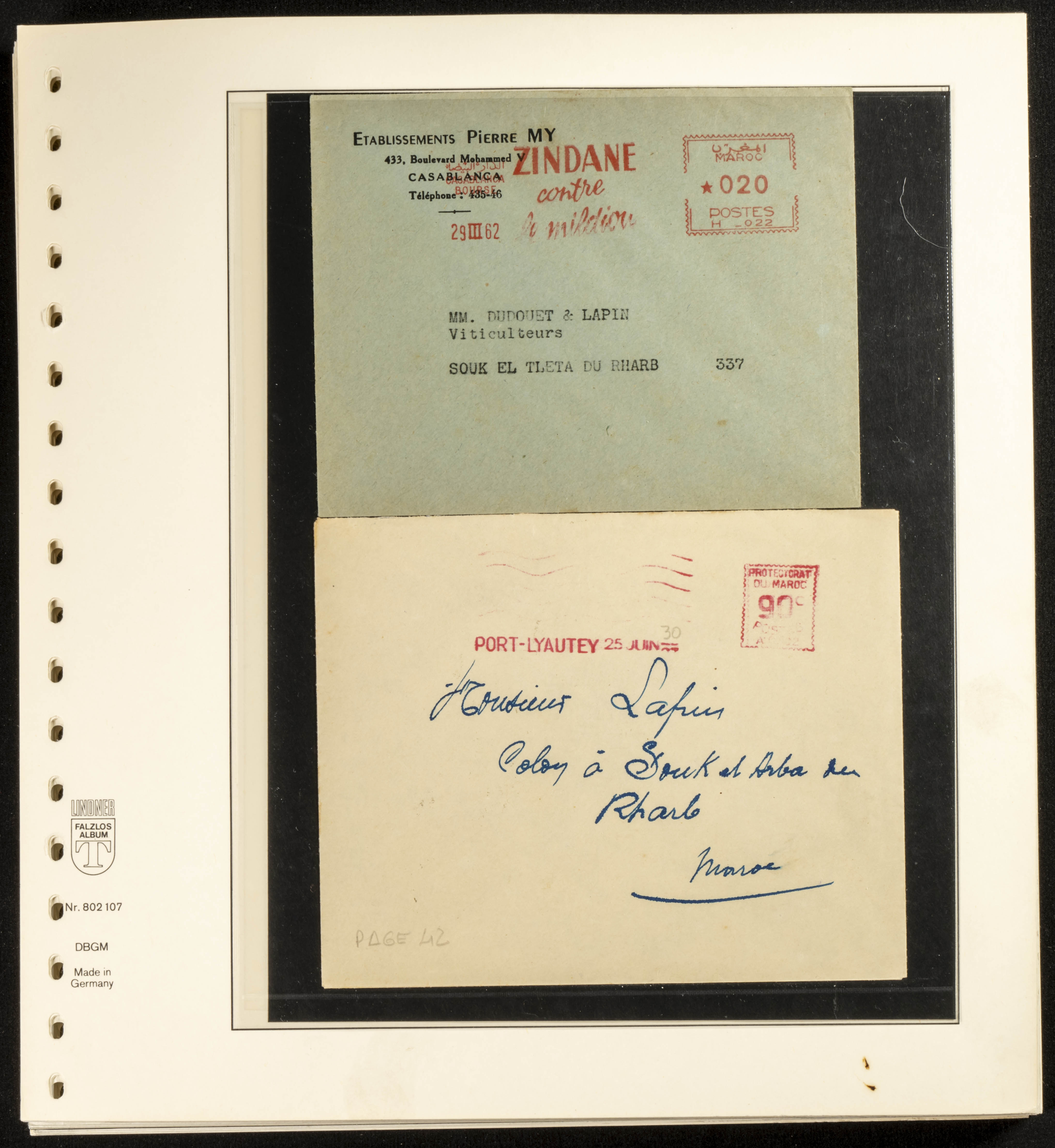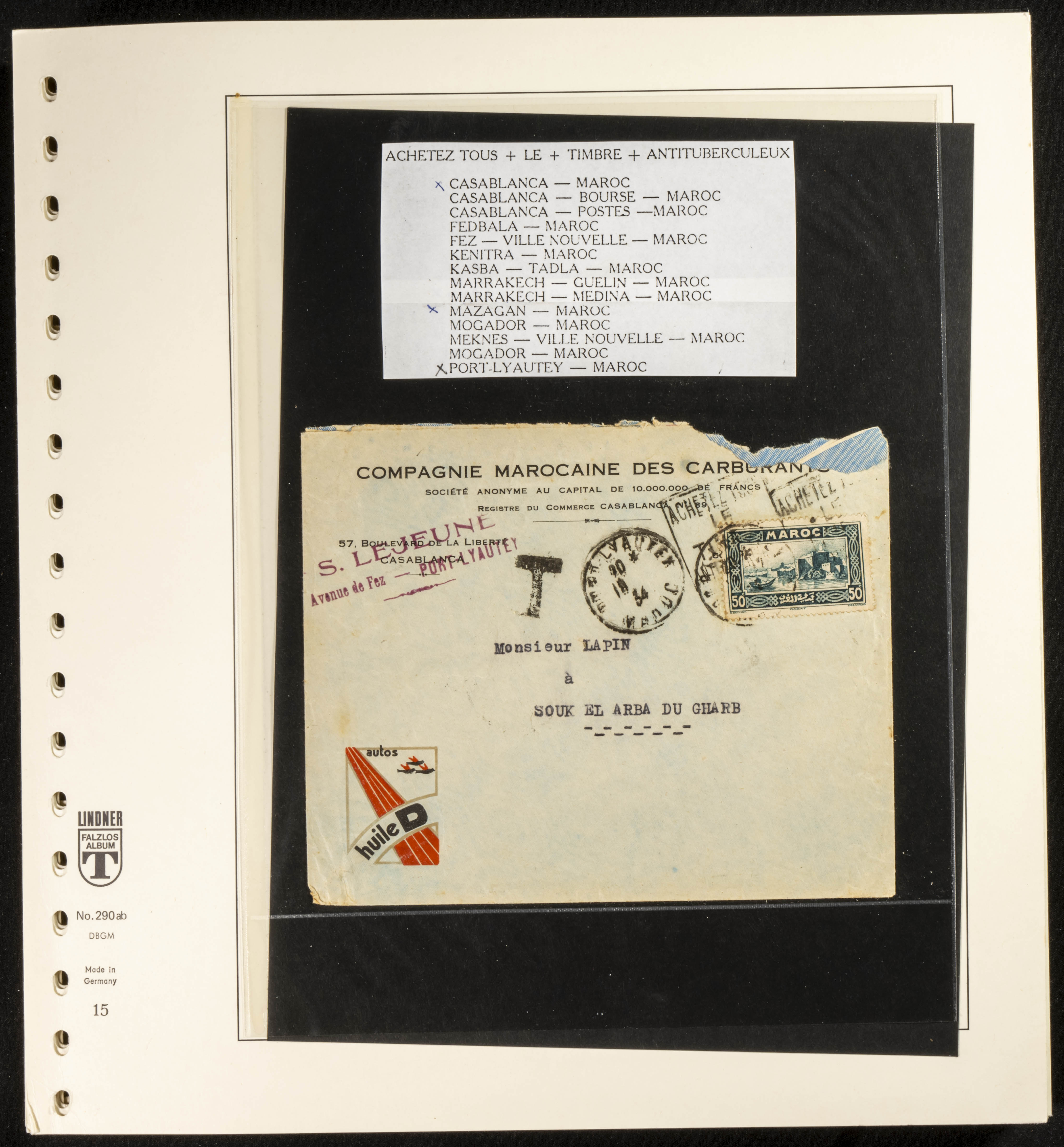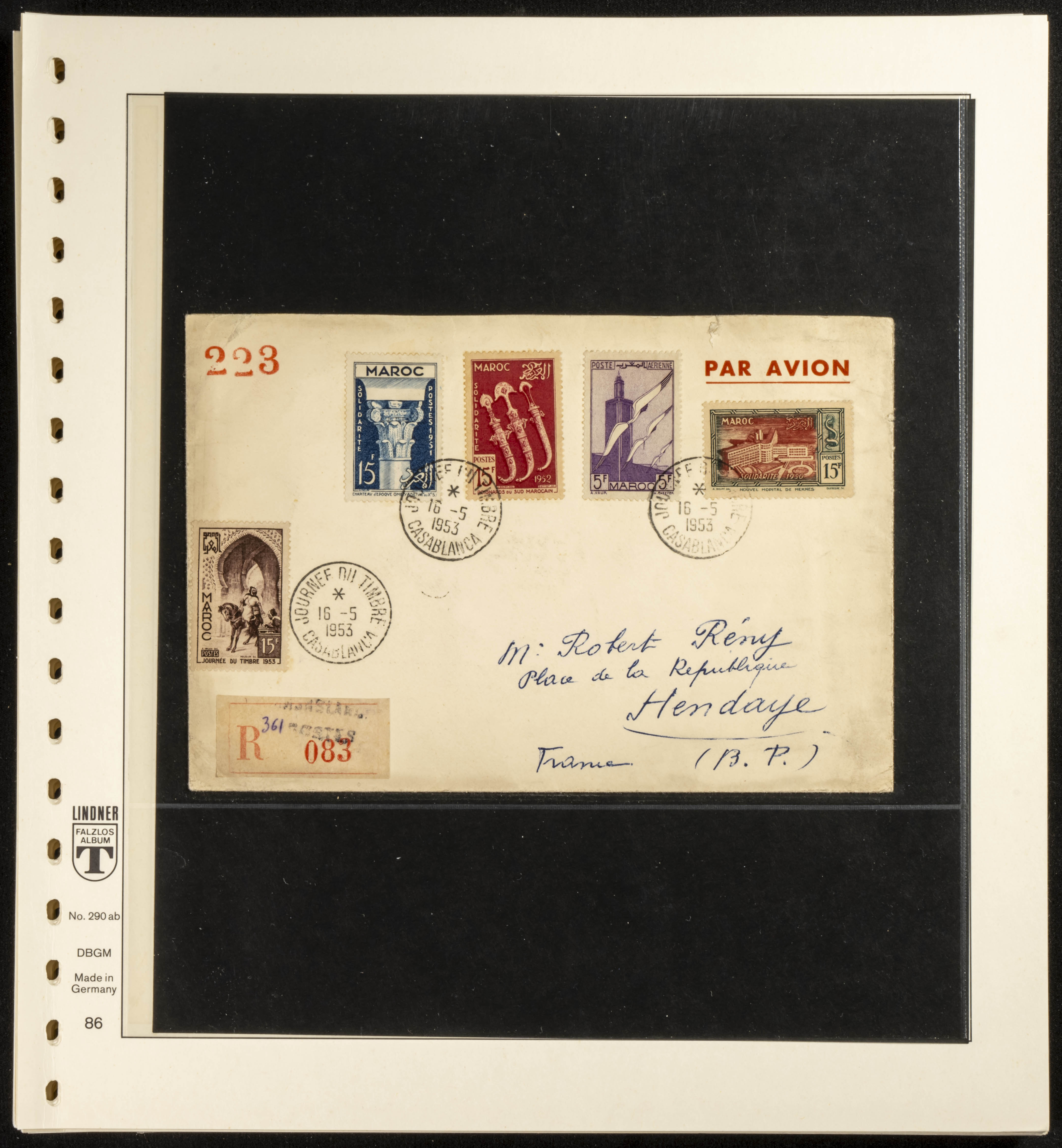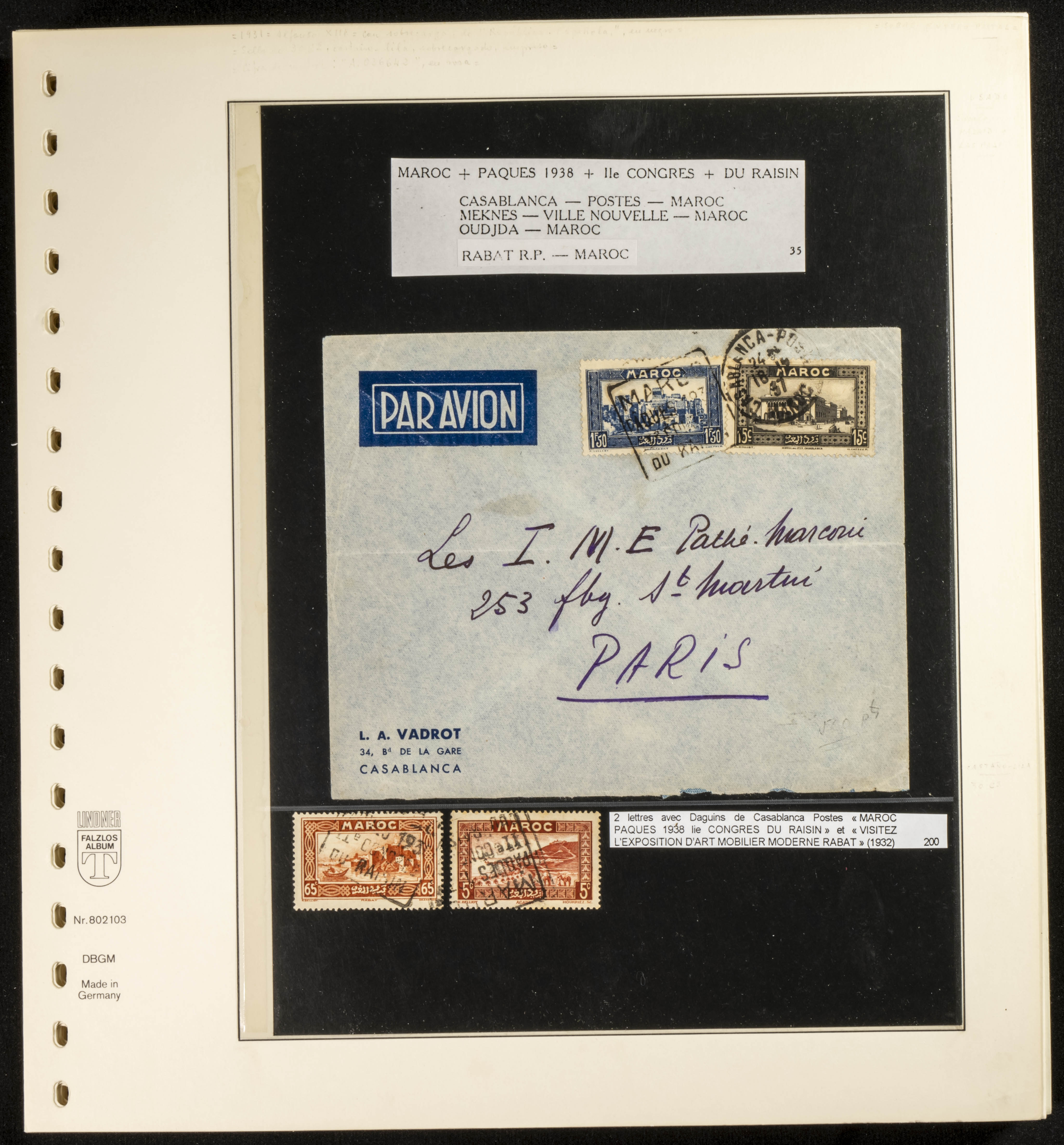 (circa 1891). Spectacular collection of used loose stamps and Postal History of French Morocco between 1891 and 1957. Includes early issues of French stamps with Moroccan postmarks, hundreds of circulated letters and postcards, some sent by registered mail, many with varied letterheads and unusual postage, hundreds of stamps with diverse postmarks (organized by issue alongside the letters), machine-printed postage, airmail, etc. EXAMINATION IS ESSENTIAL.
