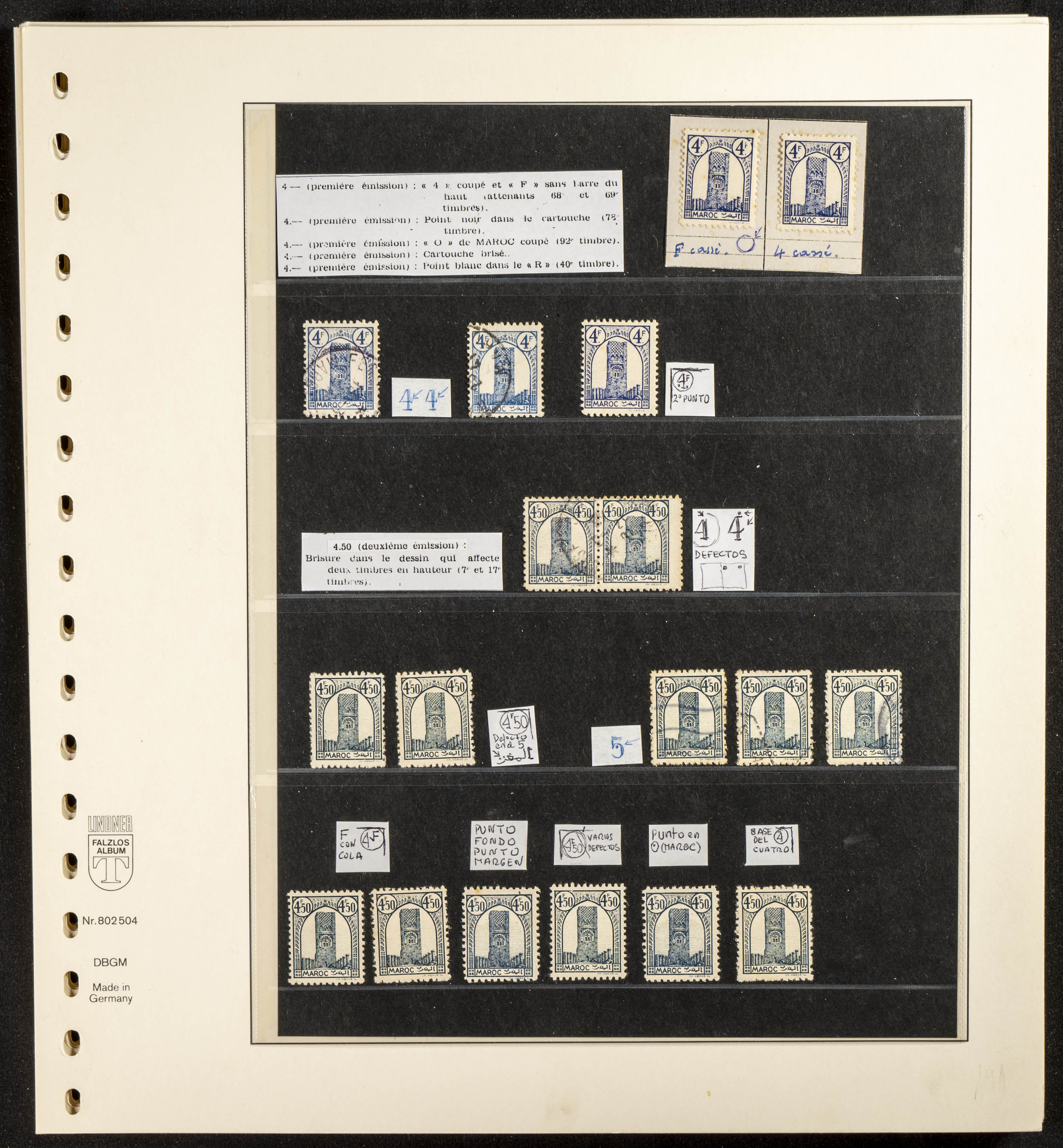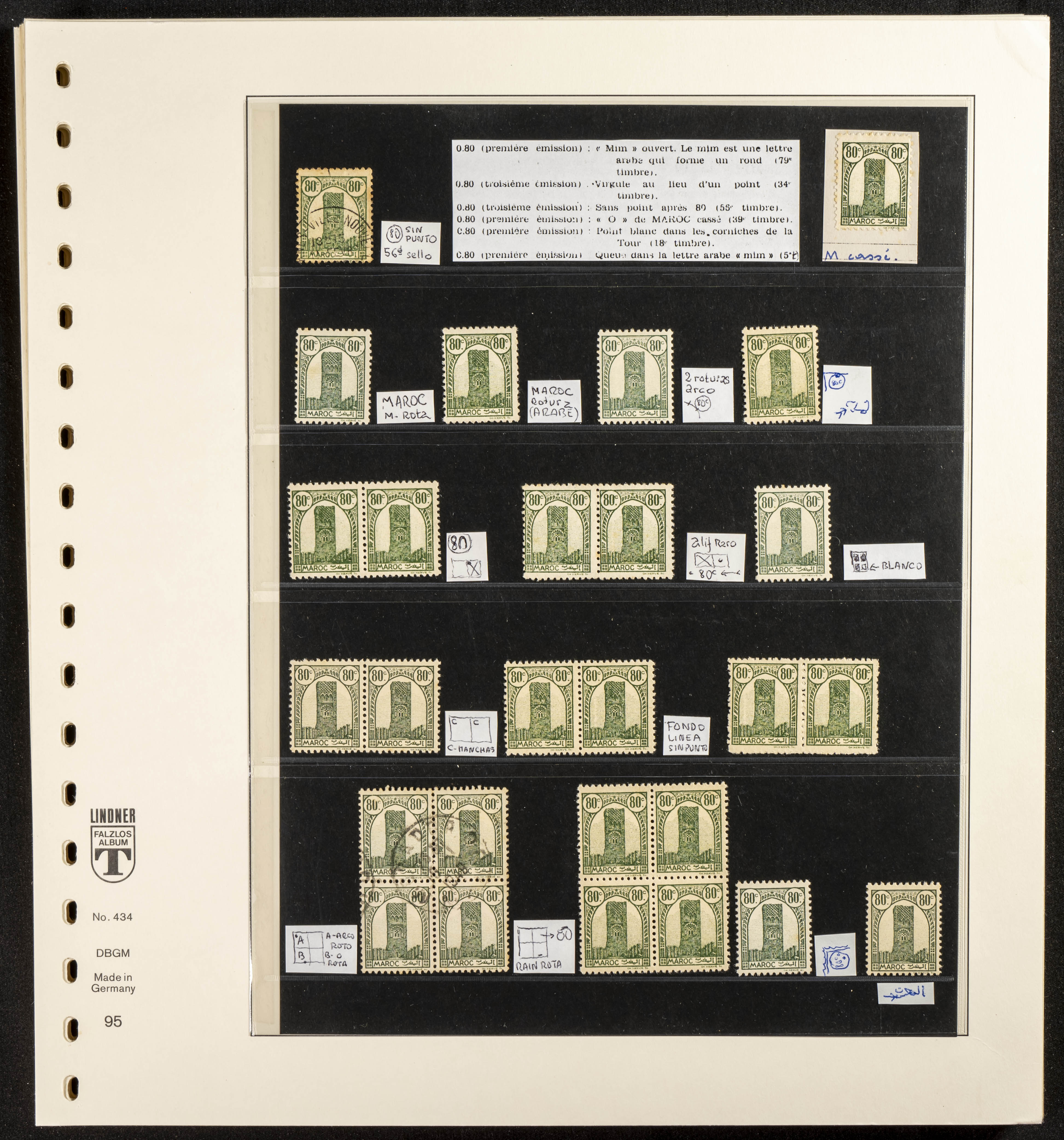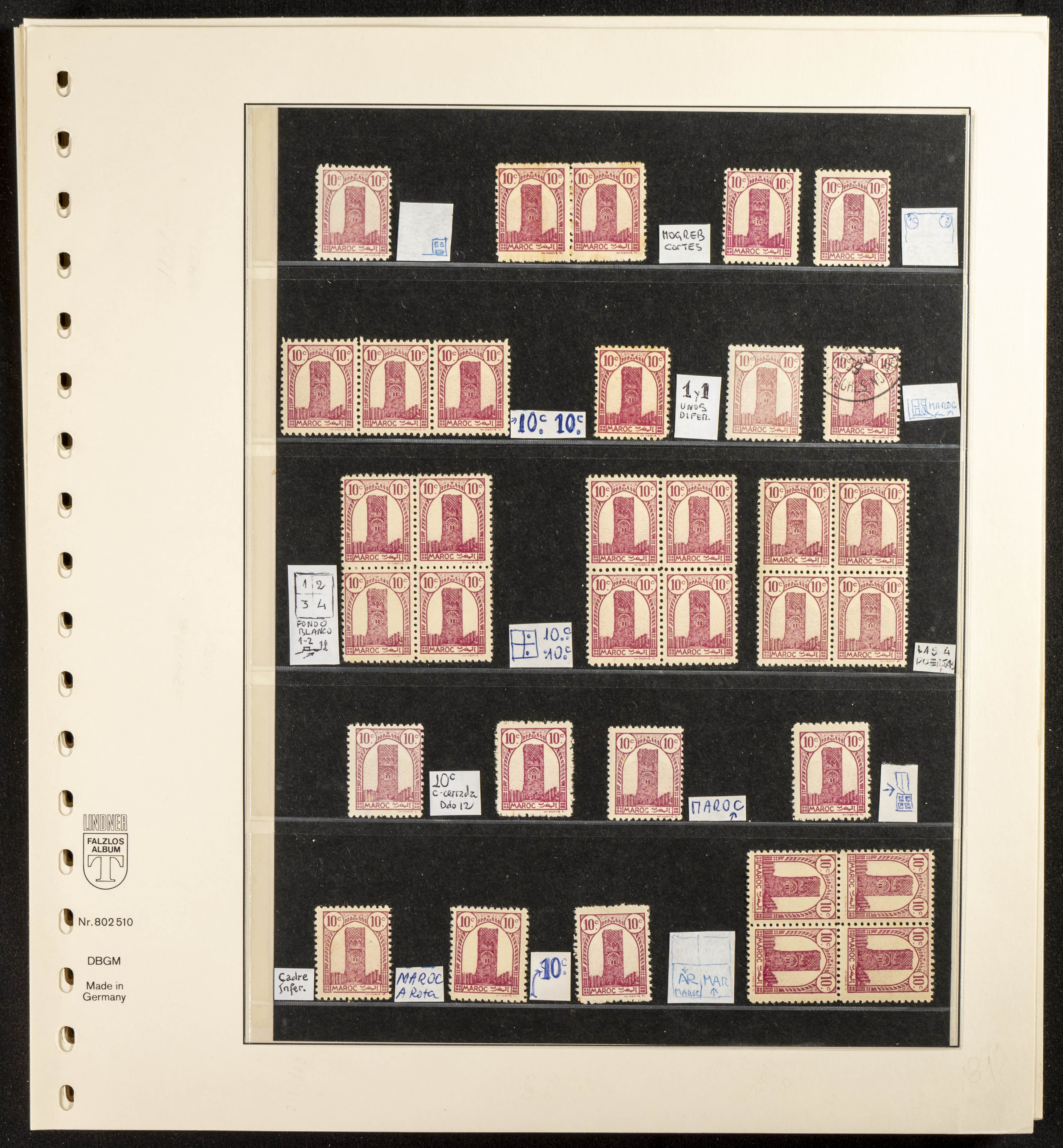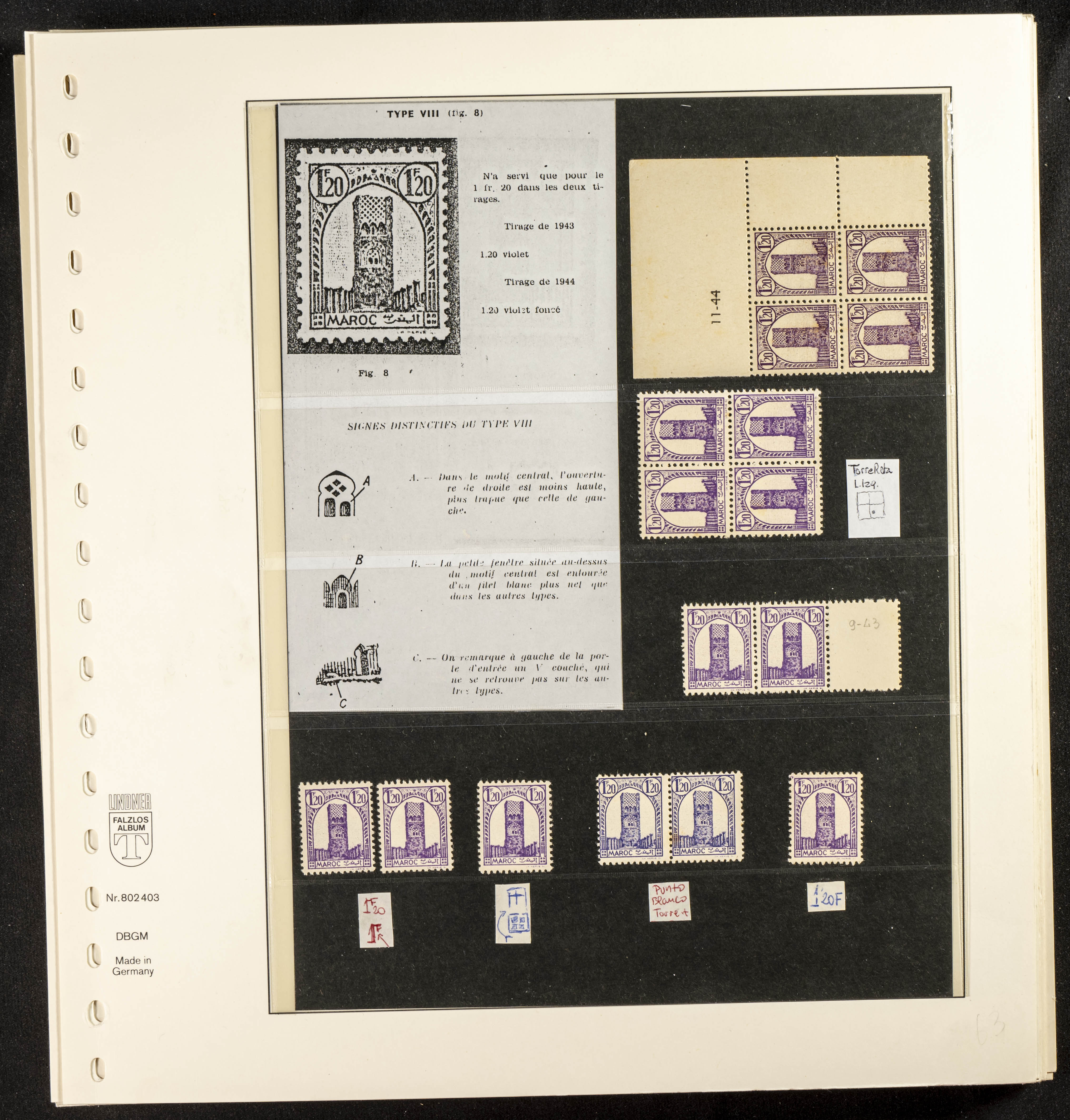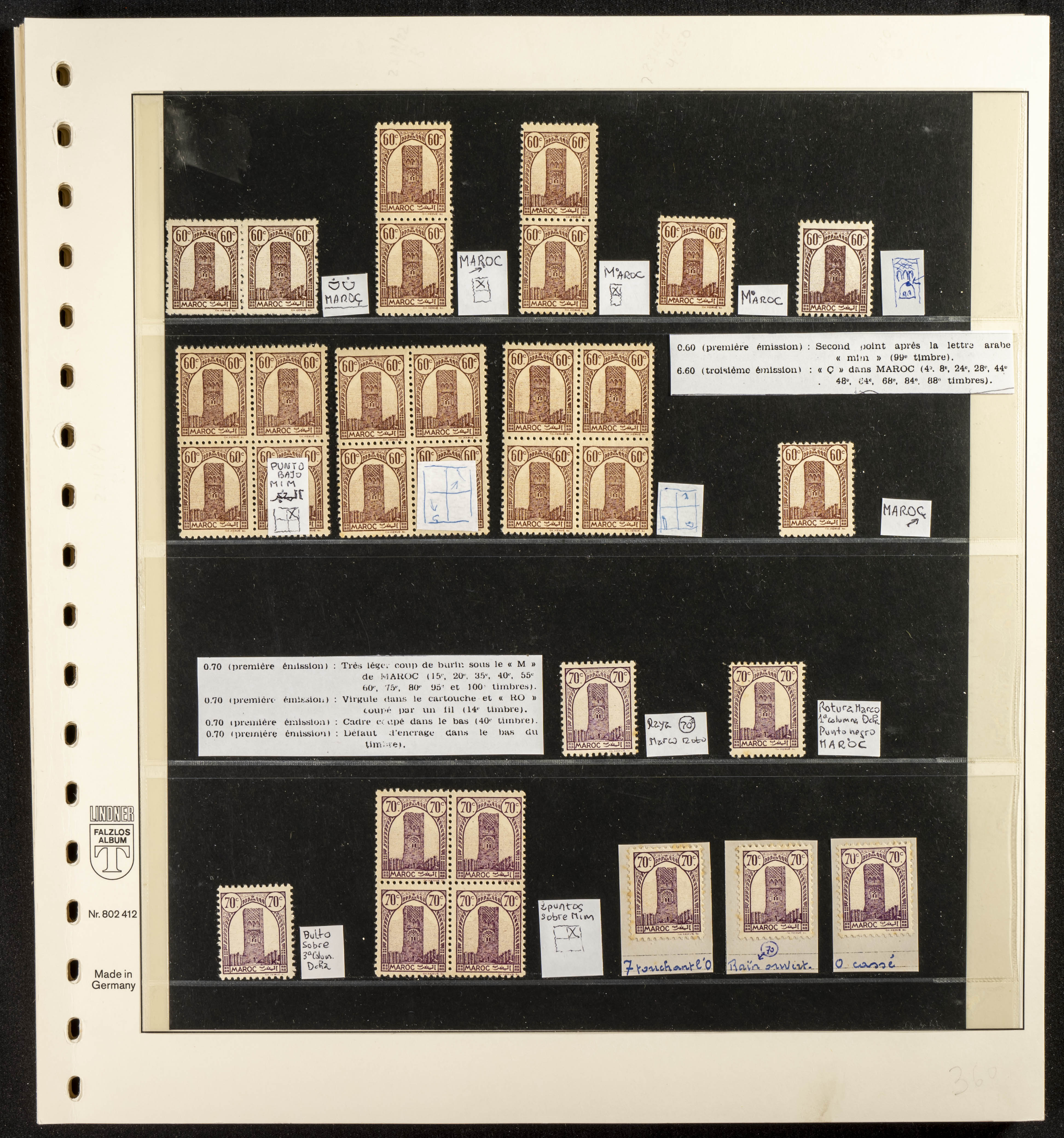 English ★/(1943ca). Spectacular collection specializing in the 1943 "Tour Hassan" issue, featuring stamp types (different print runs), perforation varieties (imperforate, partial, or offset), printing variations (backgroundless, cliché, etc.), and numerous circulated letters. HIGH CATALOG VALUE. EXAMINATION IS A MUST.