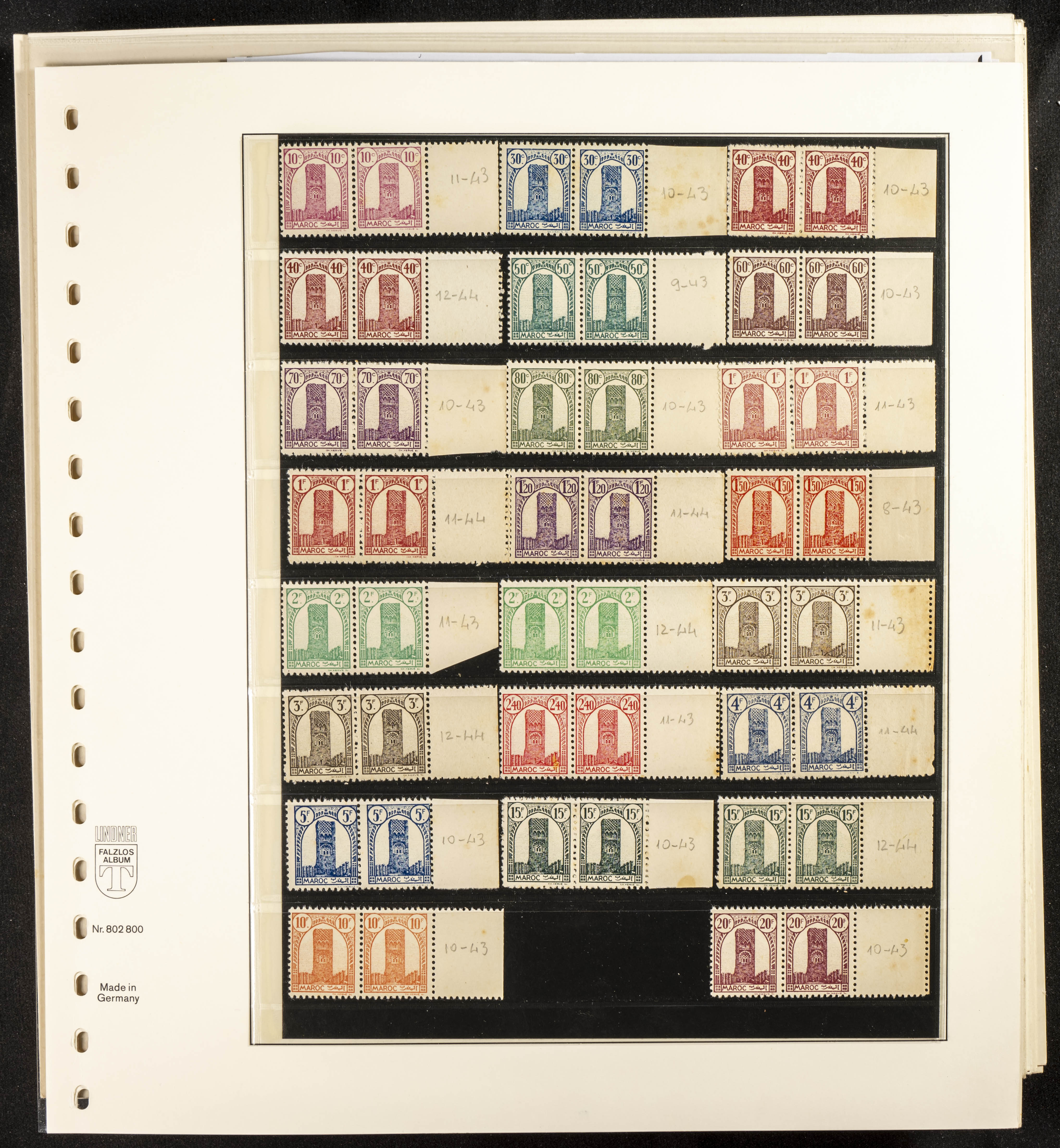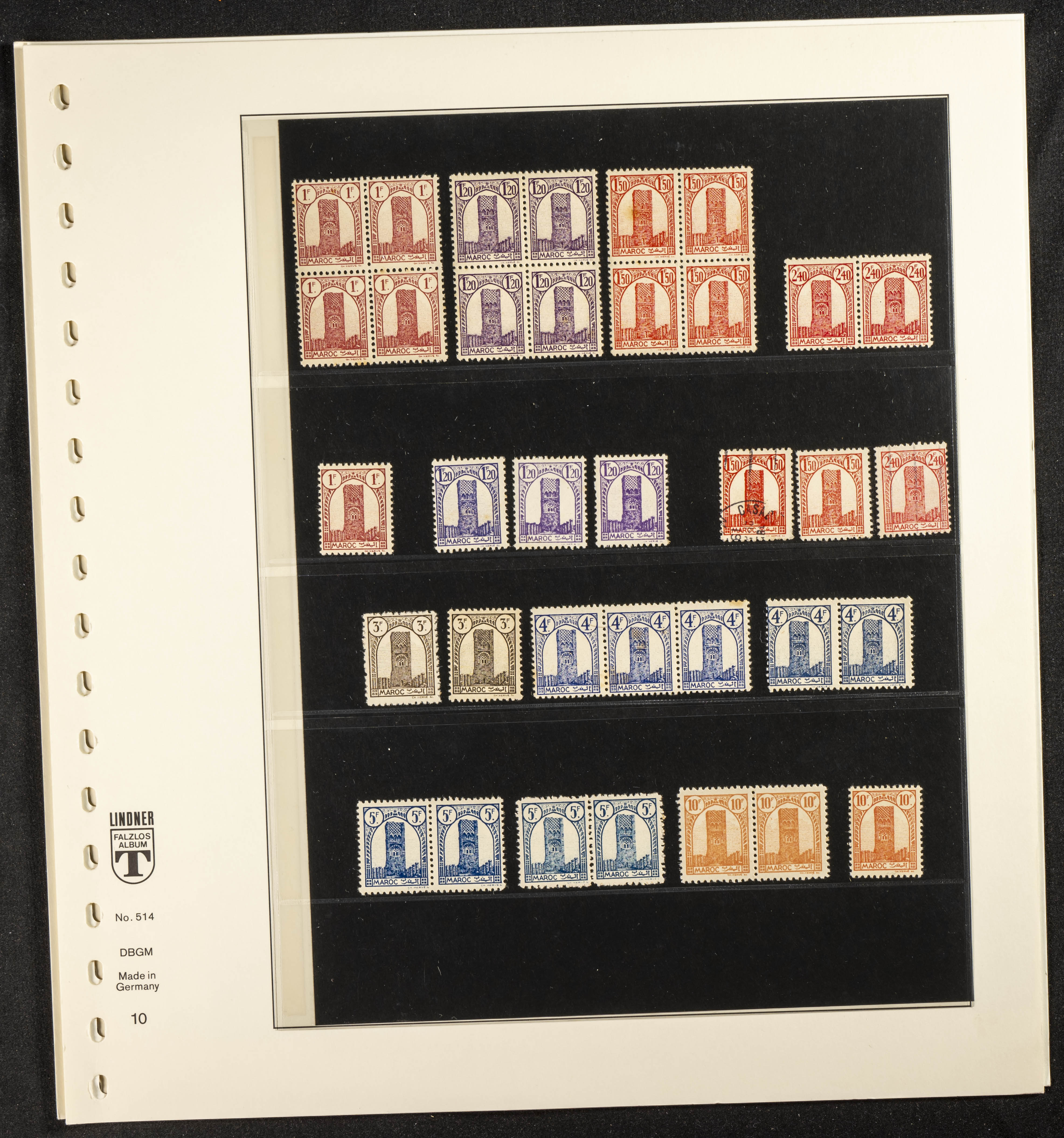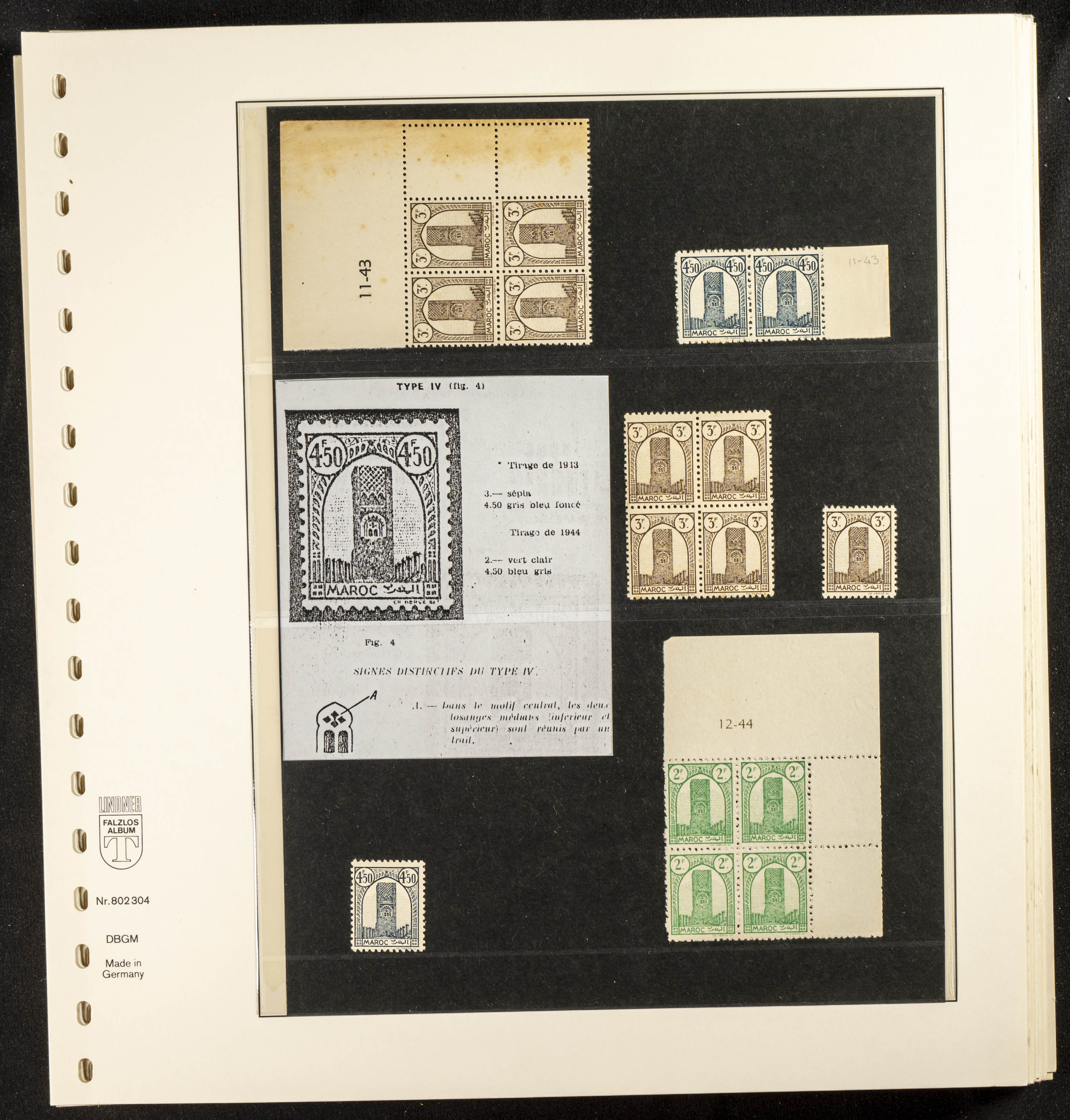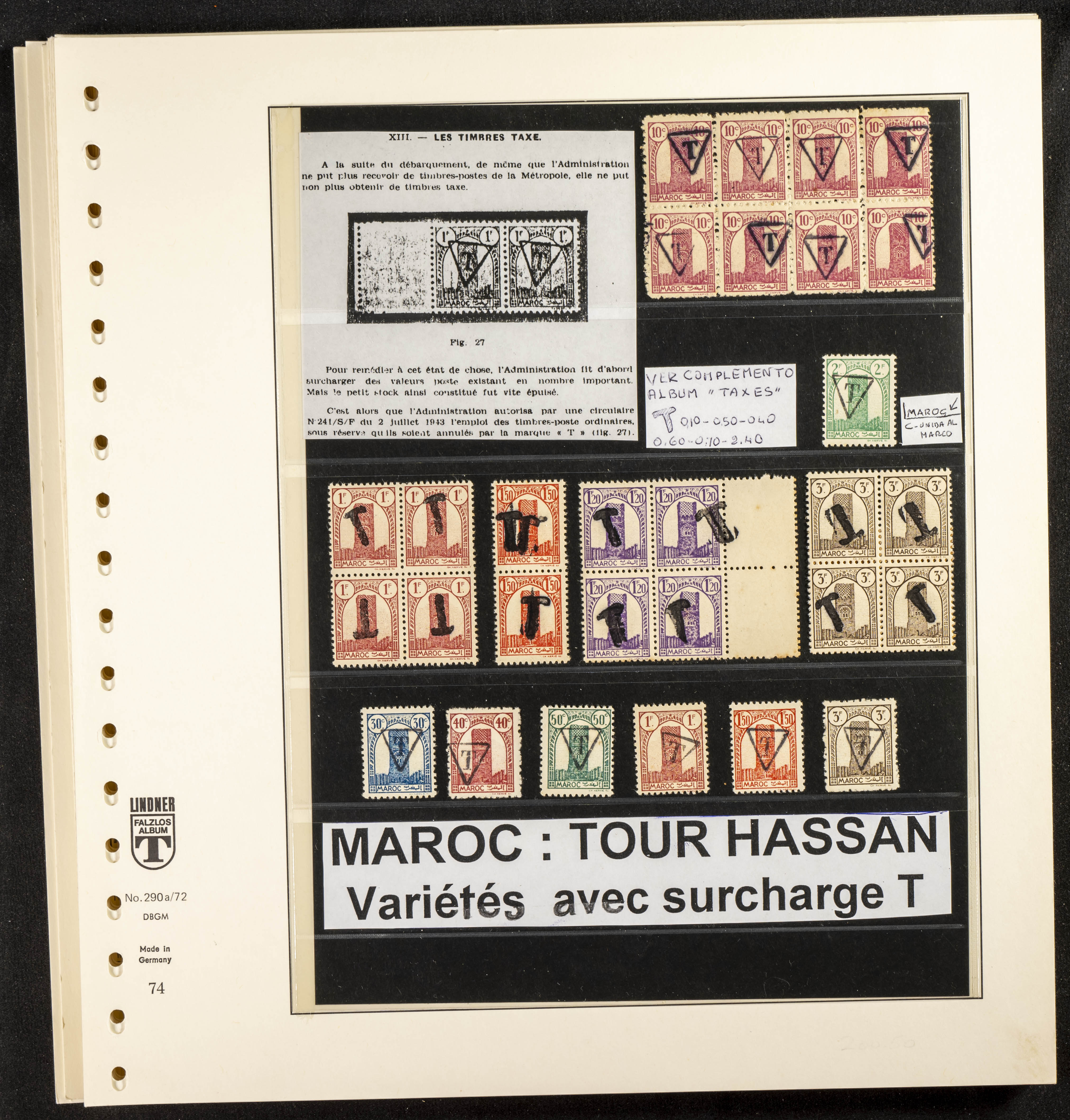 English ★/(1943ca). Spectacular collection specializing in the 1943 "Tour Hassan" issue, featuring stamp types (different print runs), perforation varieties (imperforate, partial, or offset), printing variations (backgroundless, cliché, etc.), and numerous circulated letters. HIGH CATALOG VALUE. EXAMINATION IS A MUST.