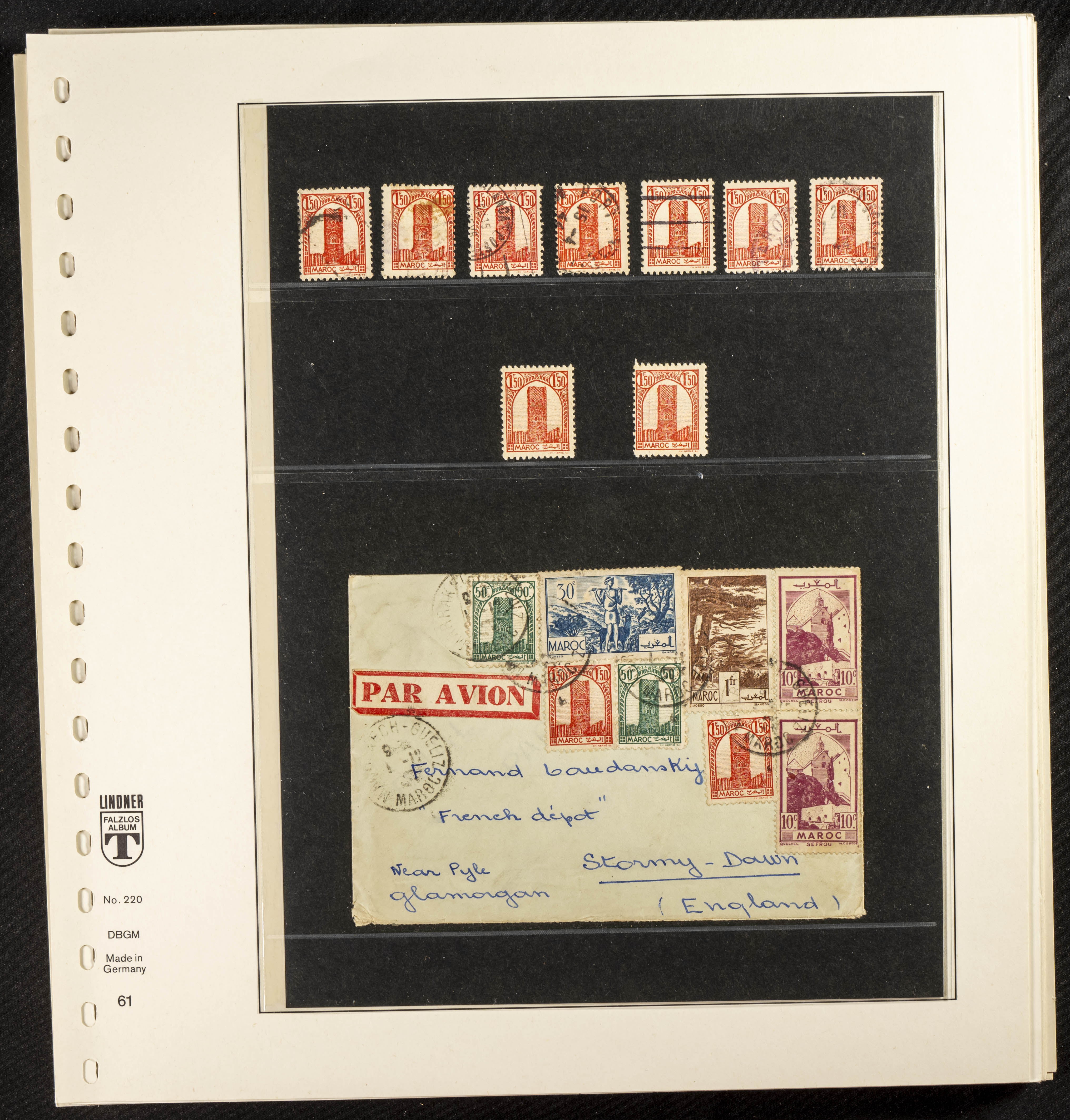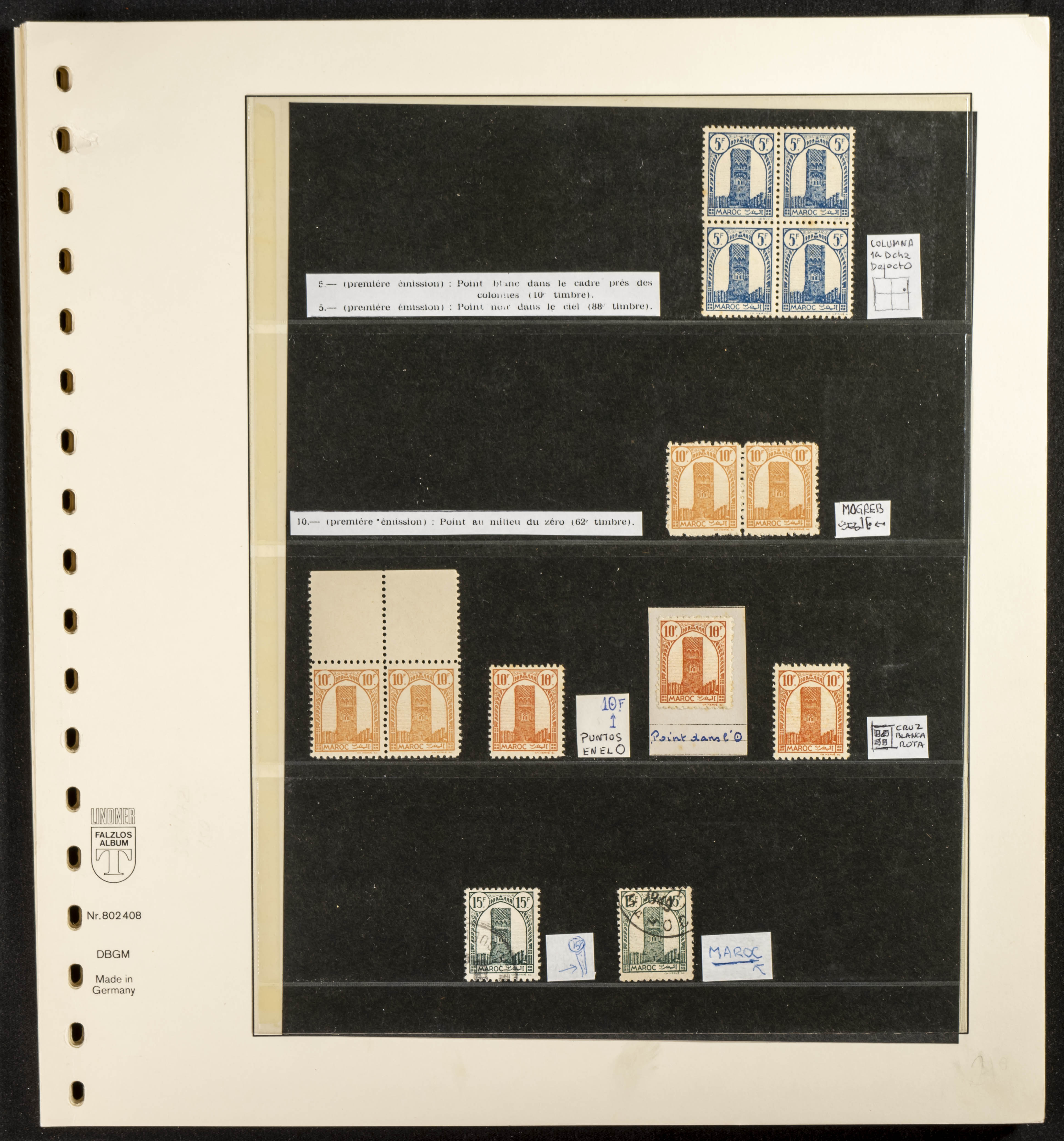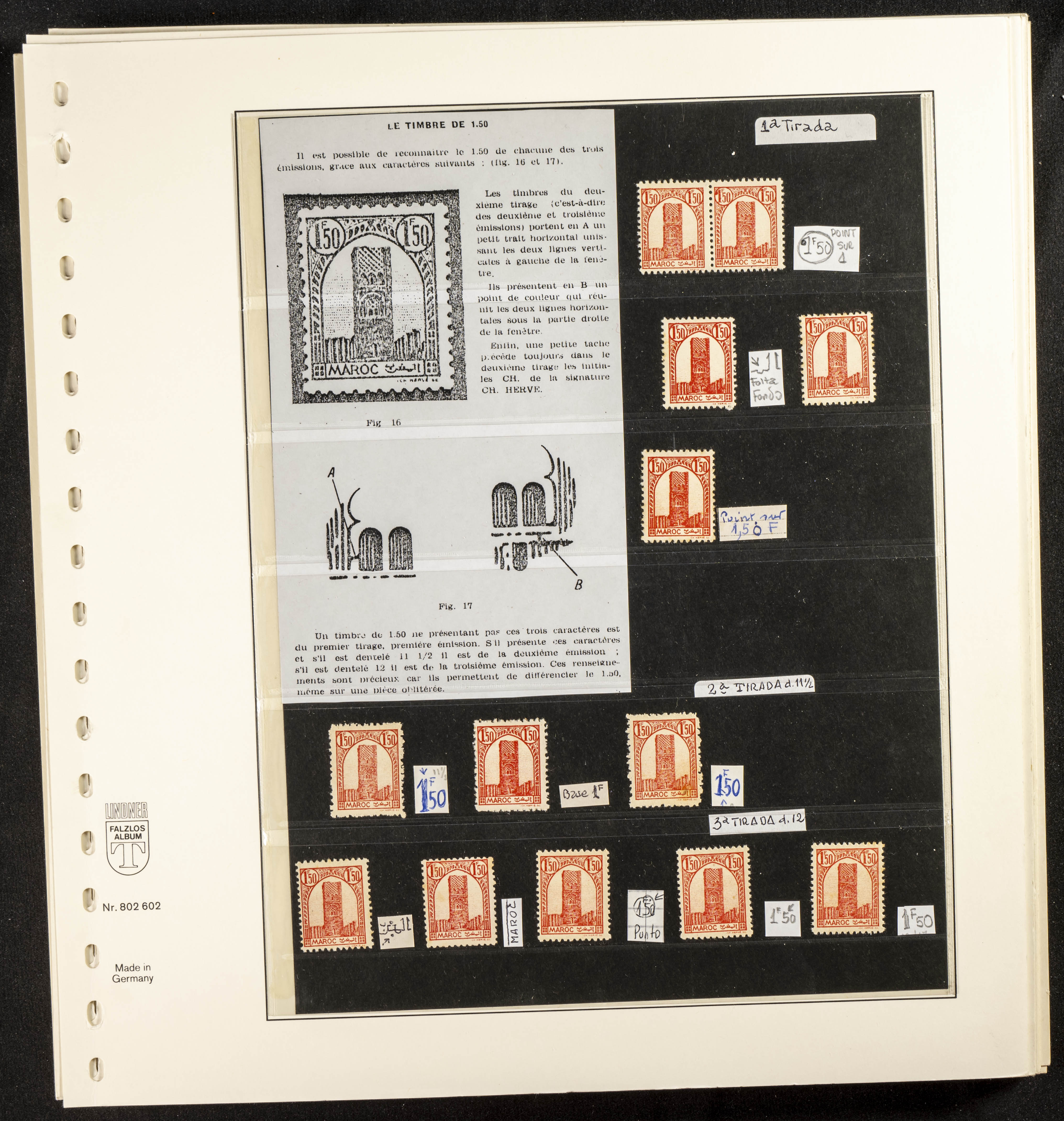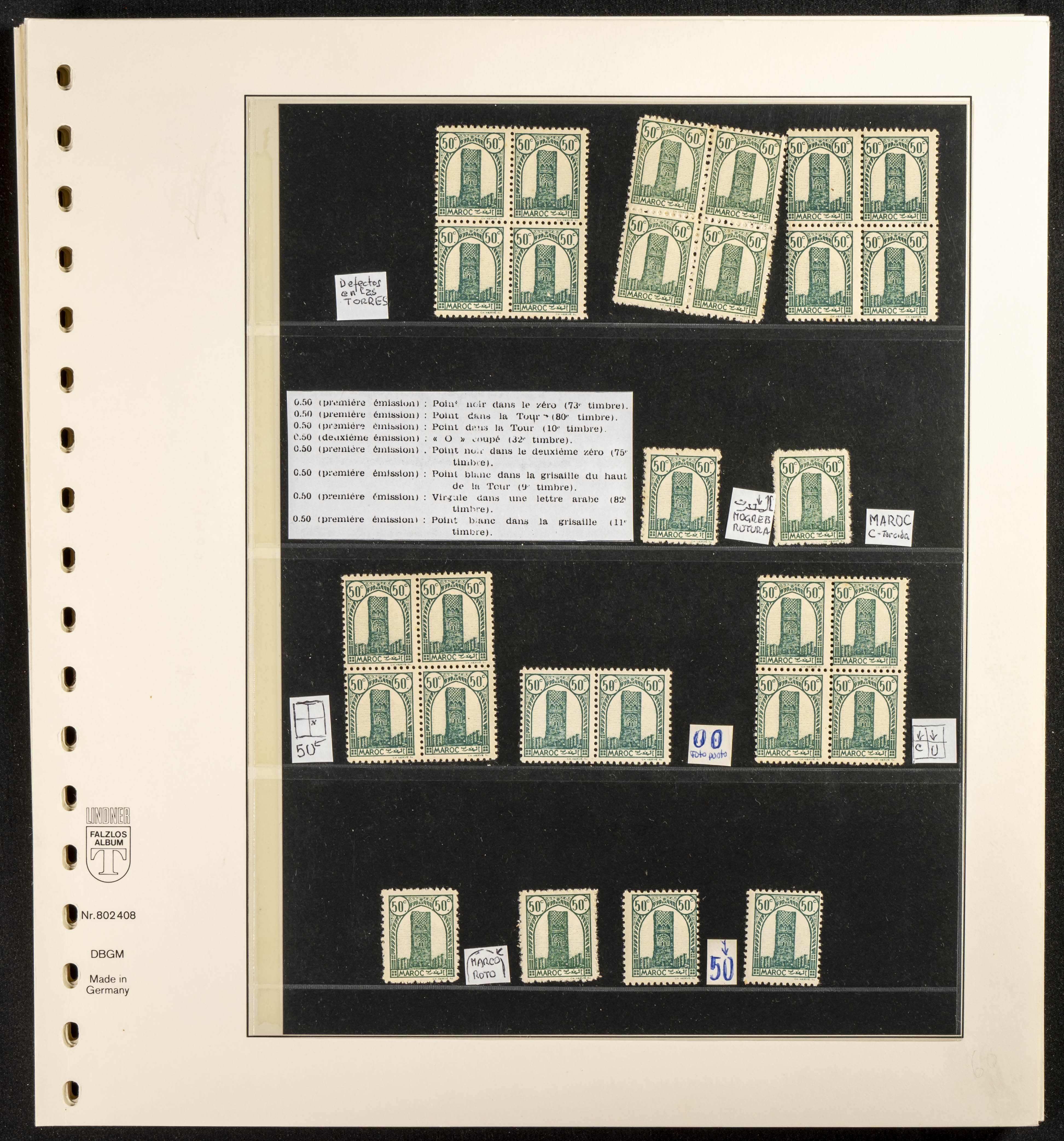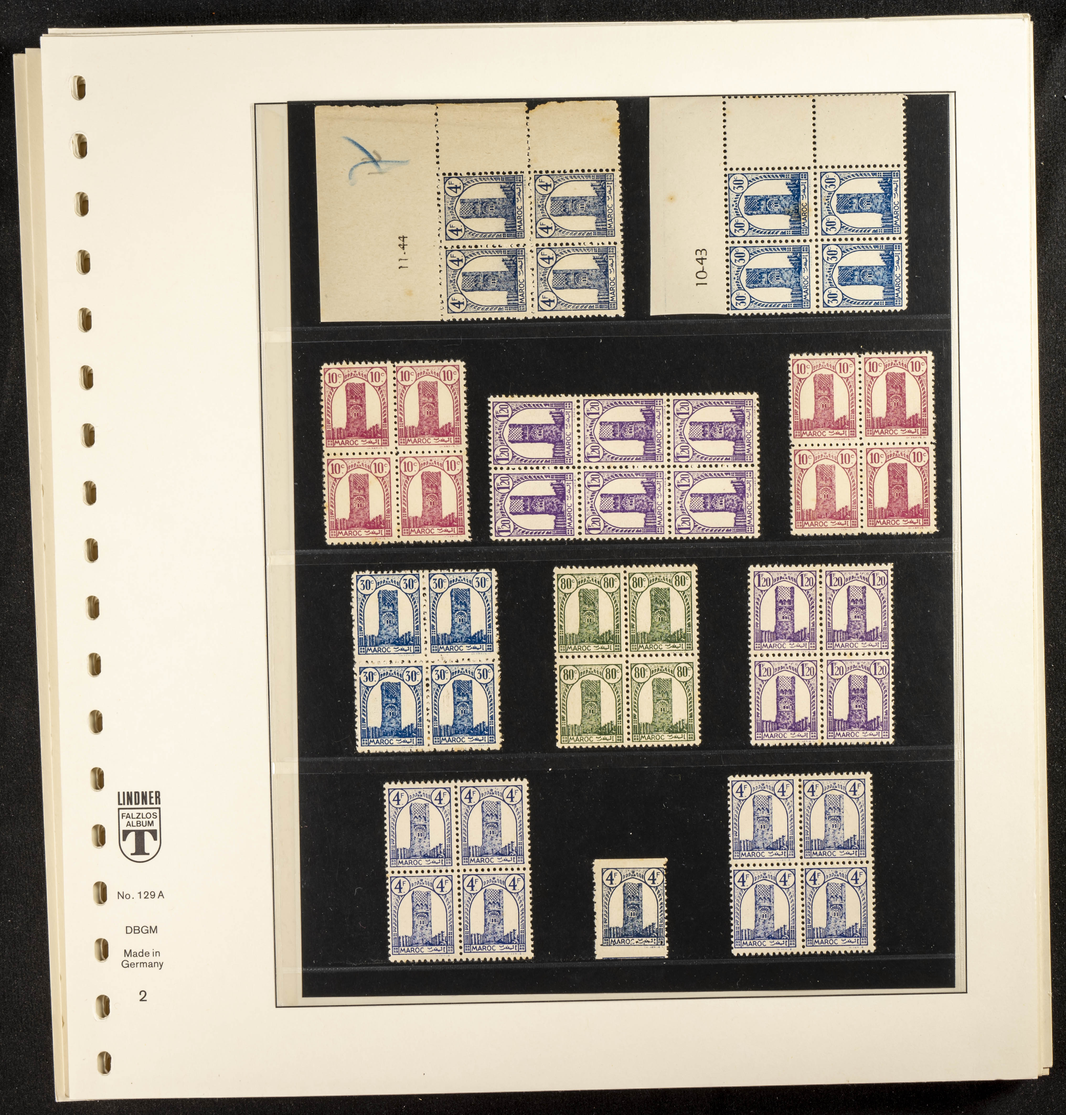 English ★/(1943ca). Spectacular collection specializing in the 1943 "Tour Hassan" issue, featuring stamp types (different print runs), perforation varieties (imperforate, partial, or offset), printing variations (backgroundless, cliché, etc.), and numerous circulated letters. HIGH CATALOG VALUE. EXAMINATION IS A MUST.
