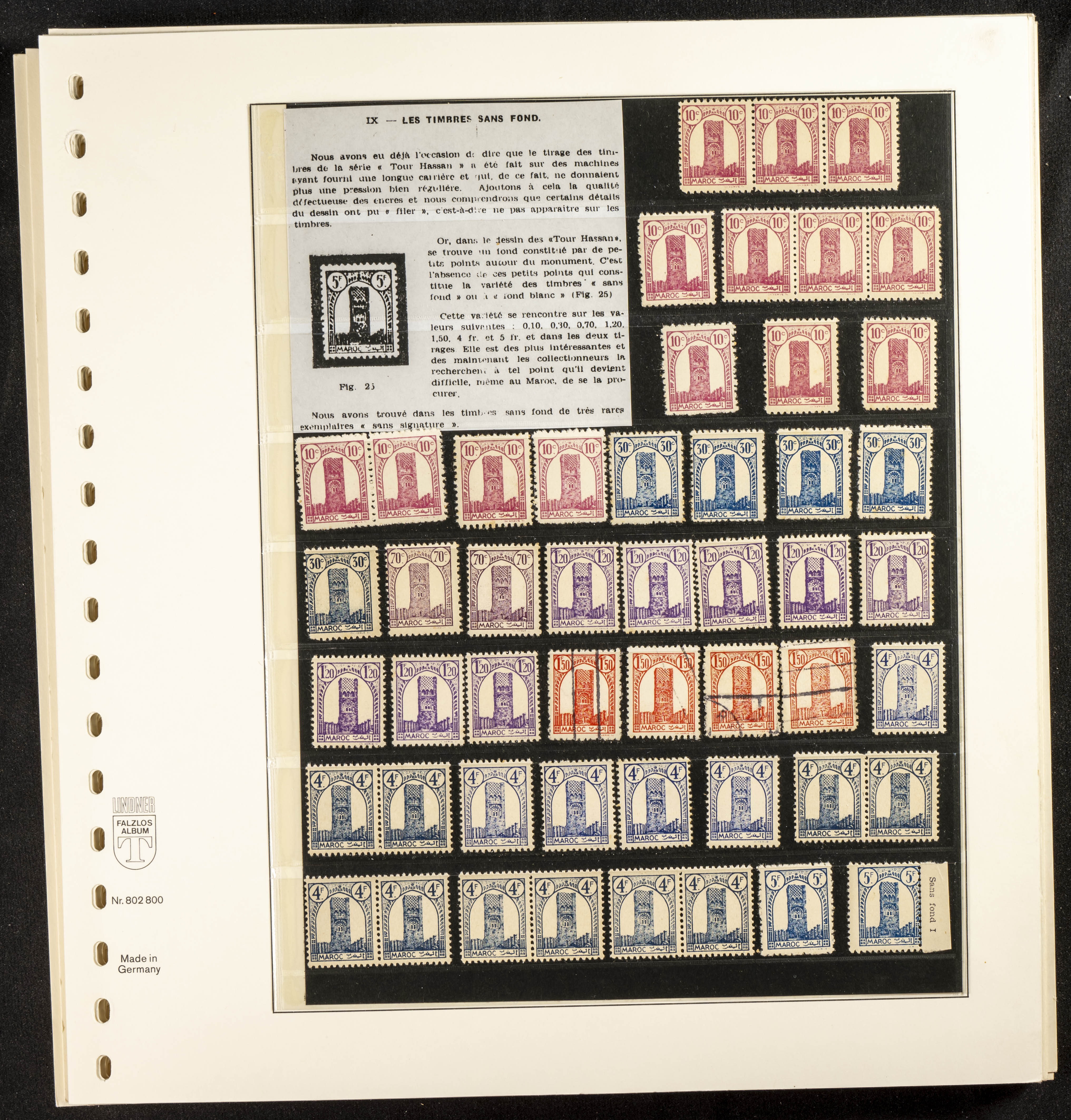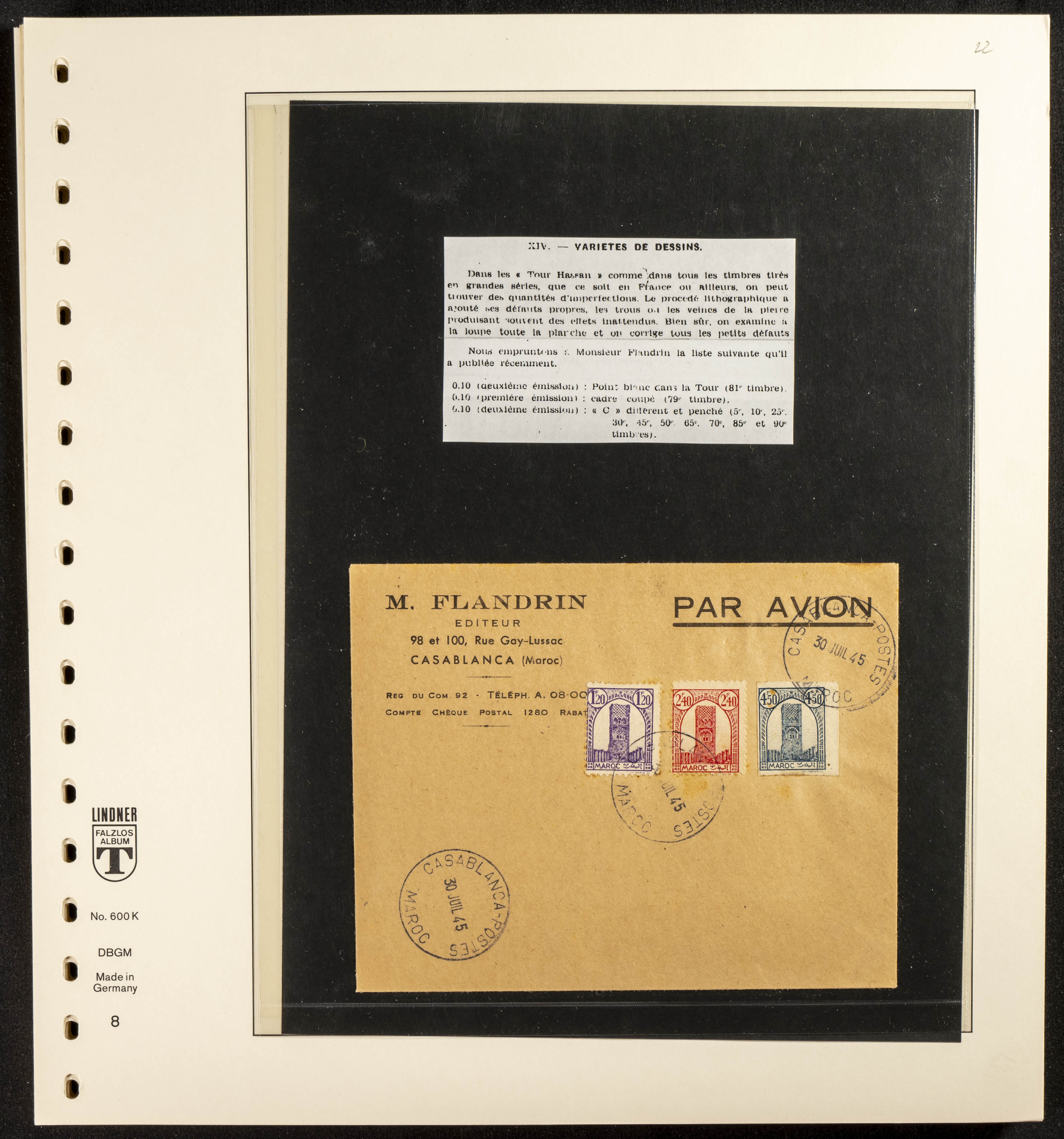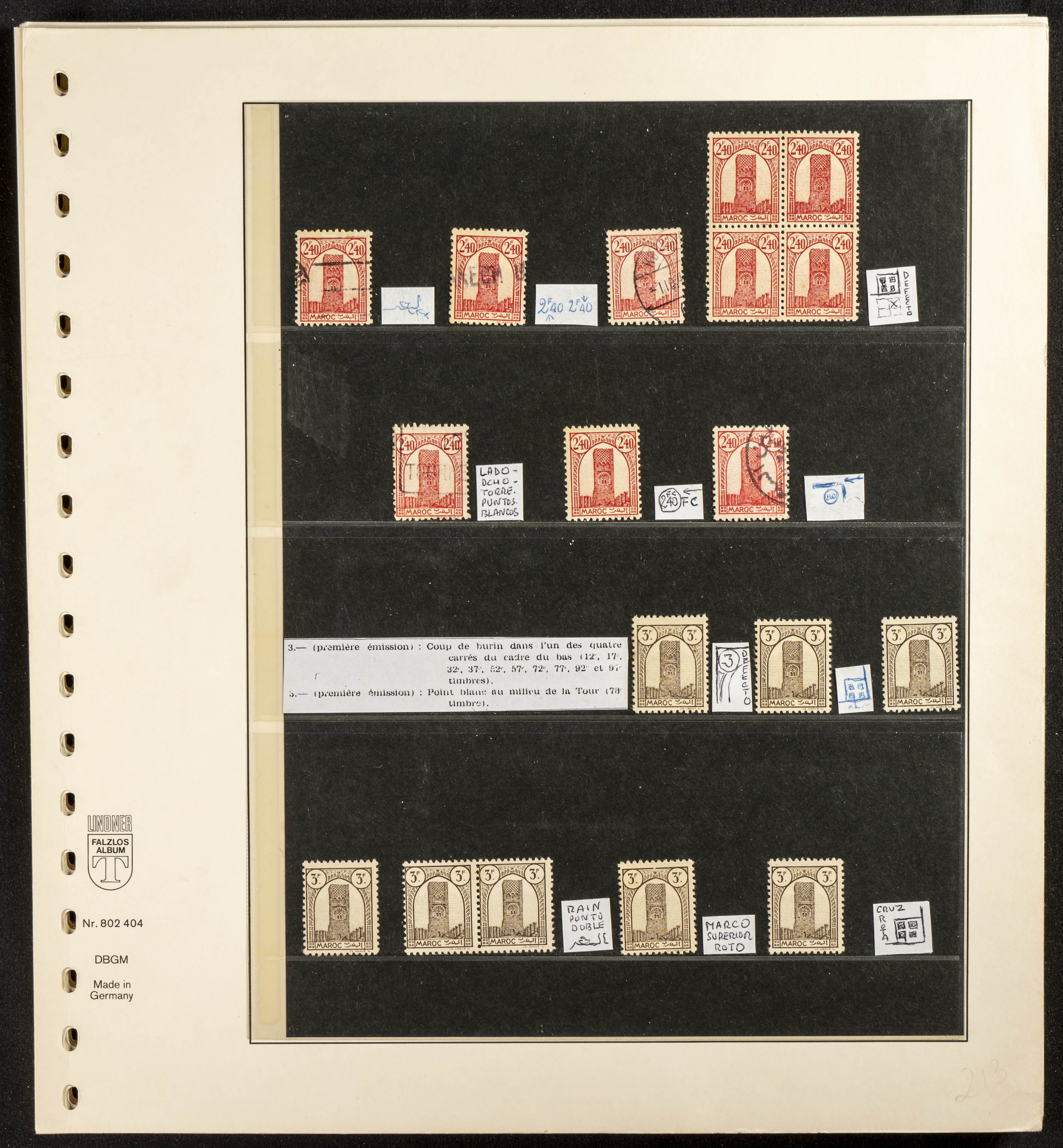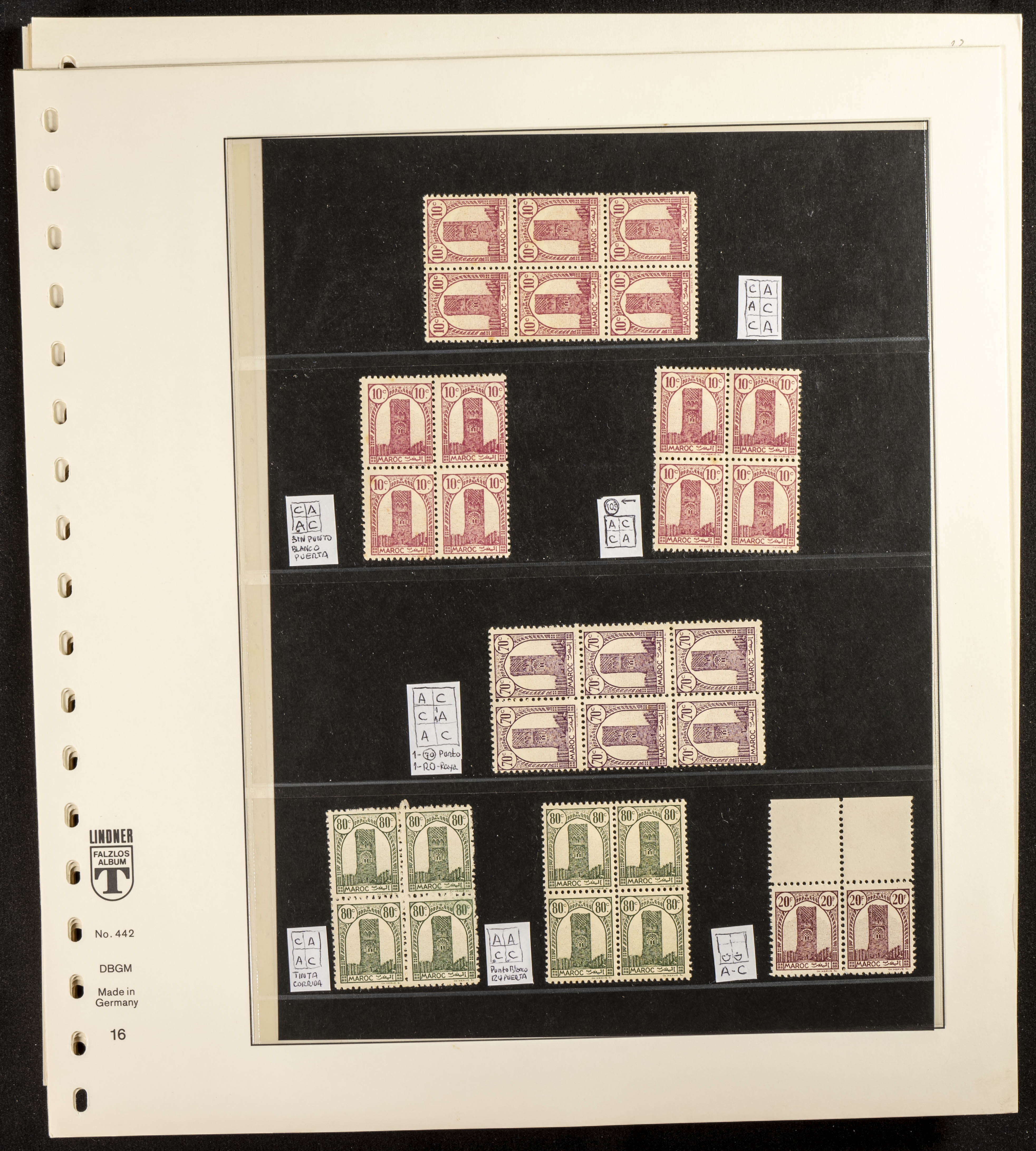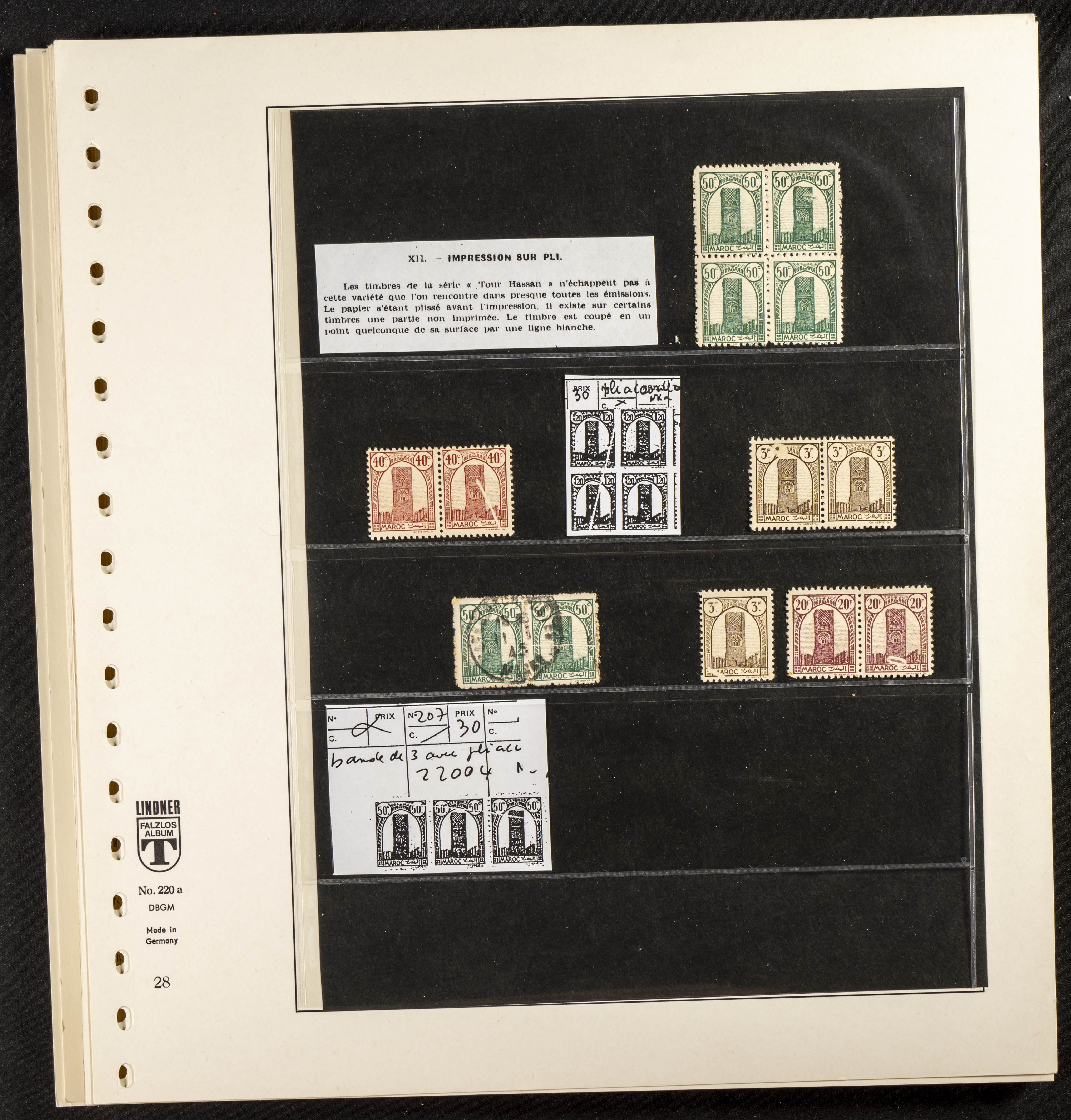 English ★/(1943ca). Spectacular collection specializing in the 1943 "Tour Hassan" issue, featuring stamp types (different print runs), perforation varieties (imperforate, partial, or offset), printing variations (backgroundless, cliché, etc.), and numerous circulated letters. HIGH CATALOG VALUE. EXAMINATION IS A MUST.