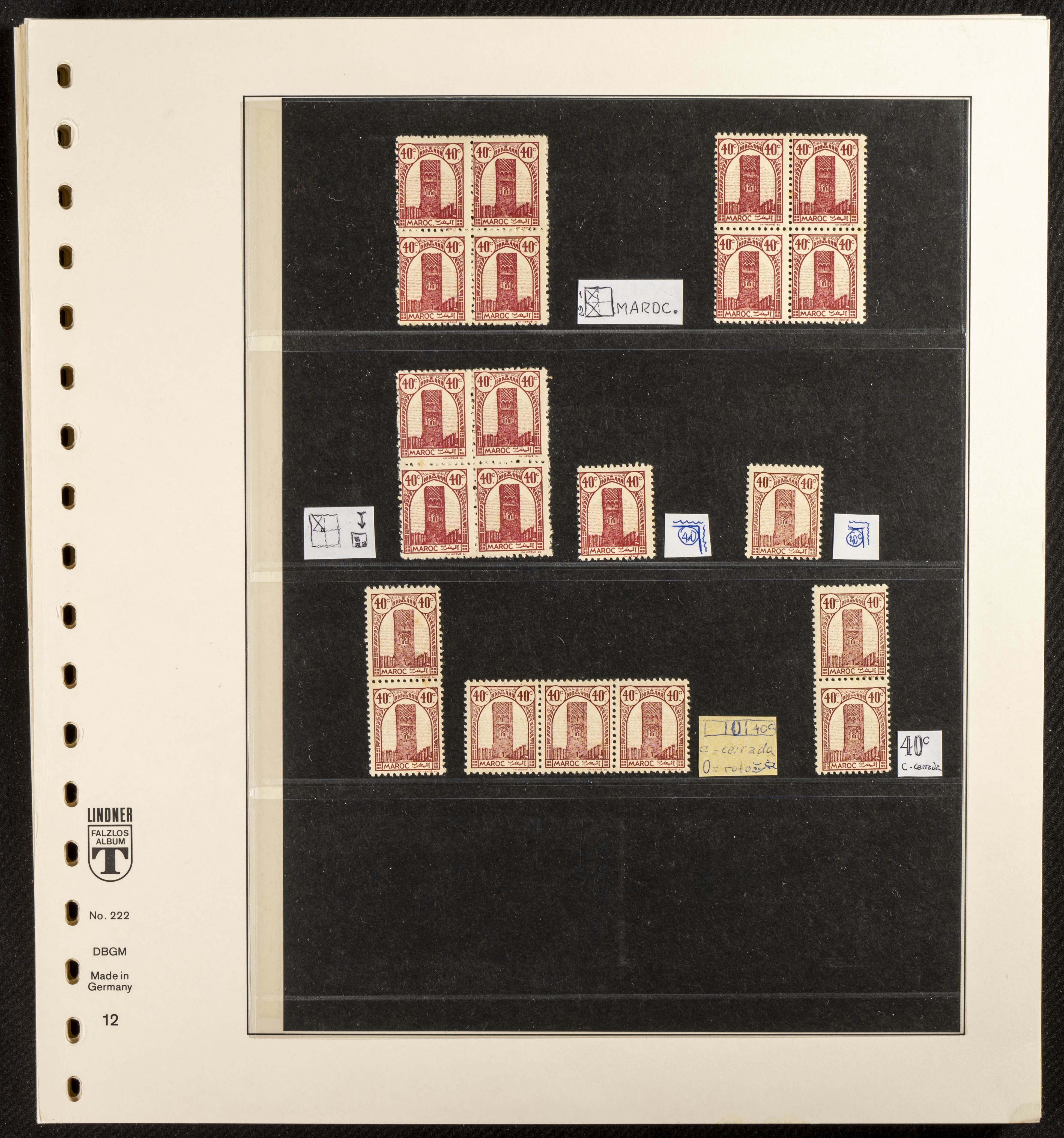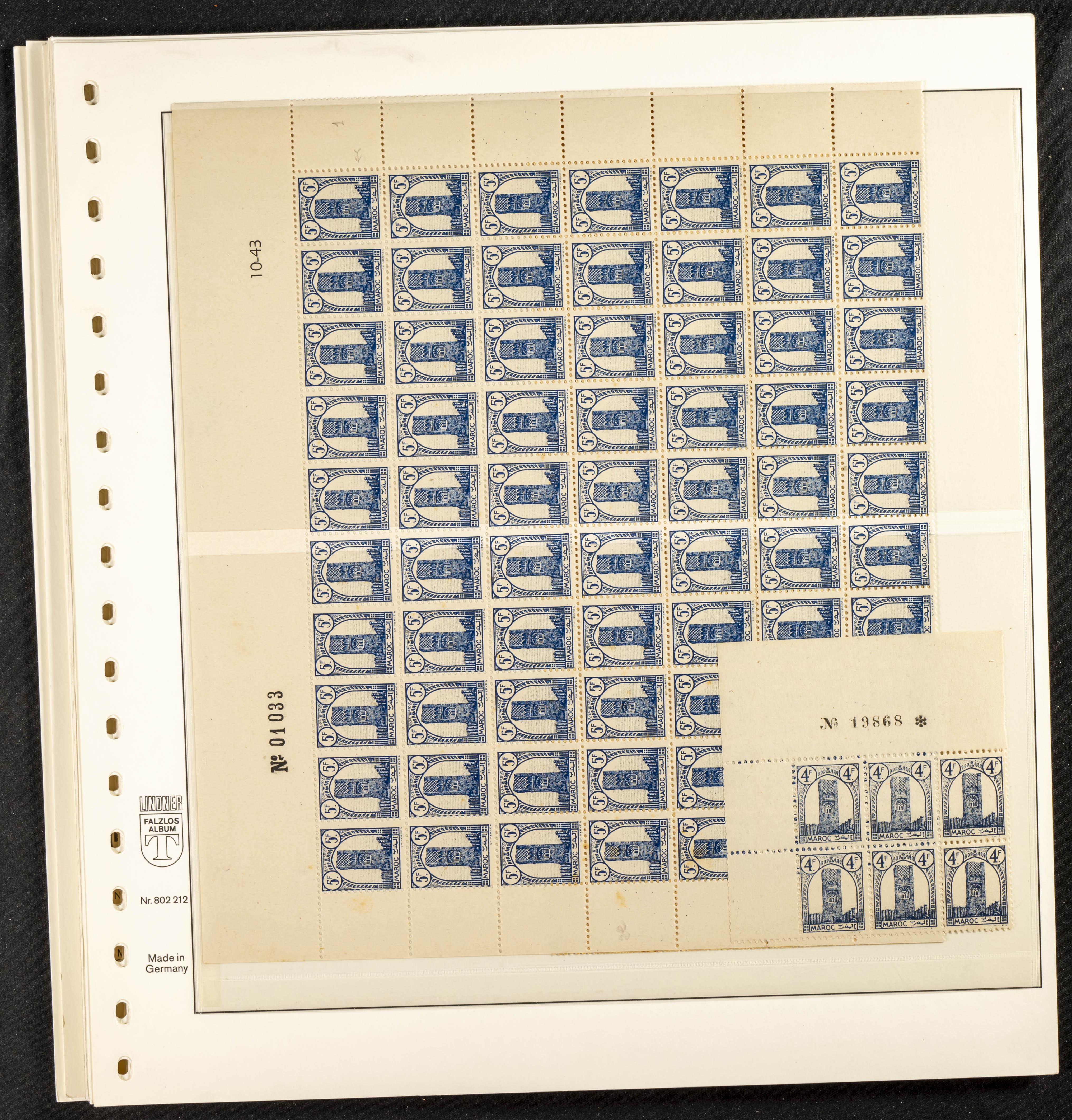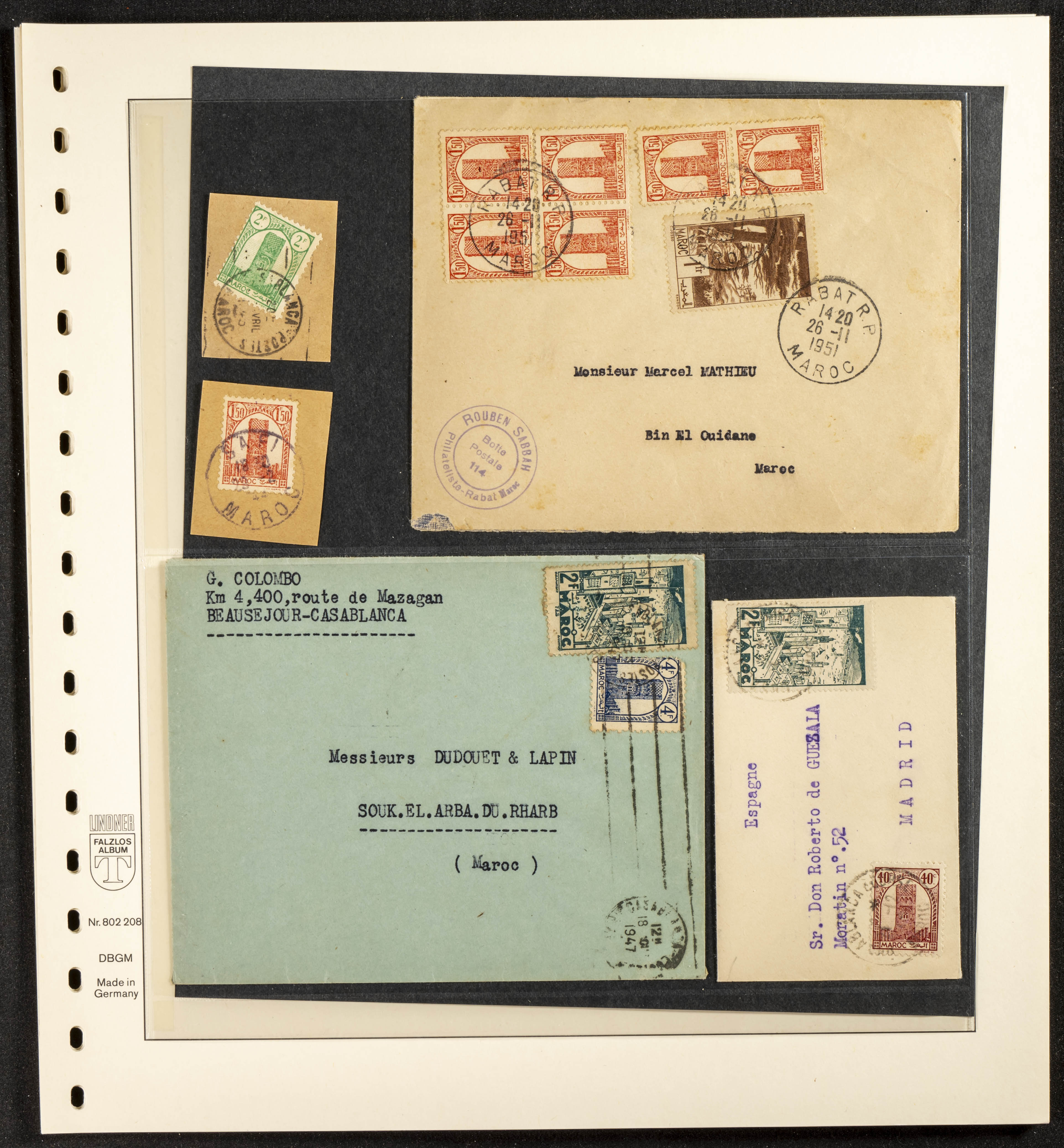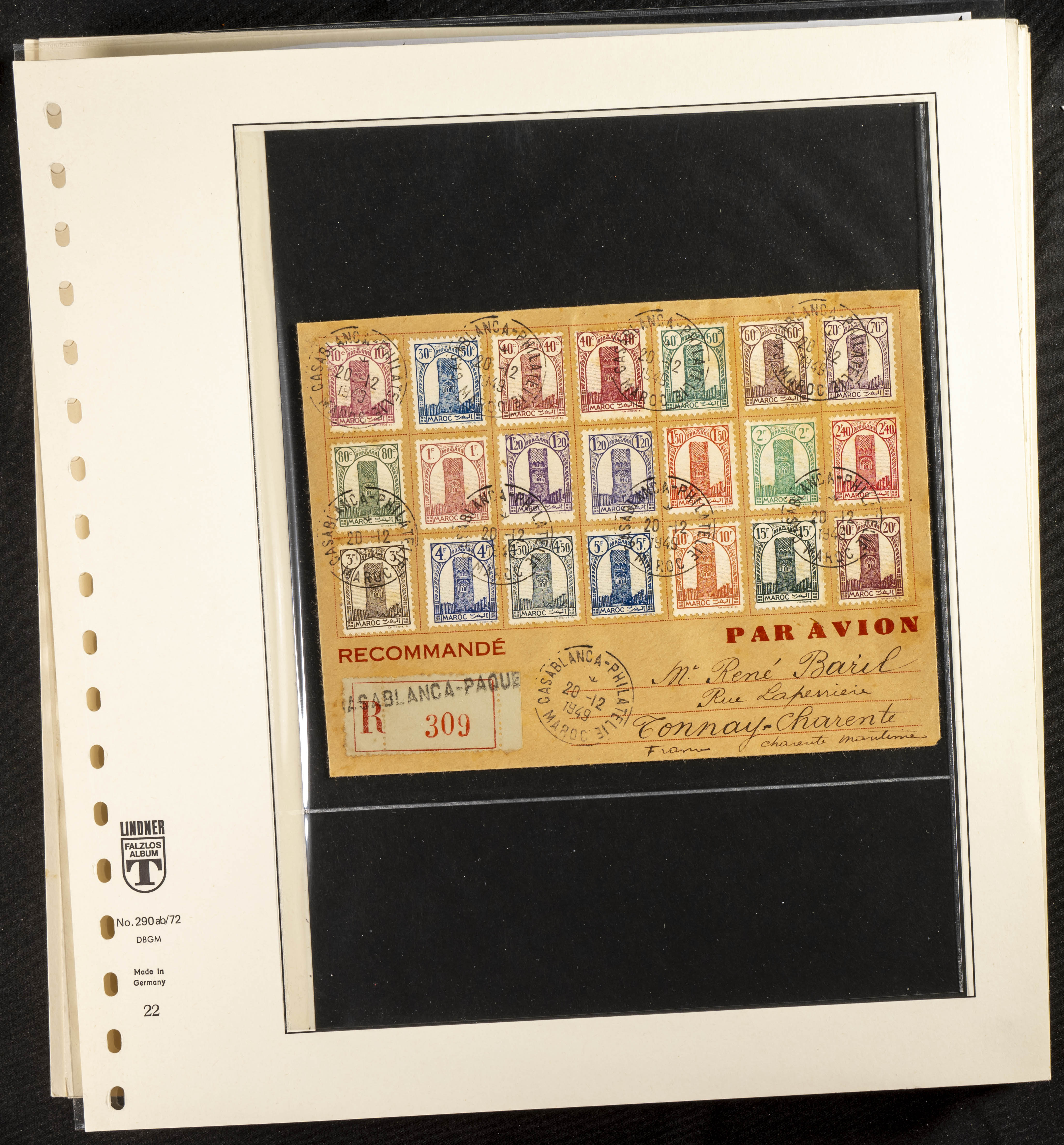 English ★/(1943ca). Spectacular collection specializing in the 1943 "Tour Hassan" issue, featuring stamp types (different print runs), perforation varieties (imperforate, partial, or offset), printing variations (backgroundless, cliché, etc.), and numerous circulated letters. HIGH CATALOG VALUE. EXAMINATION IS A MUST.