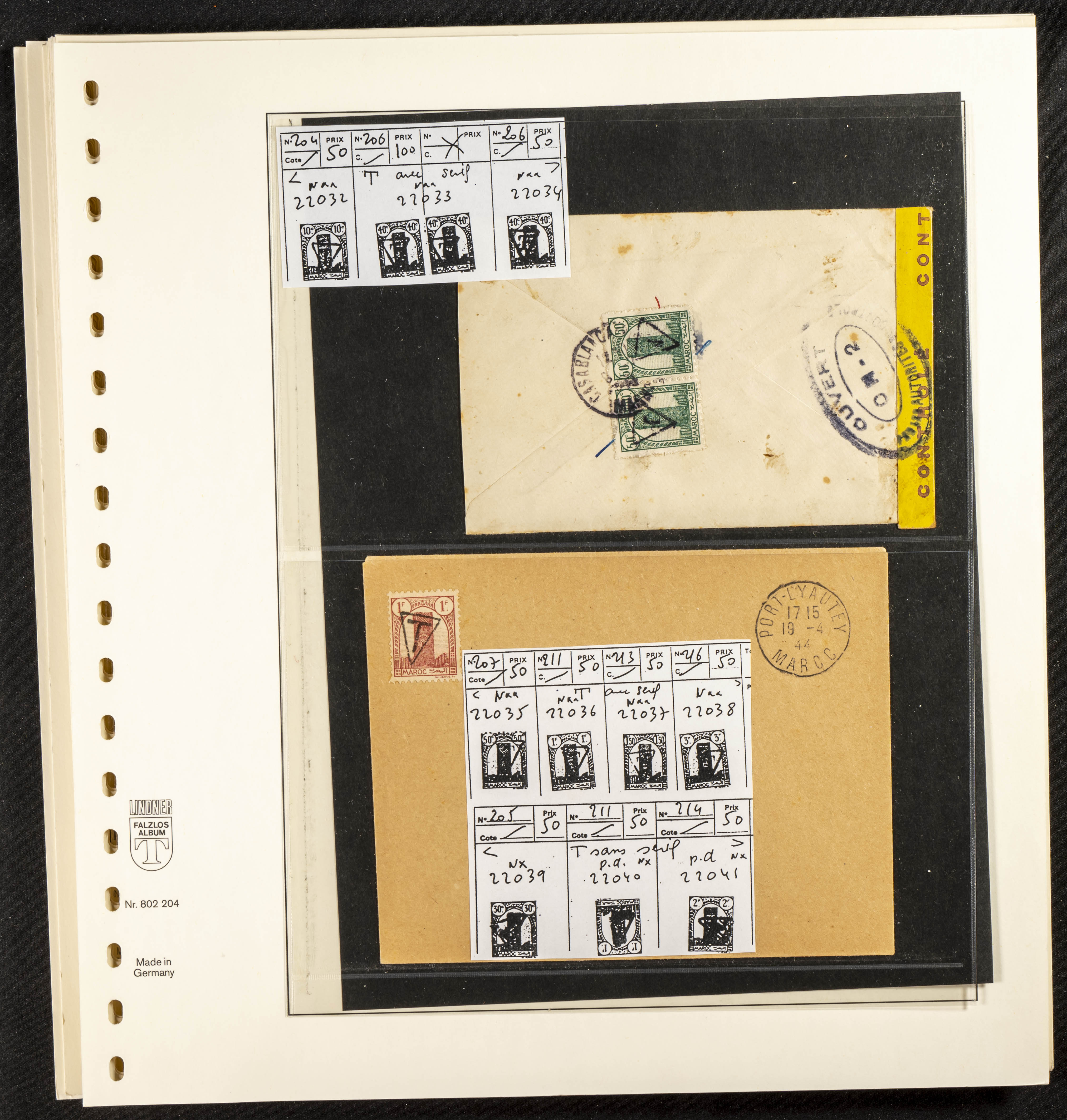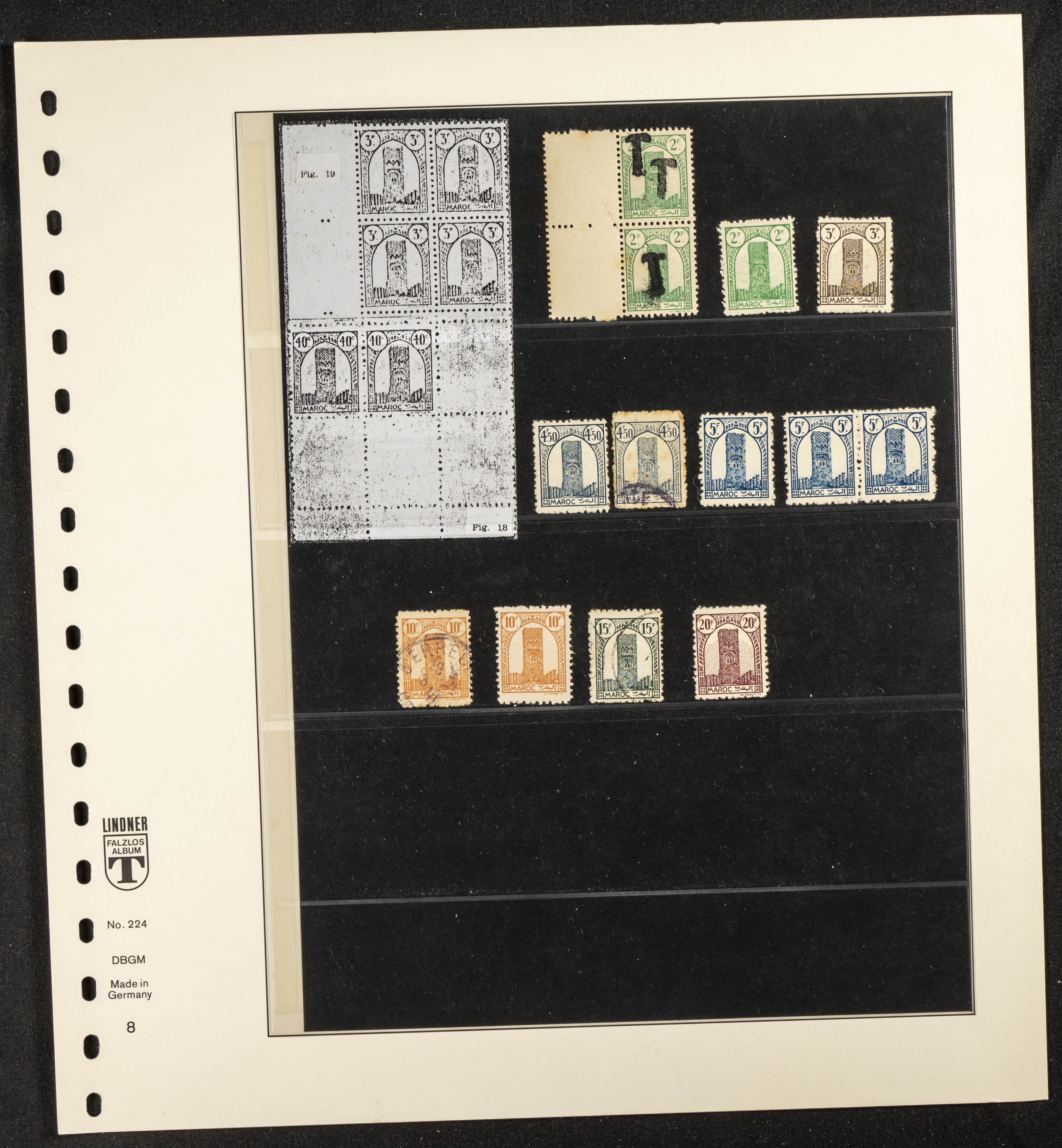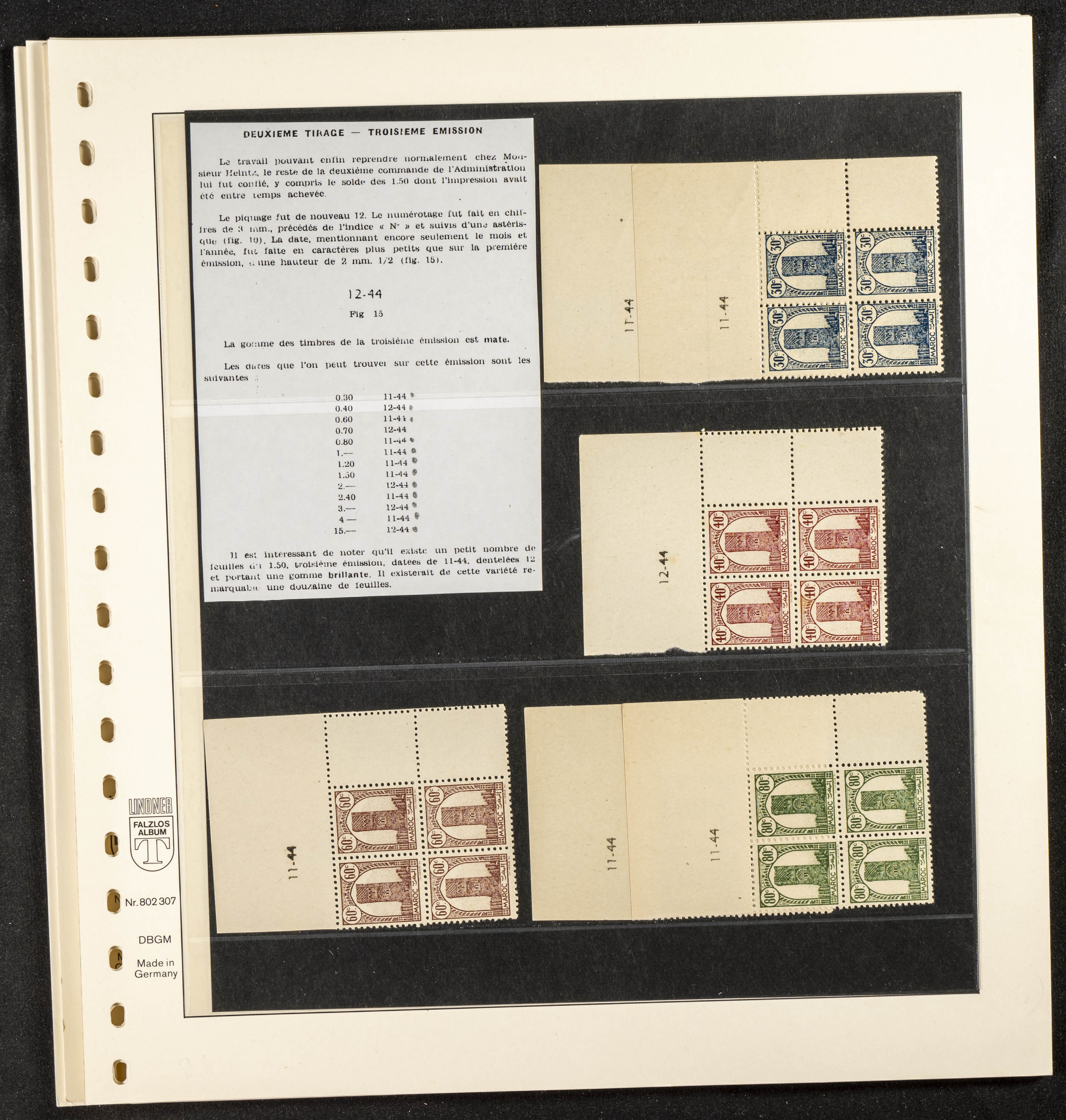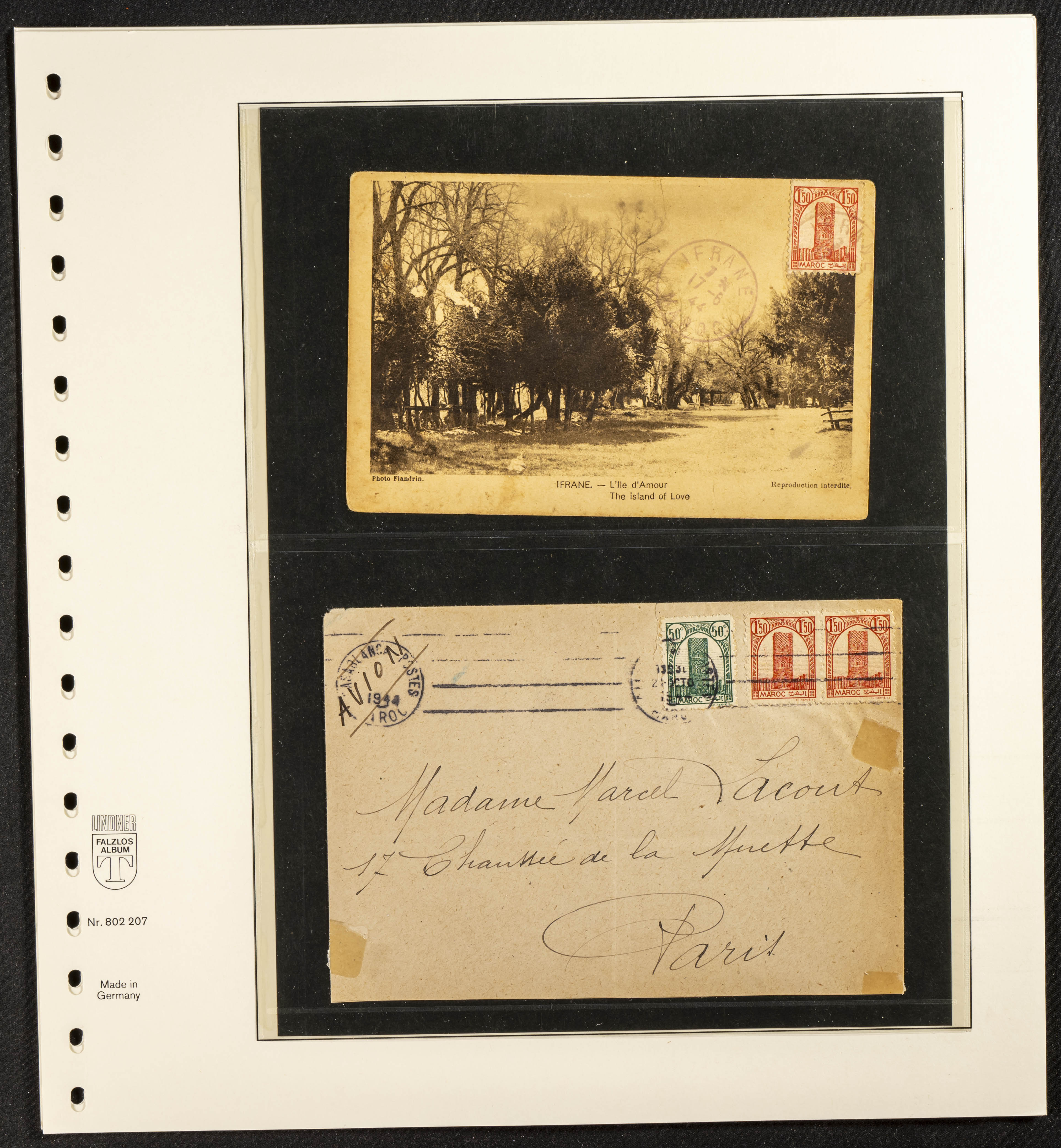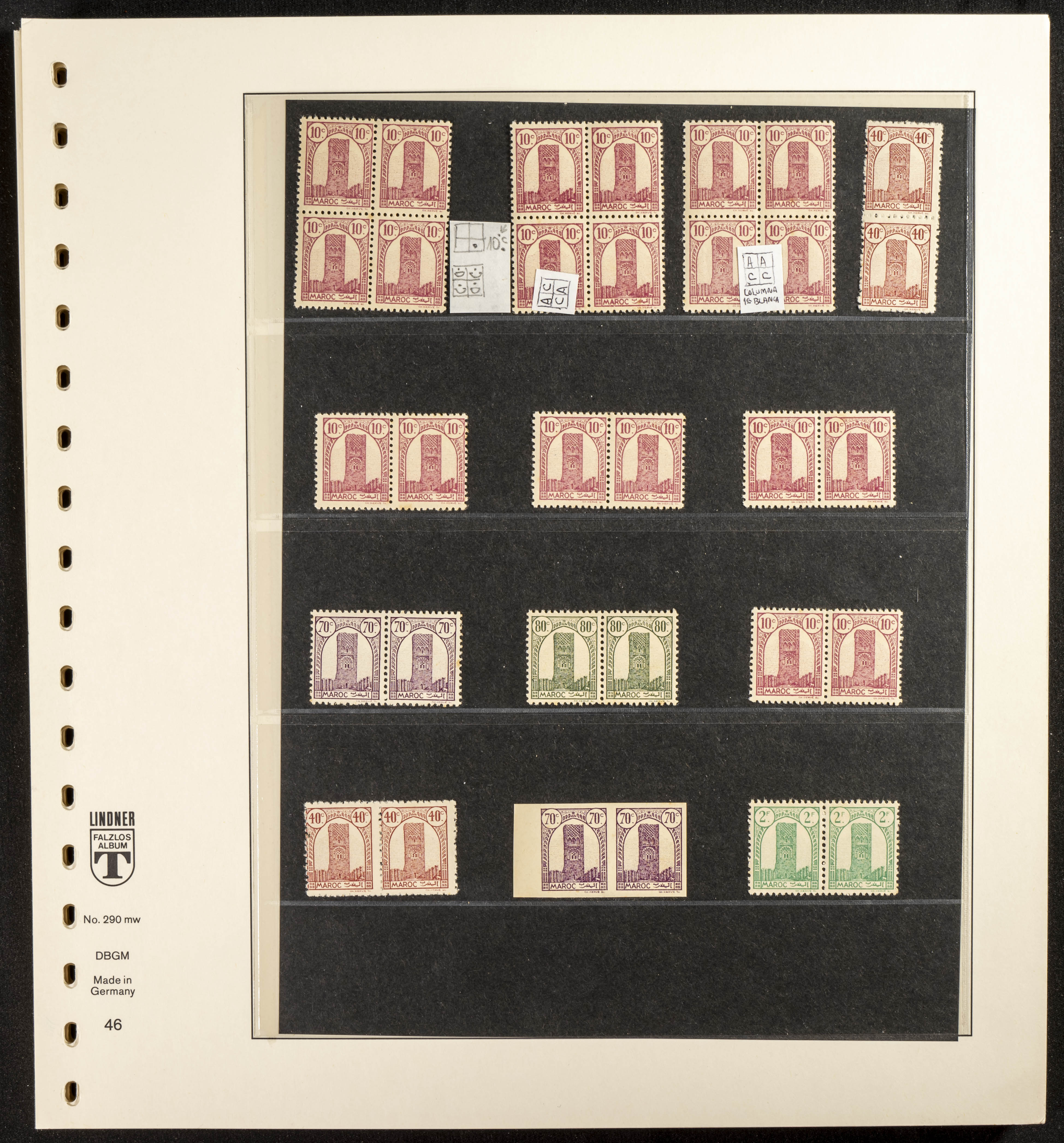 English ★/(1943ca). Spectacular collection specializing in the 1943 "Tour Hassan" issue, featuring stamp types (different print runs), perforation varieties (imperforate, partial, or offset), printing variations (backgroundless, cliché, etc.), and numerous circulated letters. HIGH CATALOG VALUE. EXAMINATION IS A MUST.