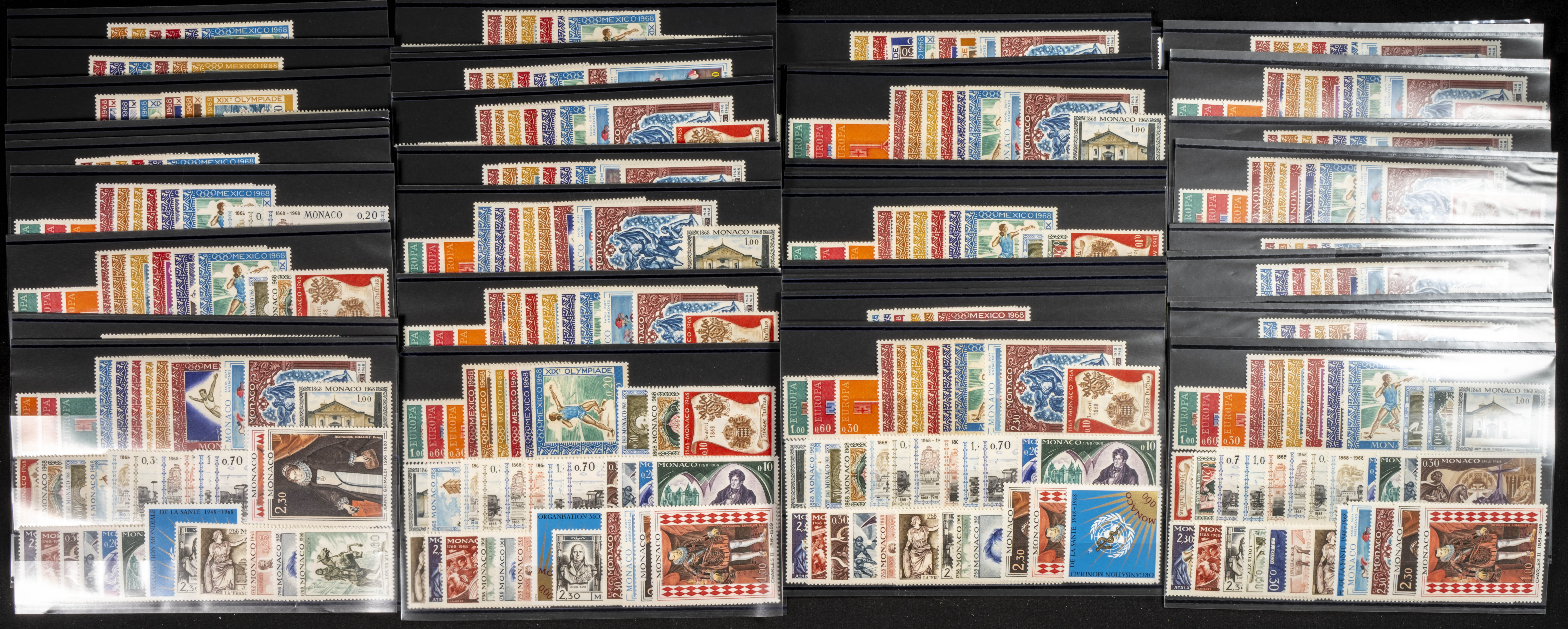 Yvert 736/71(42). 1968. Set of forty-two complete years 1968 (ordinary mail only) from Monaco, in mint condition (mounted on cards). TO BE EXAMINED. Yvert 2026: 1,974 Euros