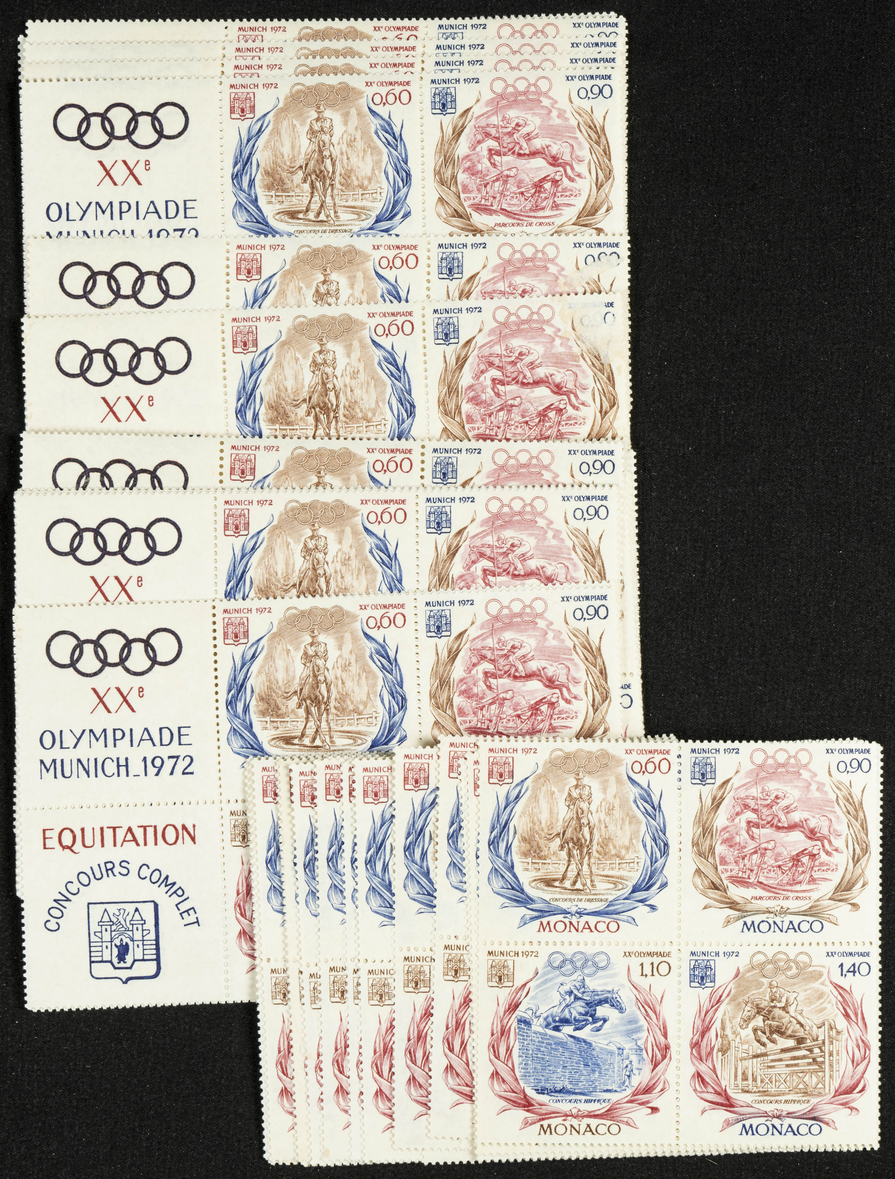 English Yvert 890/93(50). 1972. Set of fifty complete series (twenty-six with vignettes) of the 1972 Monaco Munich Olympics, in mint condition. TO BE EXAMINED. Yvert 2026: 916 Euros