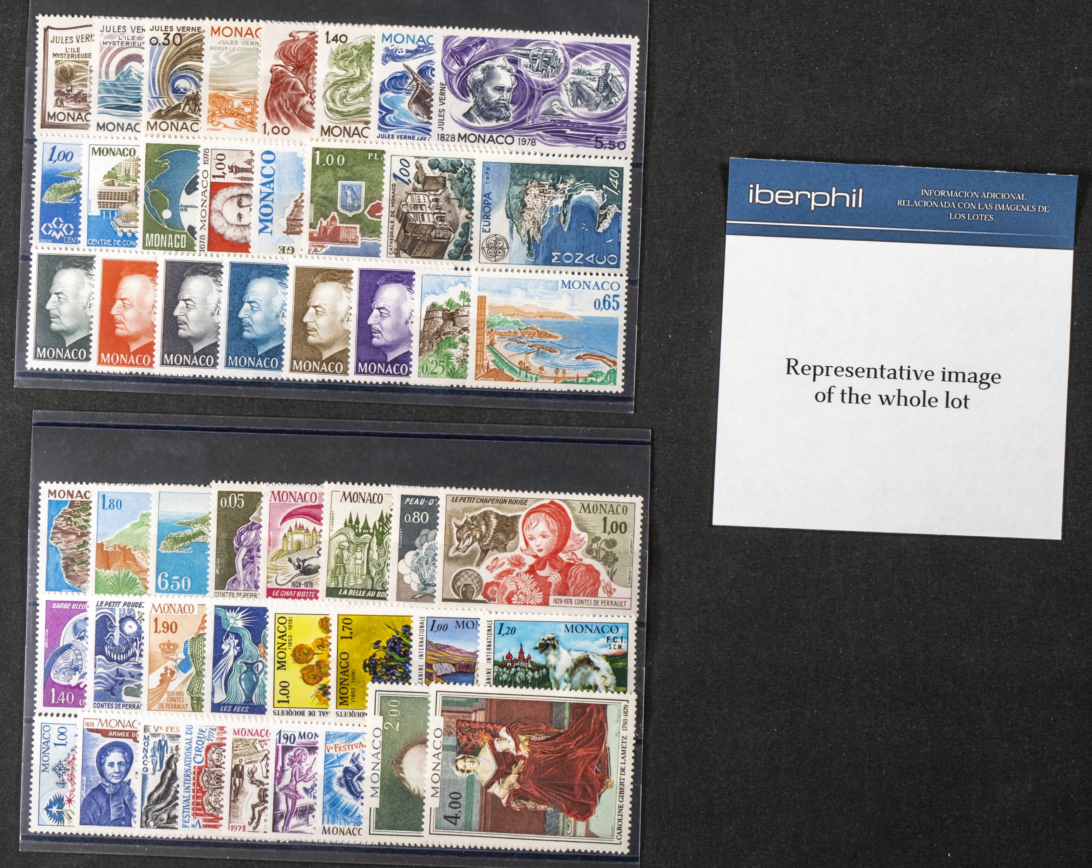 Yvert 1125/74(21). 1978. Set of twenty-one complete years 1978 (ordinary mail only and no souvenir sheet stamp, forty-nine stamps) of Monaco, in mint condition (mounted on tokens). TO BE EXAMINED. Yvert 2026: 2,154 Euros