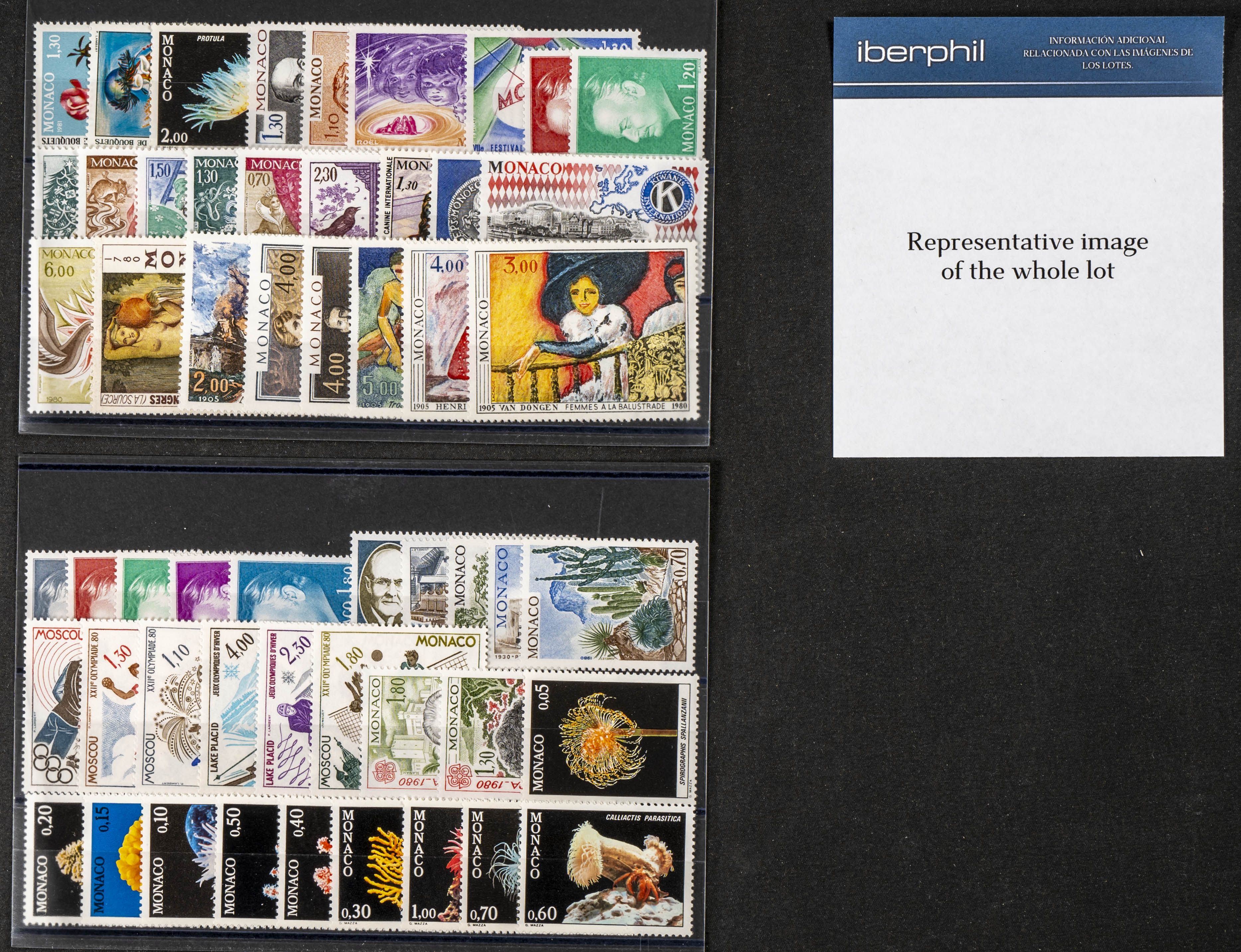 English Yvert 1209/63(25). 1980. Complete set of twenty-five stamps from Monaco, 1980 (ordinary mail only, fifty-five stamps), in mint condition (mounted on tokens). TO BE EXAMINED. Yvert 2026: 3,050 Euros