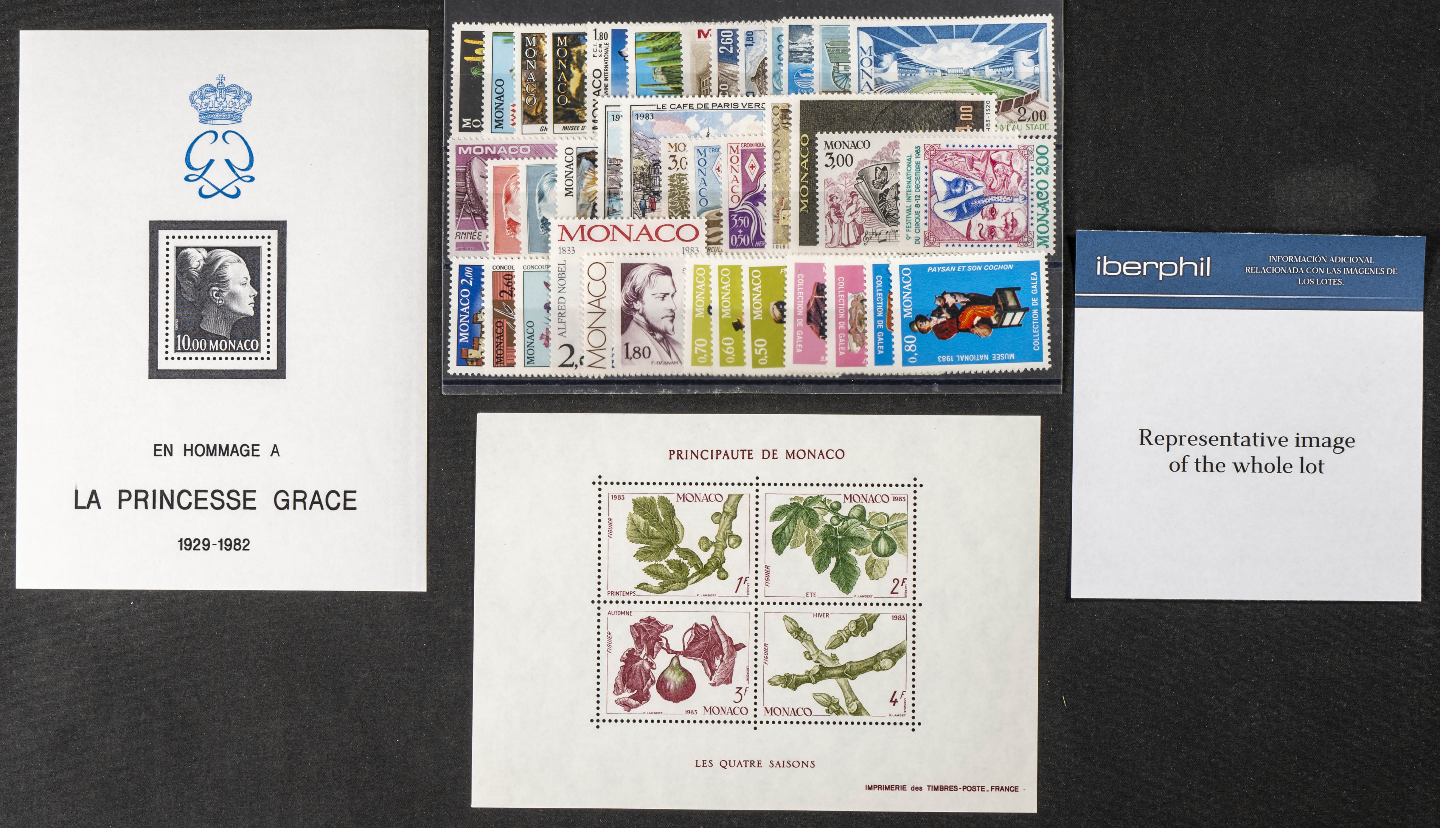 Yvert 1359/03(18). 1983. Complete set of eighteen years 1983 (ordinary mail only, including souvenir sheets, forty-five stamps) of Monaco, in mint condition (mounted on tokens). TO BE EXAMINED. Yvert 2026: 2,142 Euros