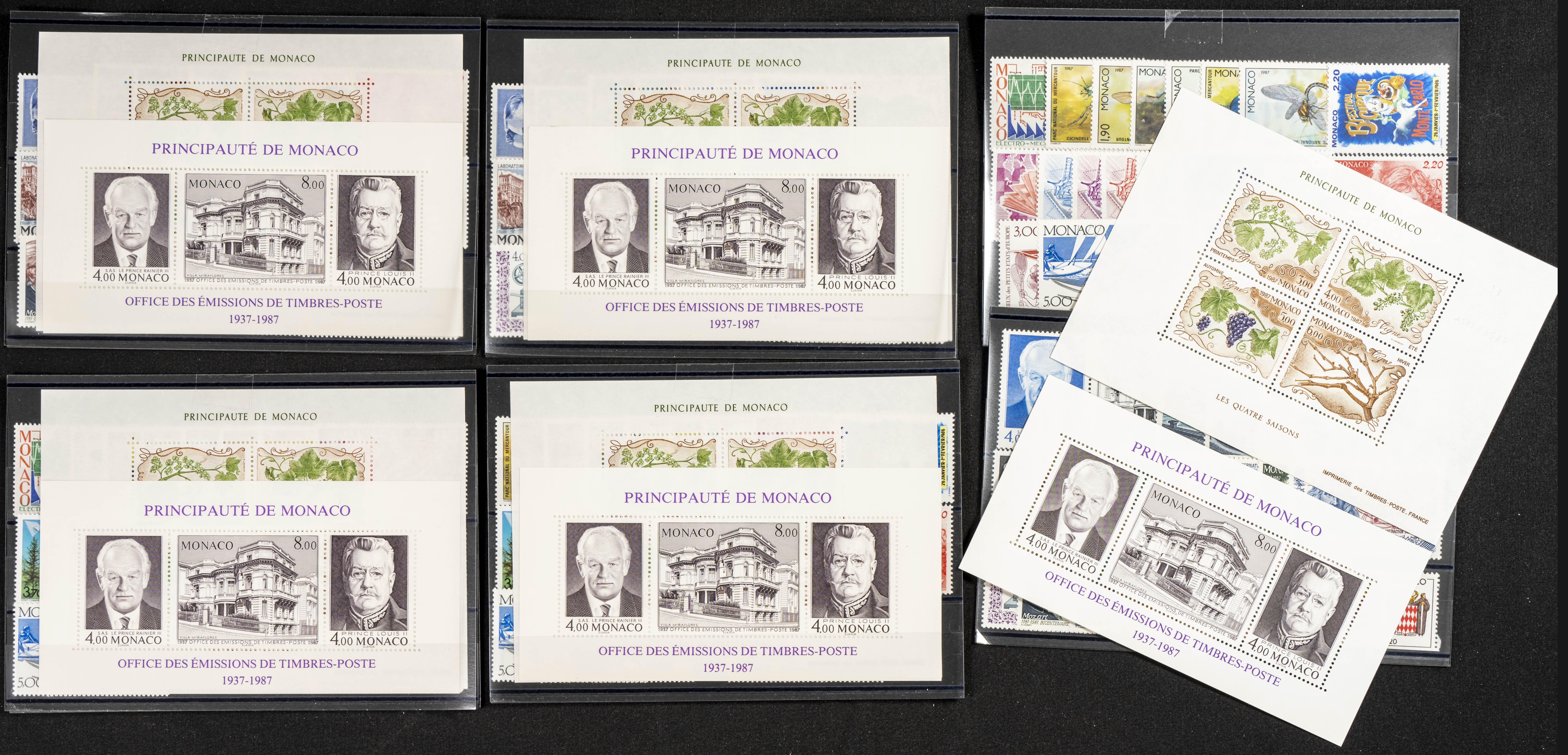 Yvert 1562/13(5). 1987. Complete set of five years 1987 (ordinary mail only and includes souvenir sheet stamps) of Monaco, in mint condition (mounted on tokens). TO BE EXAMINED. Yvert 2026: 660 Euros