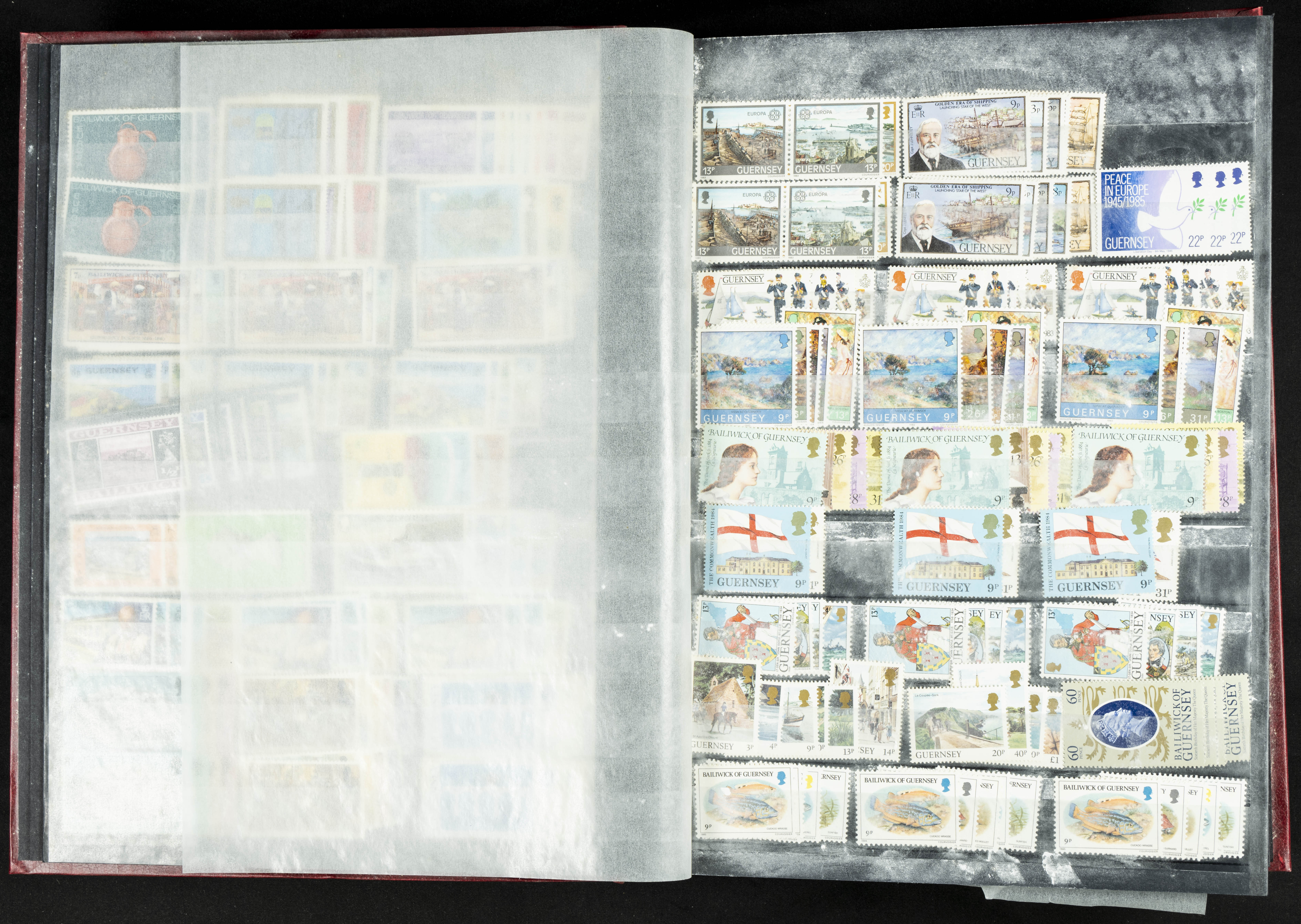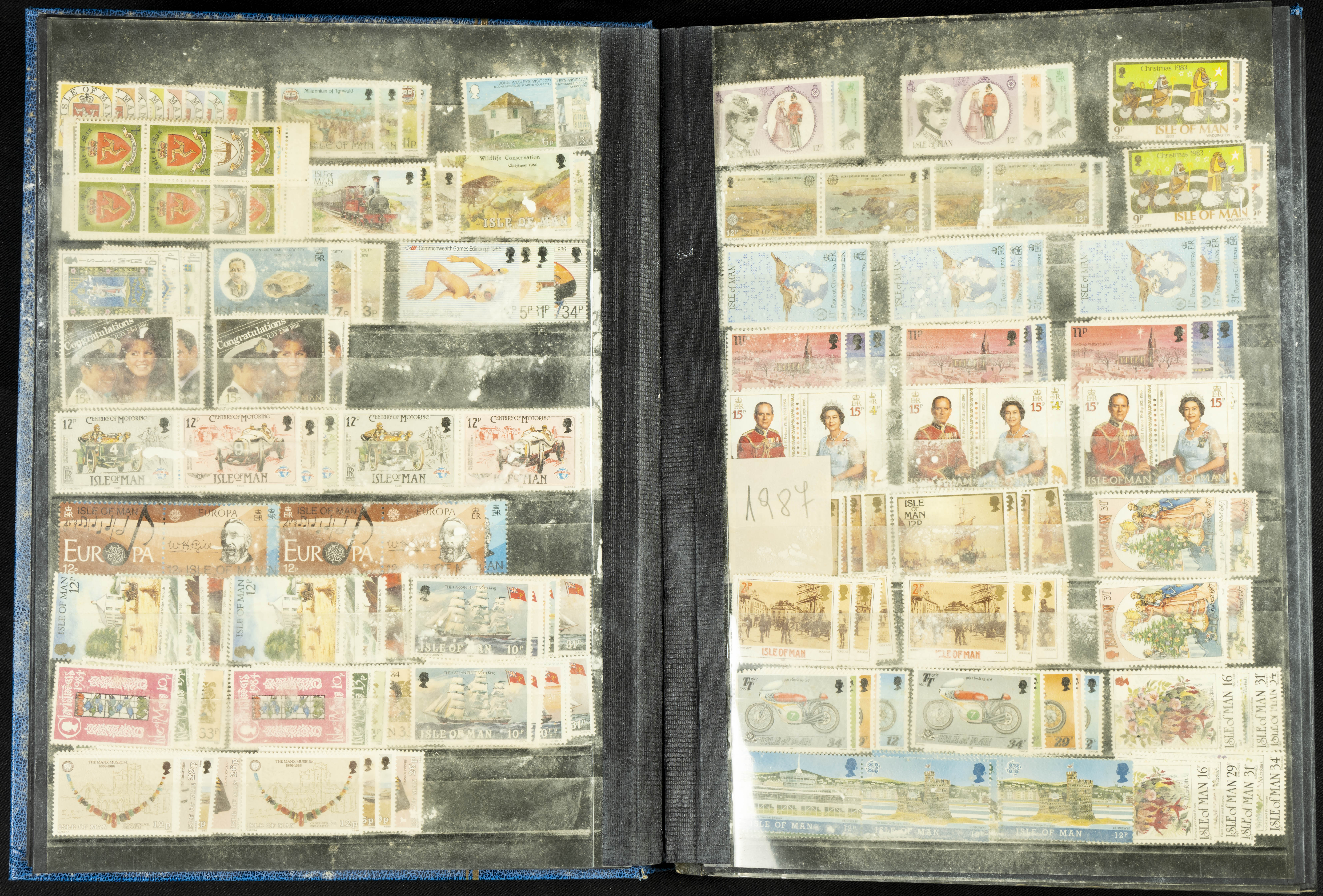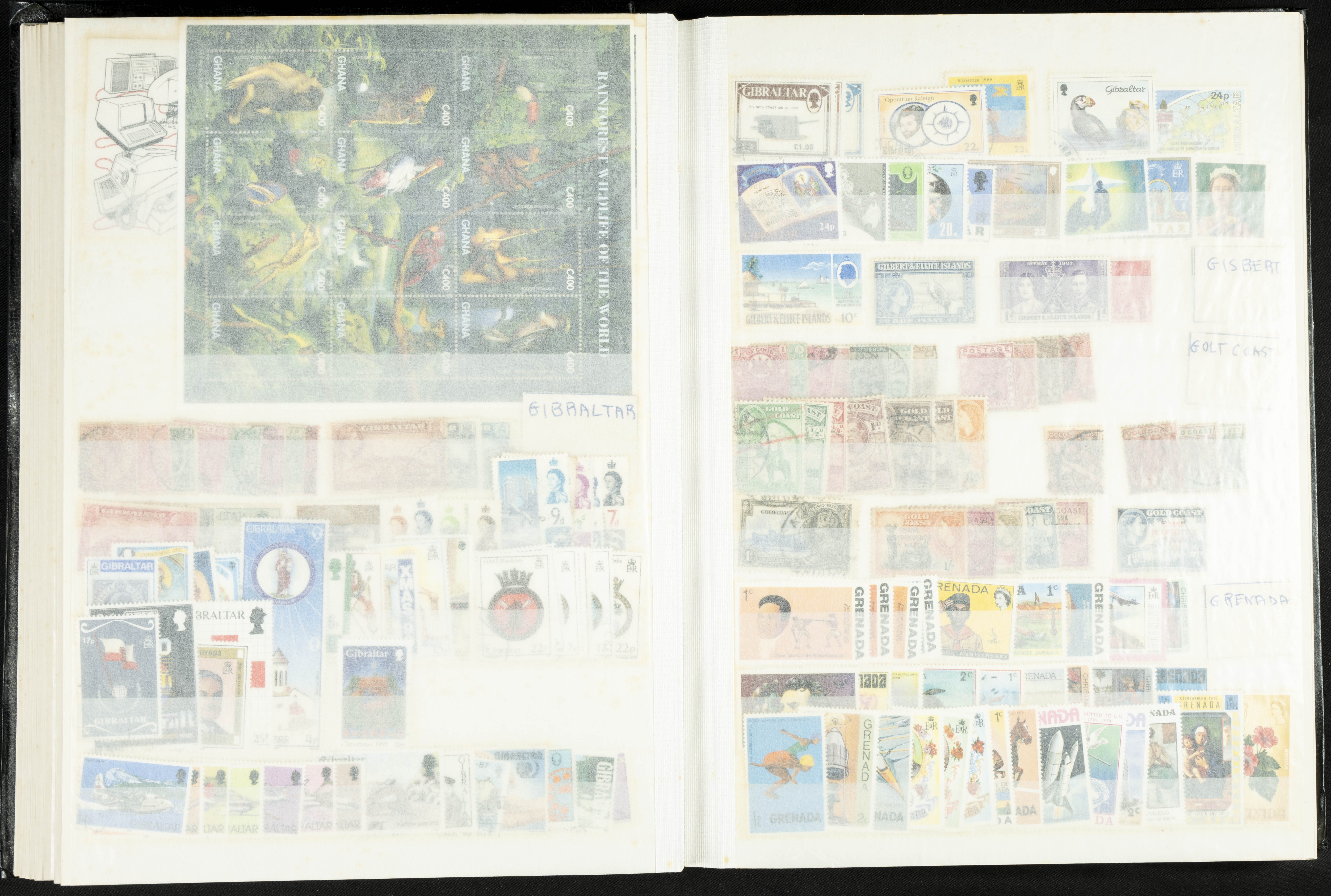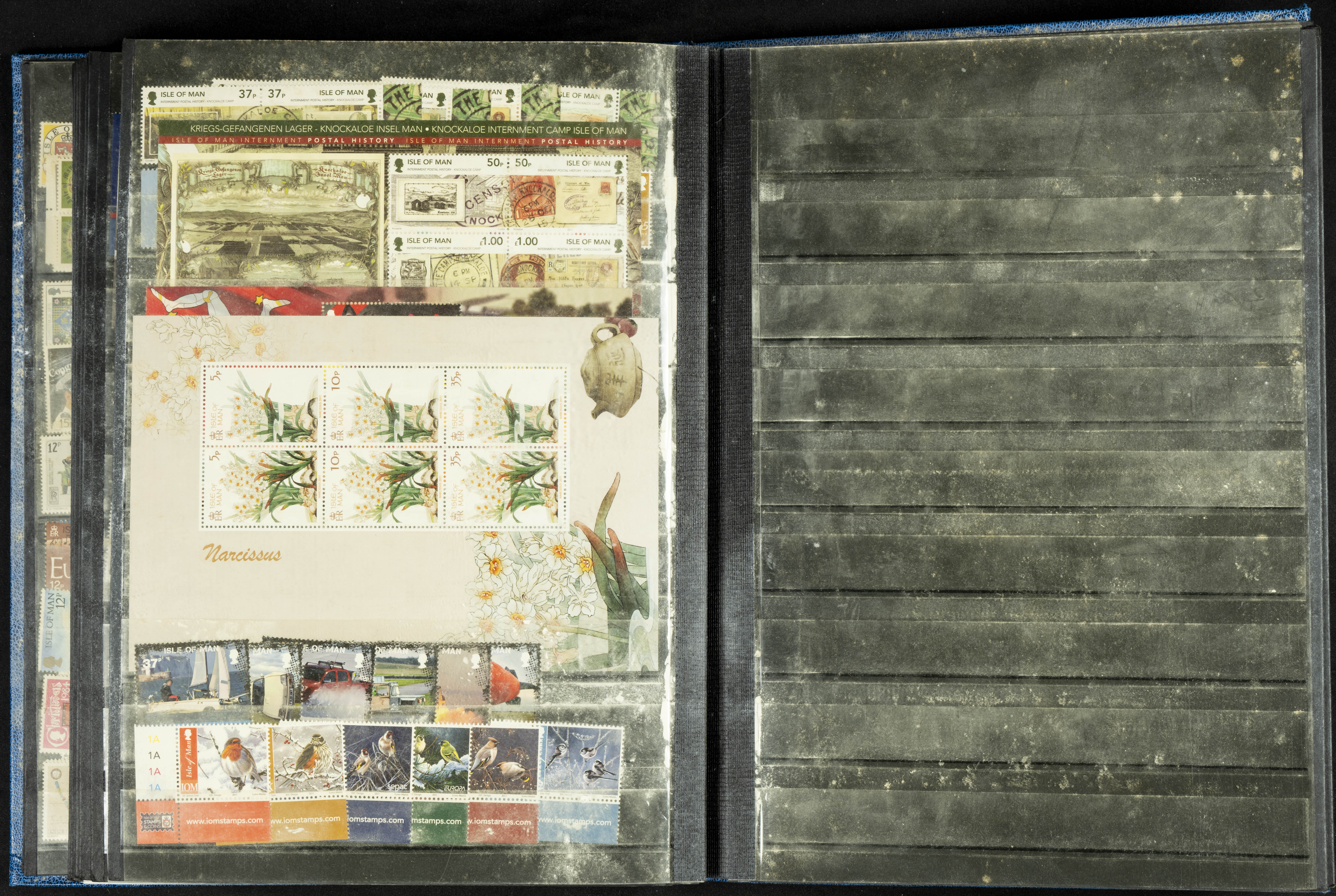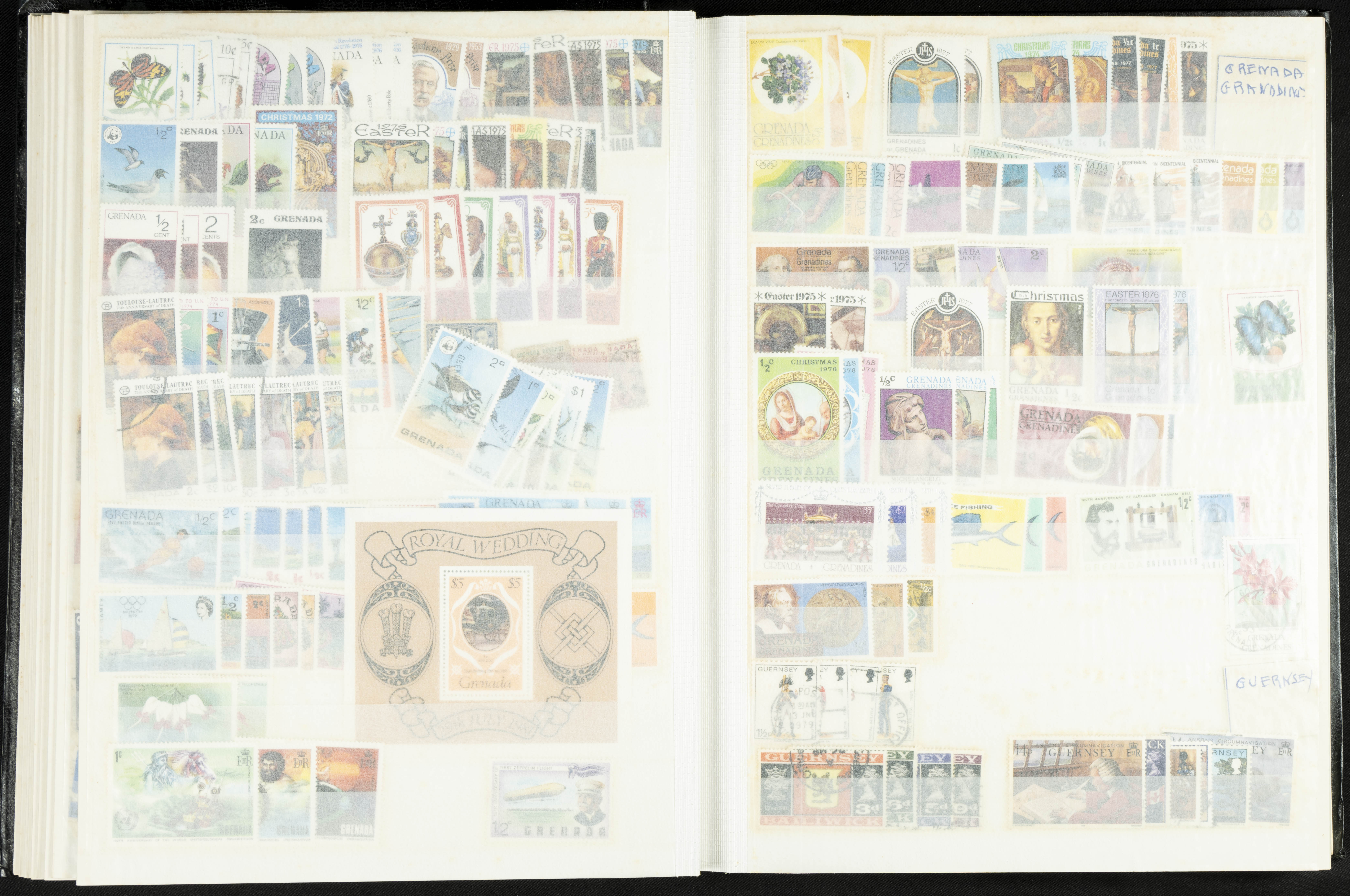 English ★★/(1930ca). Collection of thousands of loose stamps, complete series, and souvenir sheets from Great Britain, the Channel Islands (Guernsey, Jersey, and Man), and various Commonwealth countries, mostly from 1930 to 2005, in mint and used condition. The modern portion is generally very complete with some duplicates (ninety percent of the stamps are mounted in stocks and coated with talcum powder to reduce humidity). VERY HIGH CATALOGUE AND FACE VALUE. TO BE EXAMINED.