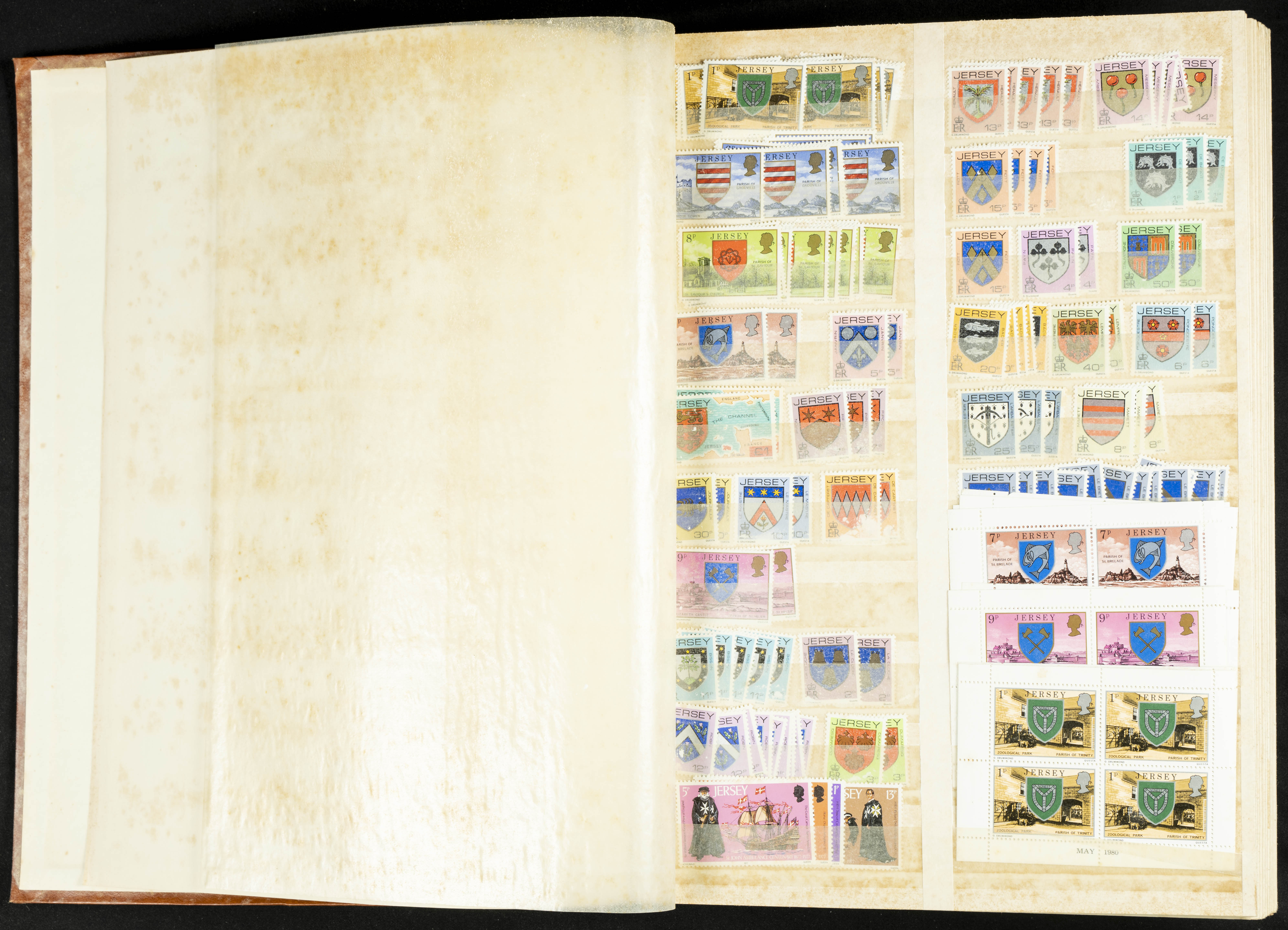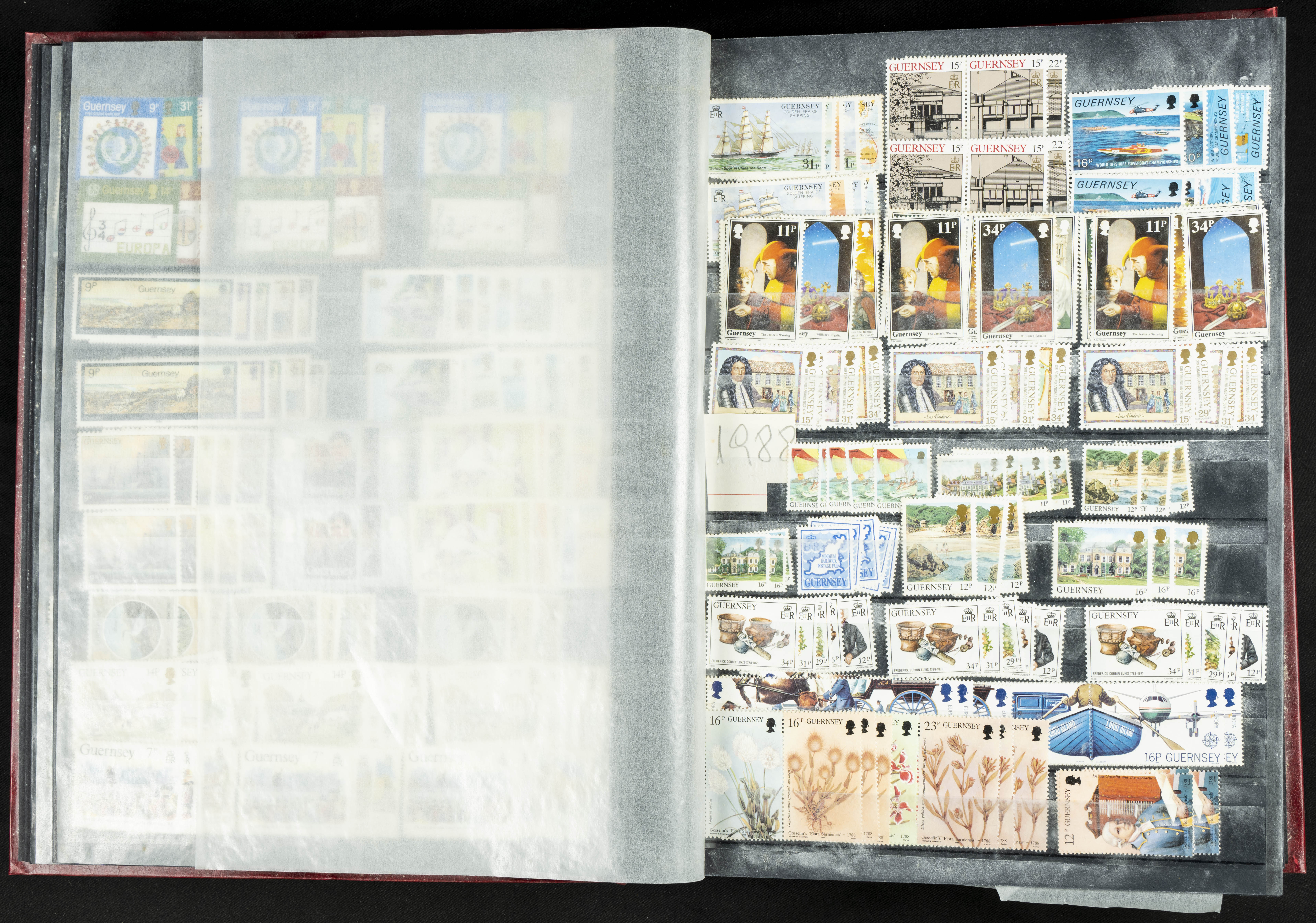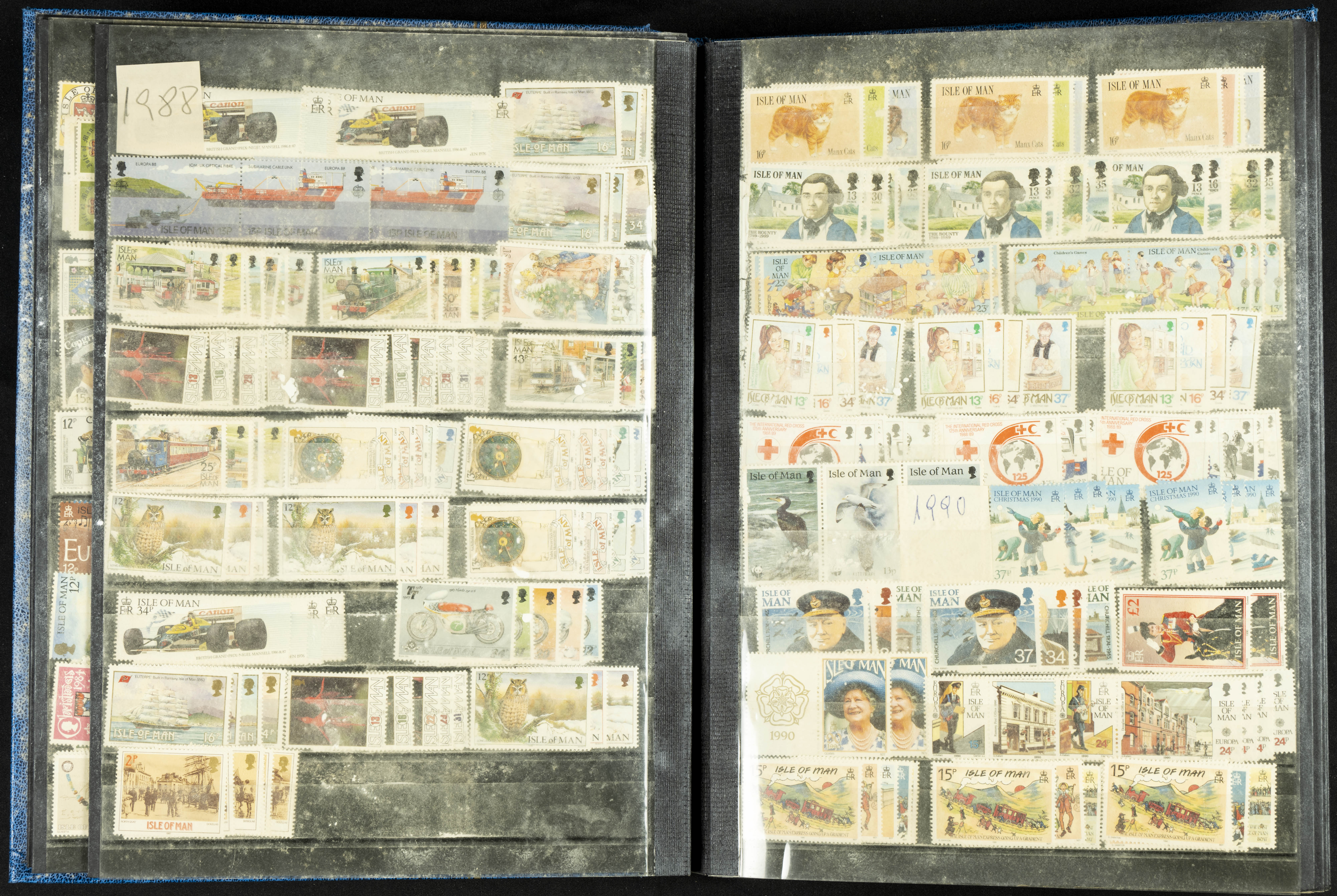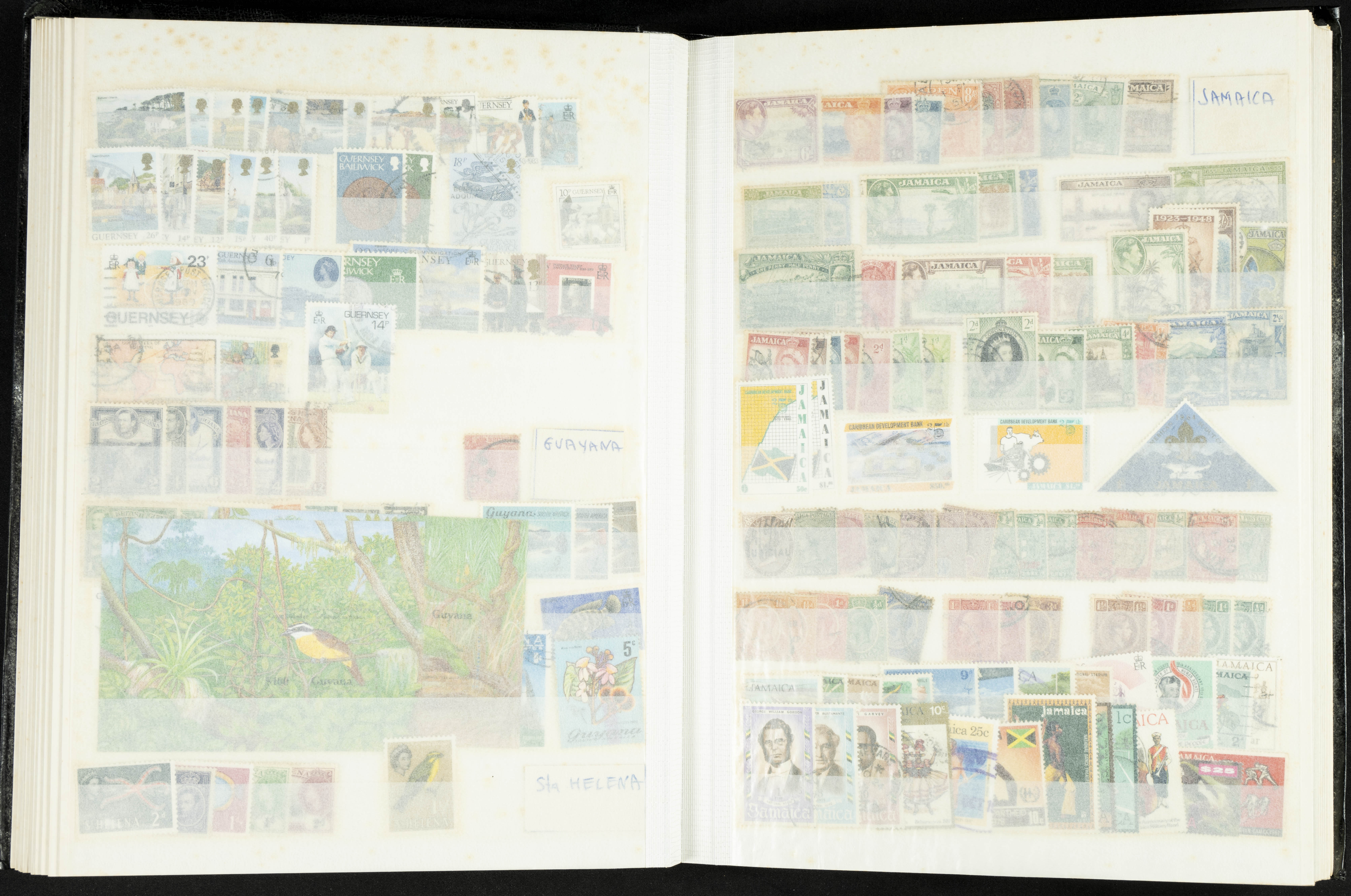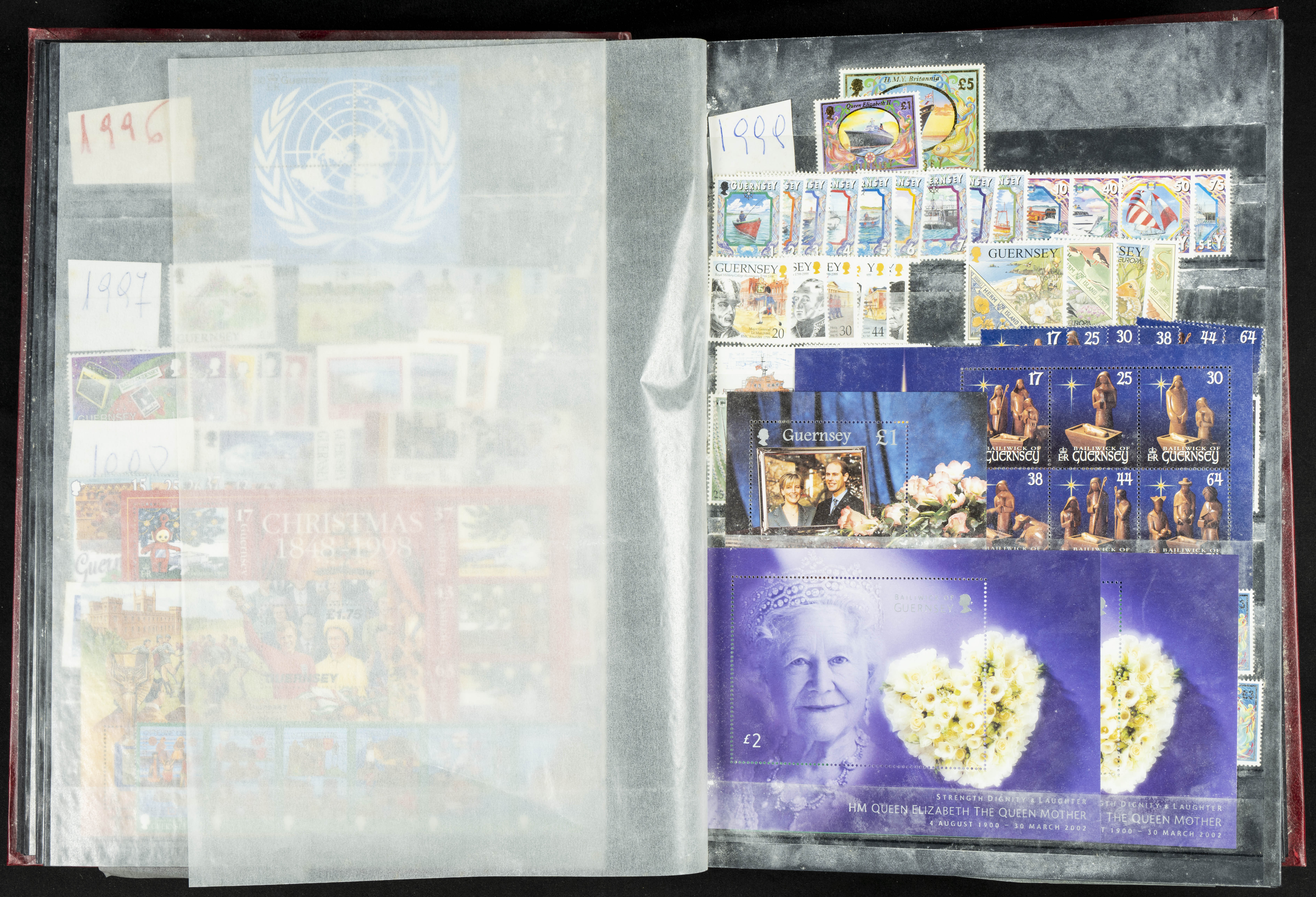 English ★★/(1930ca). Collection of thousands of loose stamps, complete series, and souvenir sheets from Great Britain, the Channel Islands (Guernsey, Jersey, and Man), and various Commonwealth countries, mostly from 1930 to 2005, in mint and used condition. The modern portion is generally very complete with some duplicates (ninety percent of the stamps are mounted in stocks and coated with talcum powder to reduce humidity). VERY HIGH CATALOGUE AND FACE VALUE. TO BE EXAMINED.