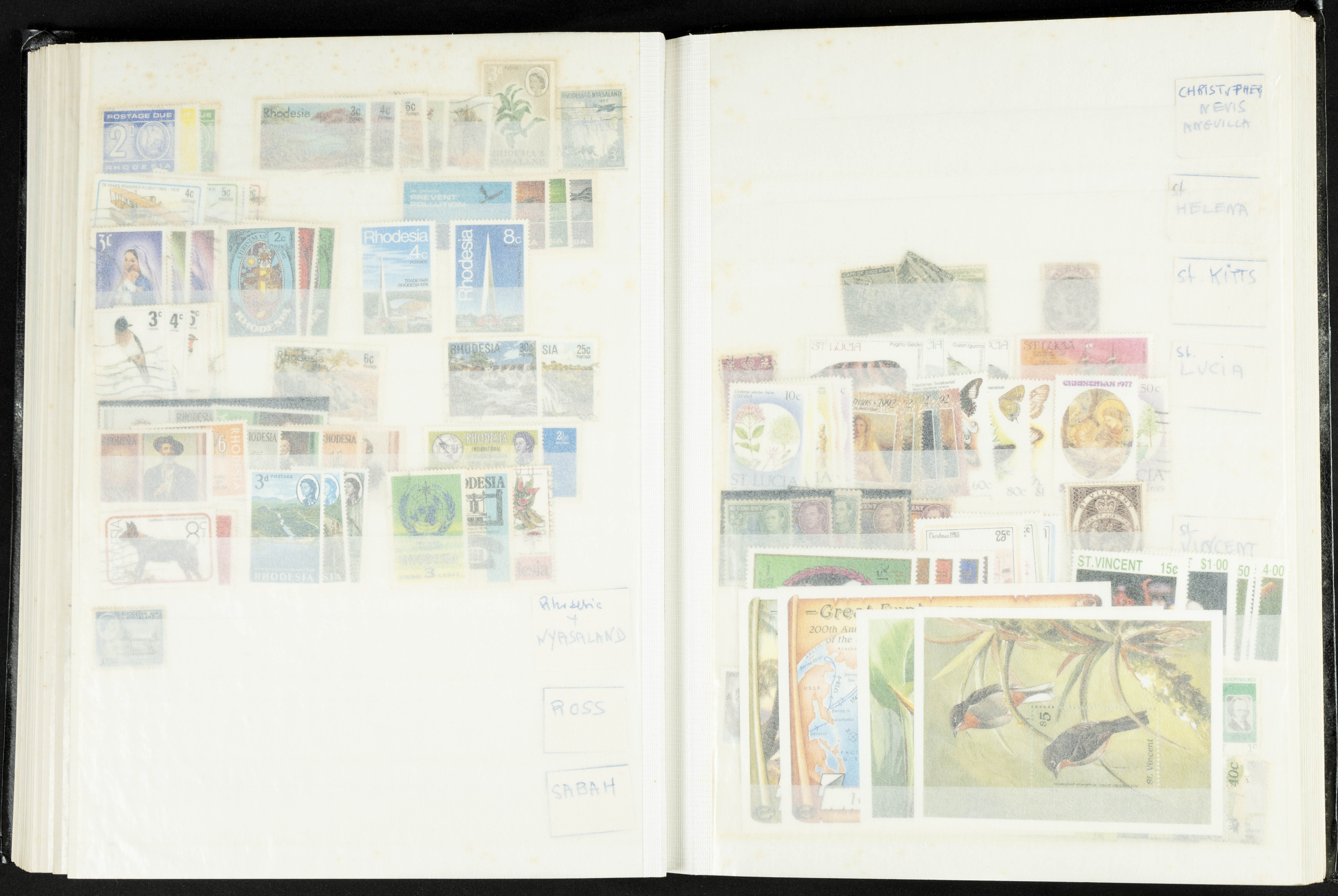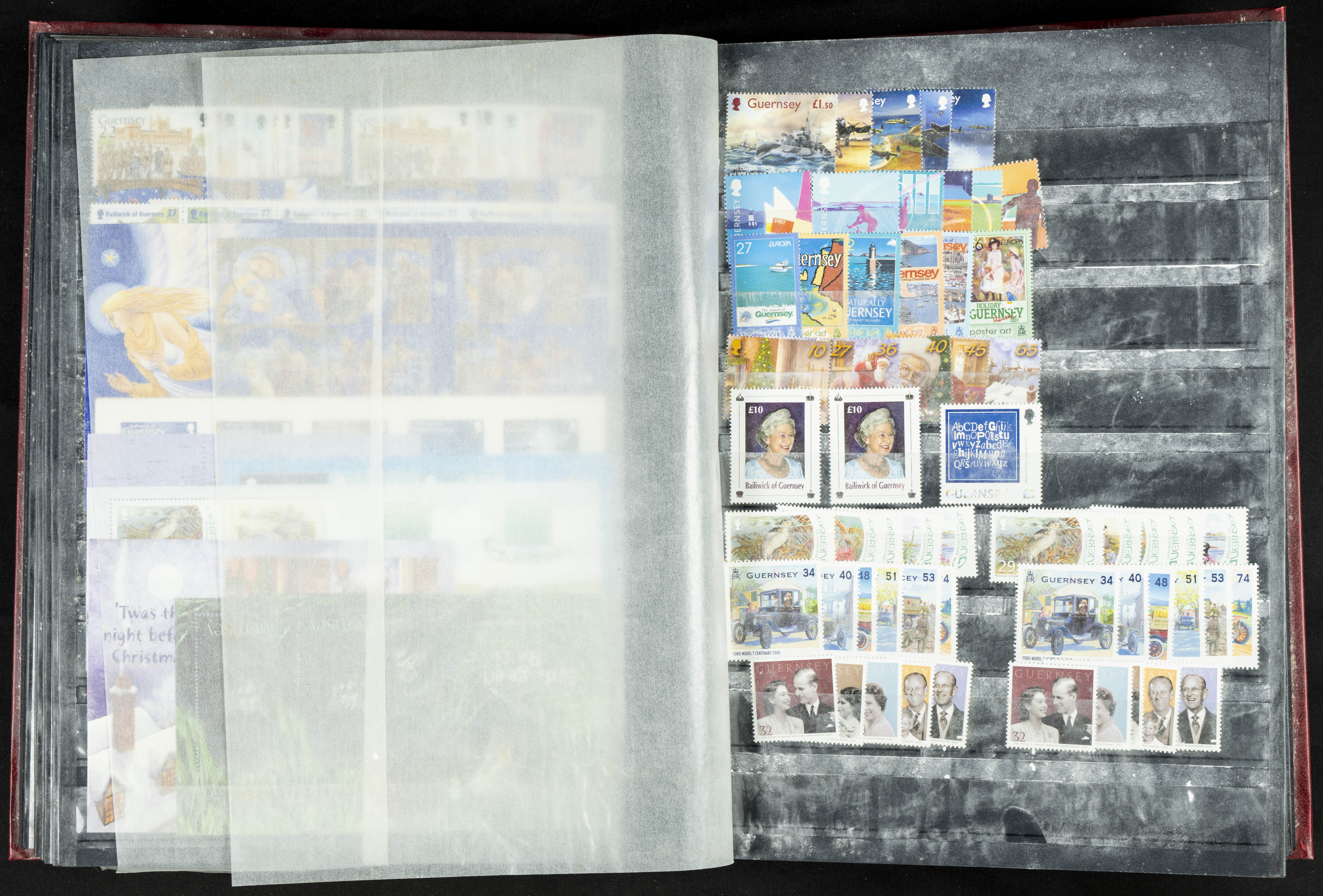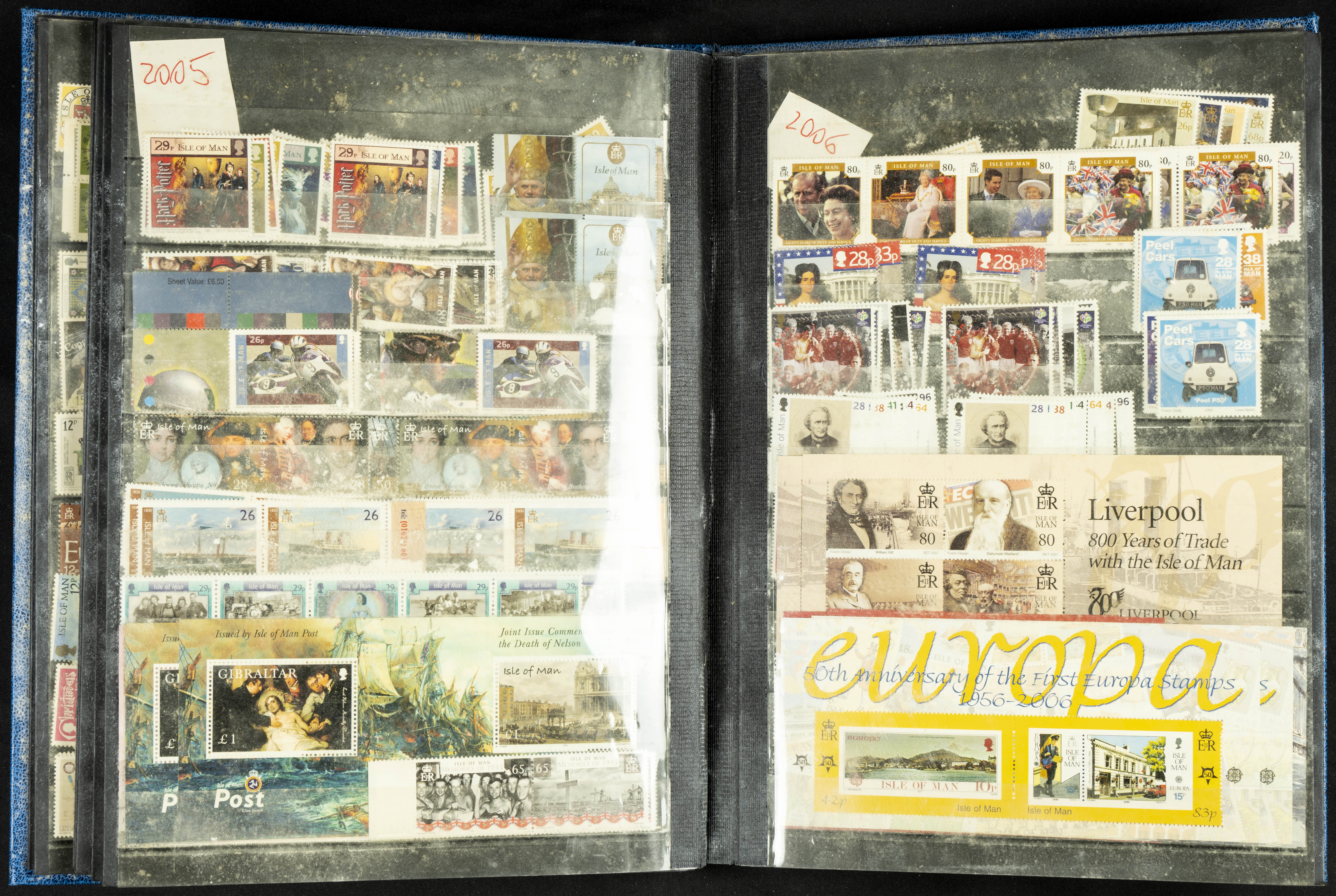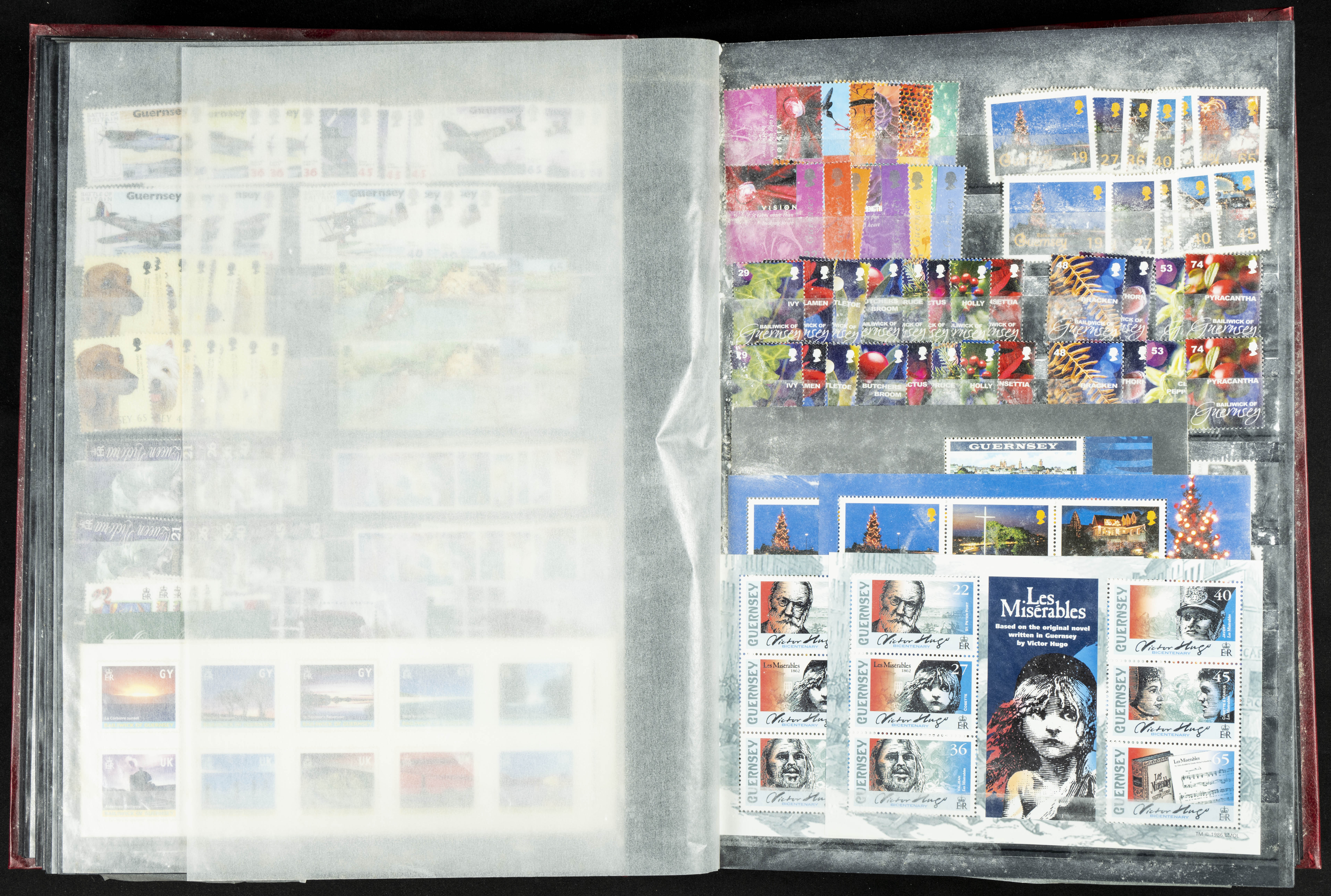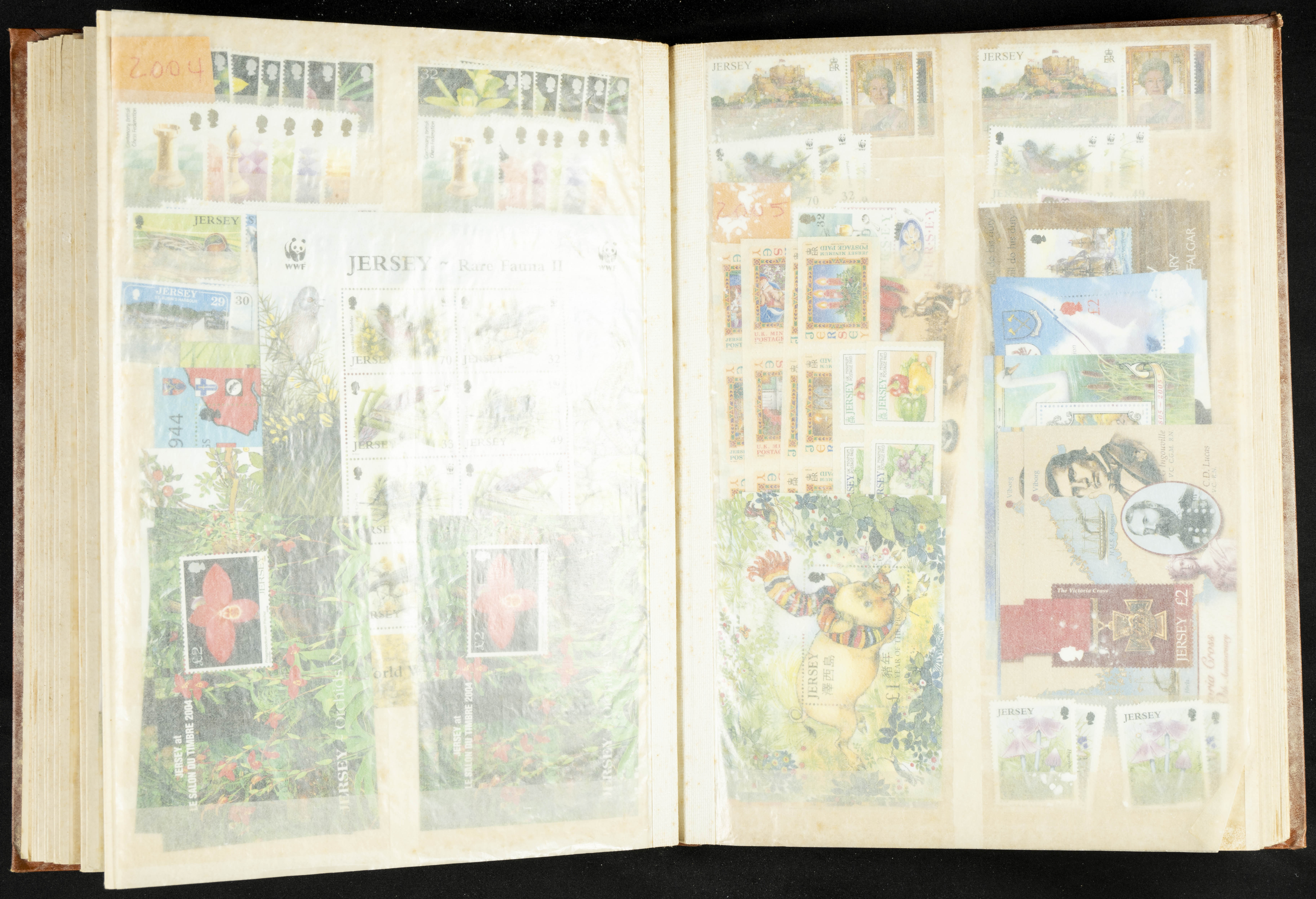 English ★★/(1930ca). Collection of thousands of loose stamps, complete series, and souvenir sheets from Great Britain, the Channel Islands (Guernsey, Jersey, and Man), and various Commonwealth countries, mostly from 1930 to 2005, in mint and used condition. The modern portion is generally very complete with some duplicates (ninety percent of the stamps are mounted in stocks and coated with talcum powder to reduce humidity). VERY HIGH CATALOGUE AND FACE VALUE. TO BE EXAMINED.