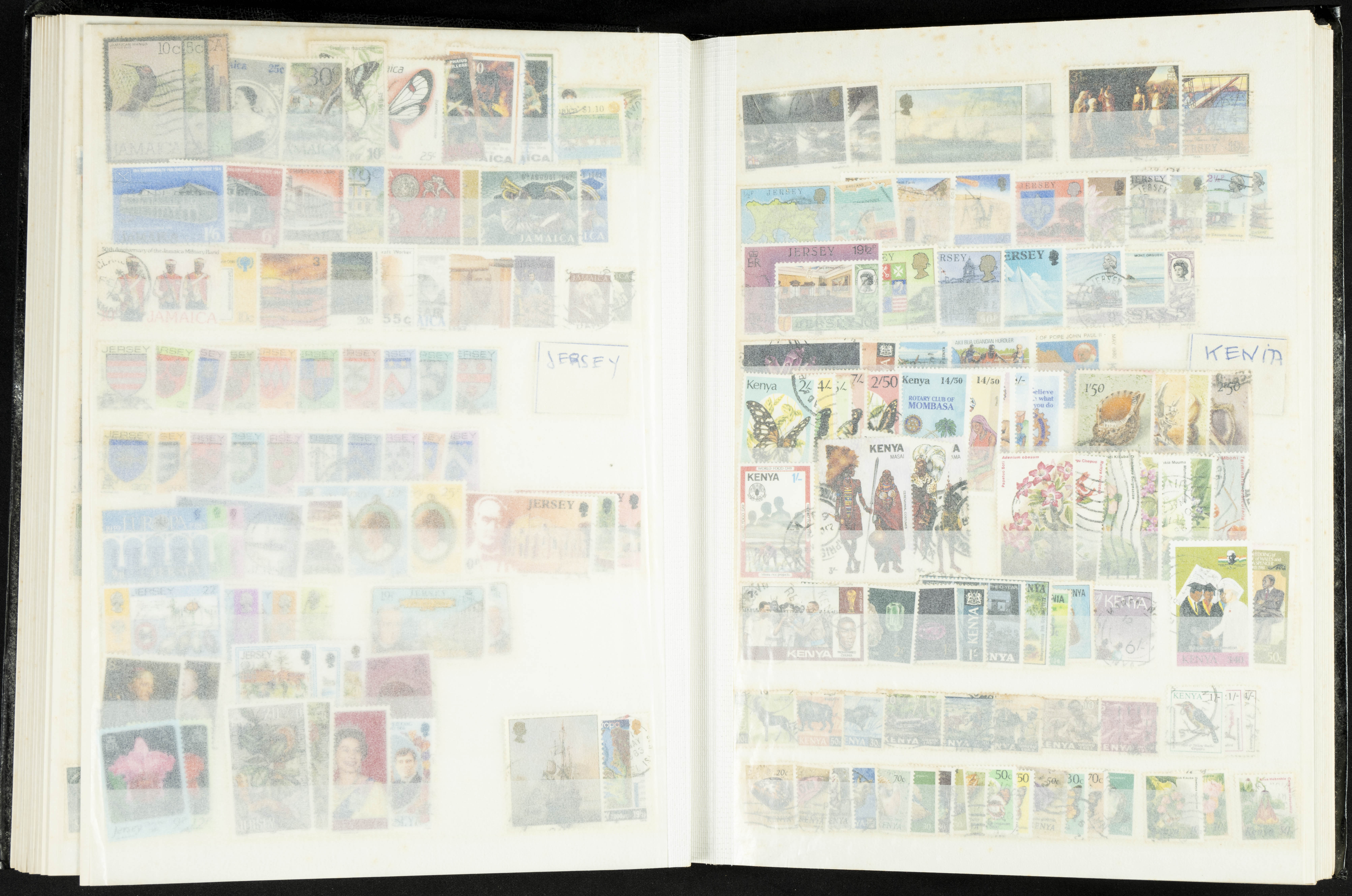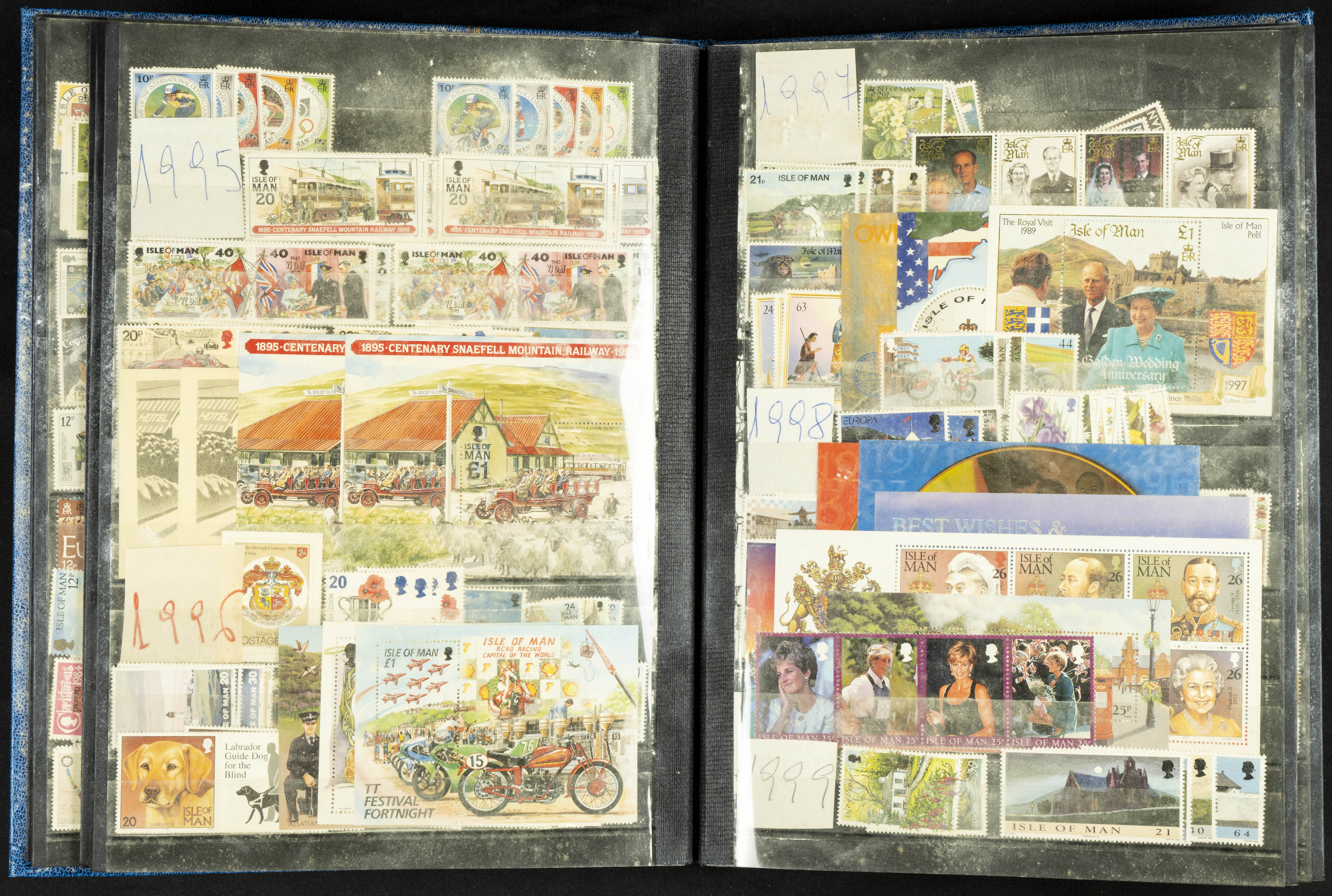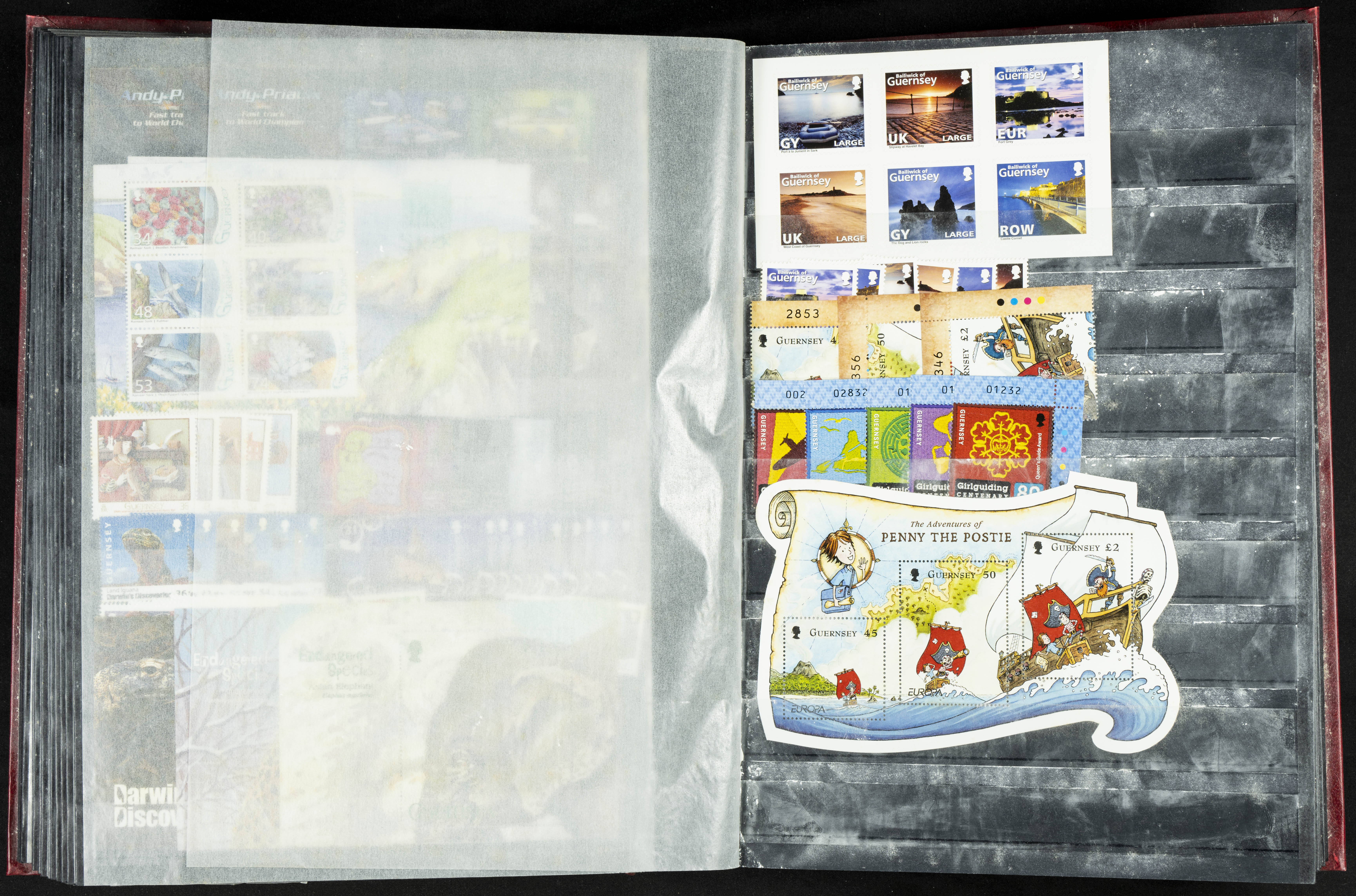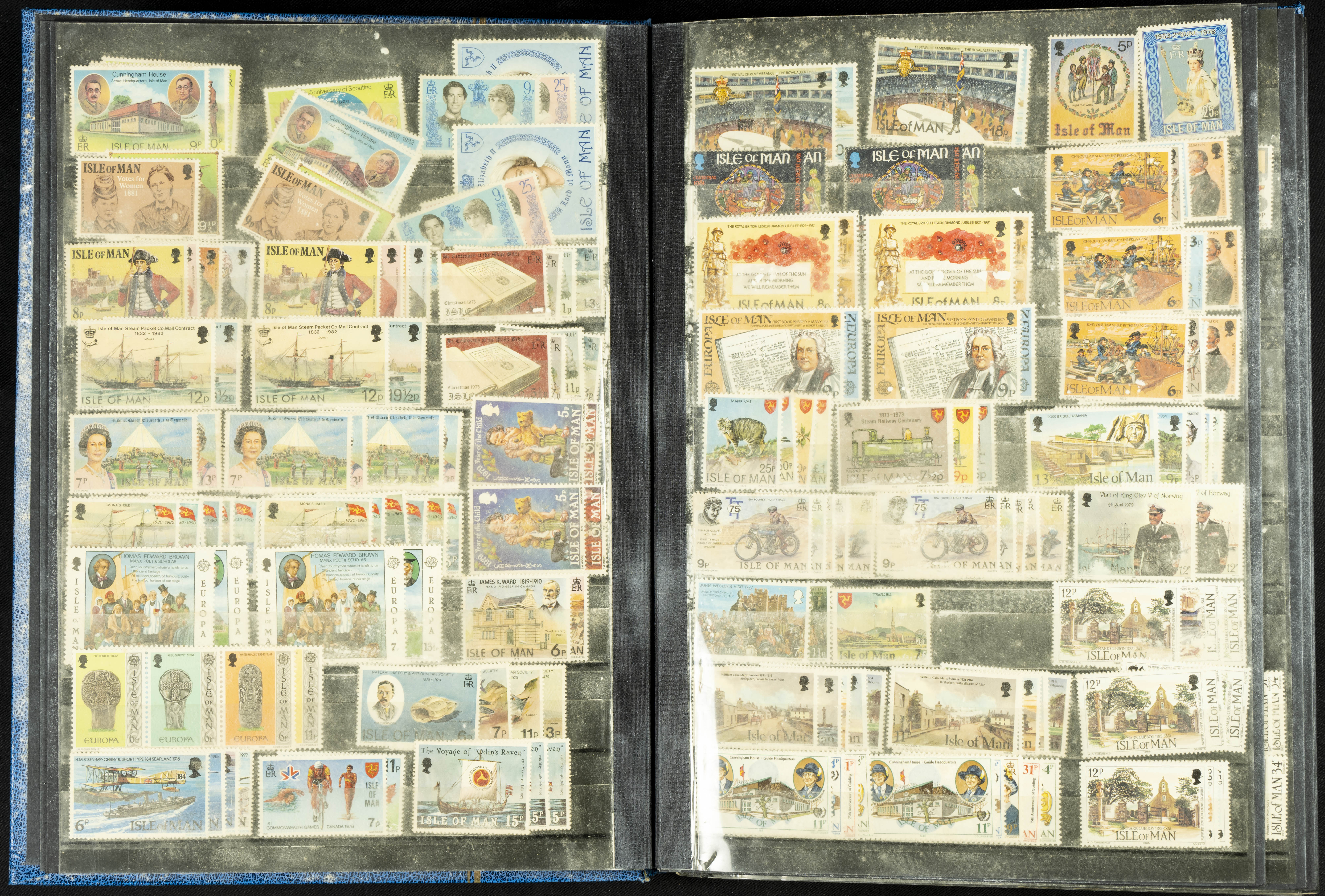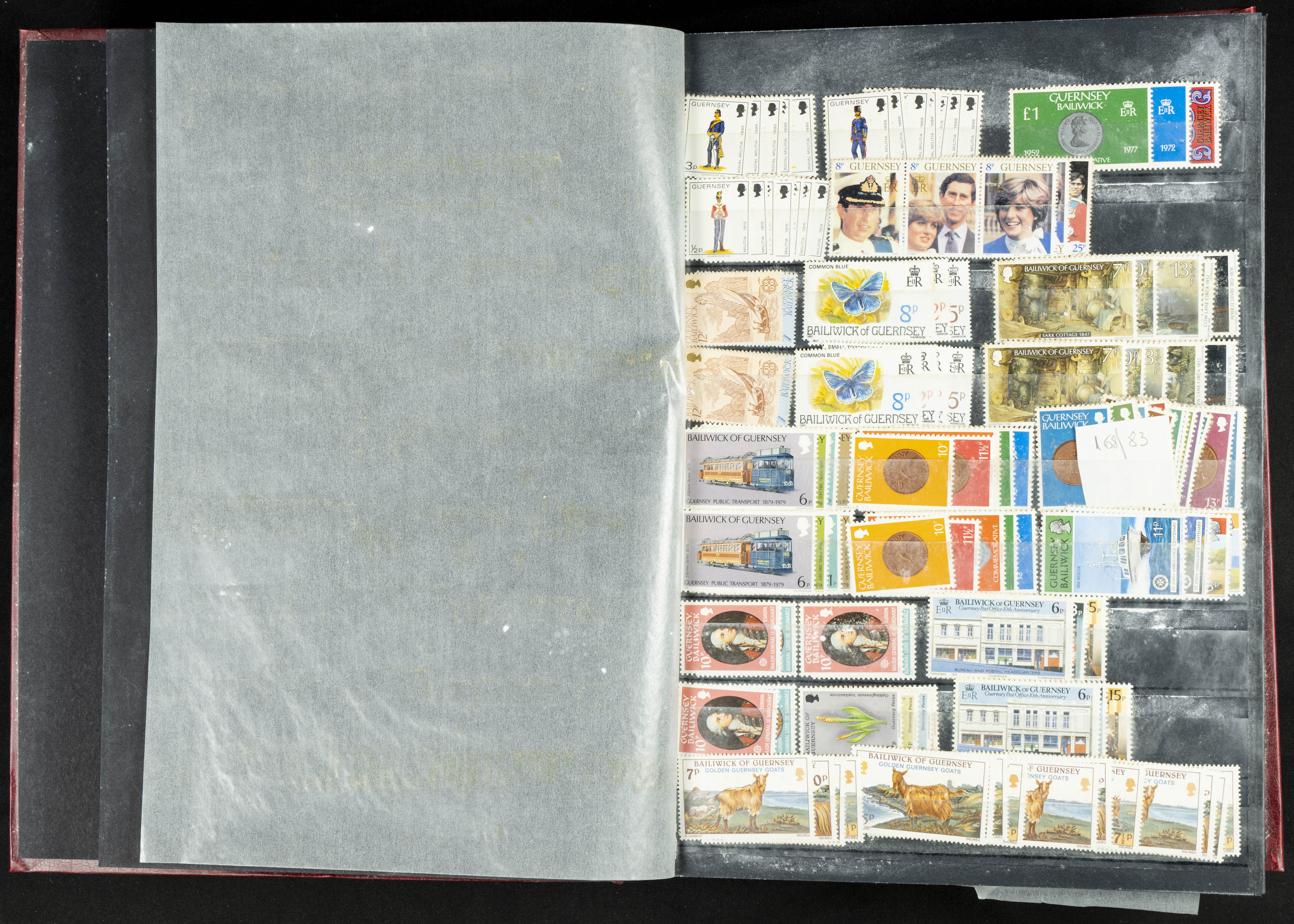 English ★★/(1930ca). Collection of thousands of loose stamps, complete series, and souvenir sheets from Great Britain, the Channel Islands (Guernsey, Jersey, and Man), and various Commonwealth countries, mostly from 1930 to 2005, in mint and used condition. The modern portion is generally very complete with some duplicates (ninety percent of the stamps are mounted in stocks and coated with talcum powder to reduce humidity). VERY HIGH CATALOGUE AND FACE VALUE. TO BE EXAMINED.