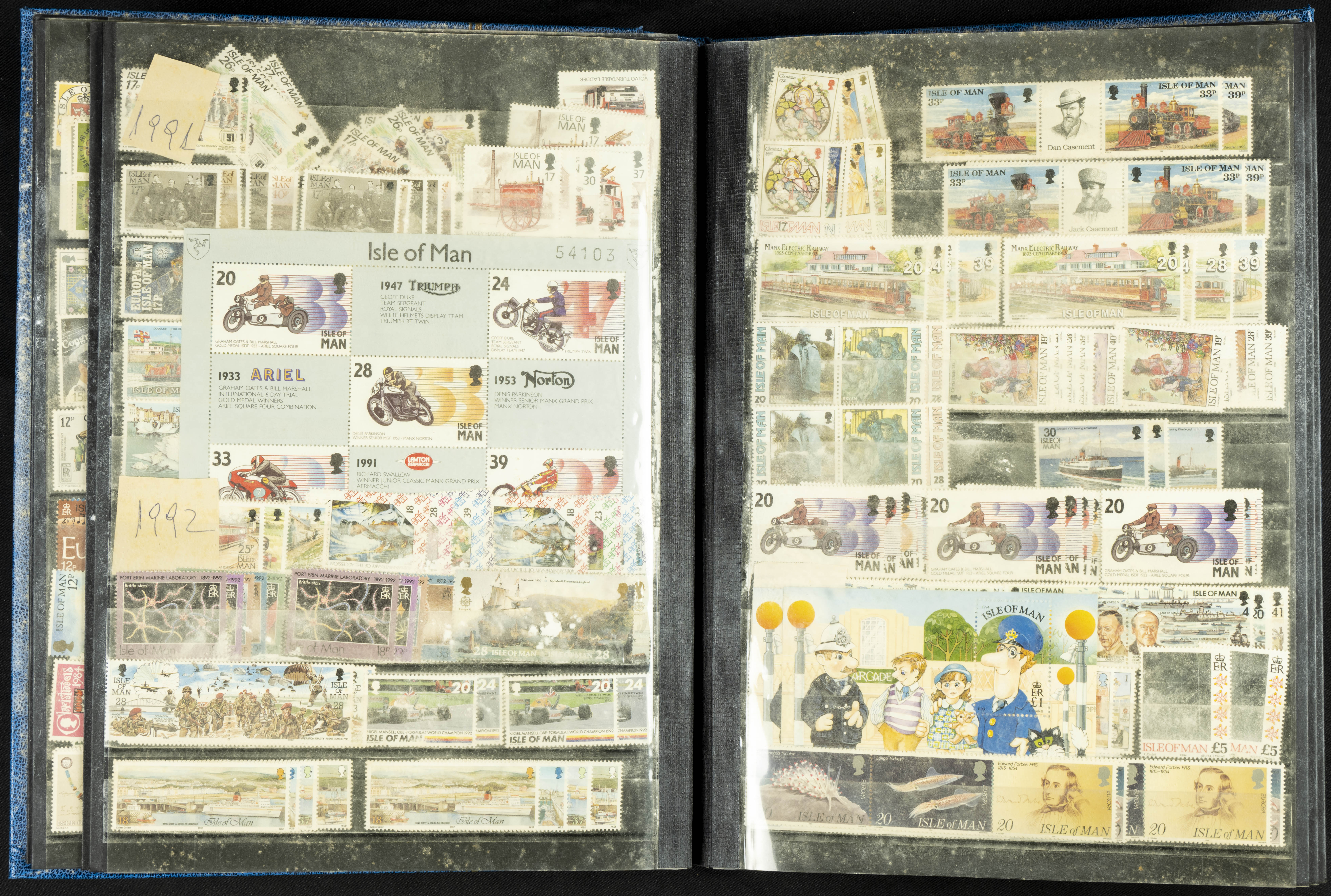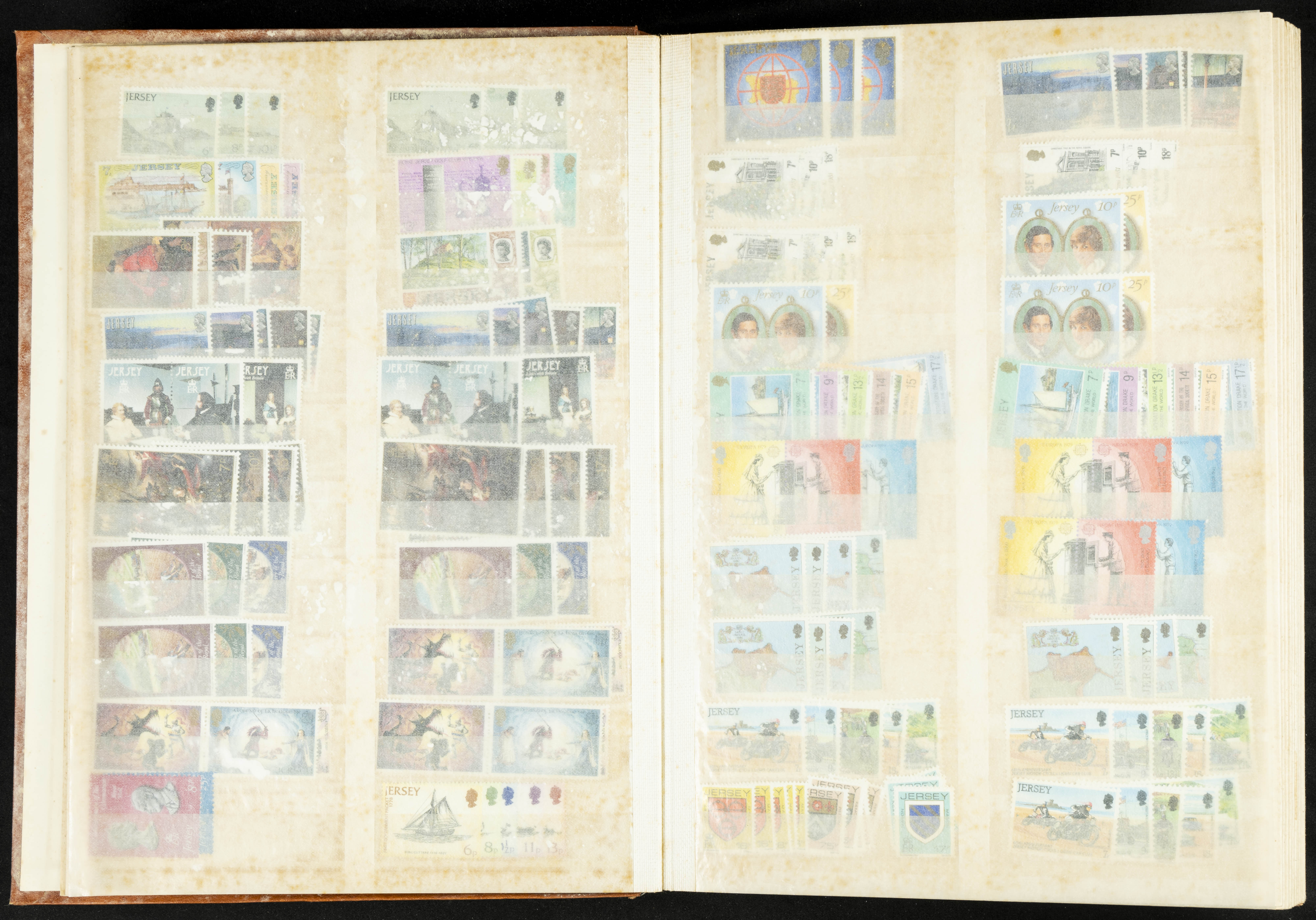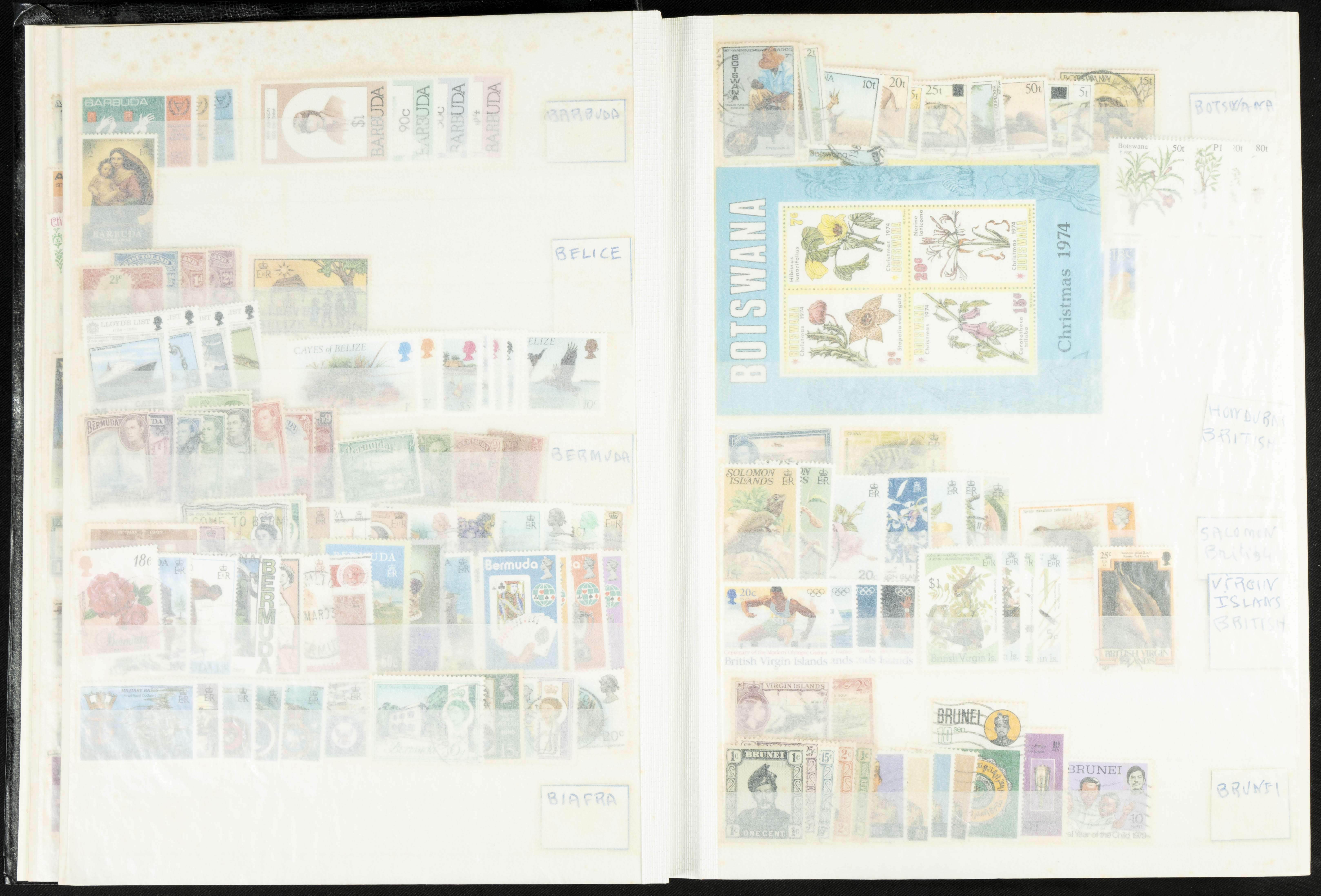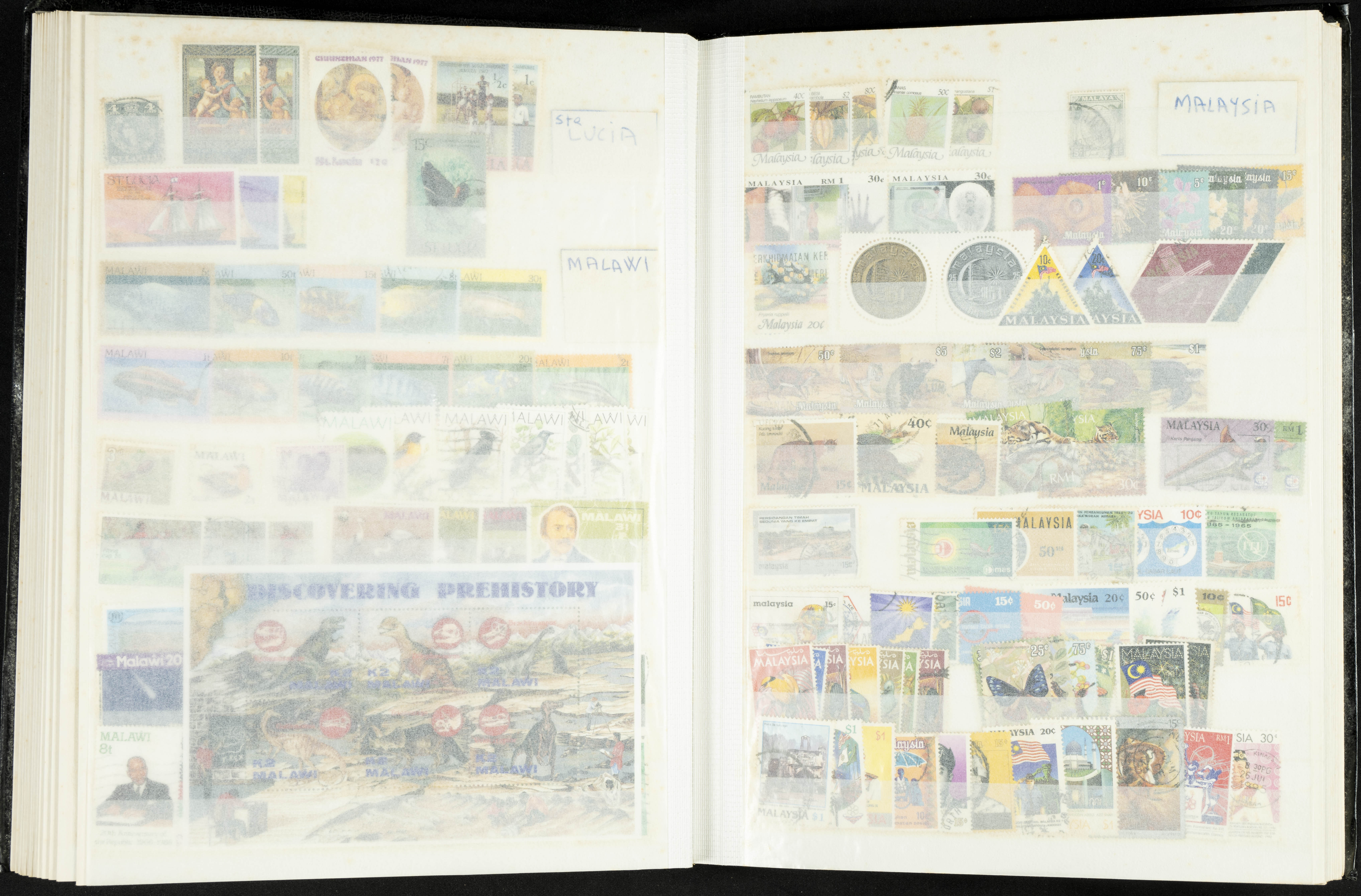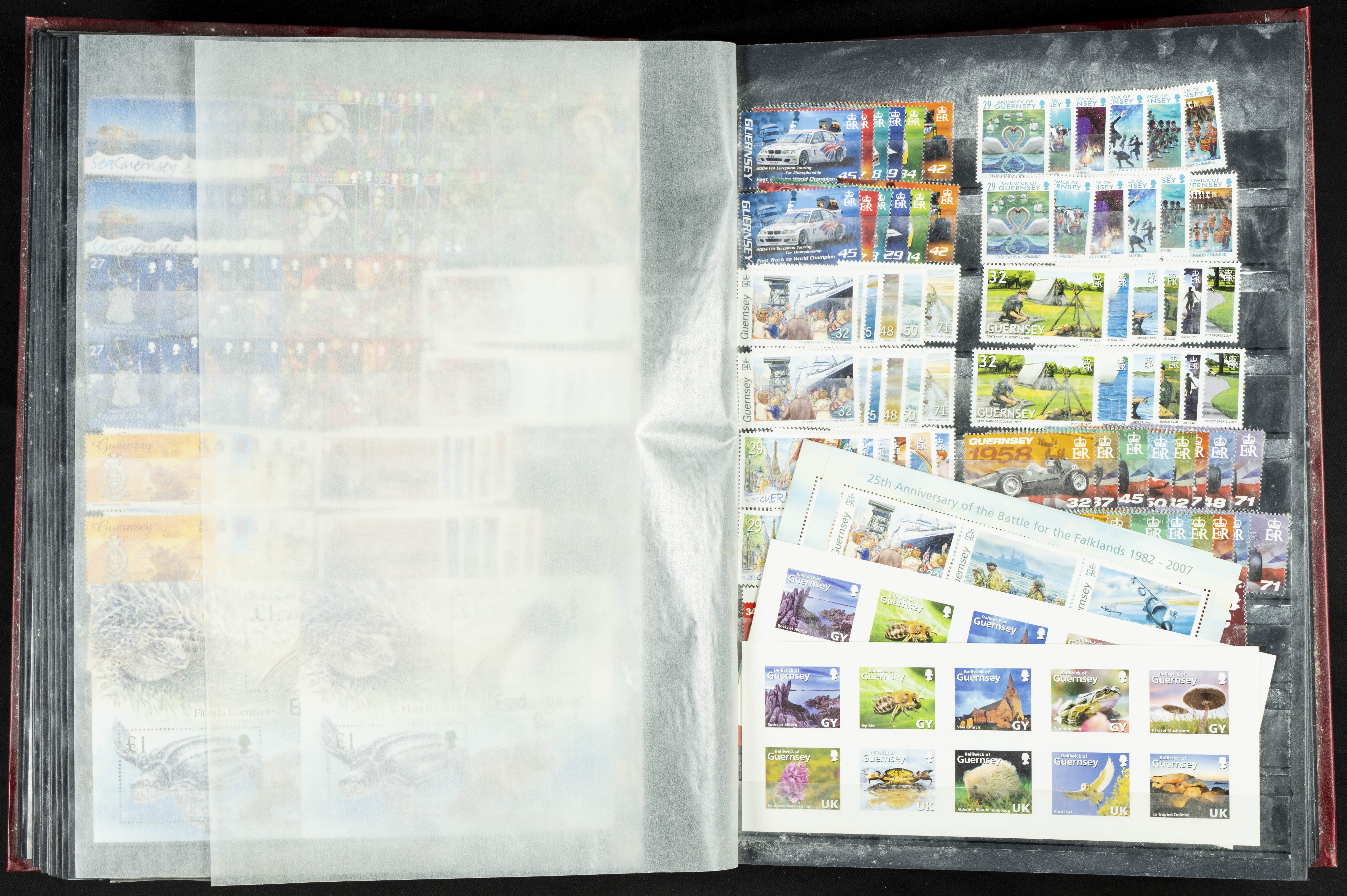 English ★★/(1930ca). Collection of thousands of loose stamps, complete series, and souvenir sheets from Great Britain, the Channel Islands (Guernsey, Jersey, and Man), and various Commonwealth countries, mostly from 1930 to 2005, in mint and used condition. The modern portion is generally very complete with some duplicates (ninety percent of the stamps are mounted in stocks and coated with talcum powder to reduce humidity). VERY HIGH CATALOGUE AND FACE VALUE. TO BE EXAMINED.