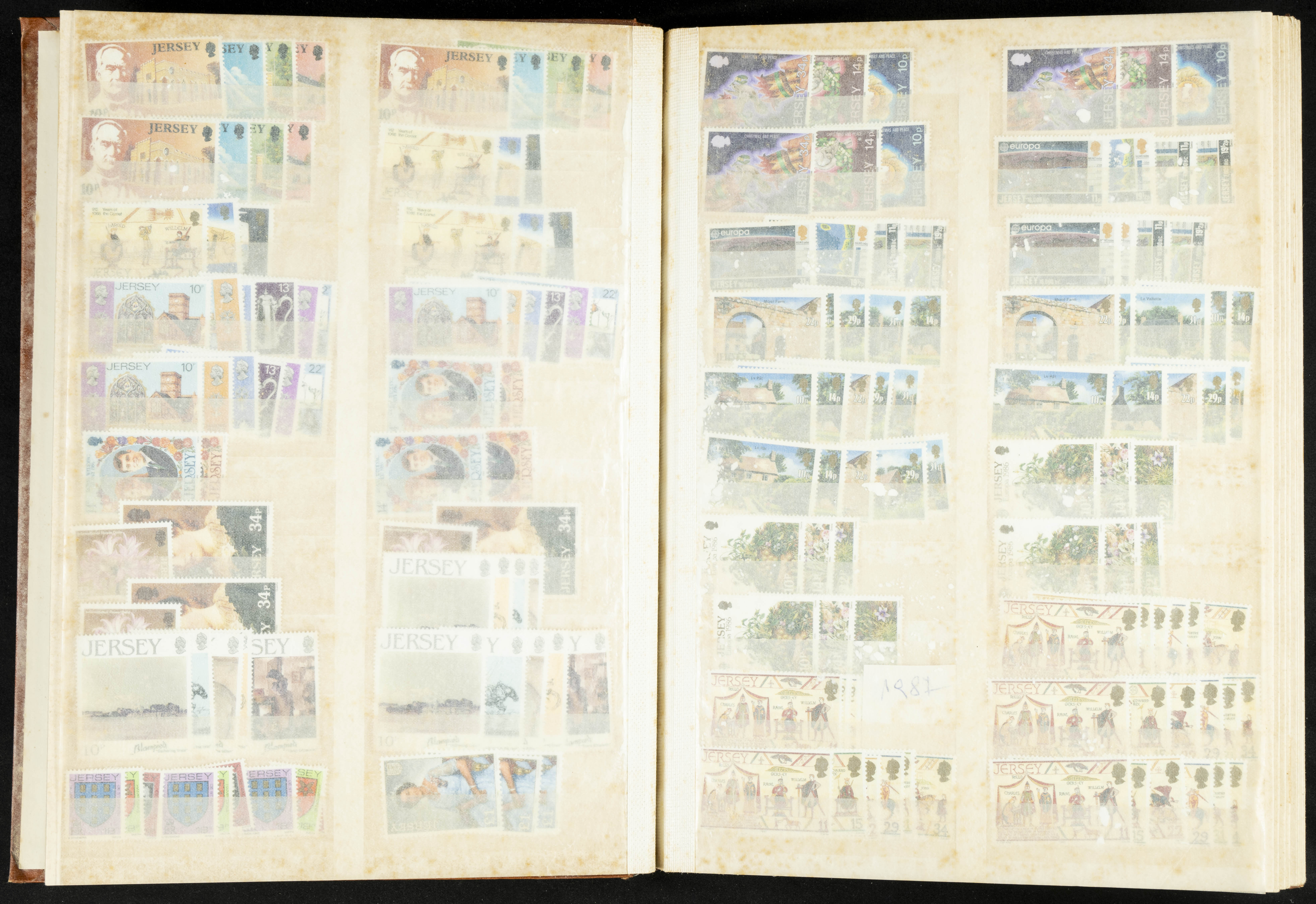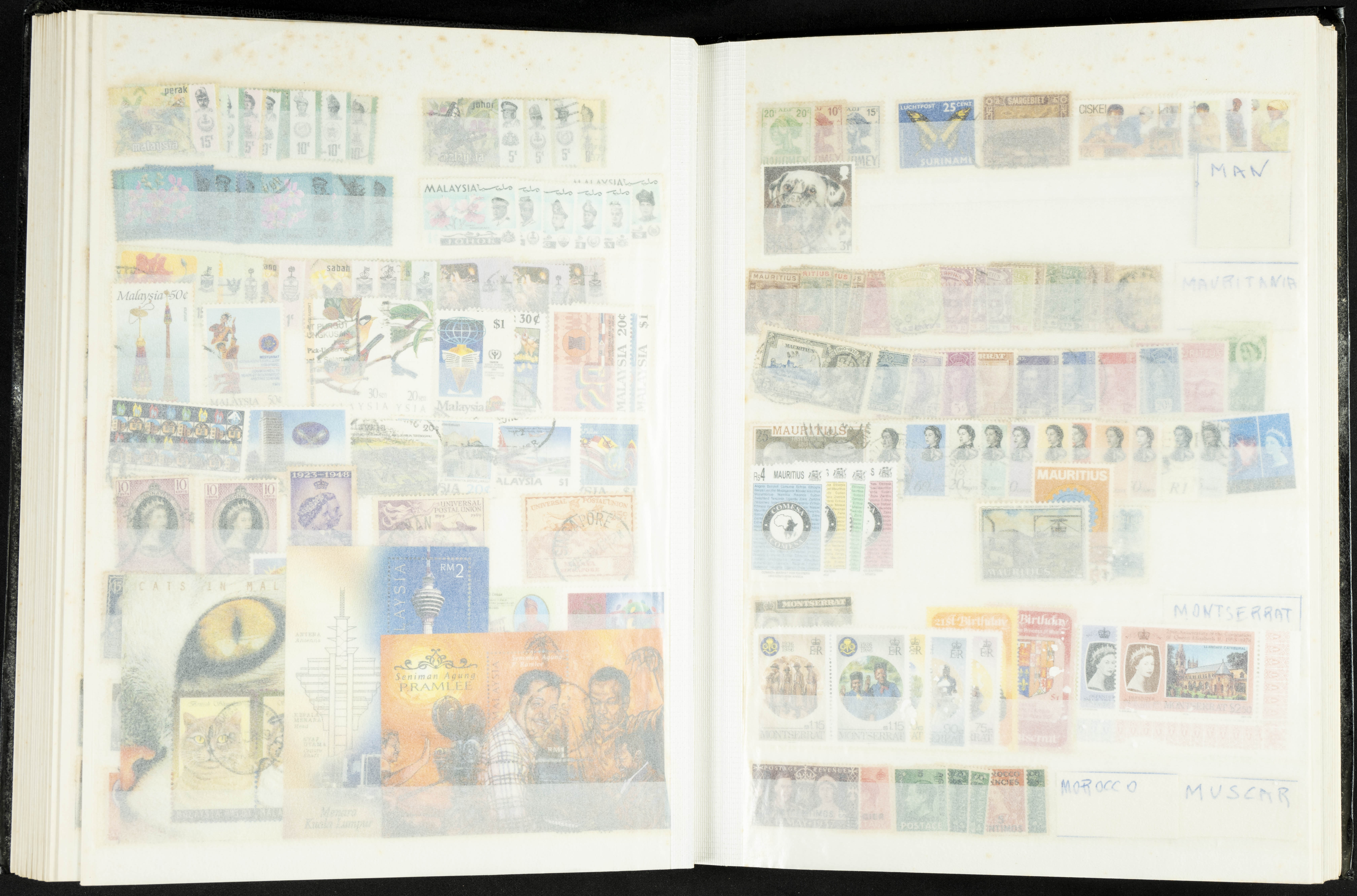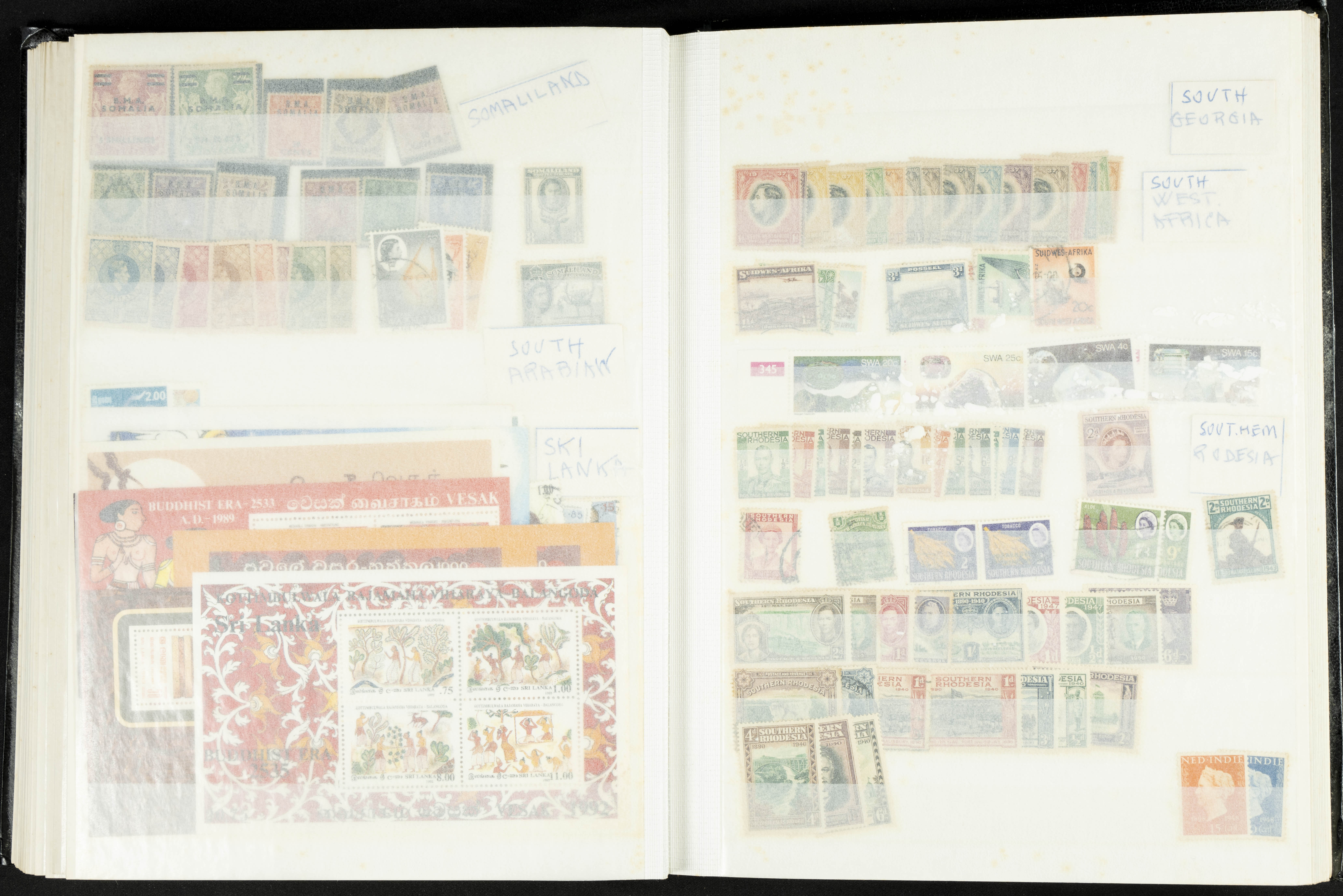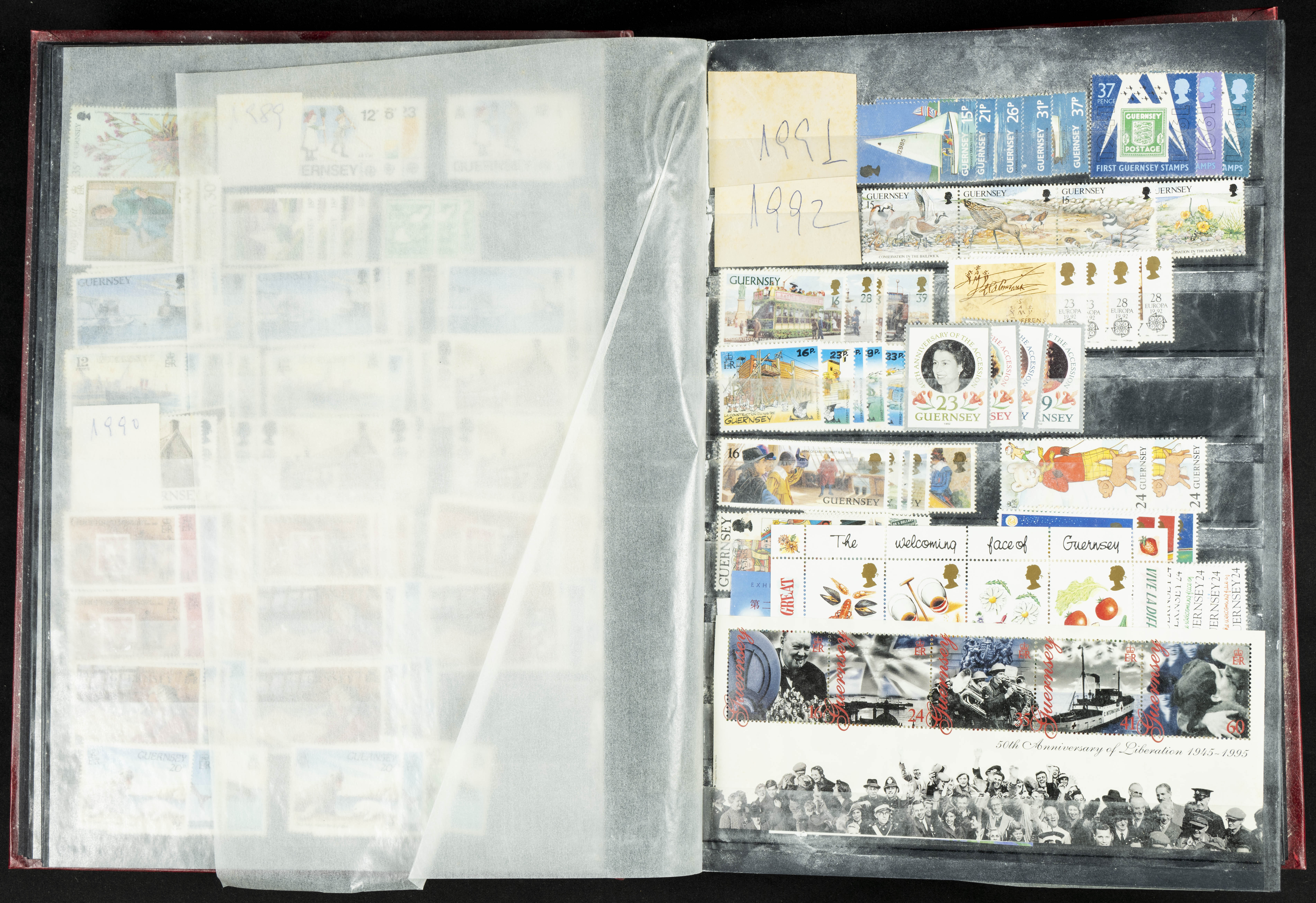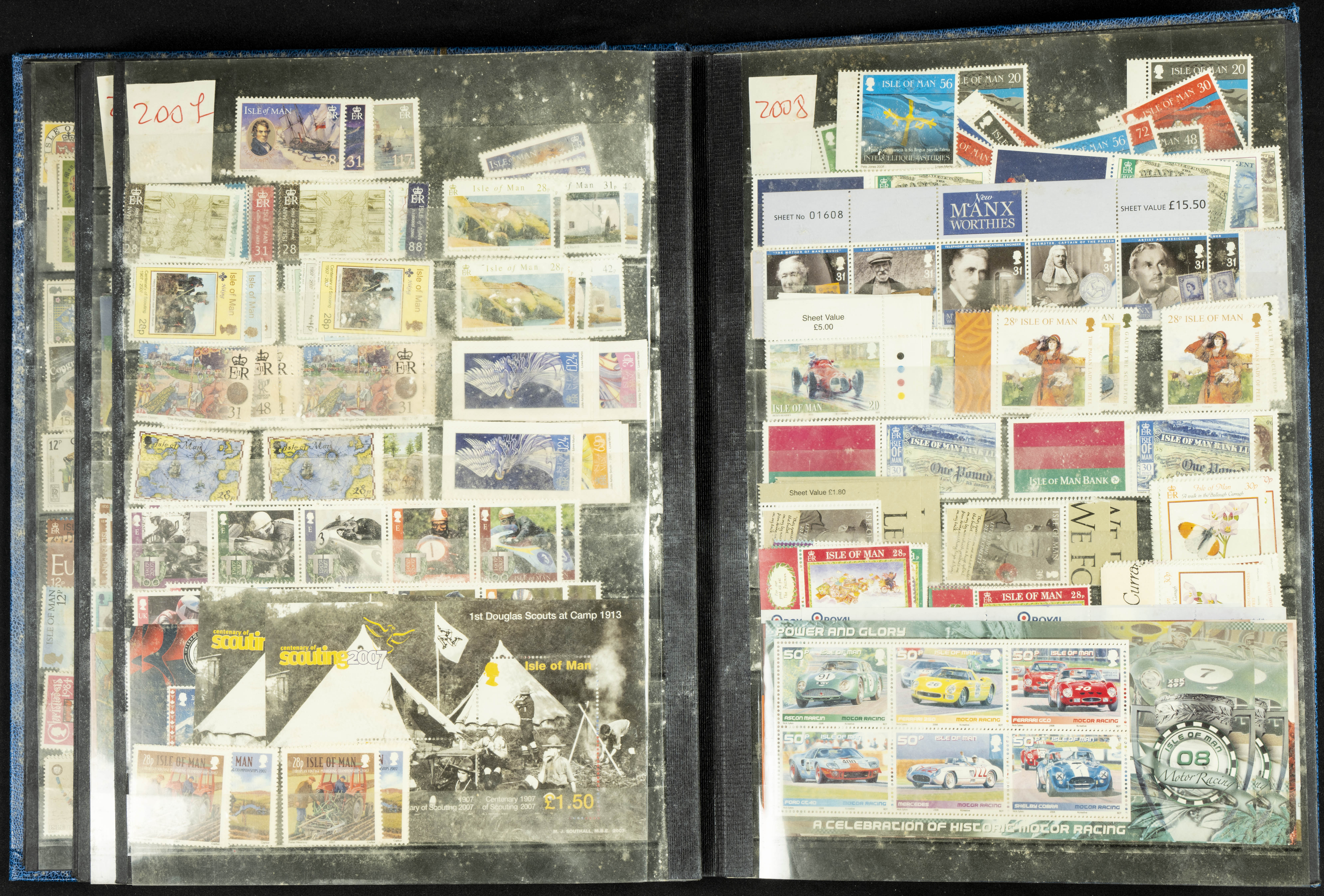 English ★★/(1930ca). Collection of thousands of loose stamps, complete series, and souvenir sheets from Great Britain, the Channel Islands (Guernsey, Jersey, and Man), and various Commonwealth countries, mostly from 1930 to 2005, in mint and used condition. The modern portion is generally very complete with some duplicates (ninety percent of the stamps are mounted in stocks and coated with talcum powder to reduce humidity). VERY HIGH CATALOGUE AND FACE VALUE. TO BE EXAMINED.