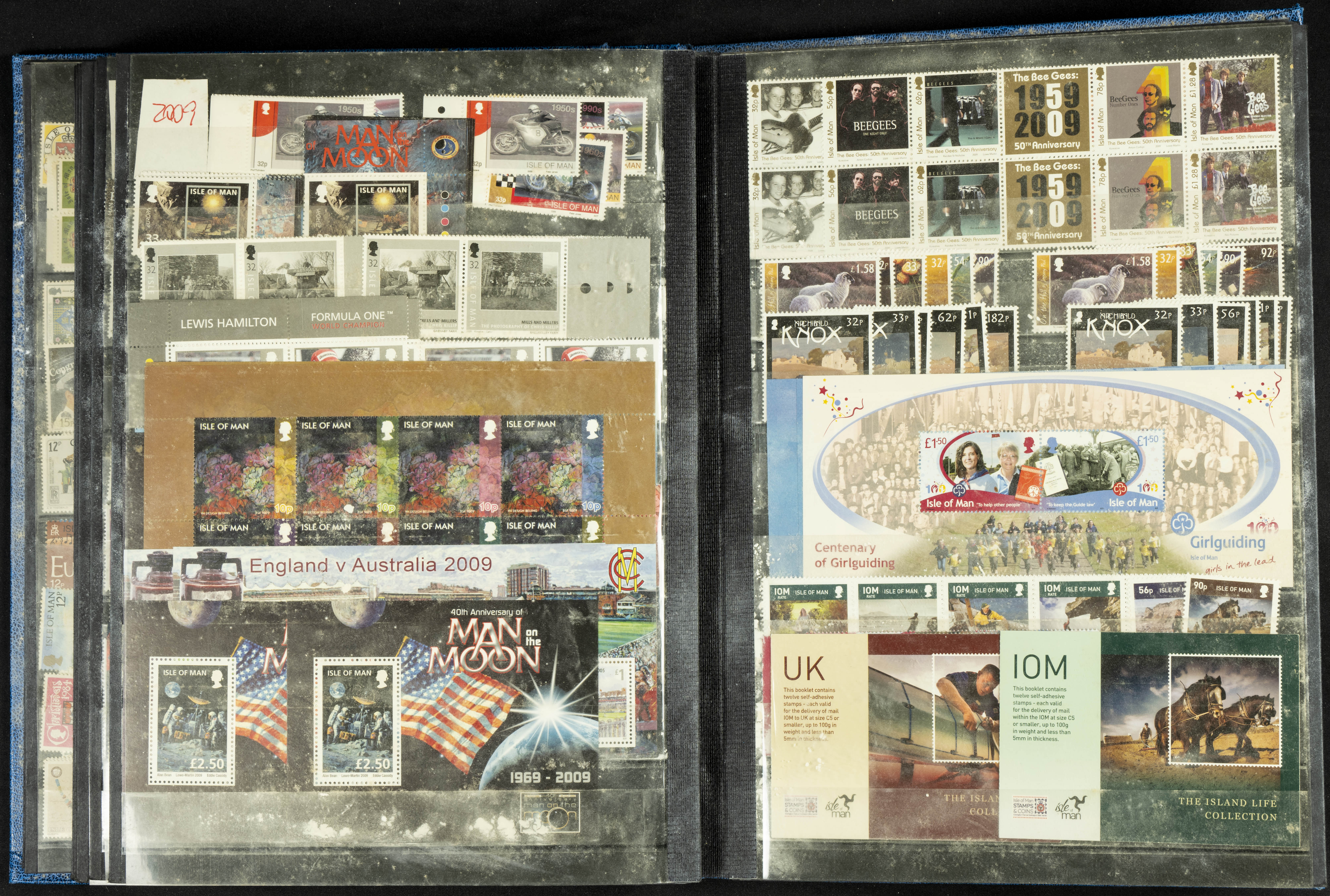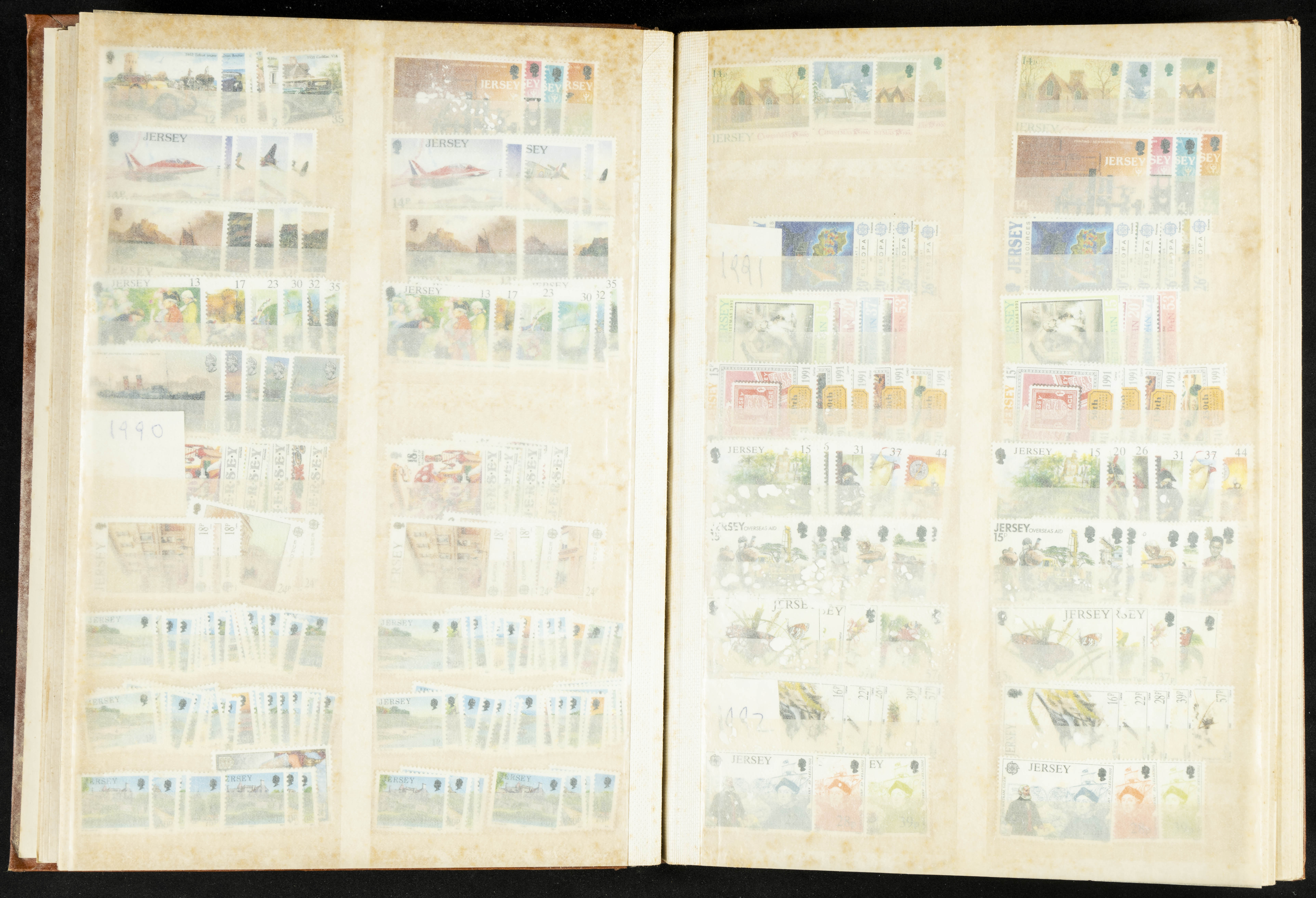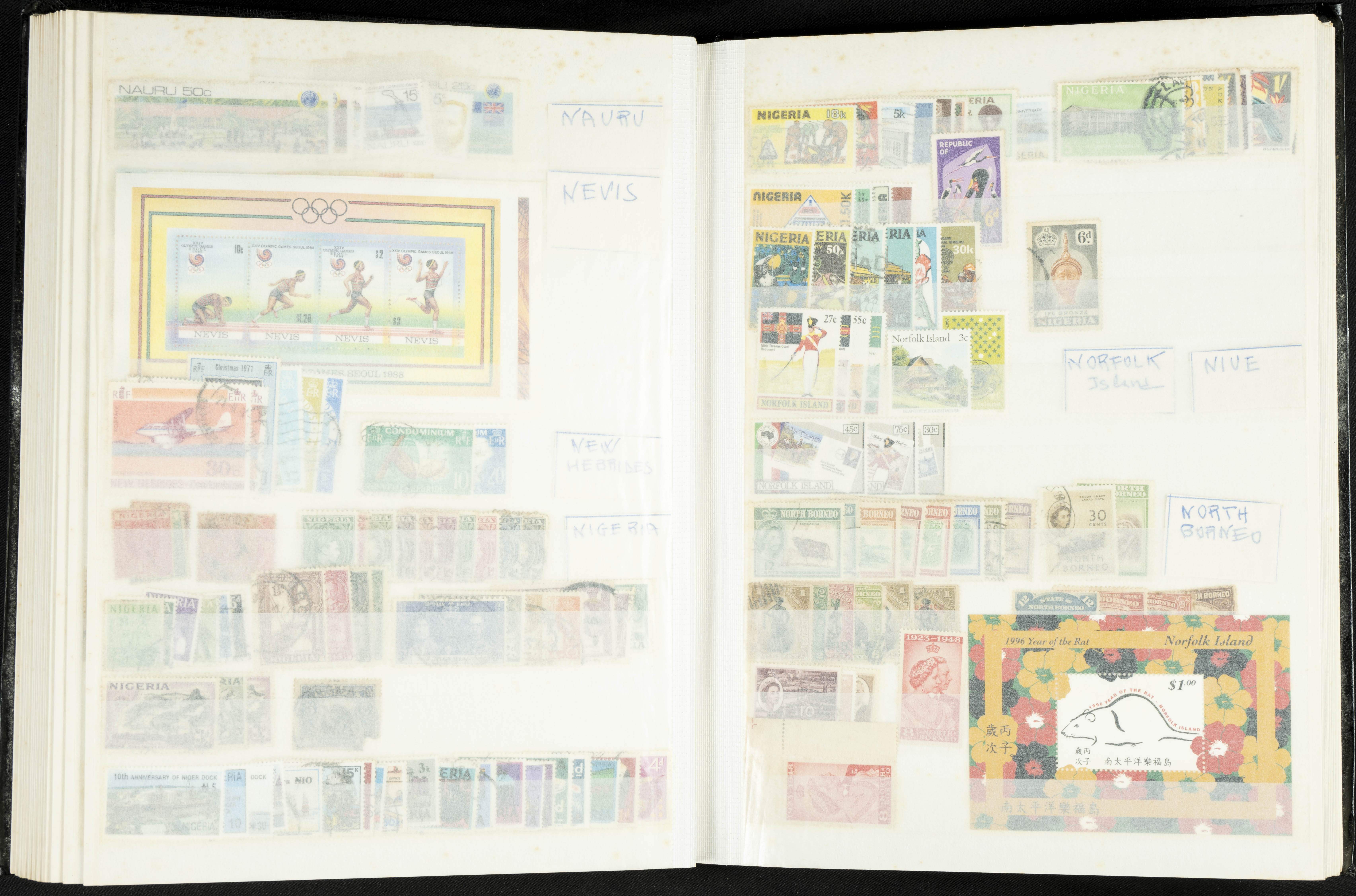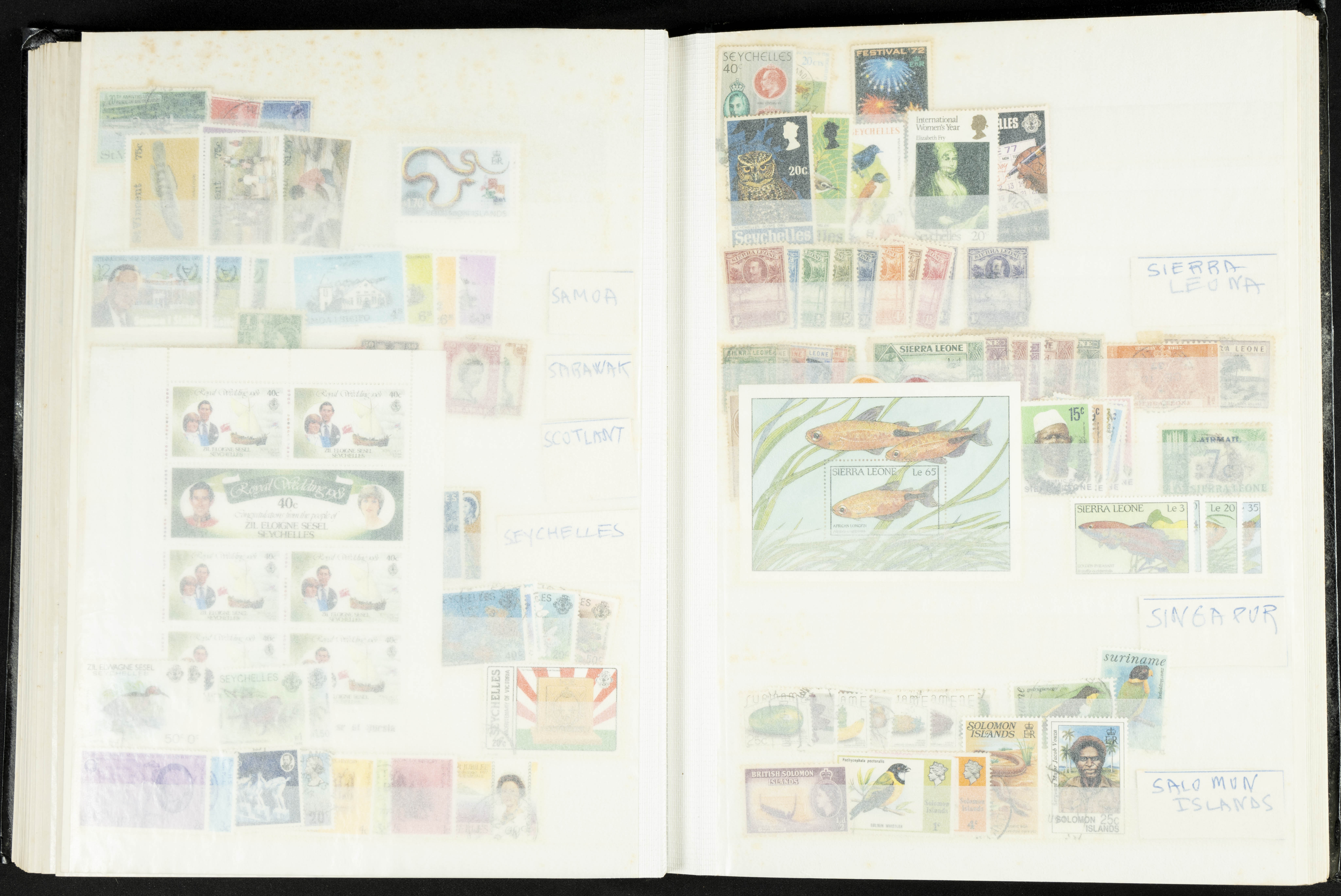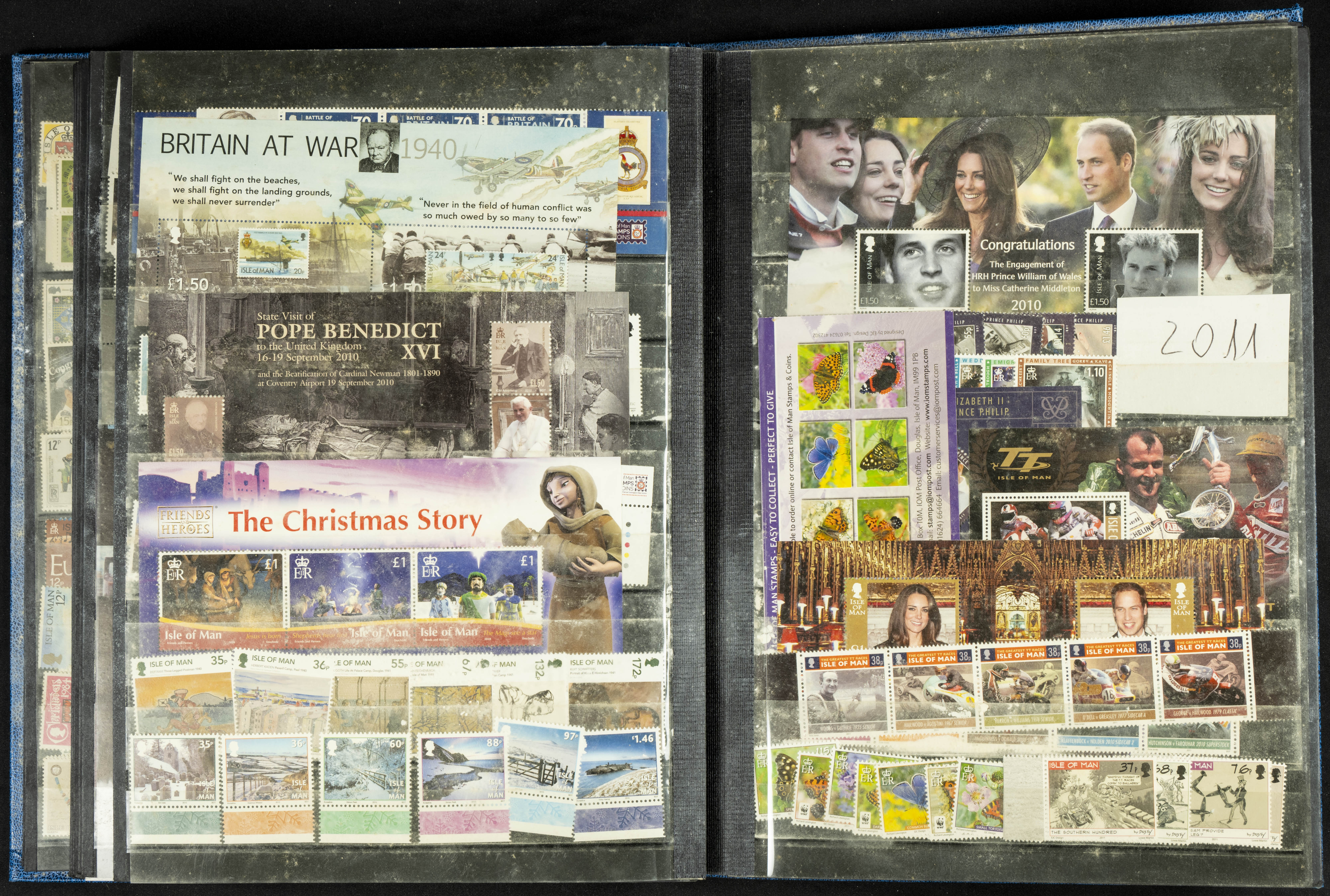 English ★★/(1930ca). Collection of thousands of loose stamps, complete series, and souvenir sheets from Great Britain, the Channel Islands (Guernsey, Jersey, and Man), and various Commonwealth countries, mostly from 1930 to 2005, in mint and used condition. The modern portion is generally very complete with some duplicates (ninety percent of the stamps are mounted in stocks and coated with talcum powder to reduce humidity). VERY HIGH CATALOGUE AND FACE VALUE. TO BE EXAMINED.