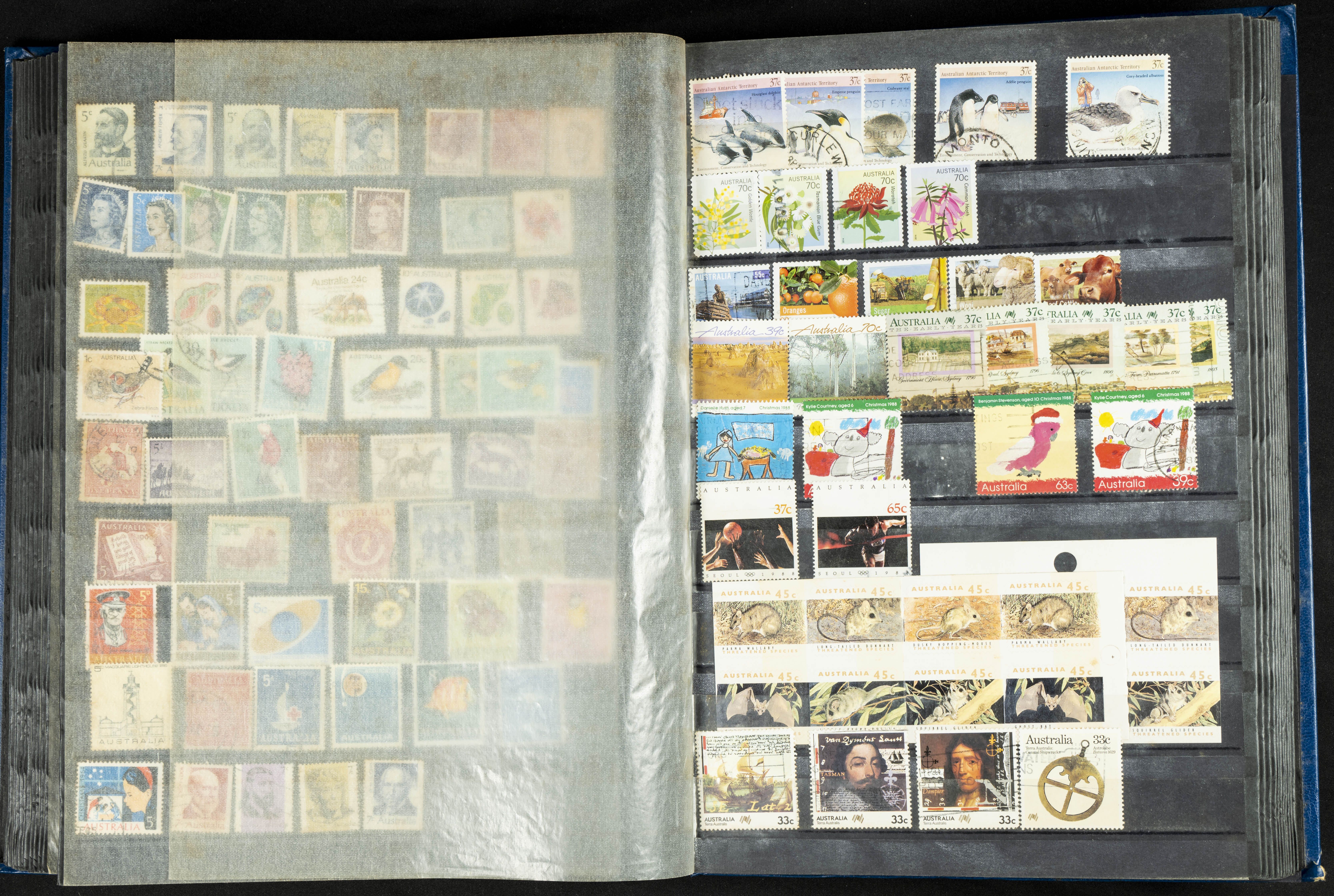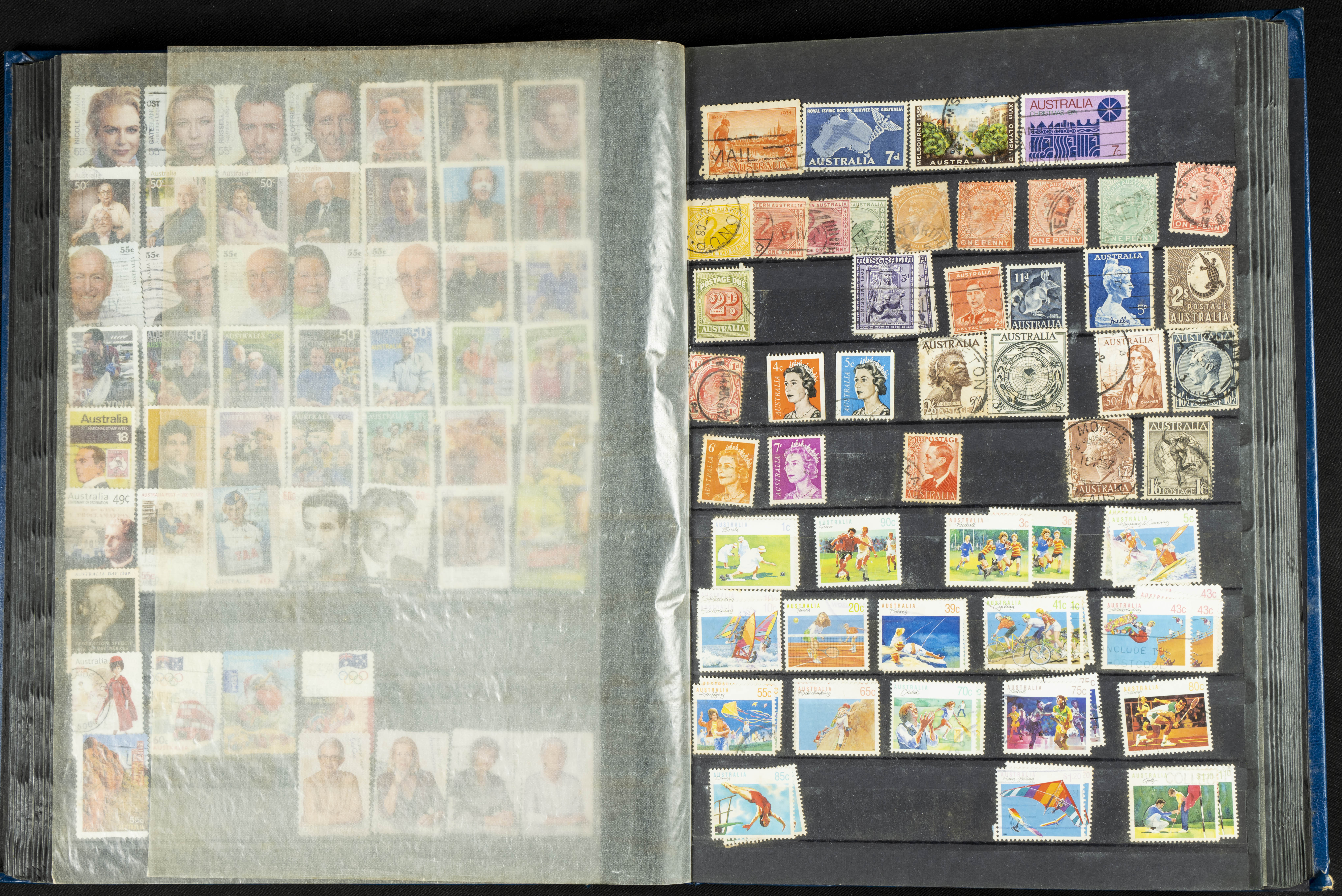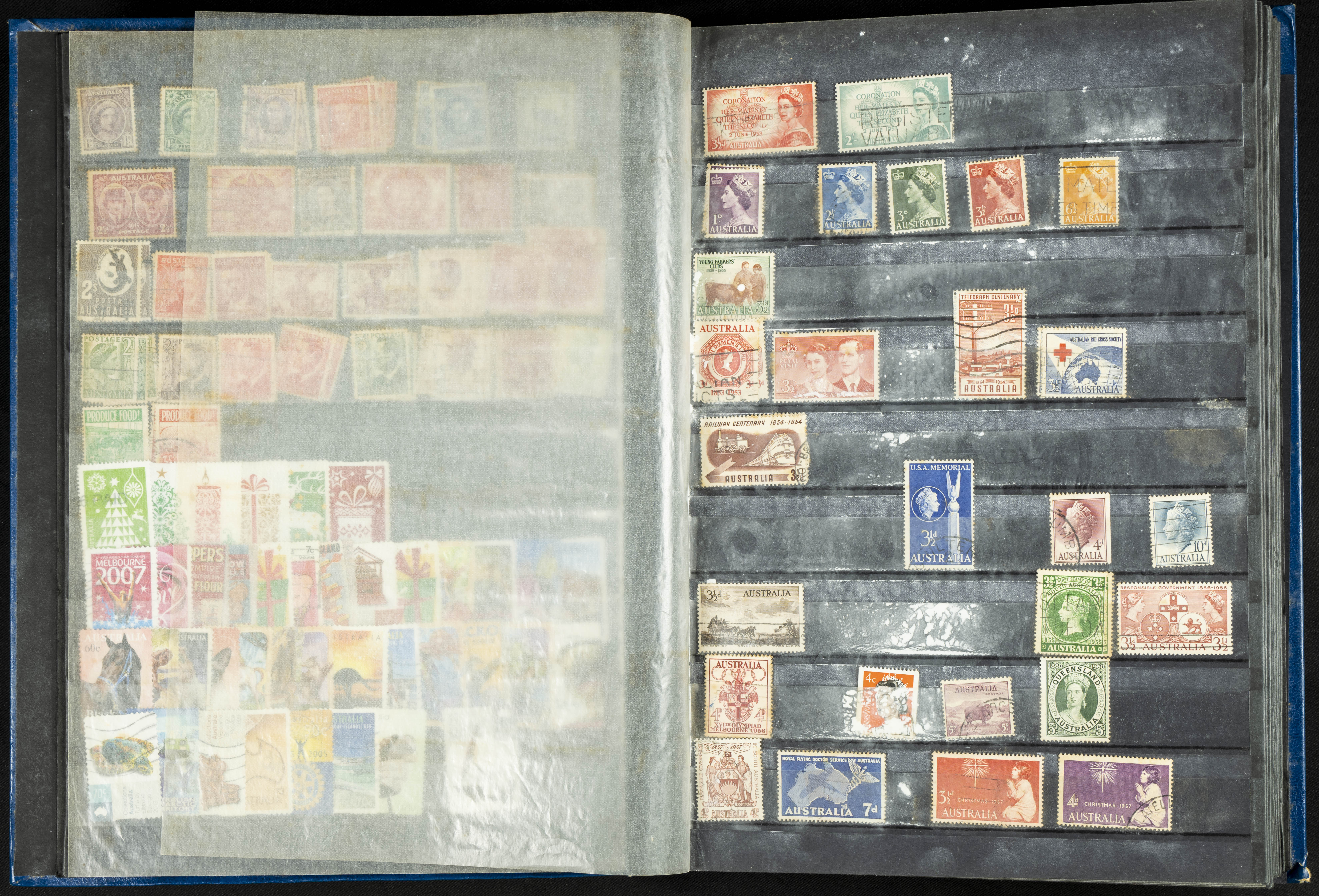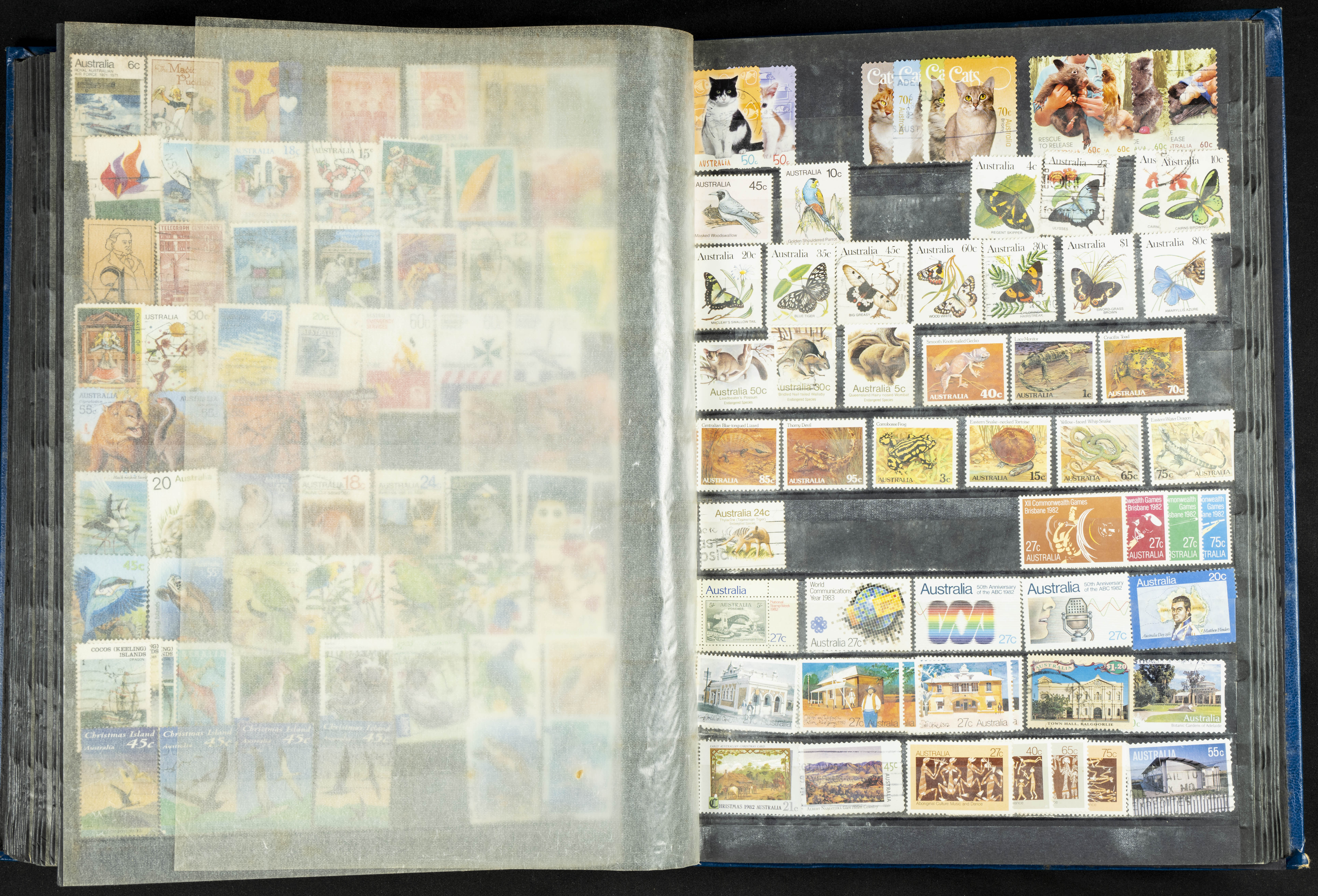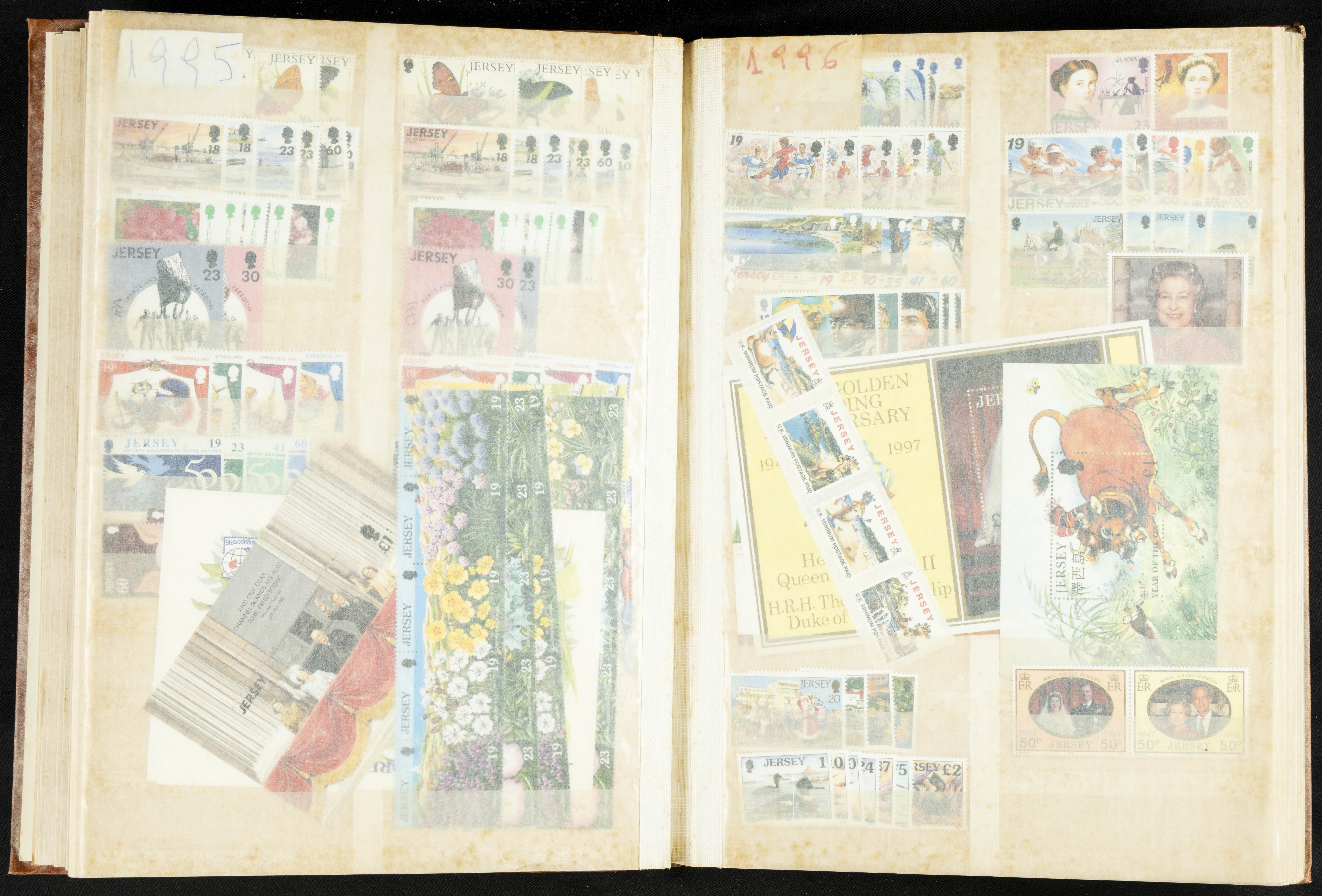 English ★★/(1930ca). Collection of thousands of loose stamps, complete series, and souvenir sheets from Great Britain, the Channel Islands (Guernsey, Jersey, and Man), and various Commonwealth countries, mostly from 1930 to 2005, in mint and used condition. The modern portion is generally very complete with some duplicates (ninety percent of the stamps are mounted in stocks and coated with talcum powder to reduce humidity). VERY HIGH CATALOGUE AND FACE VALUE. TO BE EXAMINED.
