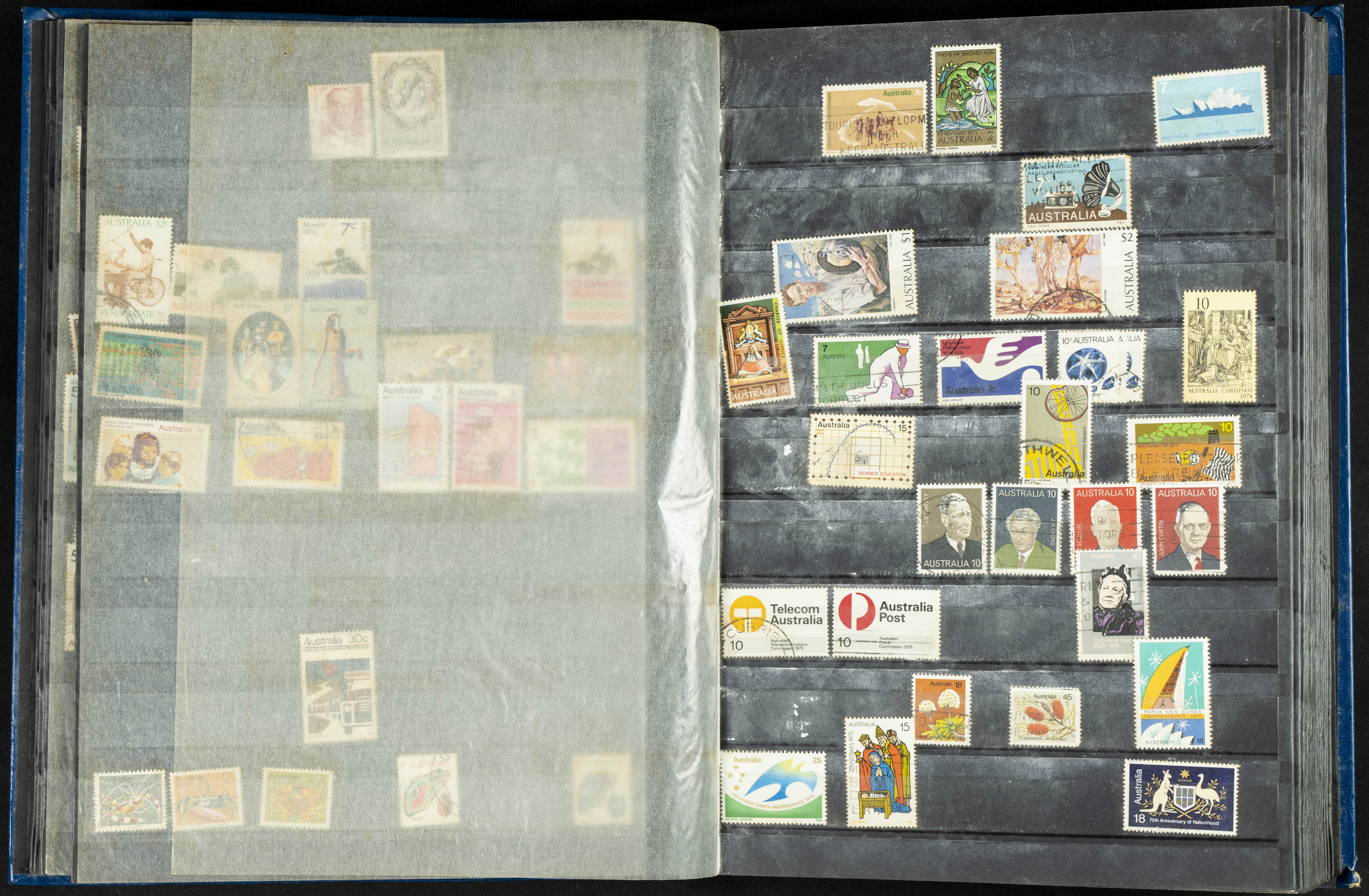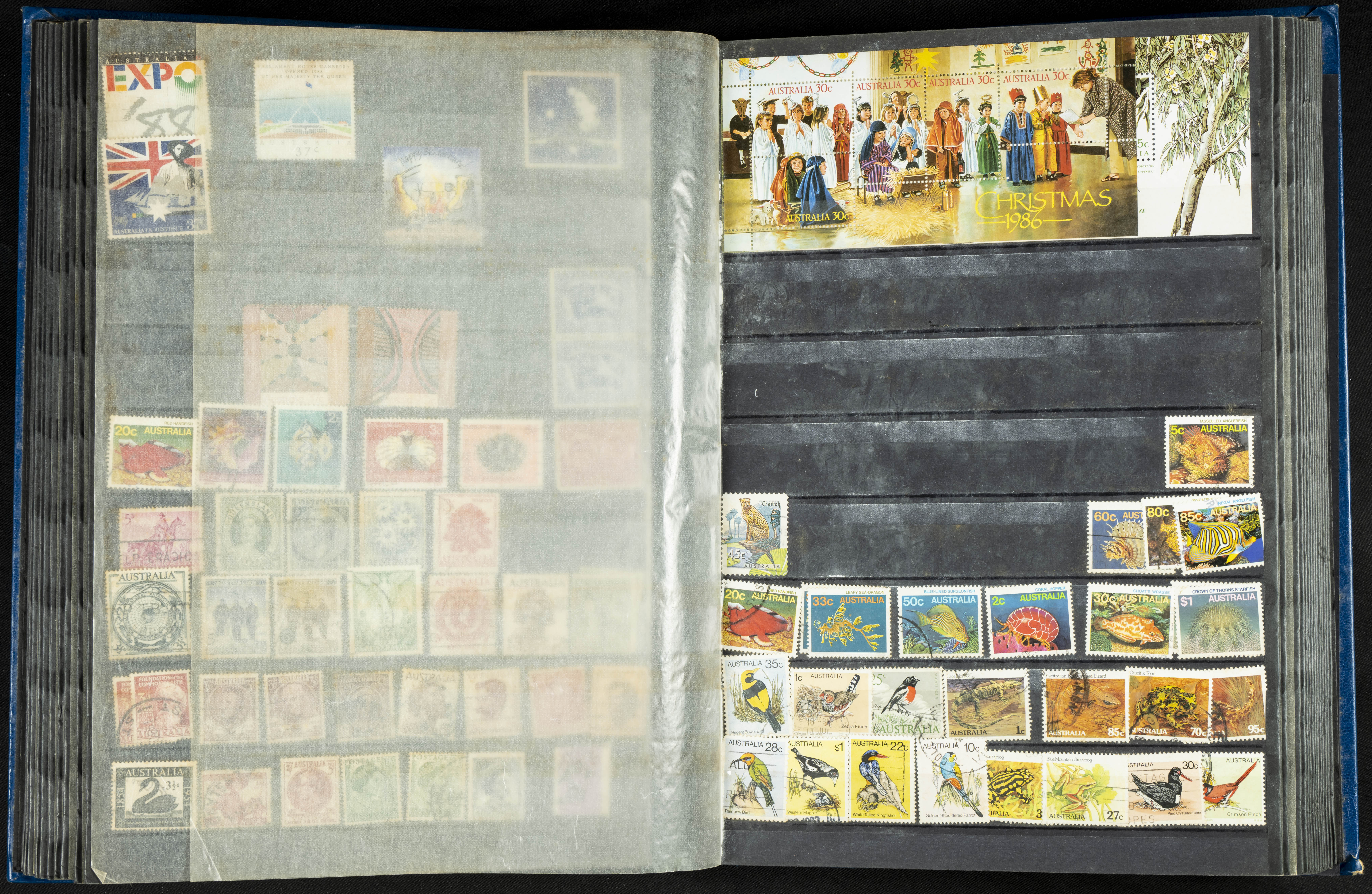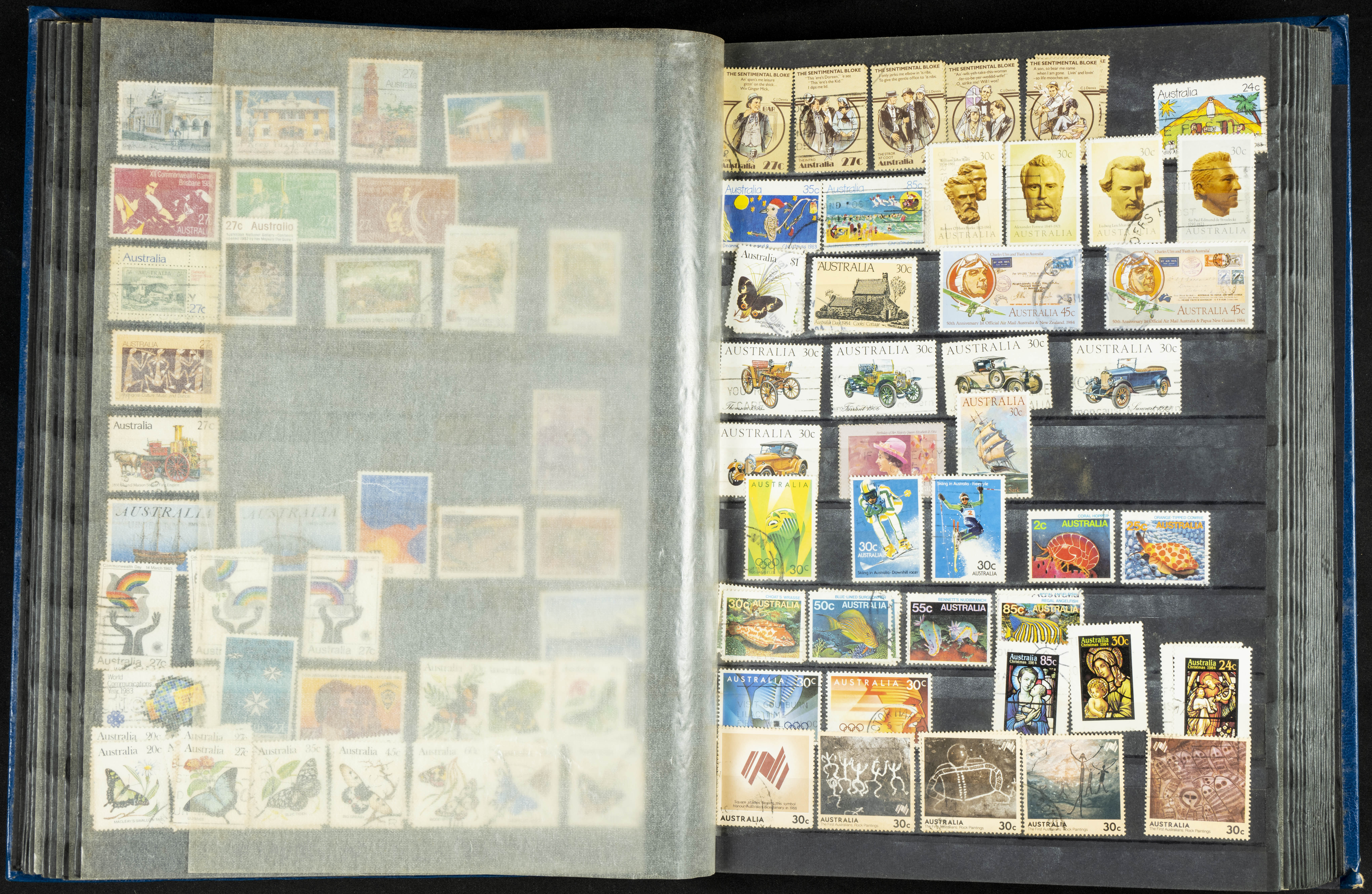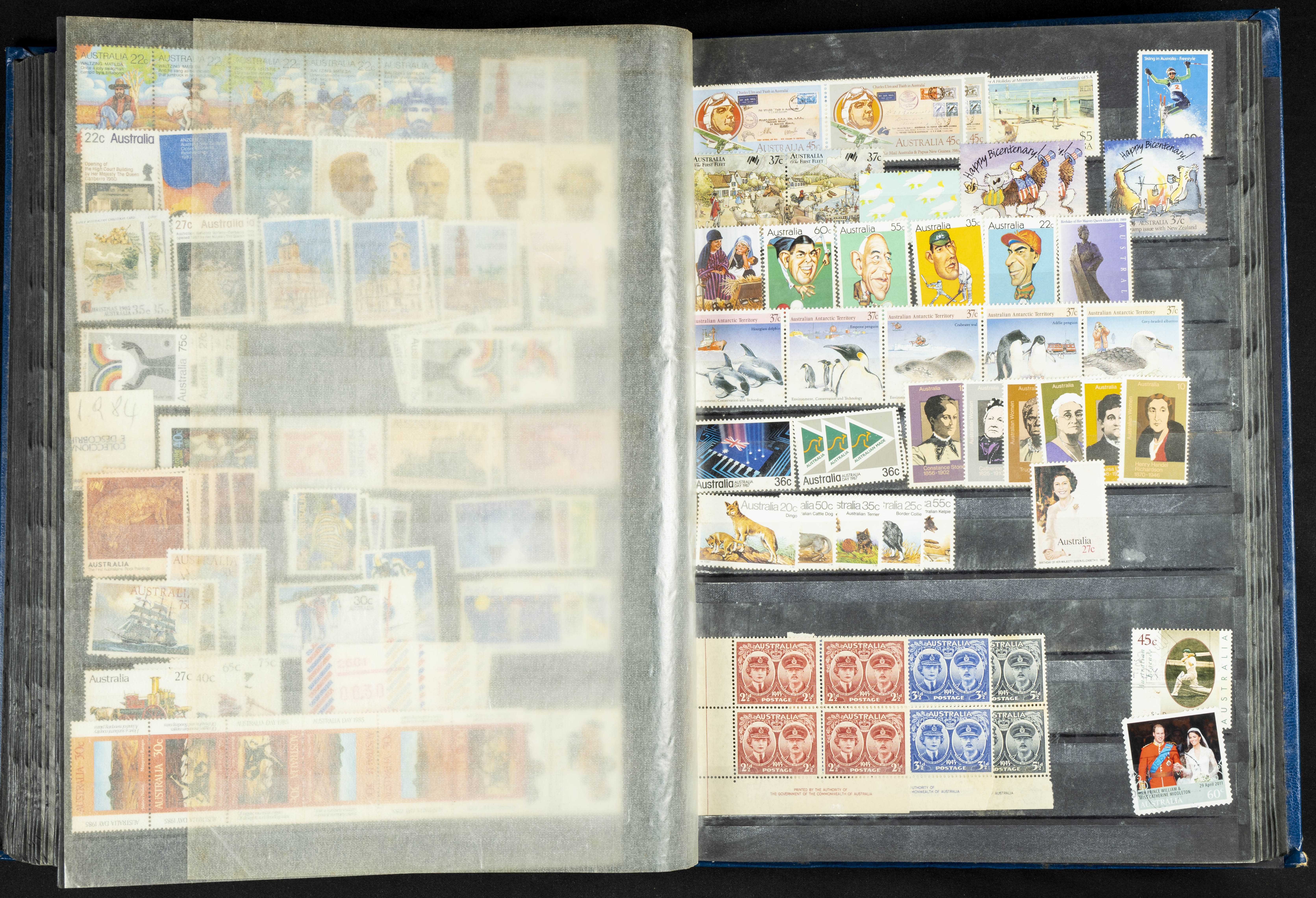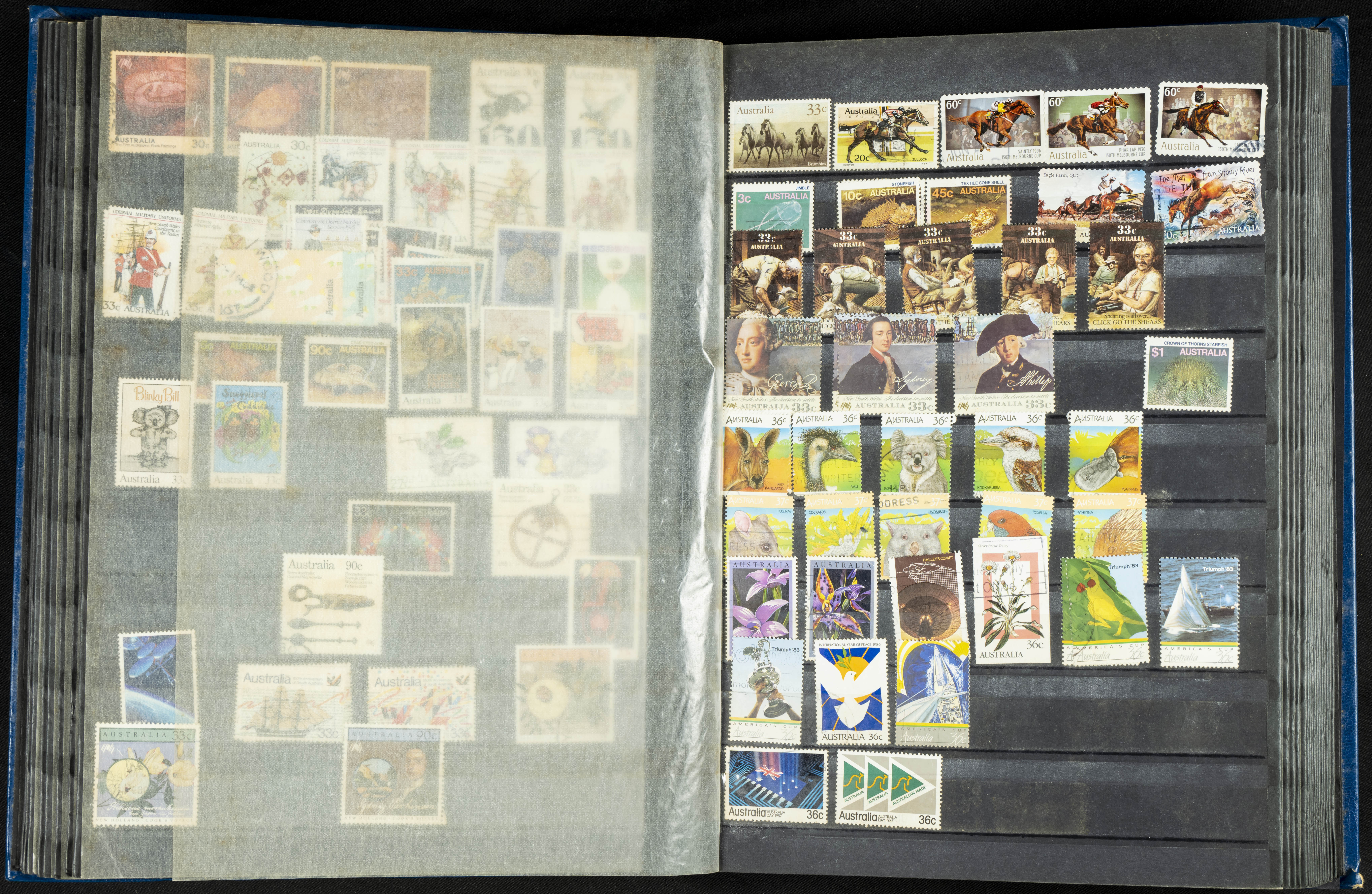 English ★★/(1930ca). Collection of thousands of loose stamps, complete series, and souvenir sheets from Great Britain, the Channel Islands (Guernsey, Jersey, and Man), and various Commonwealth countries, mostly from 1930 to 2005, in mint and used condition. The modern portion is generally very complete with some duplicates (ninety percent of the stamps are mounted in stocks and coated with talcum powder to reduce humidity). VERY HIGH CATALOGUE AND FACE VALUE. TO BE EXAMINED.