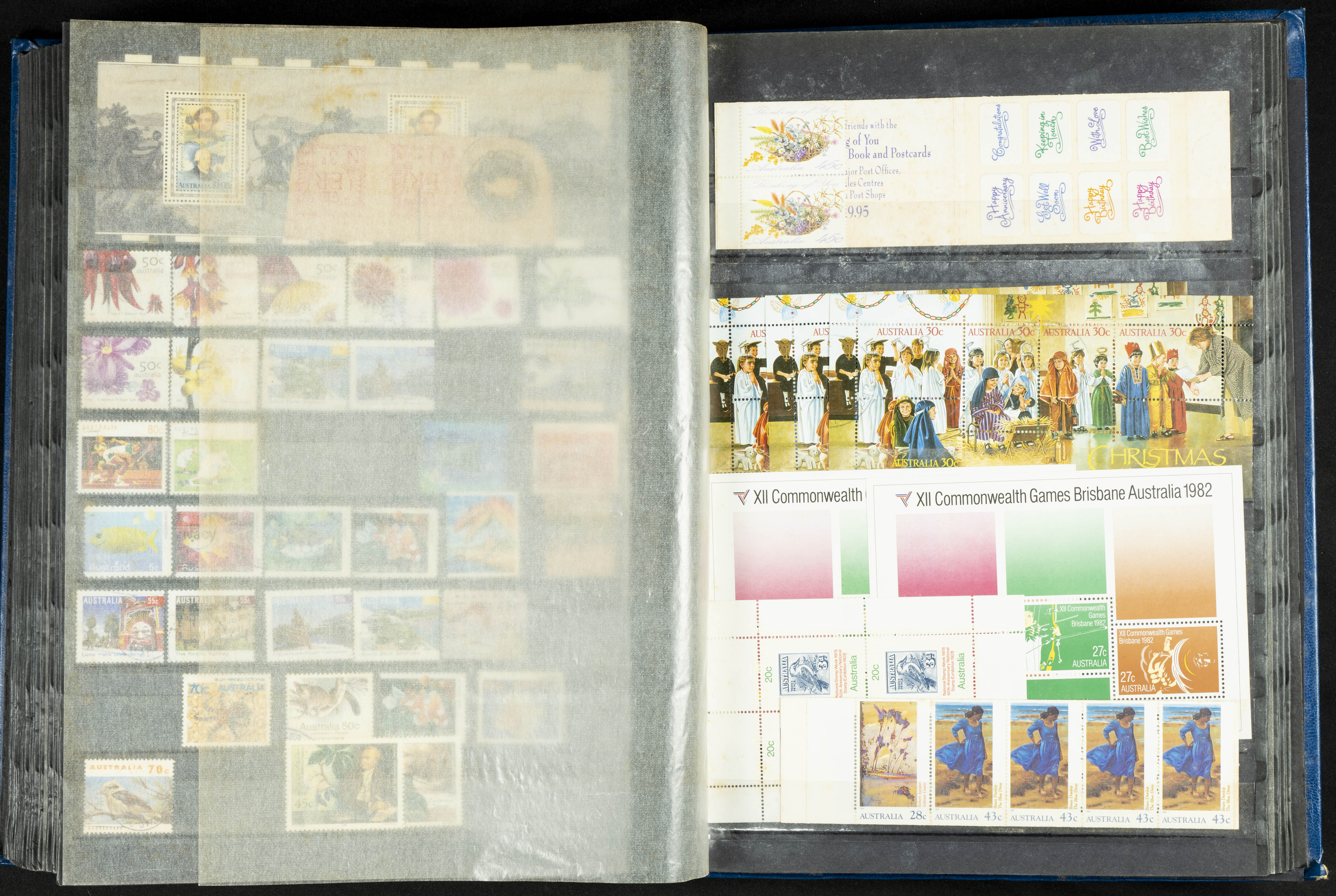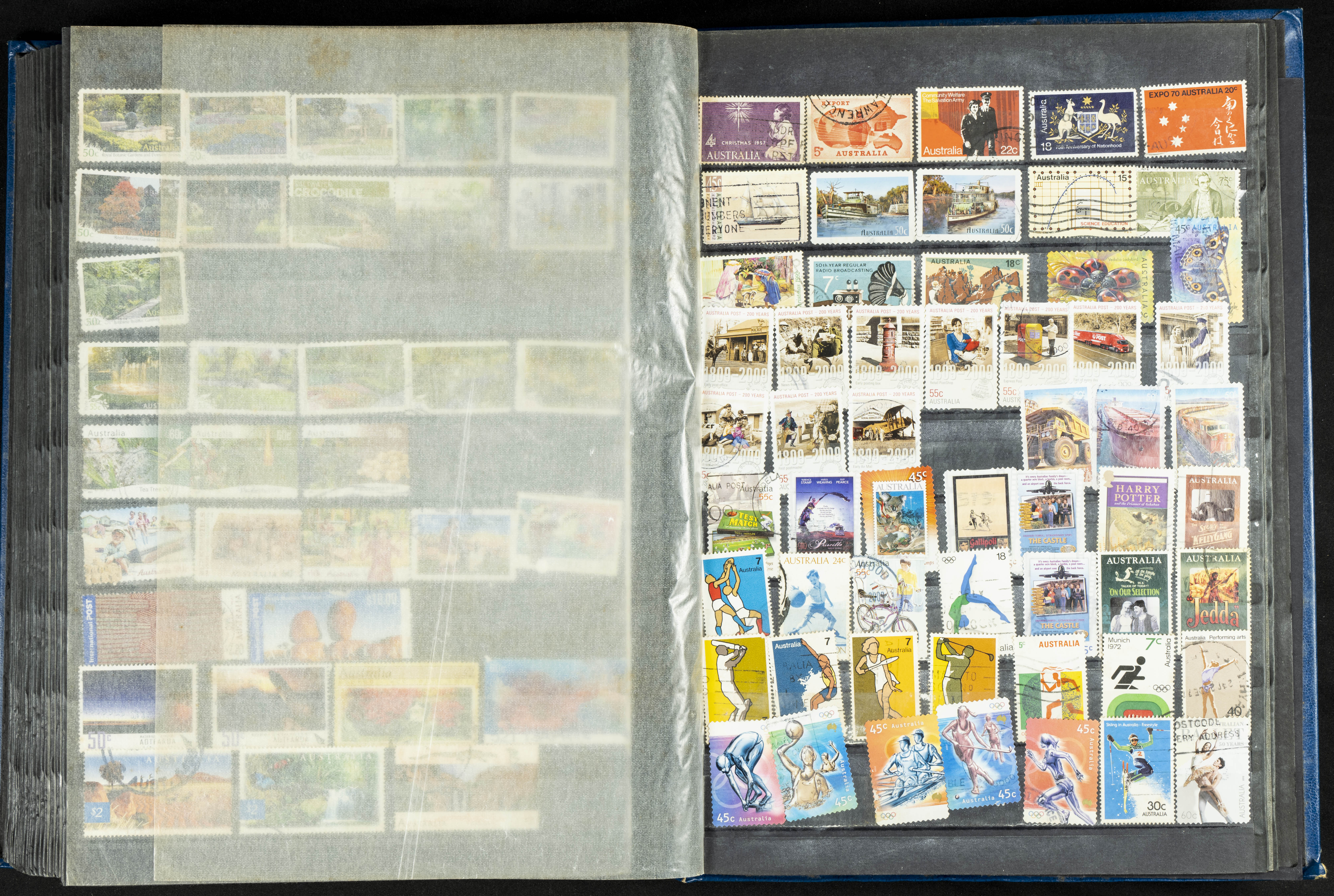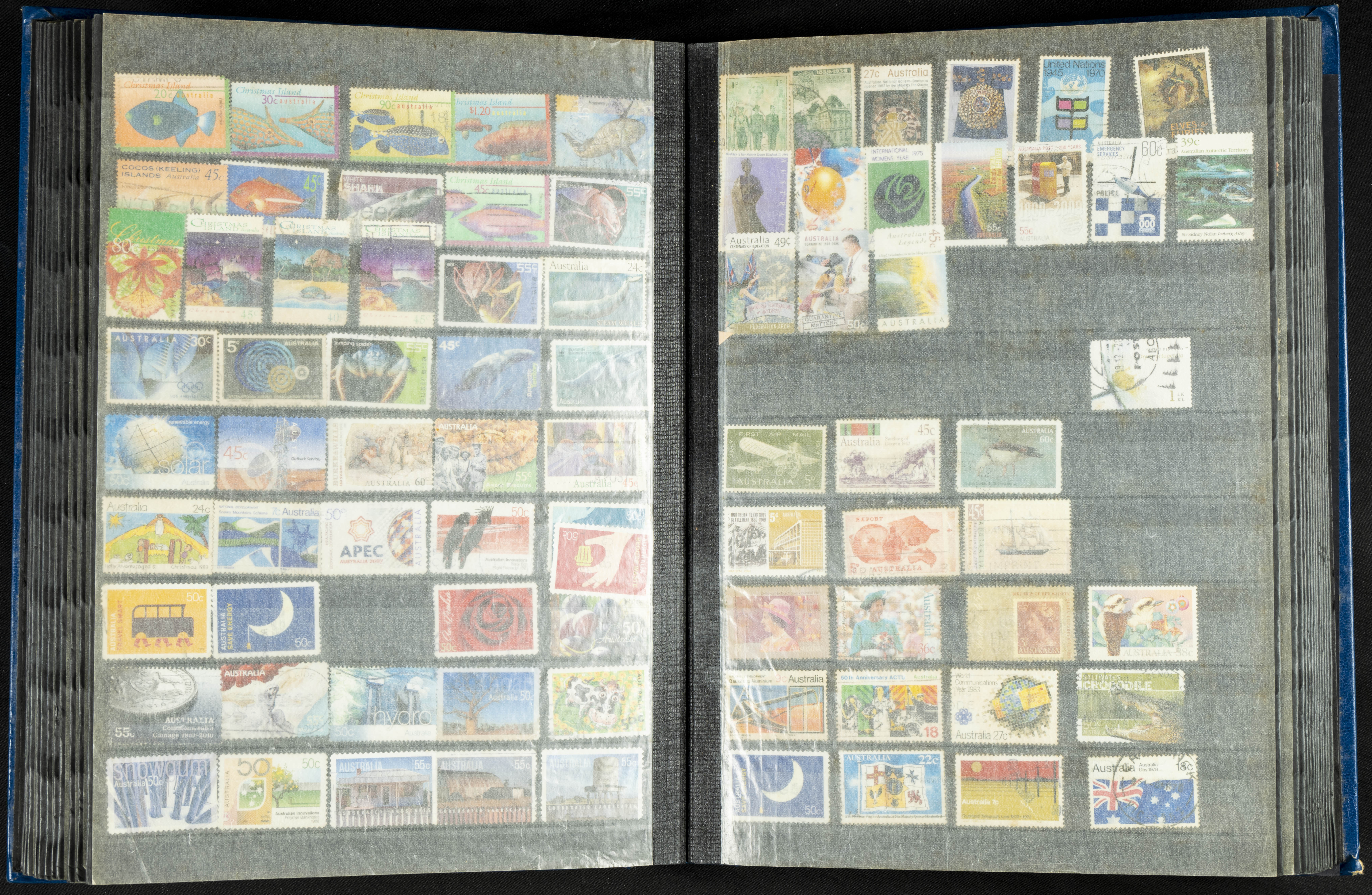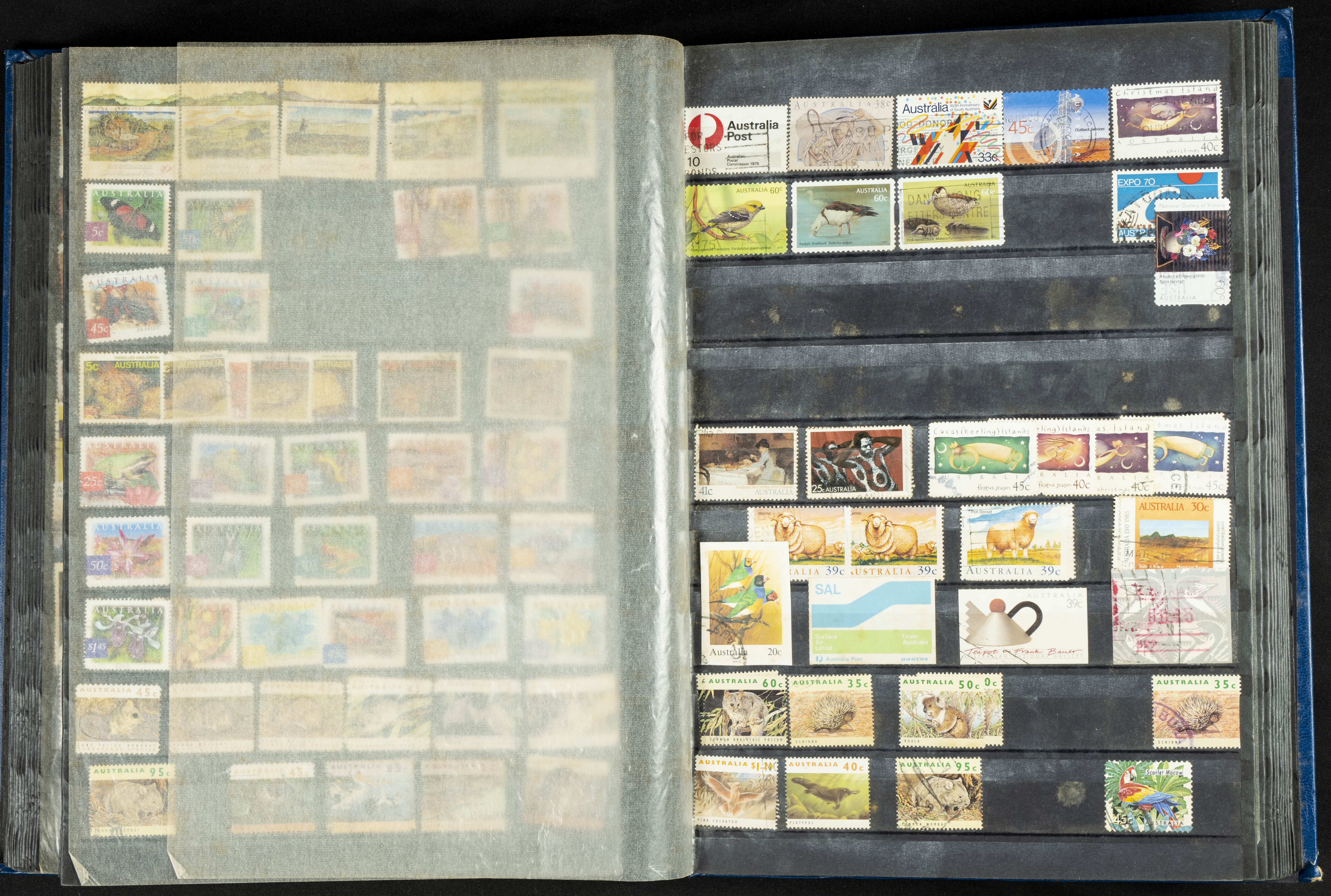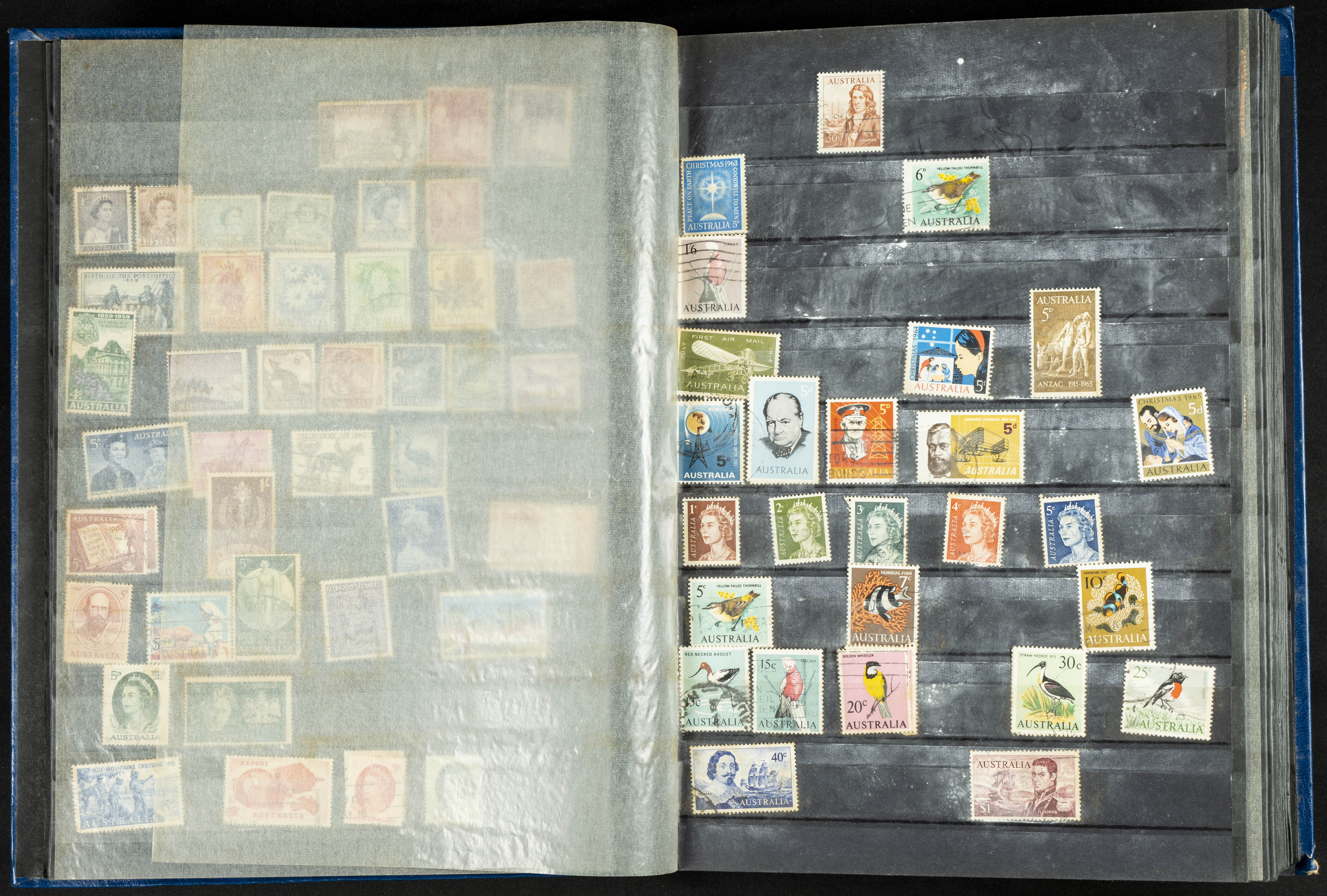 English ★★/(1930ca). Collection of thousands of loose stamps, complete series, and souvenir sheets from Great Britain, the Channel Islands (Guernsey, Jersey, and Man), and various Commonwealth countries, mostly from 1930 to 2005, in mint and used condition. The modern portion is generally very complete with some duplicates (ninety percent of the stamps are mounted in stocks and coated with talcum powder to reduce humidity). VERY HIGH CATALOGUE AND FACE VALUE. TO BE EXAMINED.