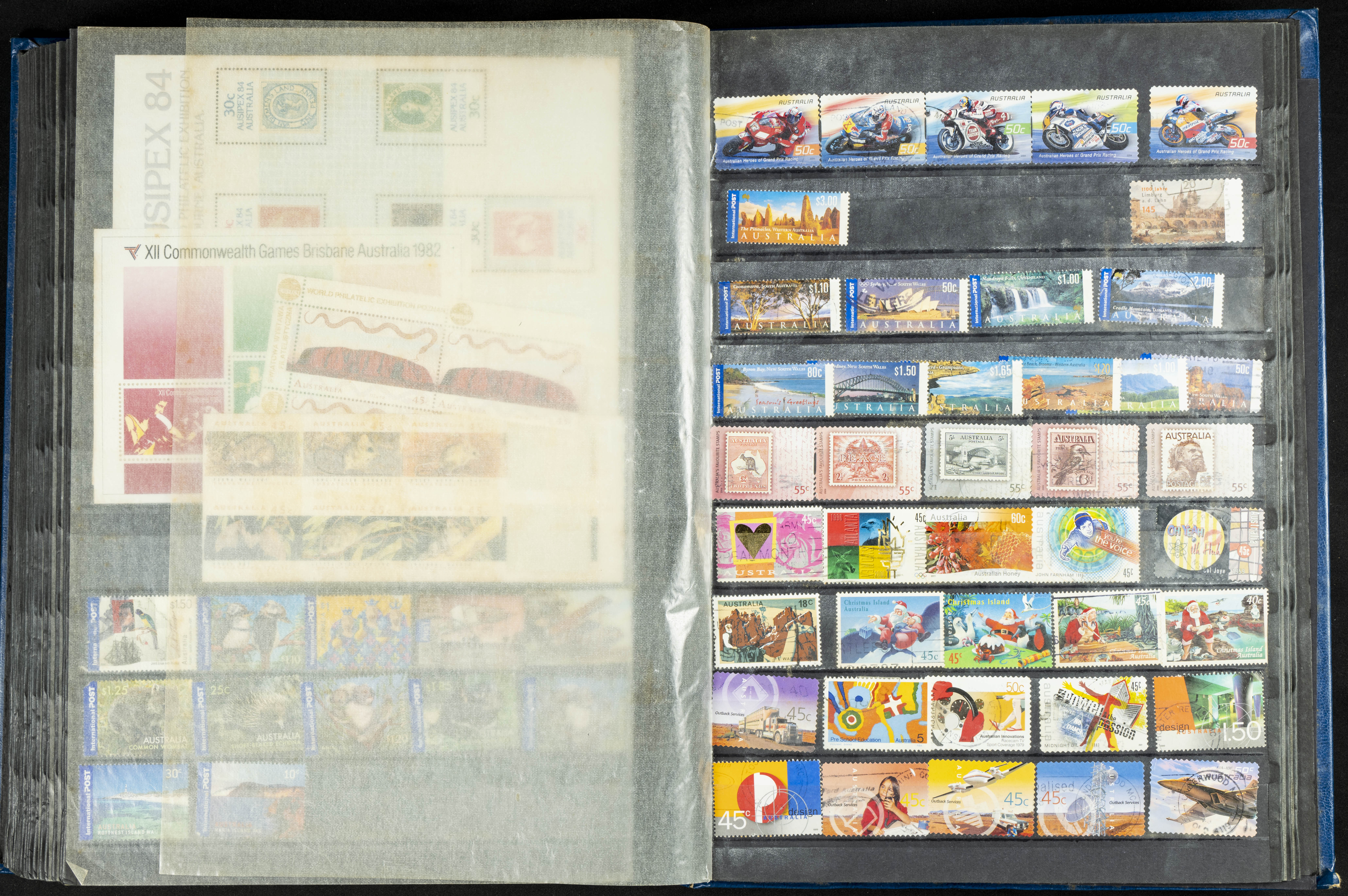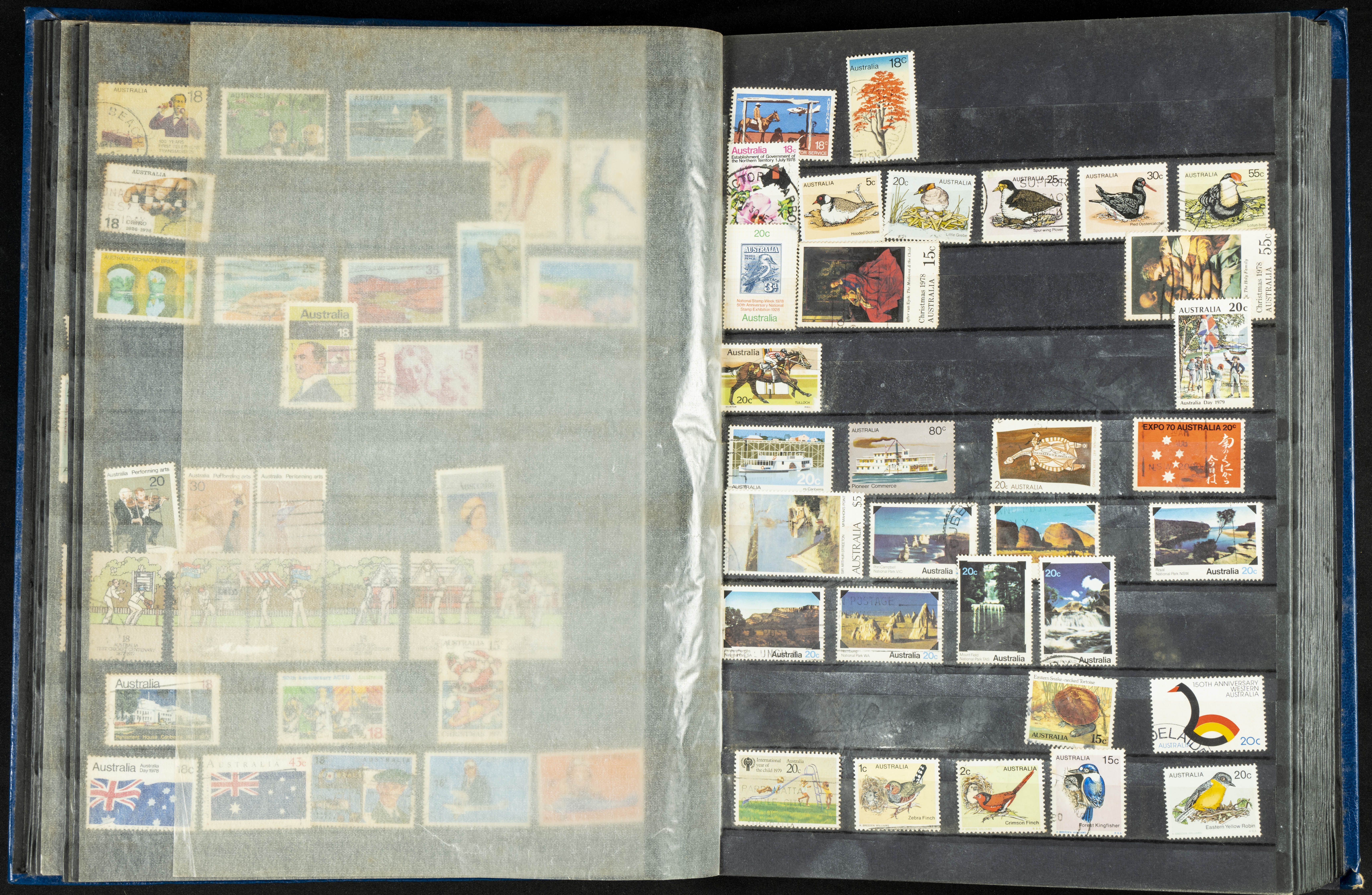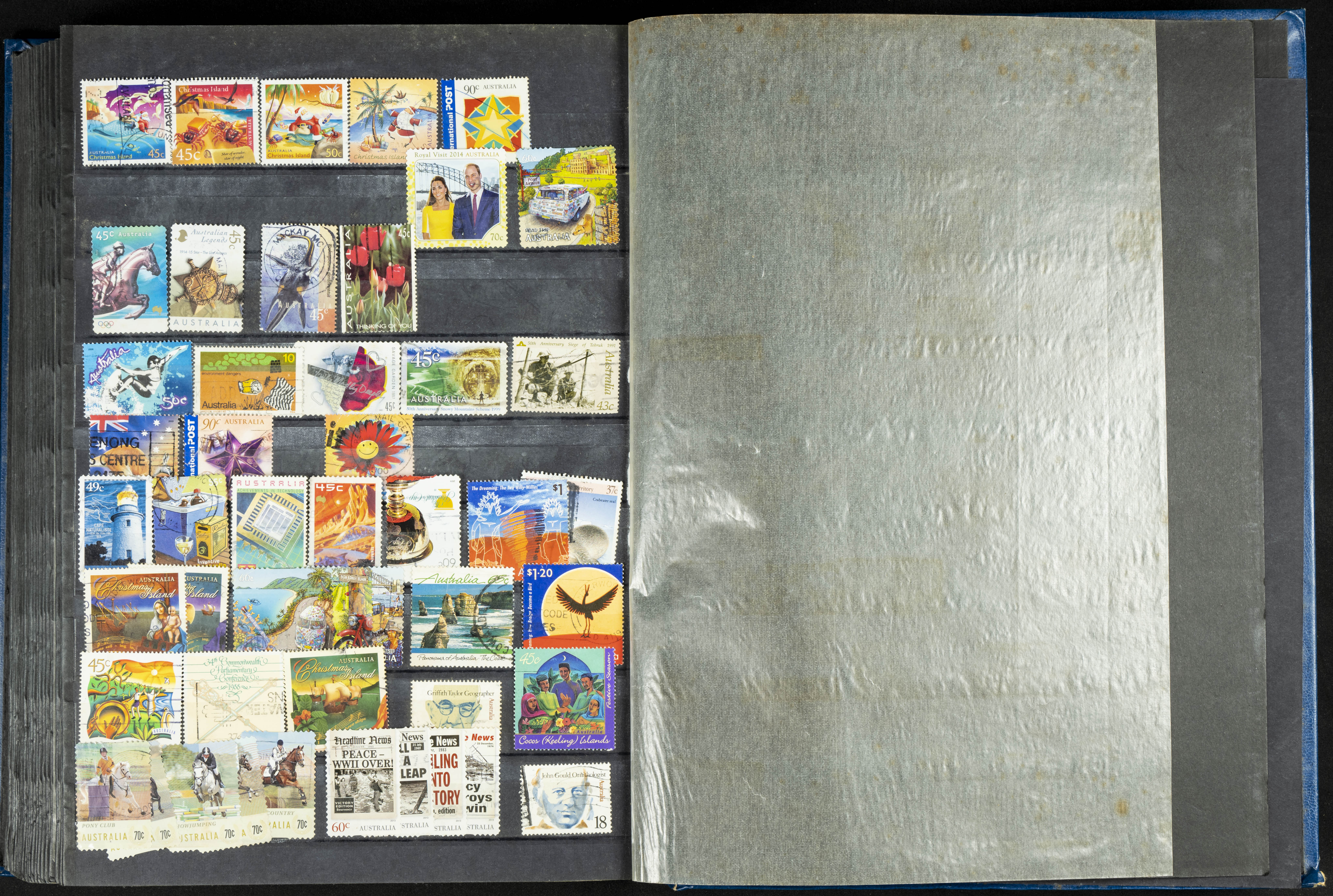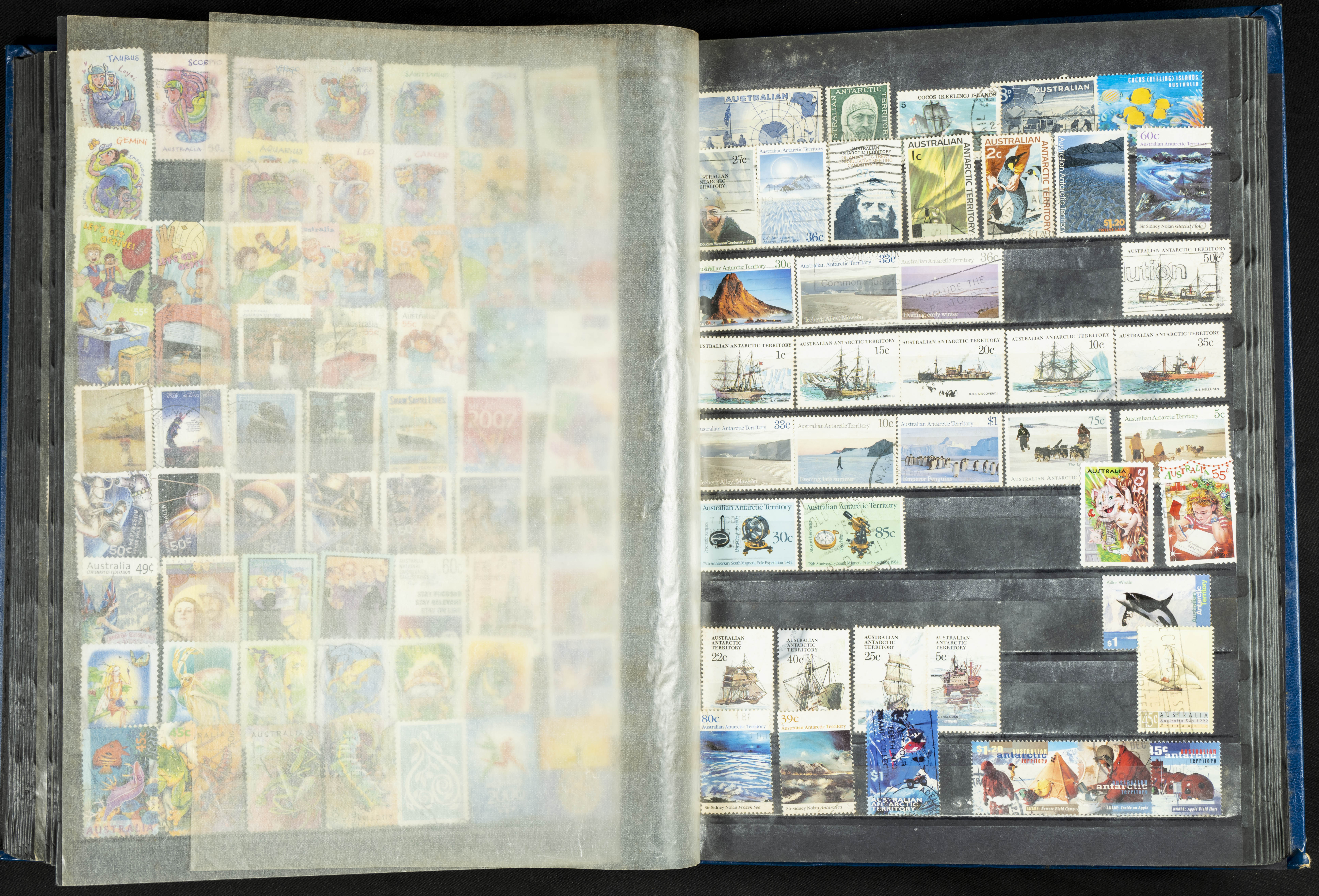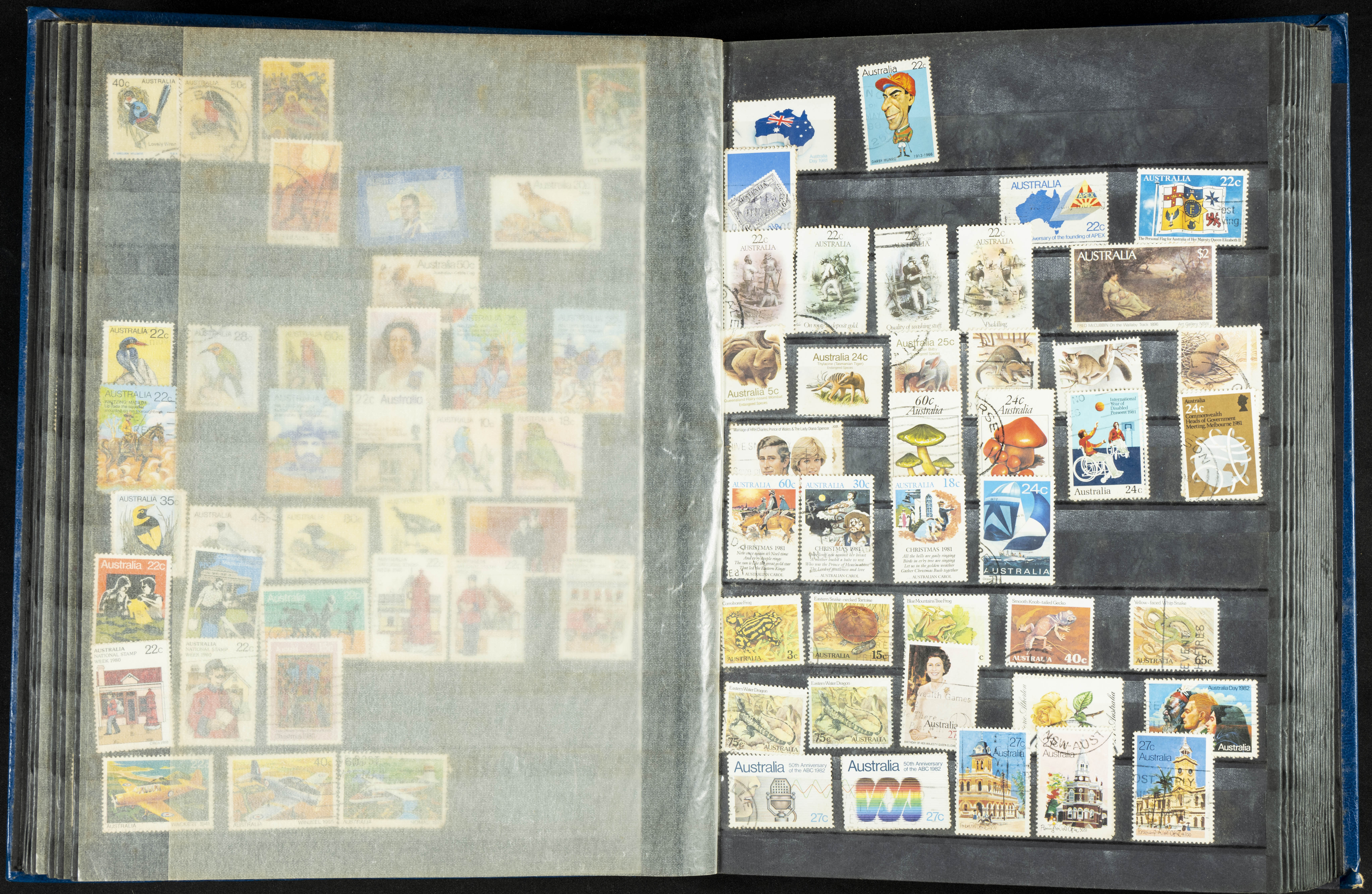 English ★★/(1930ca). Collection of thousands of loose stamps, complete series, and souvenir sheets from Great Britain, the Channel Islands (Guernsey, Jersey, and Man), and various Commonwealth countries, mostly from 1930 to 2005, in mint and used condition. The modern portion is generally very complete with some duplicates (ninety percent of the stamps are mounted in stocks and coated with talcum powder to reduce humidity). VERY HIGH CATALOGUE AND FACE VALUE. TO BE EXAMINED.