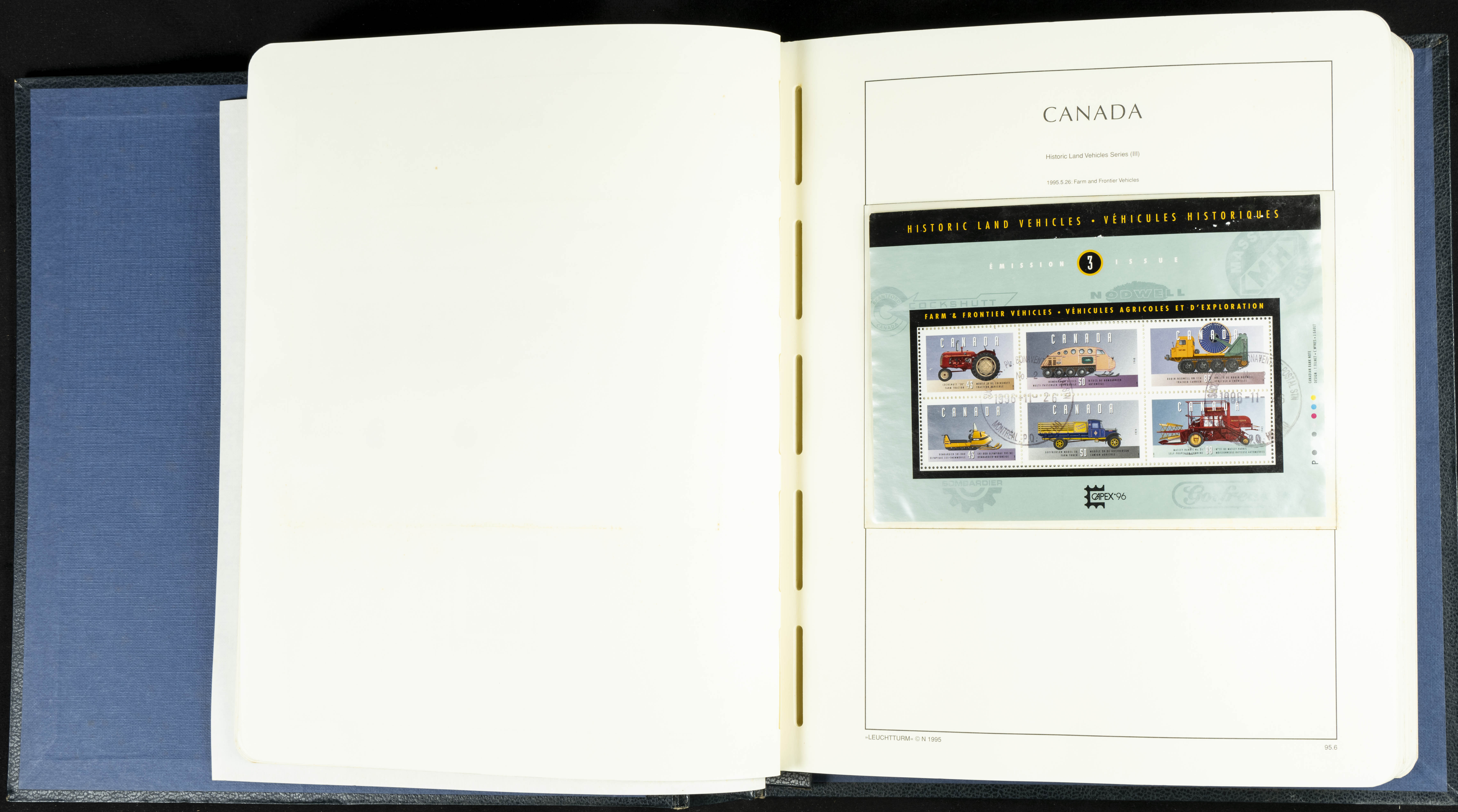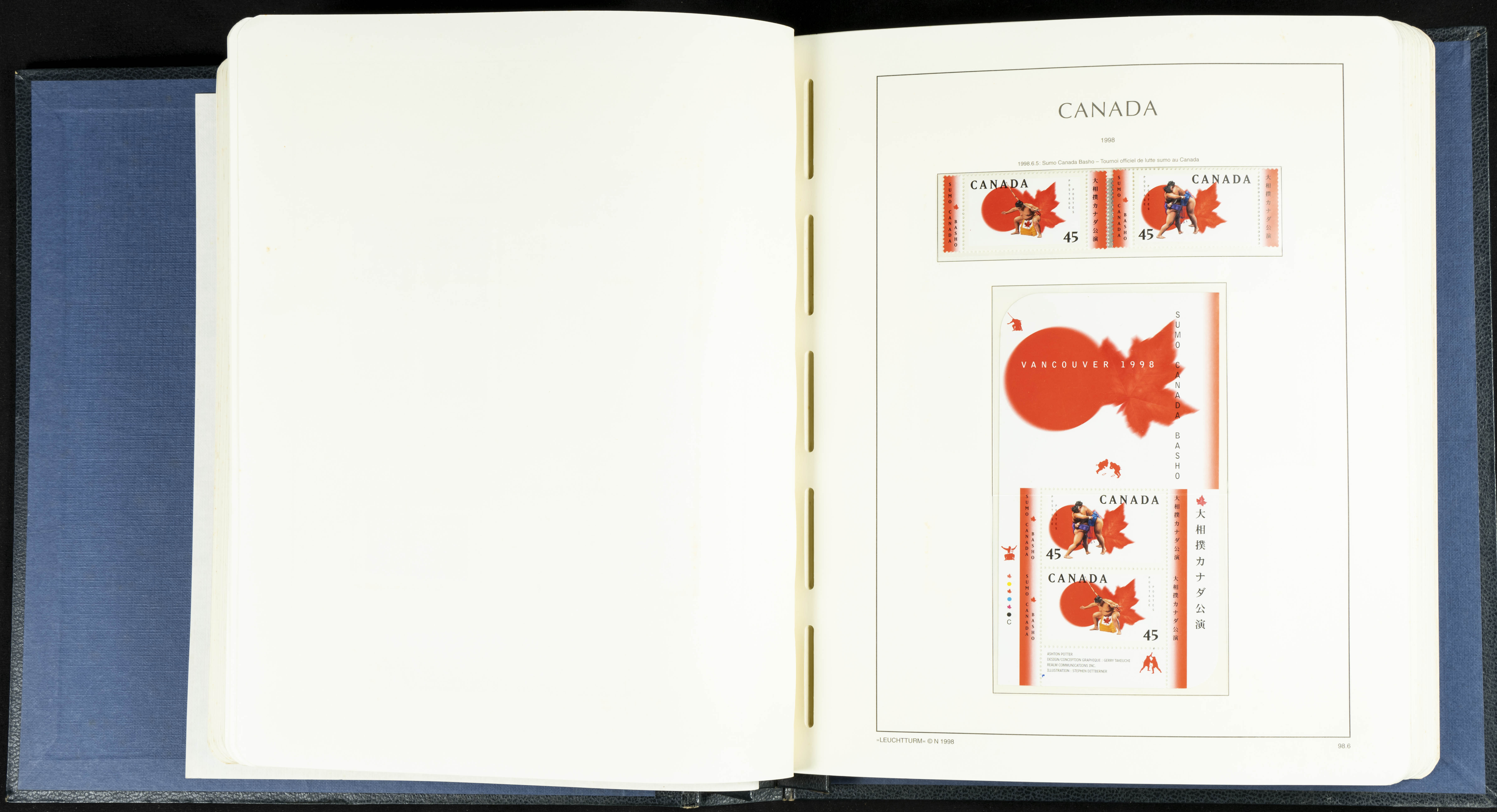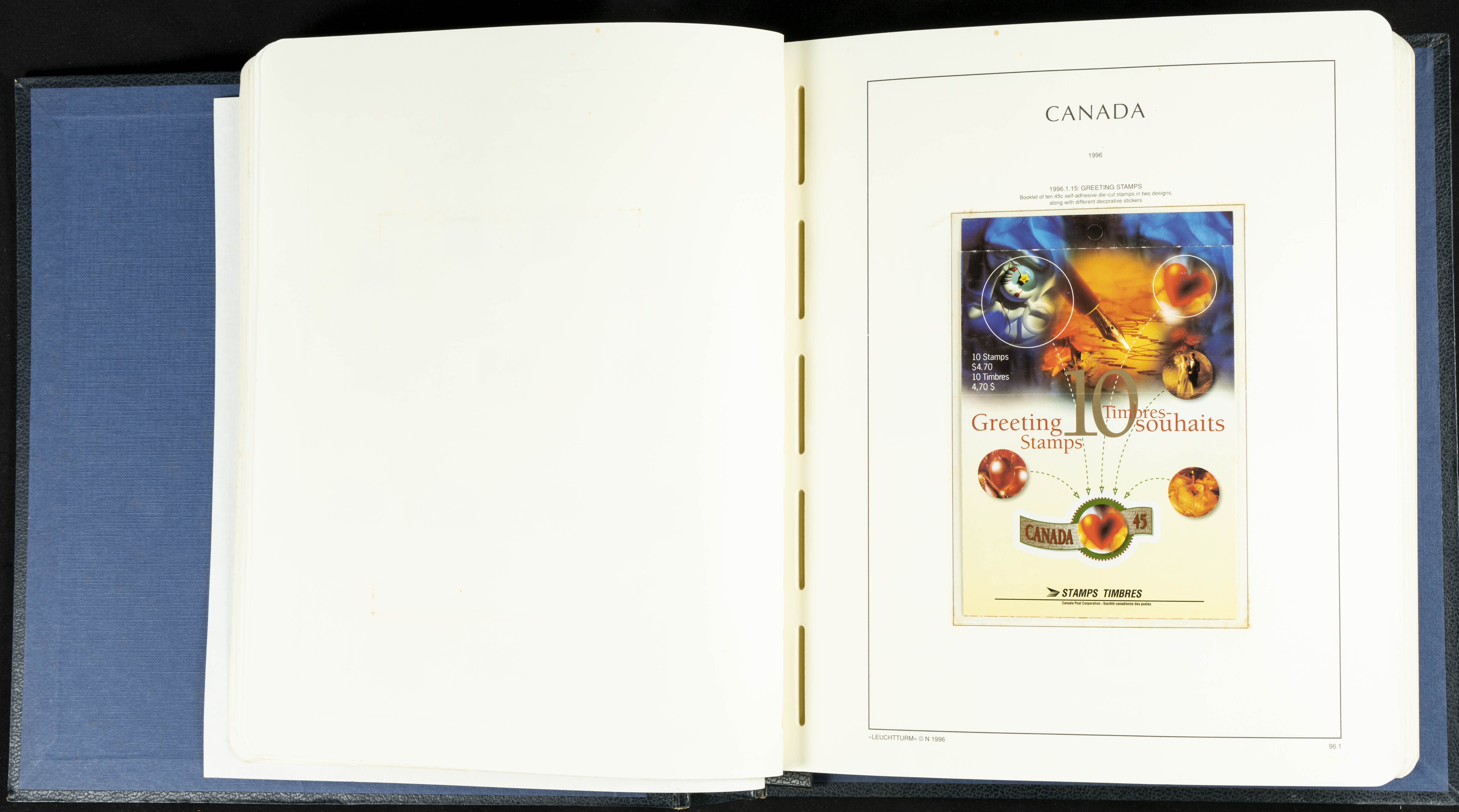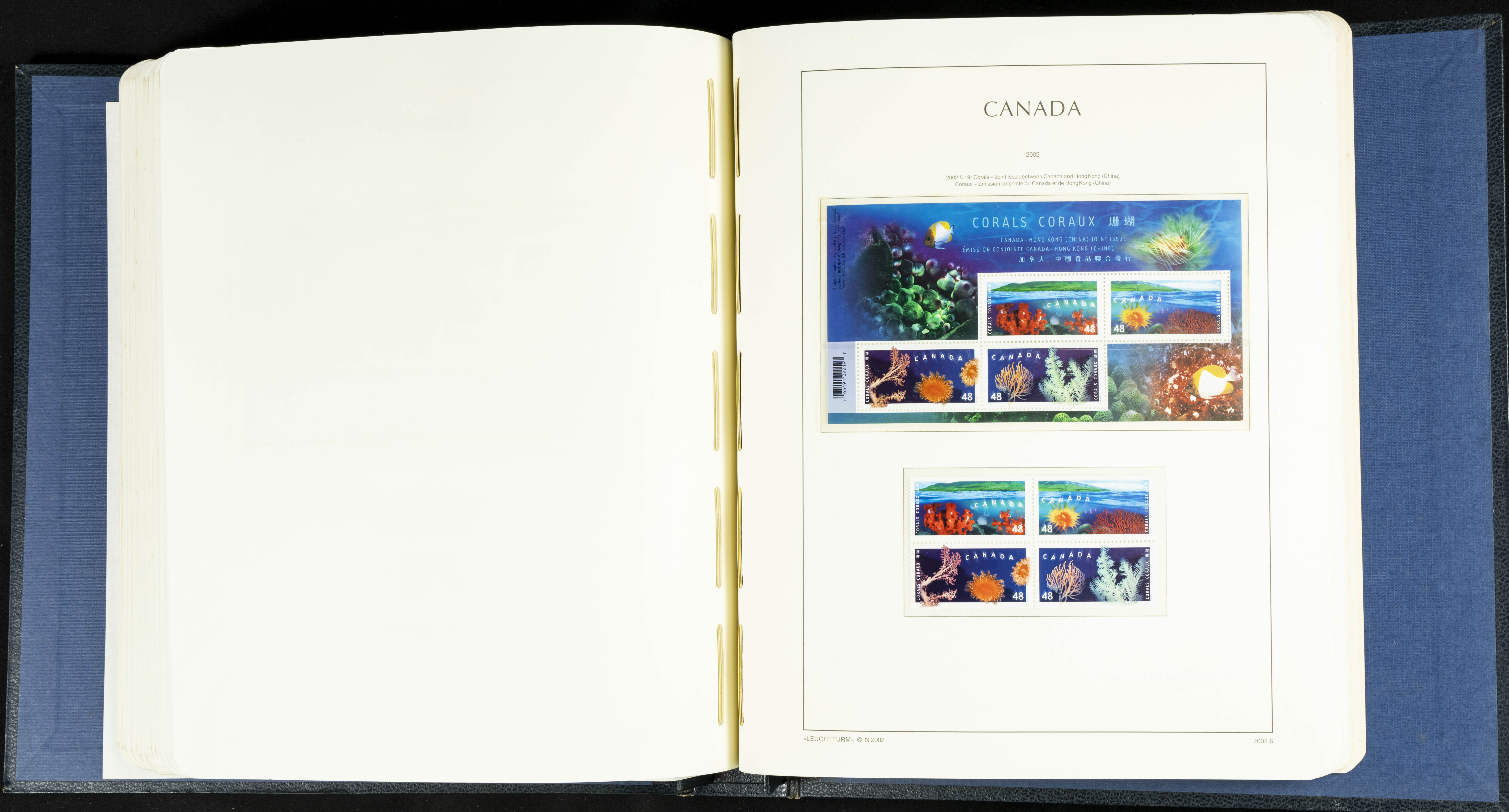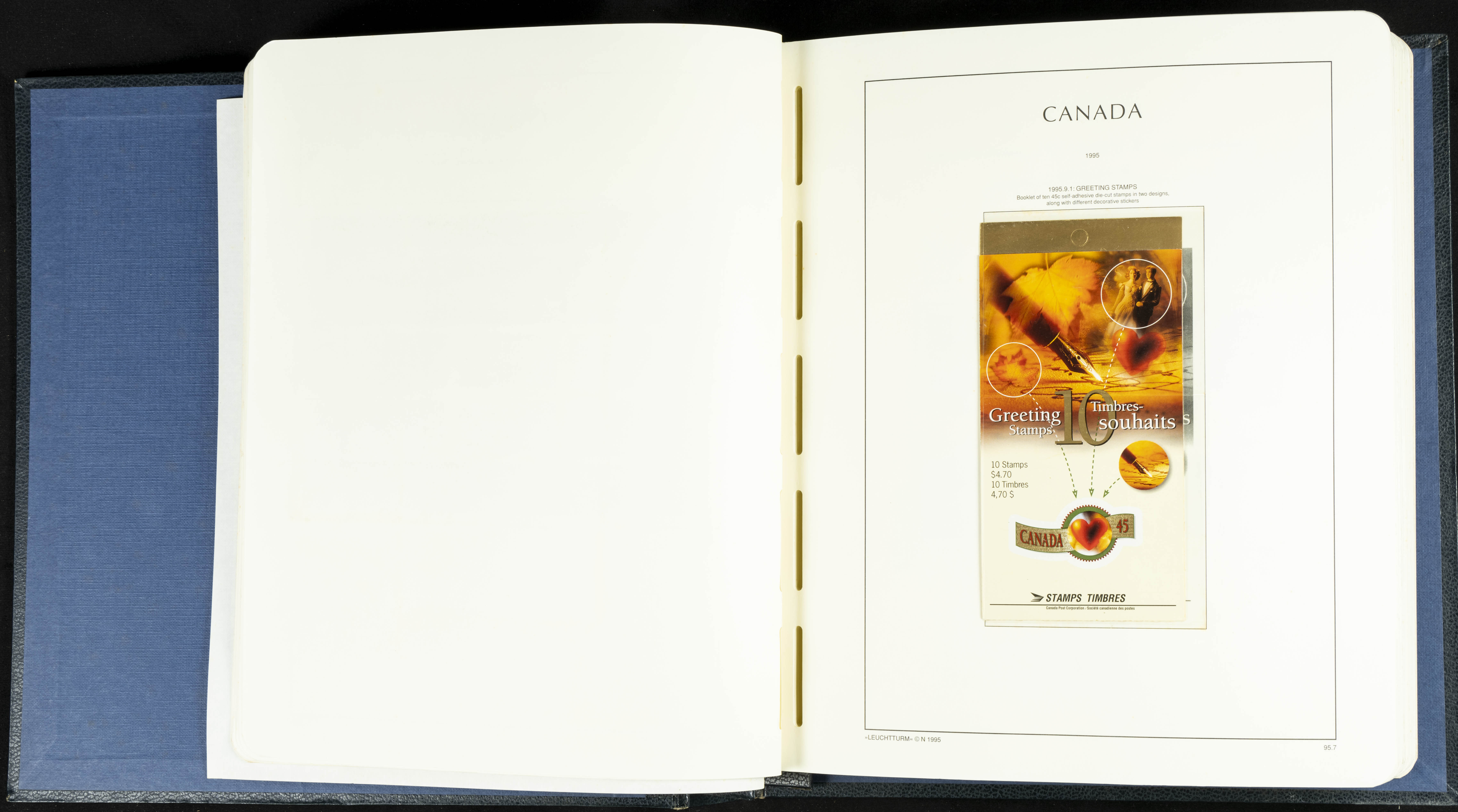 English ★★/(1995ca). Interesting collection of Canadian stamps from 1995 to 2002, mostly mint and used, including most souvenir sheets and booklets issued, plus a classifier with stamps from before 1995 and from 2003 onwards, both mint and used. HIGH CATALOG VALUE. EXAMINATION REQUIRED.