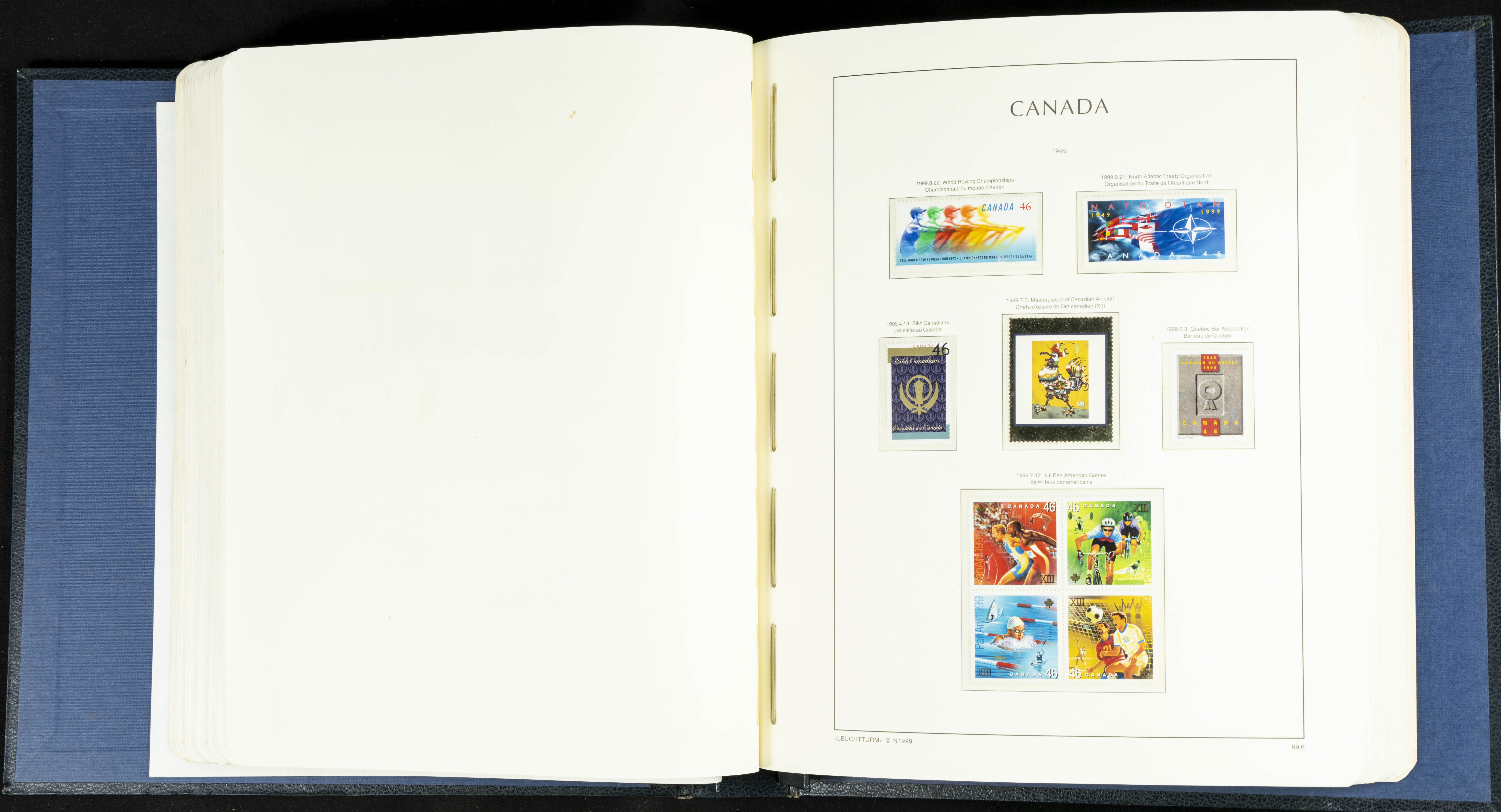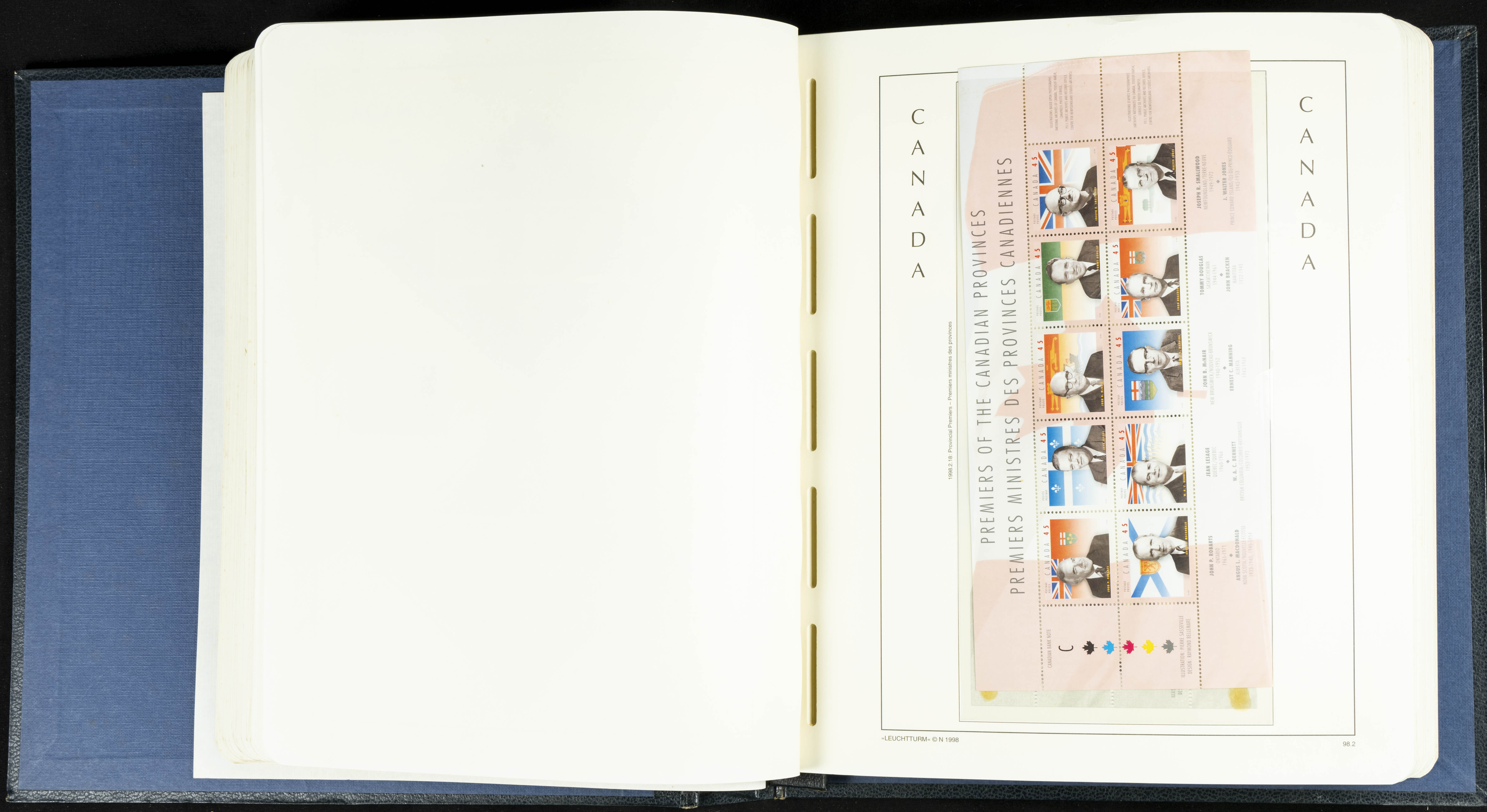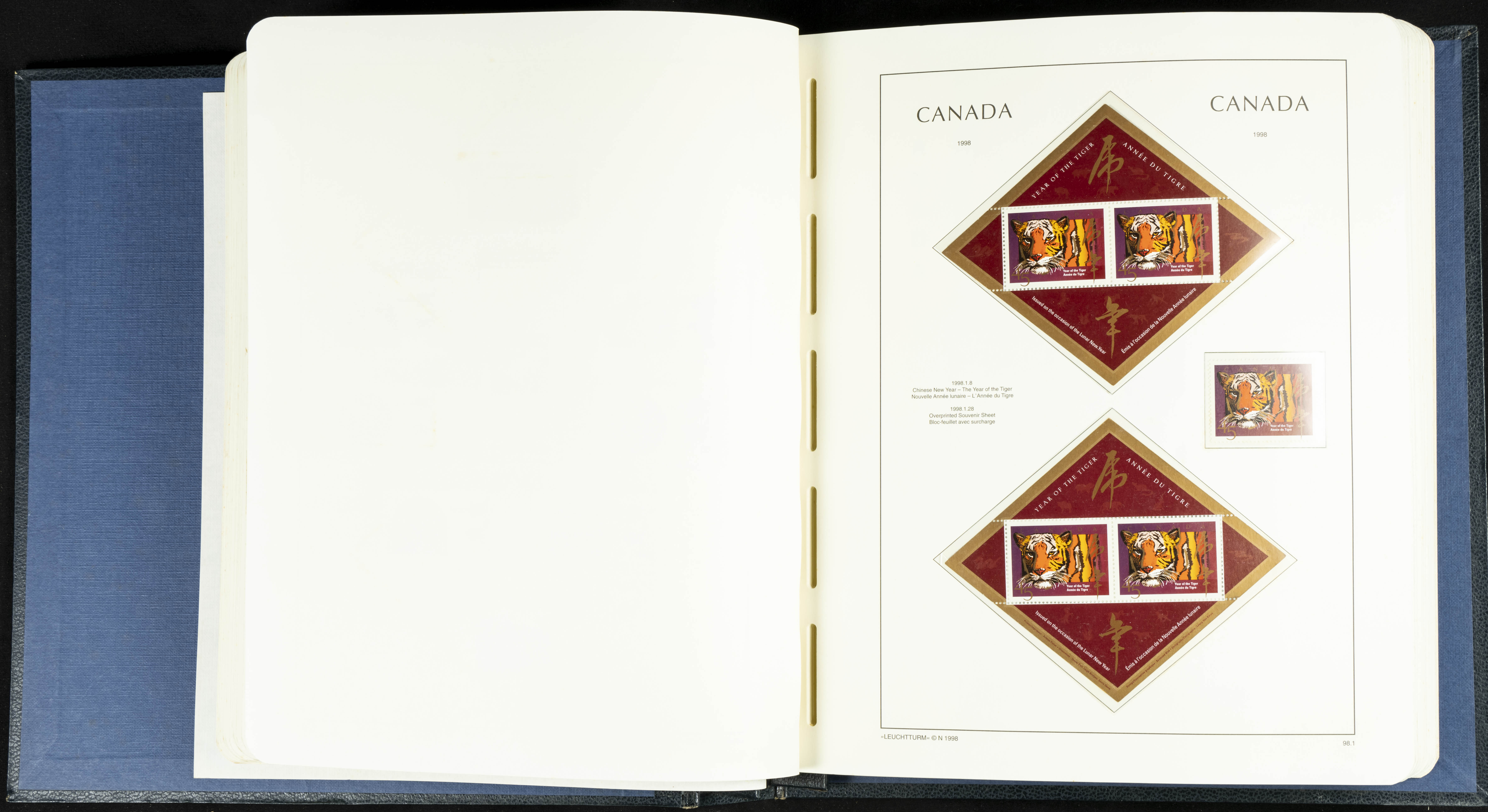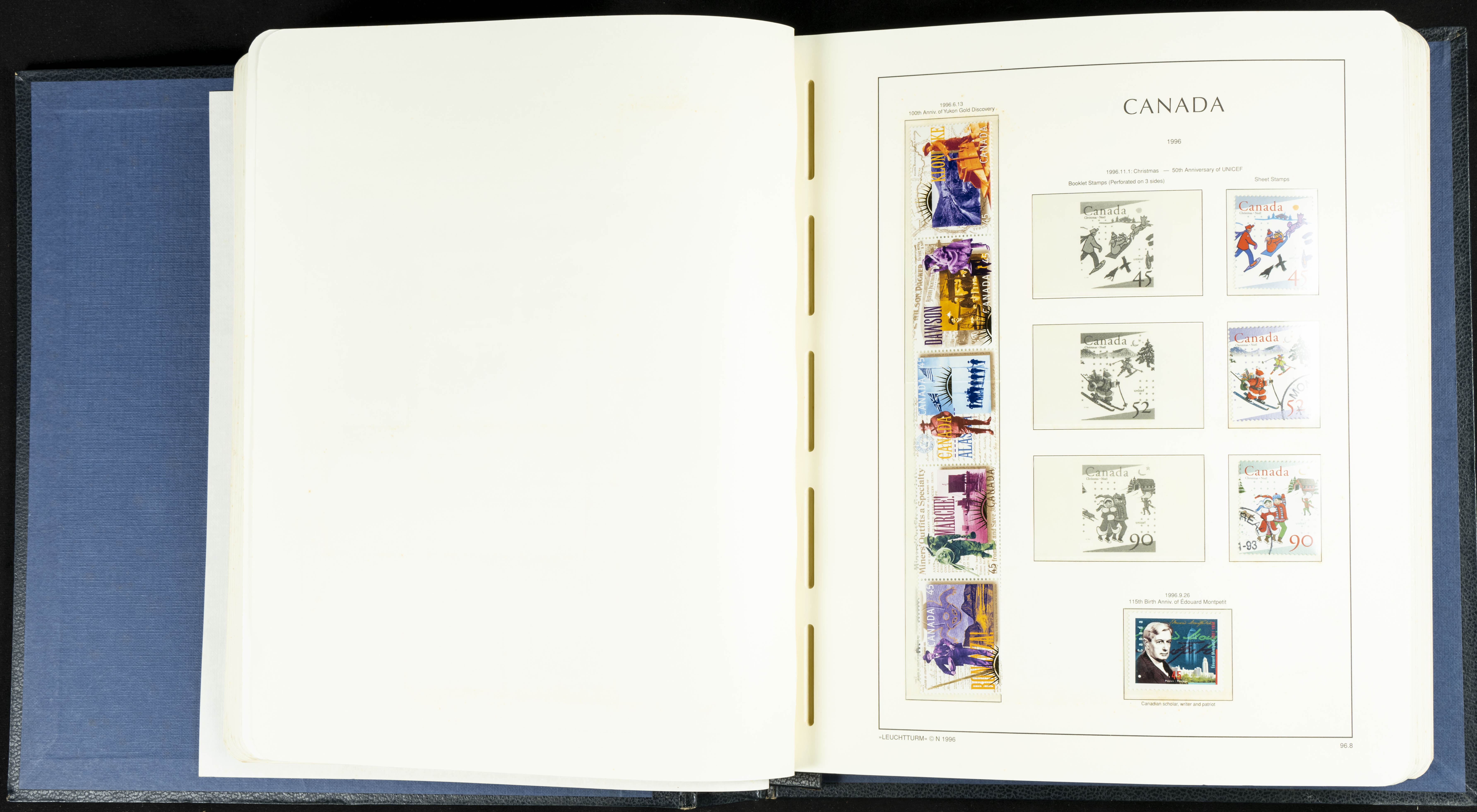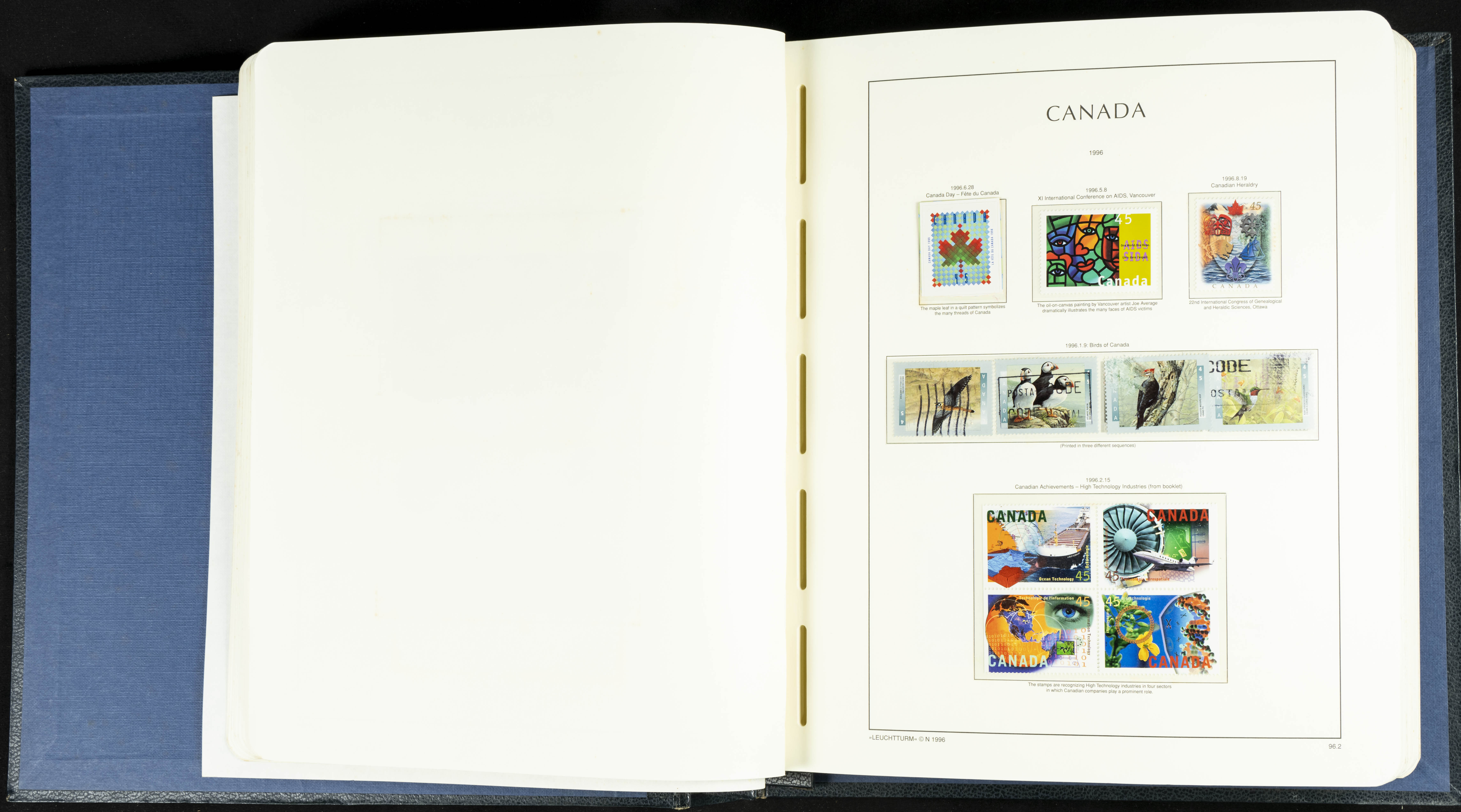 English ★★/(1995ca). Interesting collection of Canadian stamps from 1995 to 2002, mostly mint and used, including most souvenir sheets and booklets issued, plus a classifier with stamps from before 1995 and from 2003 onwards, both mint and used. HIGH CATALOG VALUE. EXAMINATION REQUIRED.