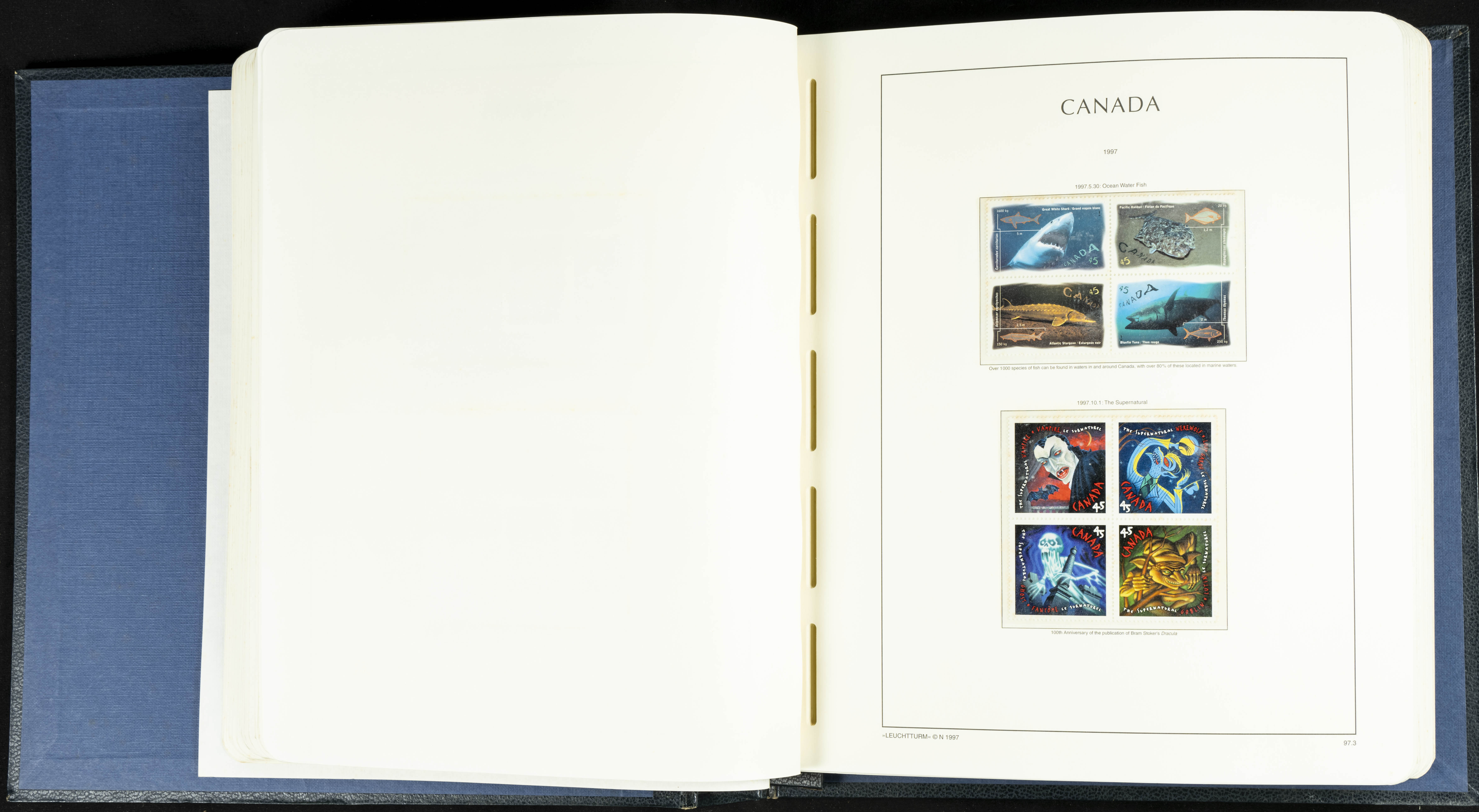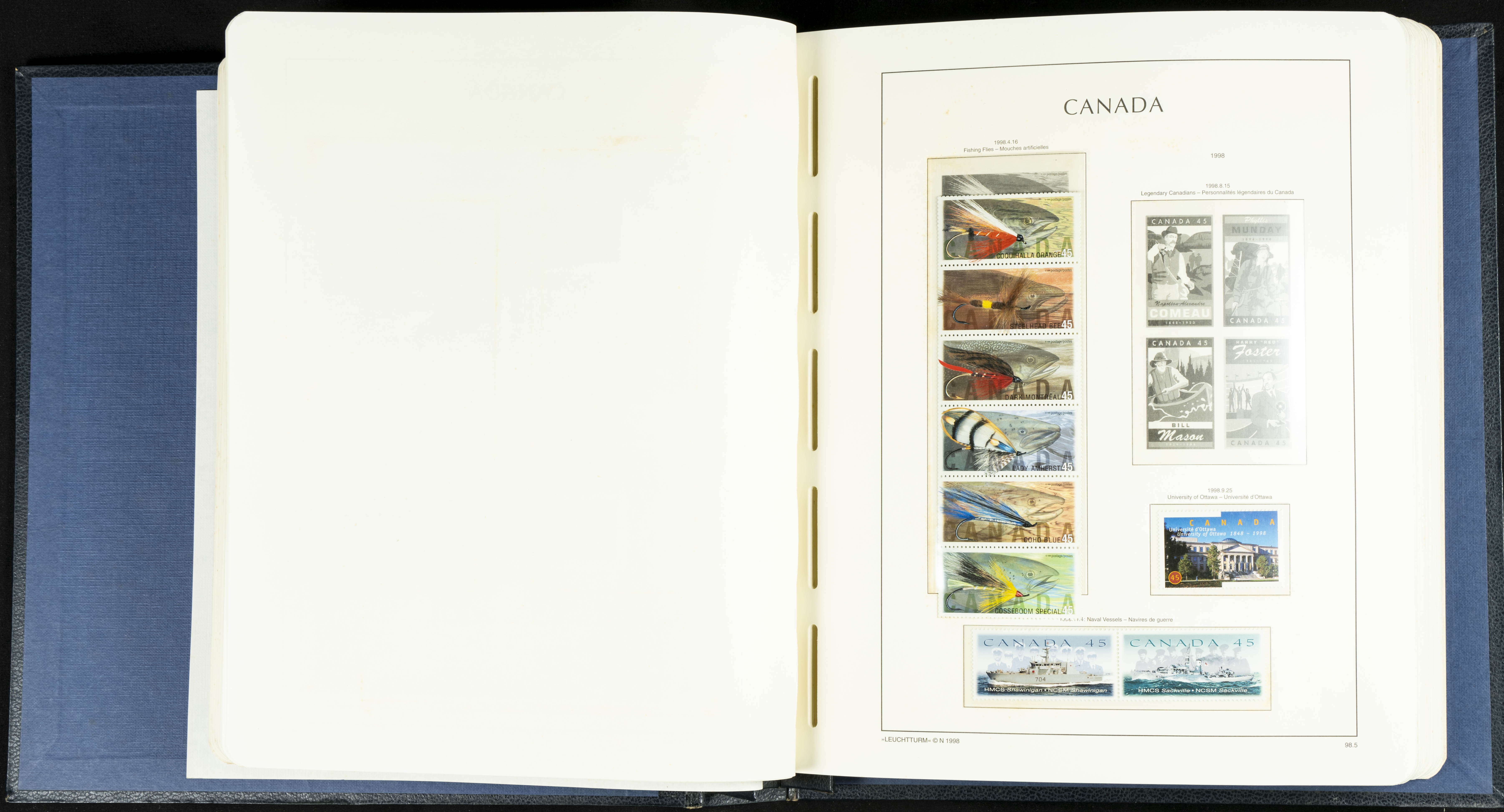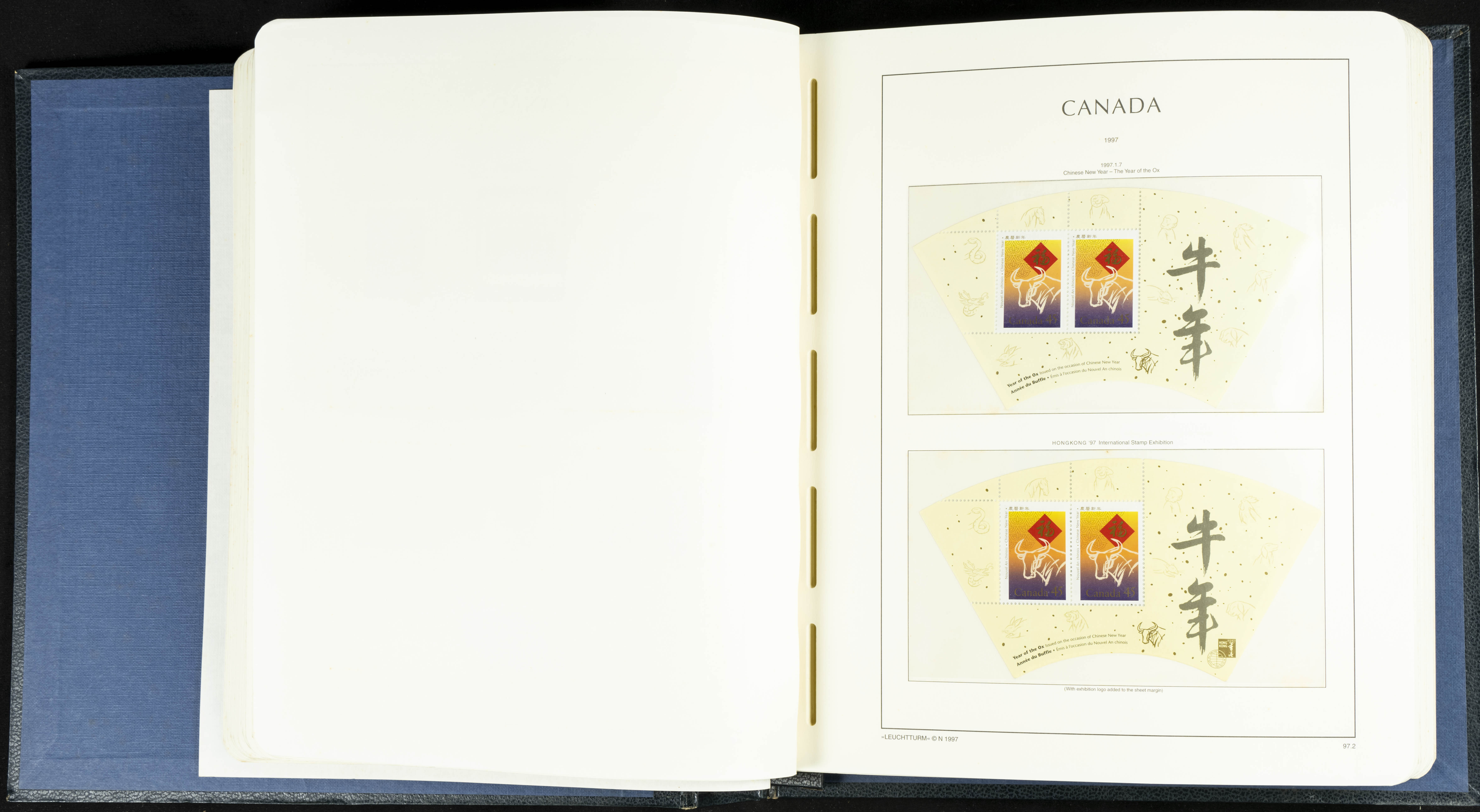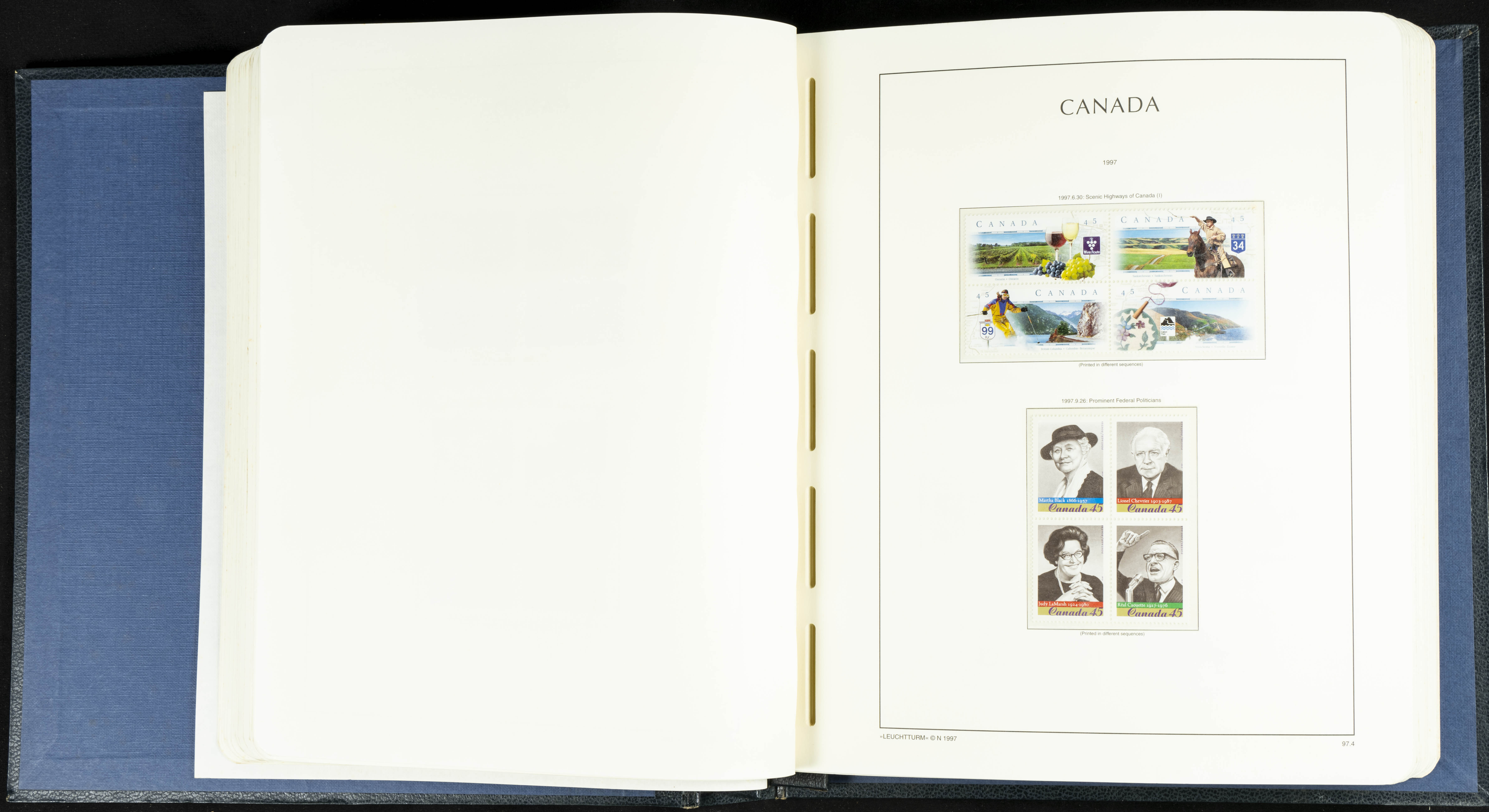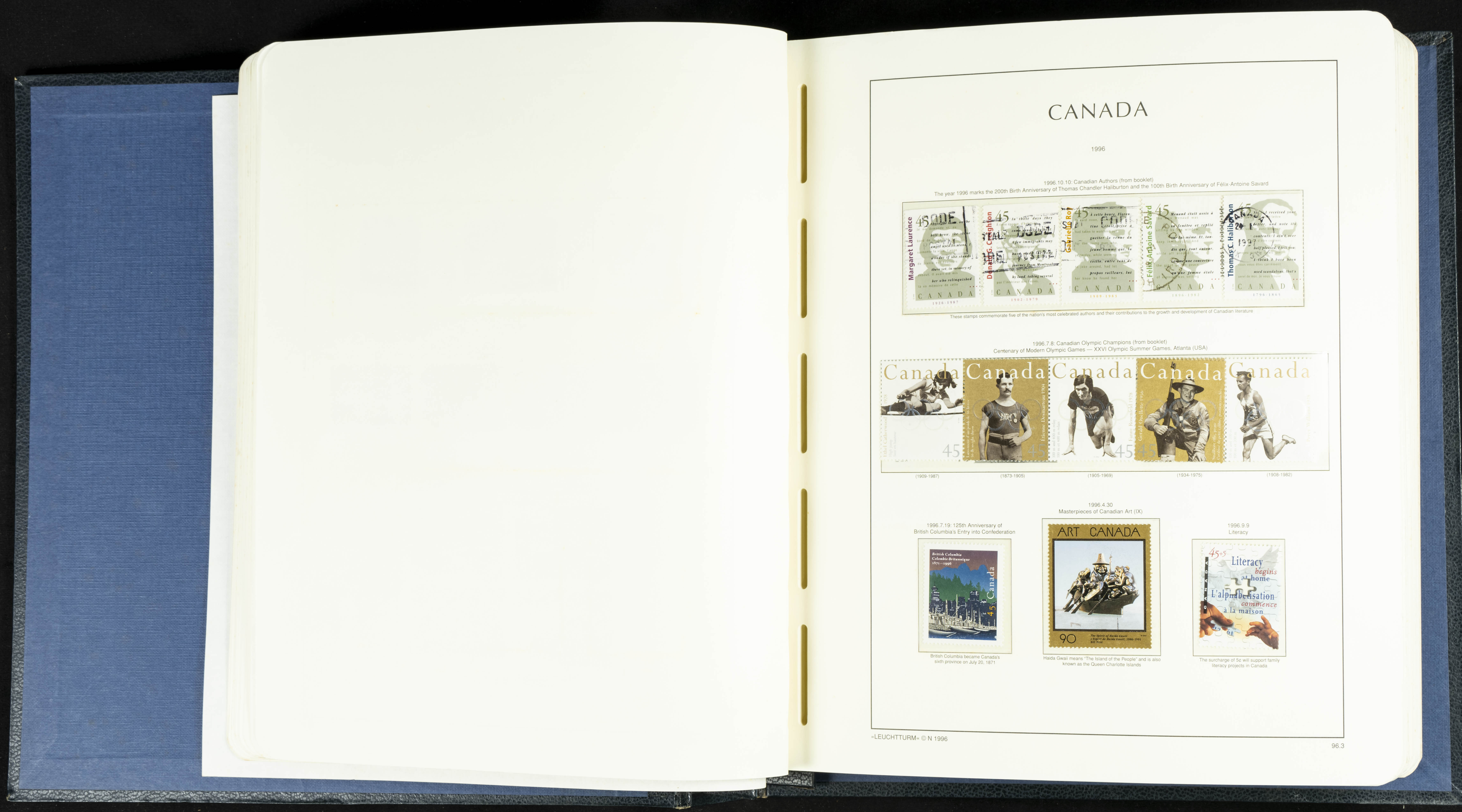 English ★★/(1995ca). Interesting collection of Canadian stamps from 1995 to 2002, mostly mint and used, including most souvenir sheets and booklets issued, plus a classifier with stamps from before 1995 and from 2003 onwards, both mint and used. HIGH CATALOG VALUE. EXAMINATION REQUIRED.