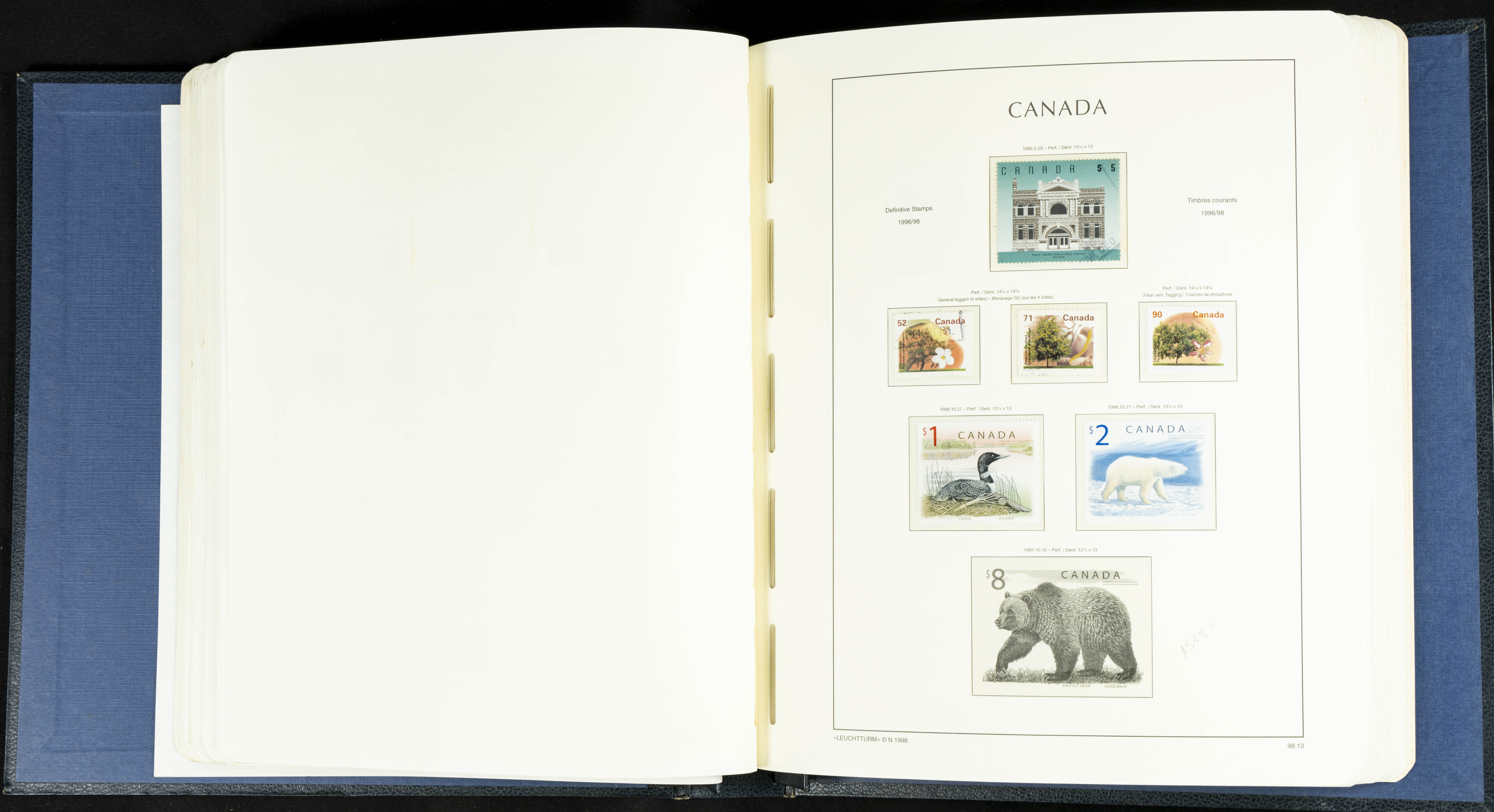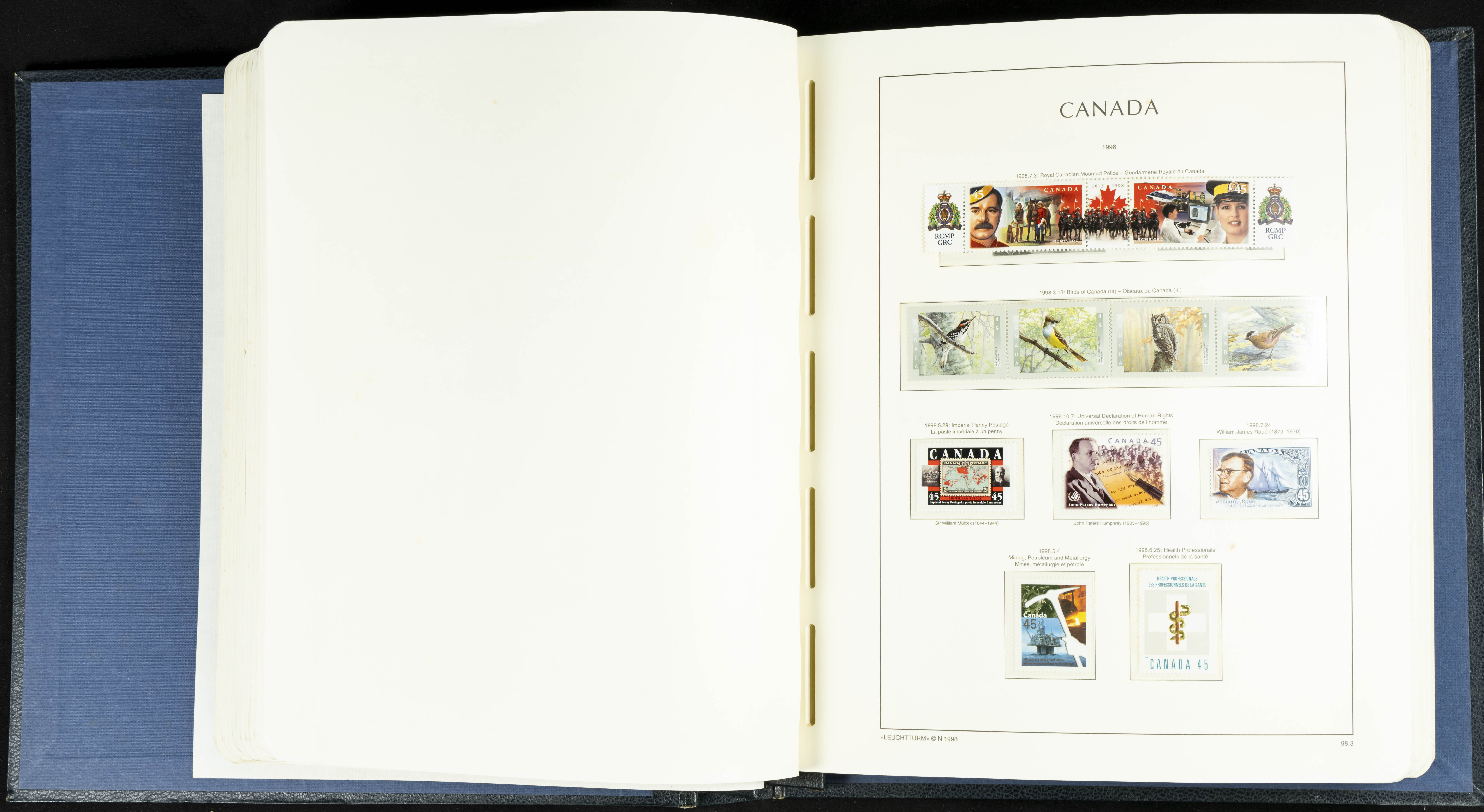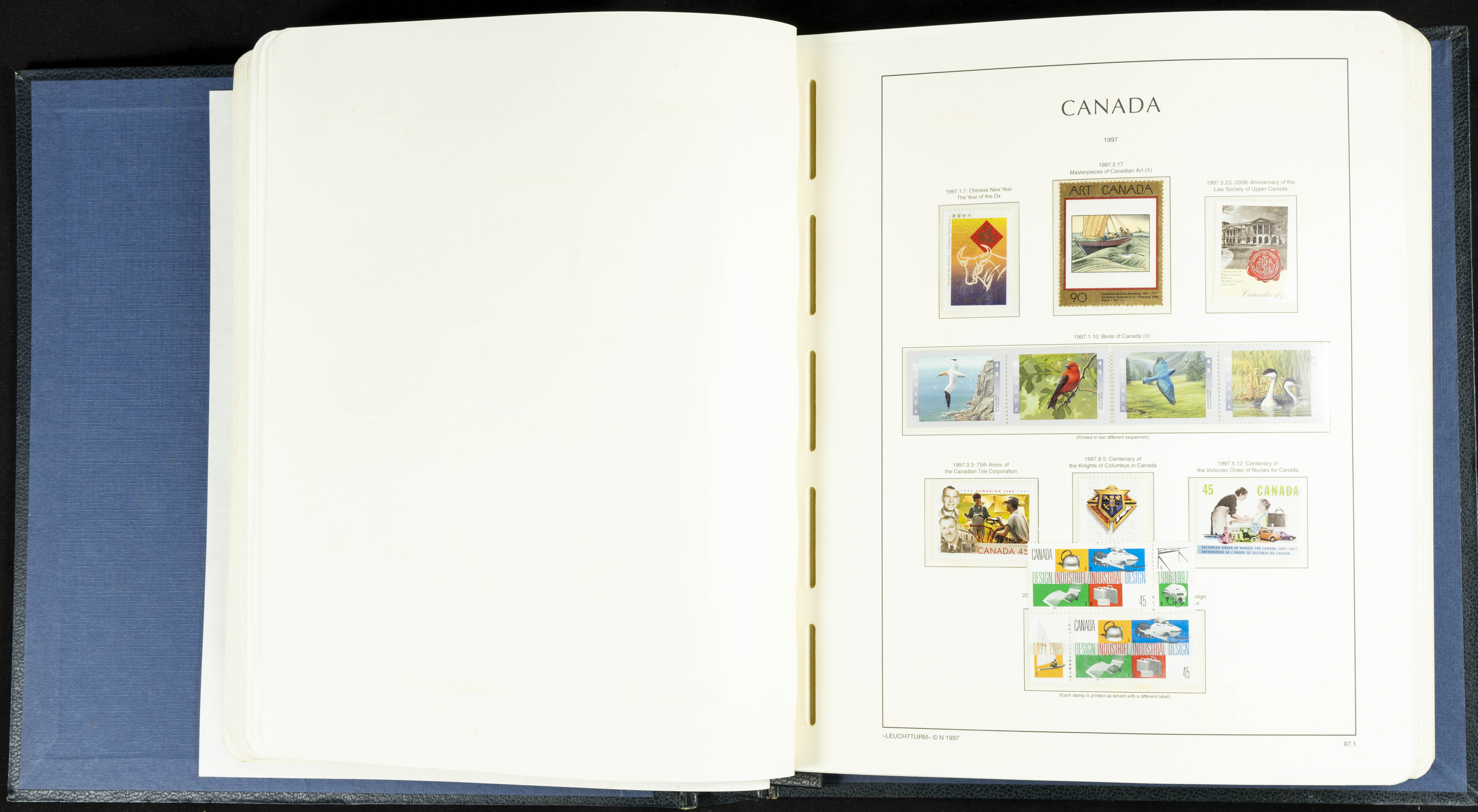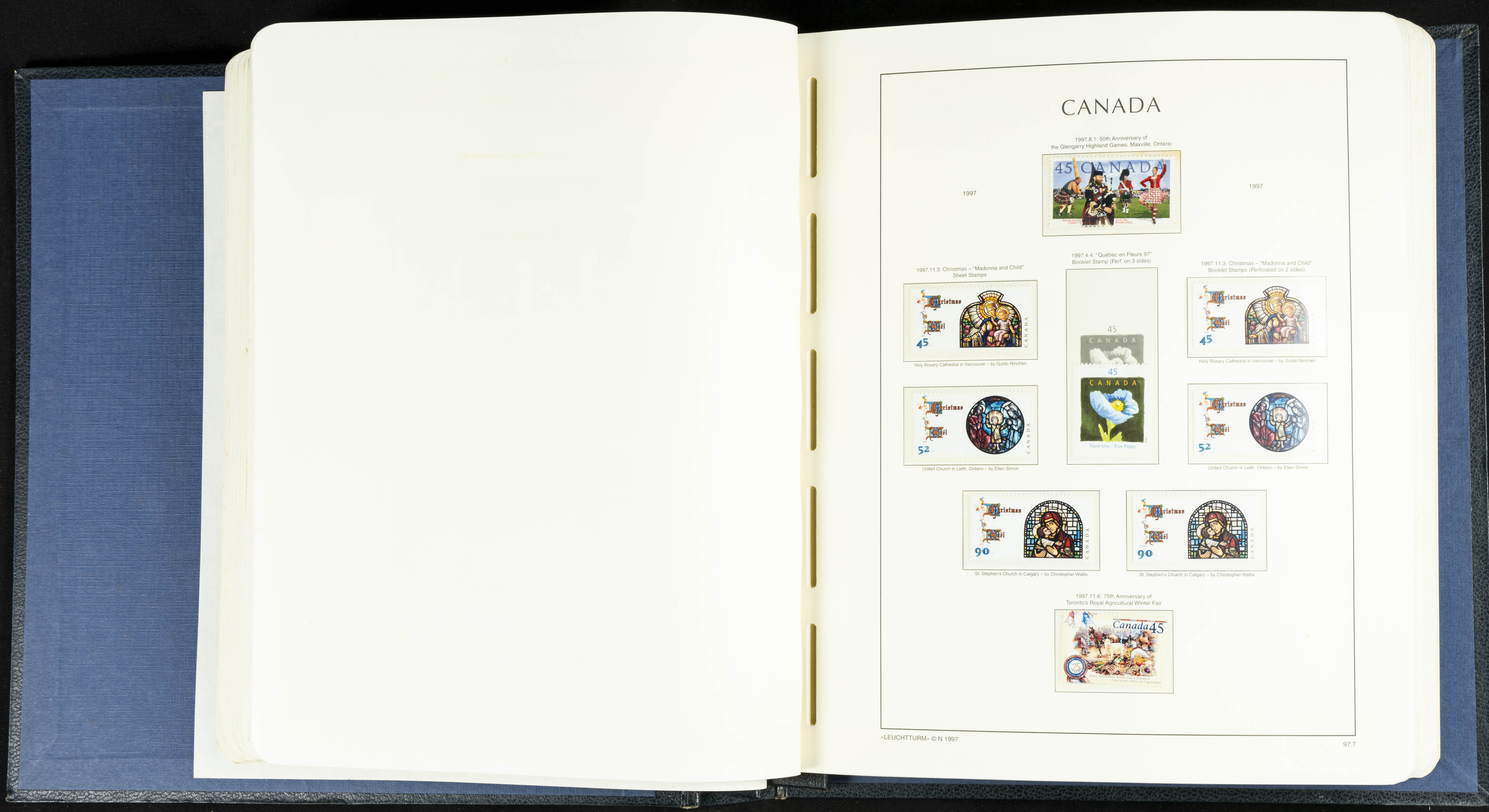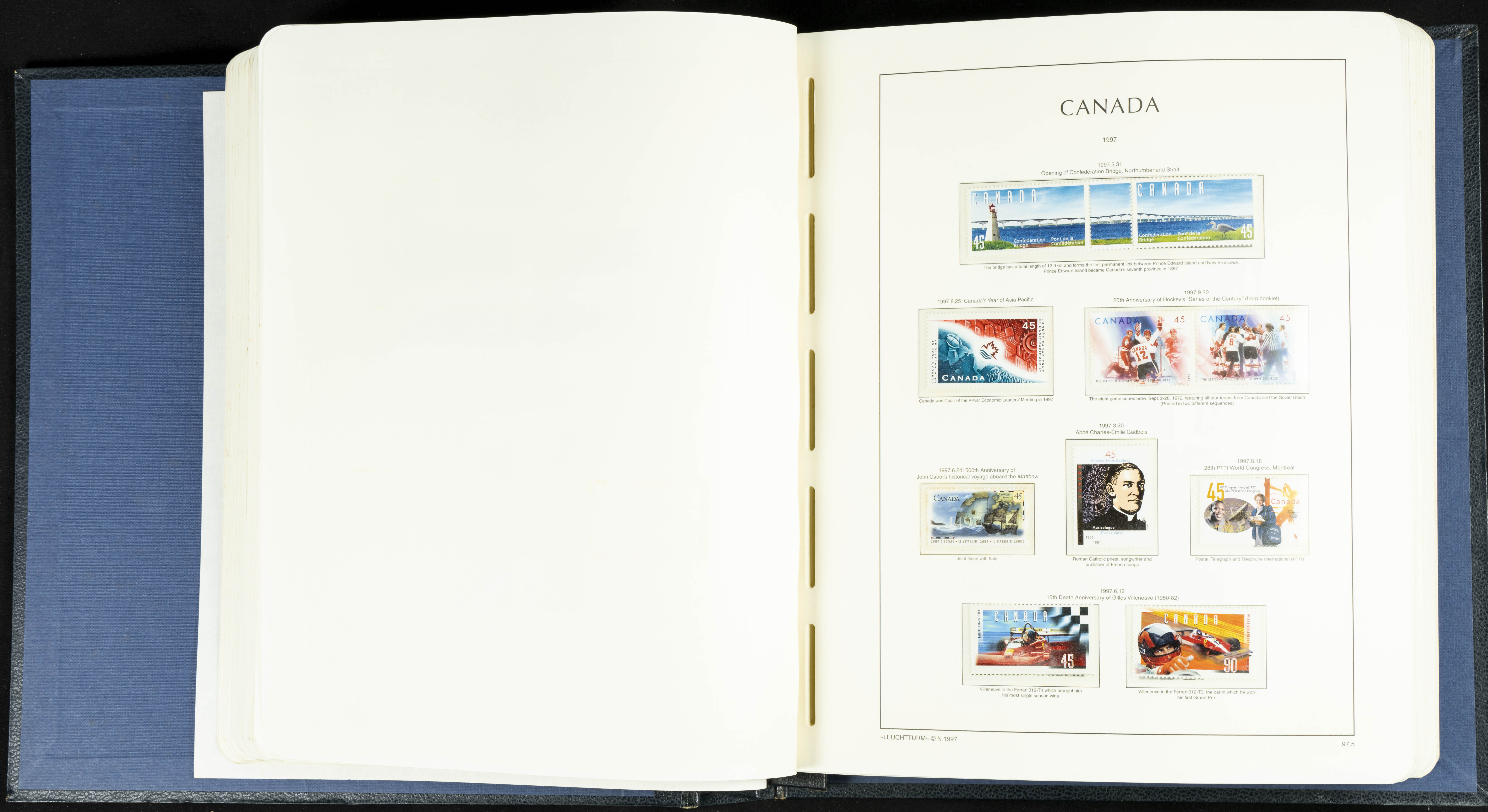 English ★★/(1995ca). Interesting collection of Canadian stamps from 1995 to 2002, mostly mint and used, including most souvenir sheets and booklets issued, plus a classifier with stamps from before 1995 and from 2003 onwards, both mint and used. HIGH CATALOG VALUE. EXAMINATION REQUIRED.