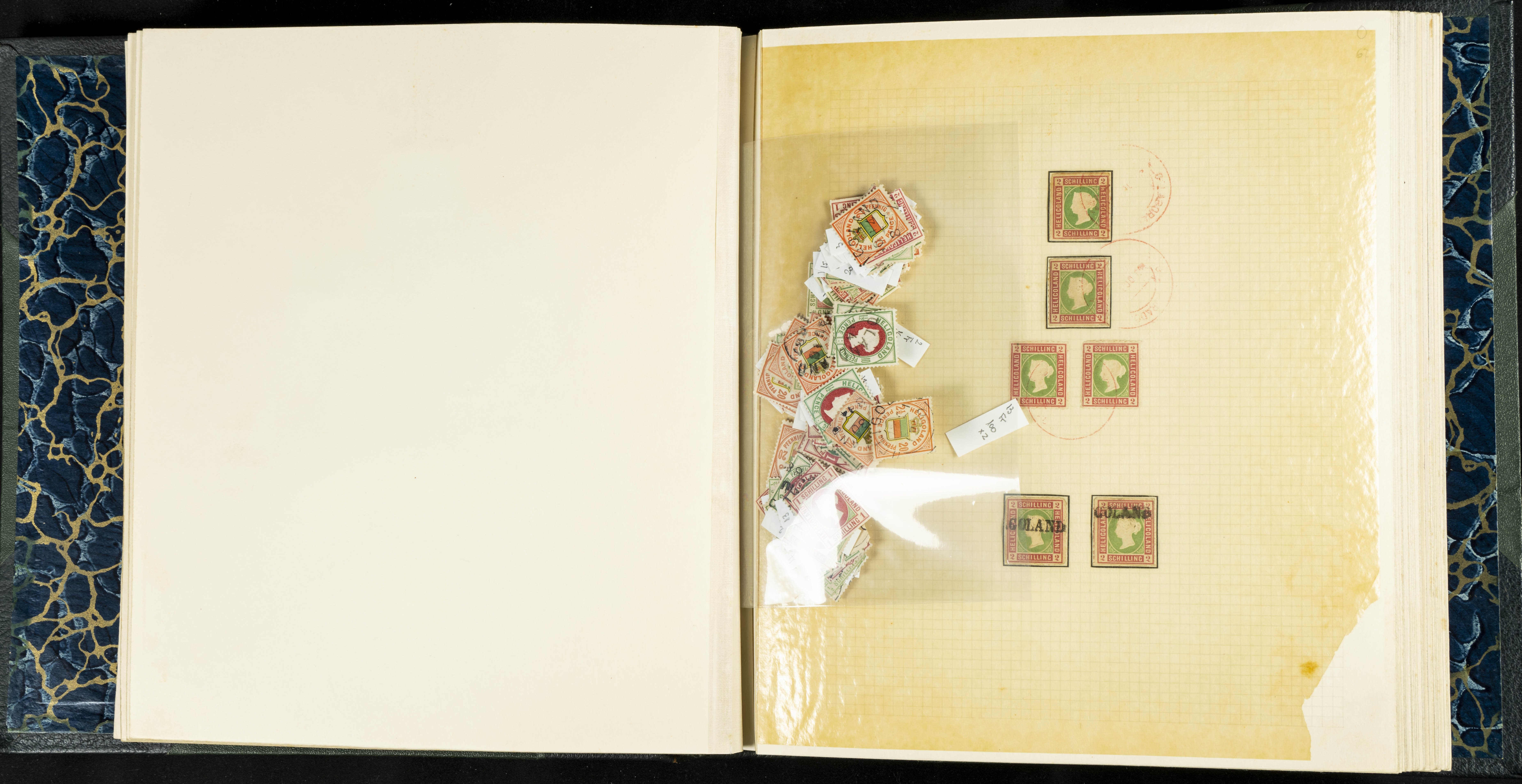 ★/(1867ca). A fascinating collection of Heligoland stamp issues between 1867 and 1879, including original stamps, reprints, and some varieties, both mint and used. It also includes over one hundred loose stamps, both mint and used, which complement the study and are very useful for identifying the differences between reprints and originals. A MUST-SEE.