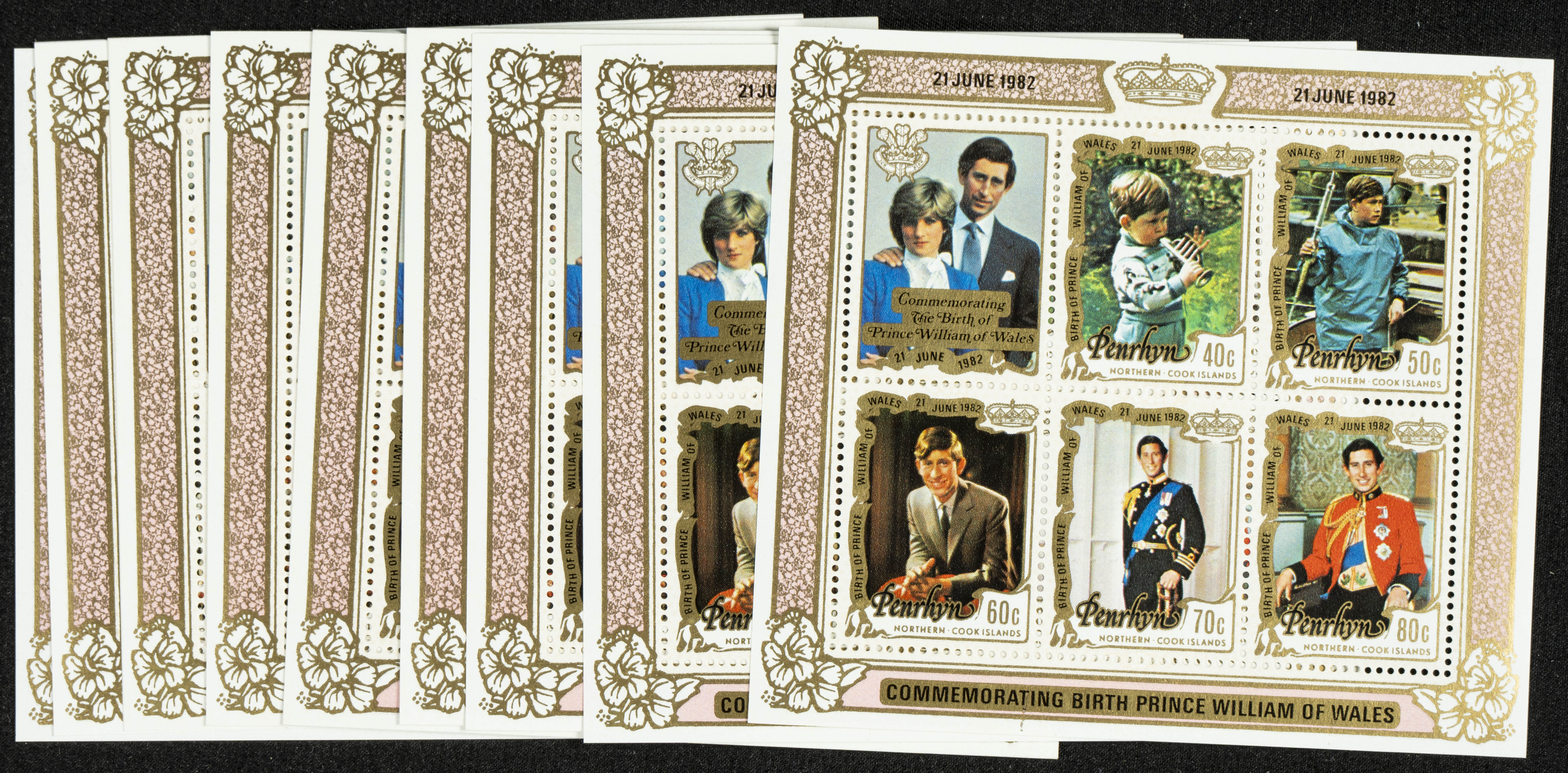 Yvert HB40(20). 1982. Set of twenty Penrhyn notepads, BIRTH OF PRINCE WILLIAM, 1982, in mint condition. TO BE EXAMINED. Yvert 2023: 500 Euros