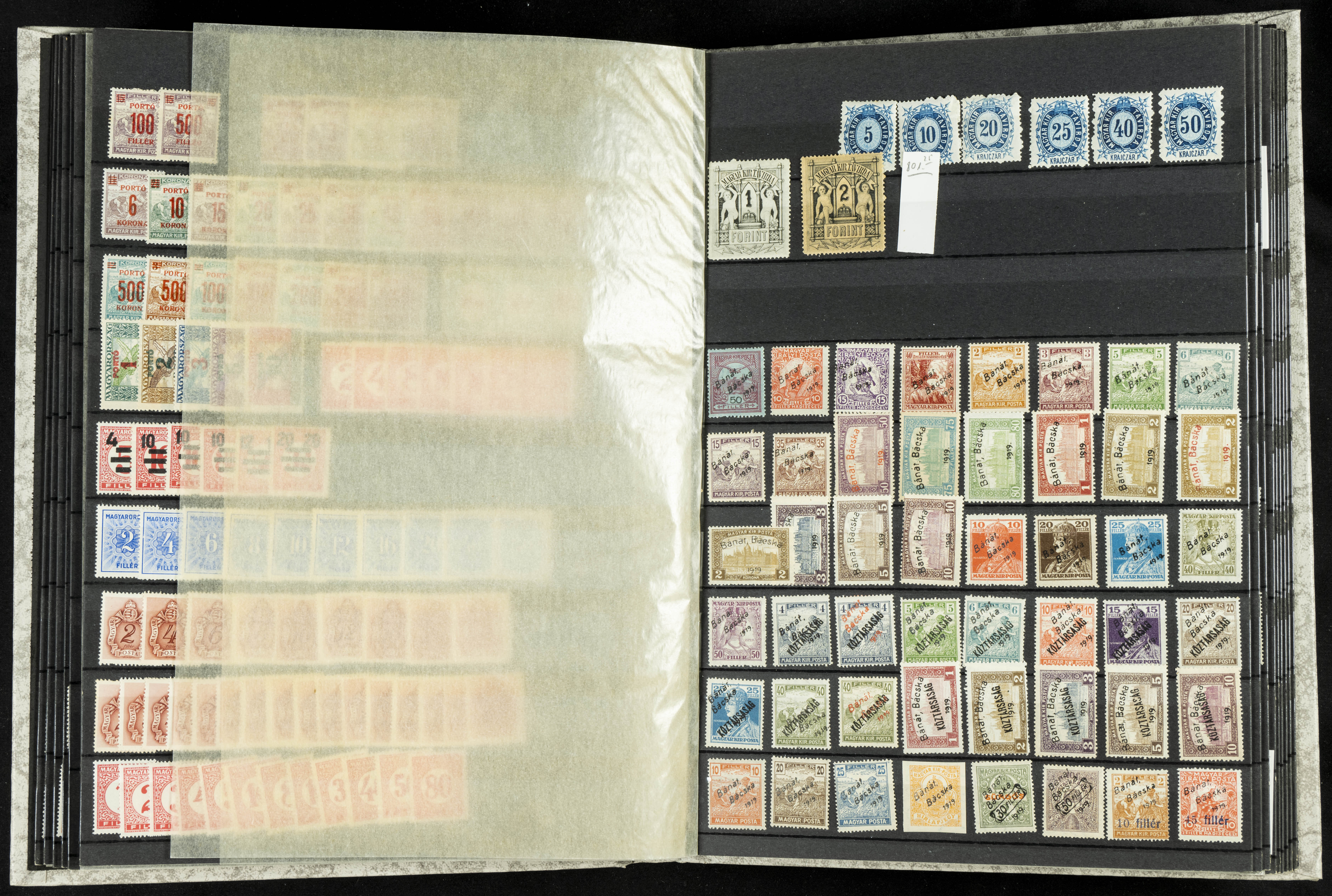 English ★(circa 1900). Interesting collection of complete series and individual stamps from Hungary between 1900 and 1930, in mint condition and including the territories of Bamat Backsa, Baranya, Debreczen, and Szeged, as well as other more recent stamps. HIGH CATALOG VALUE. TO BE EXAMINED.
