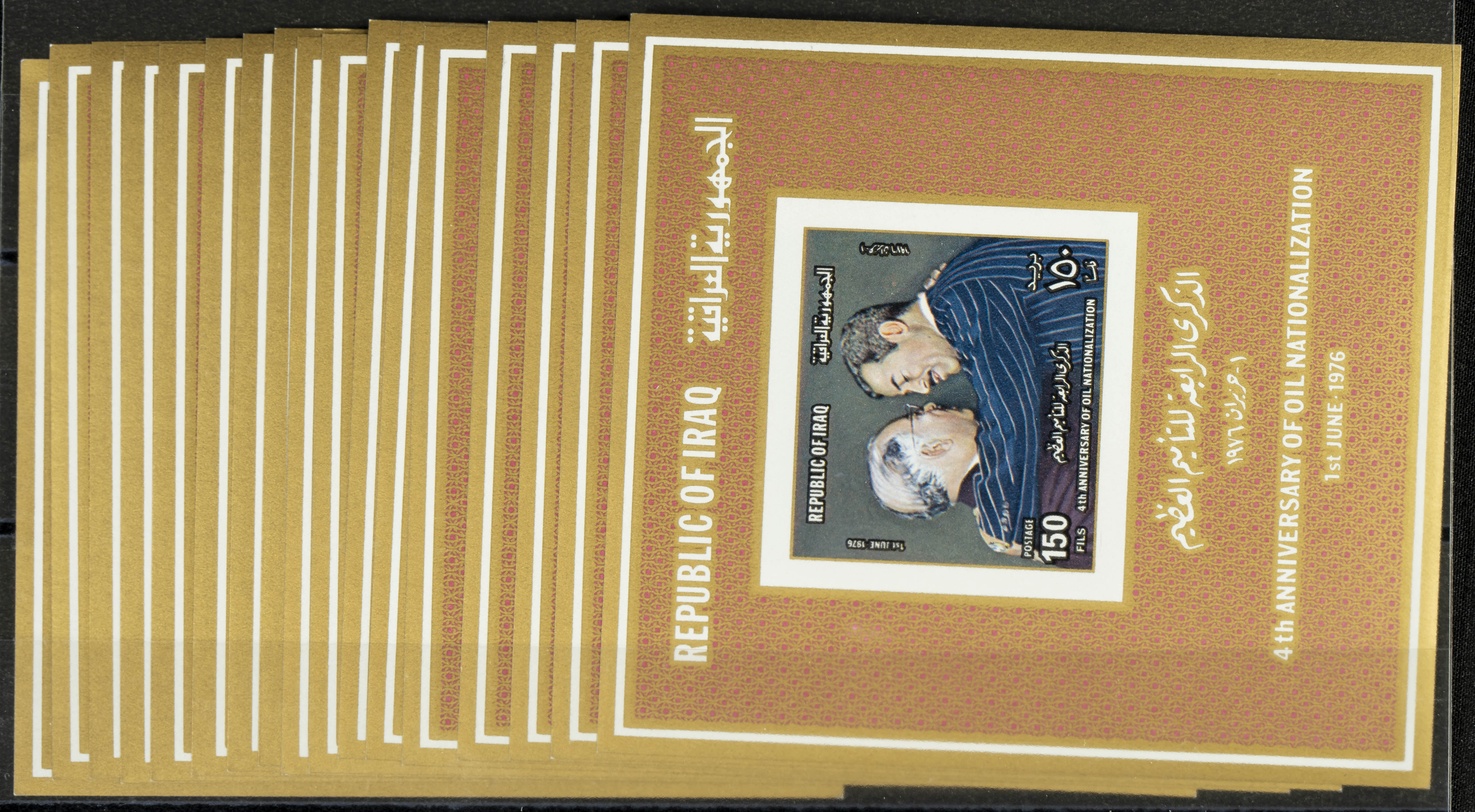 Yvert HB25(17). 1976. Set of seventeen souvenir sheets commemorating the 4th Anniversary of the Nationalization of Iraq's Oil in 1976, in mint condition. To be examined. Yvert 2021: 680 Euros