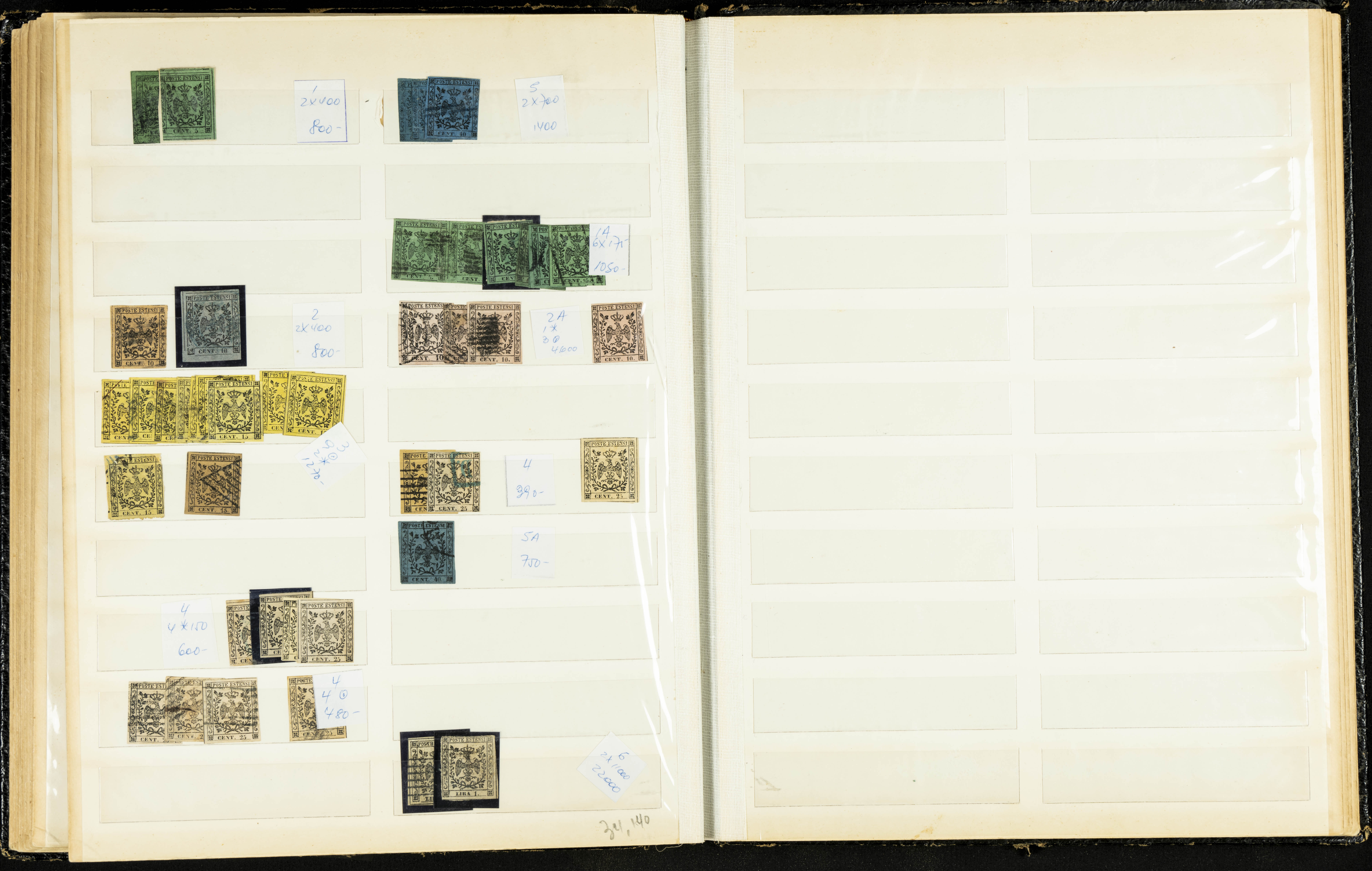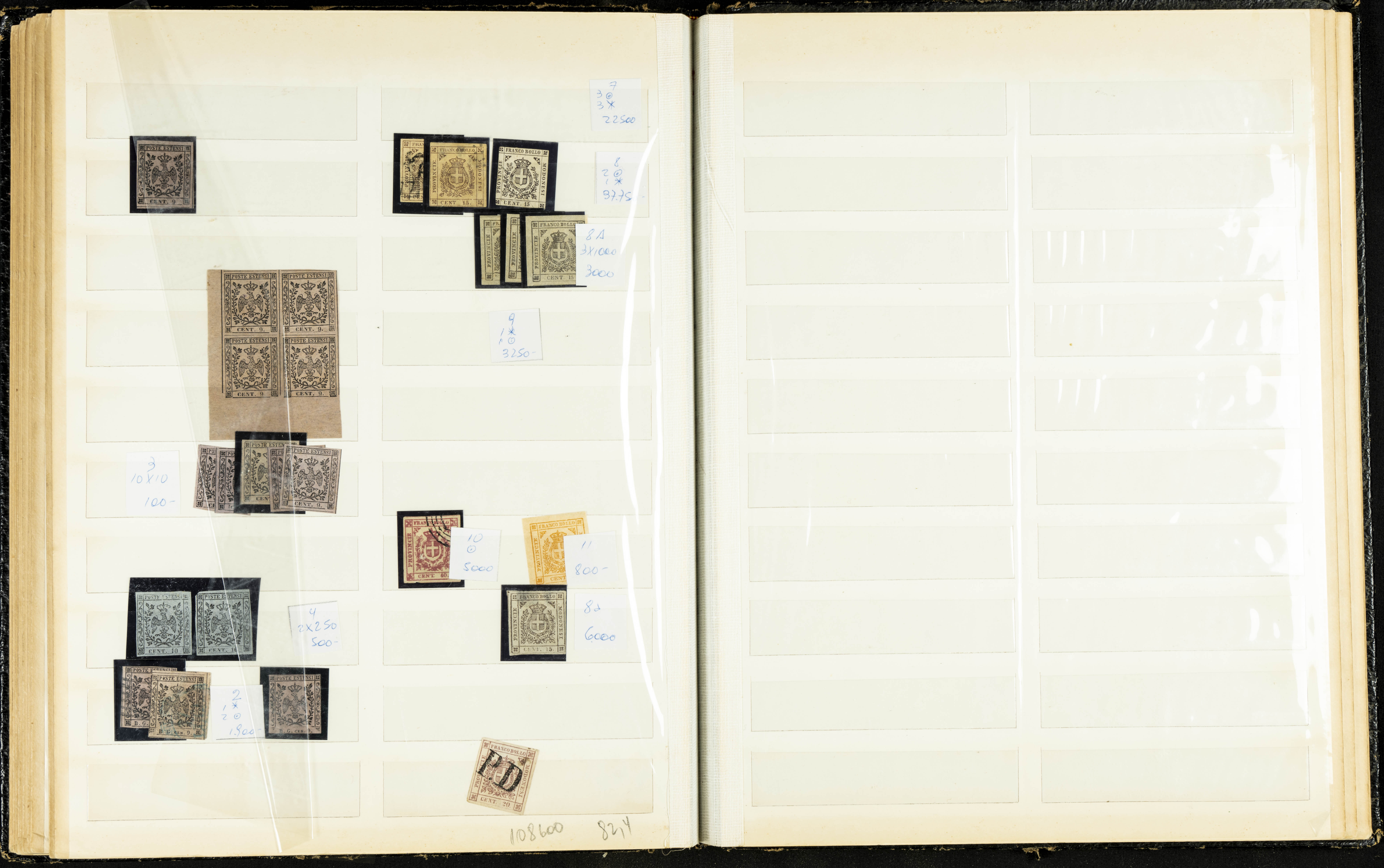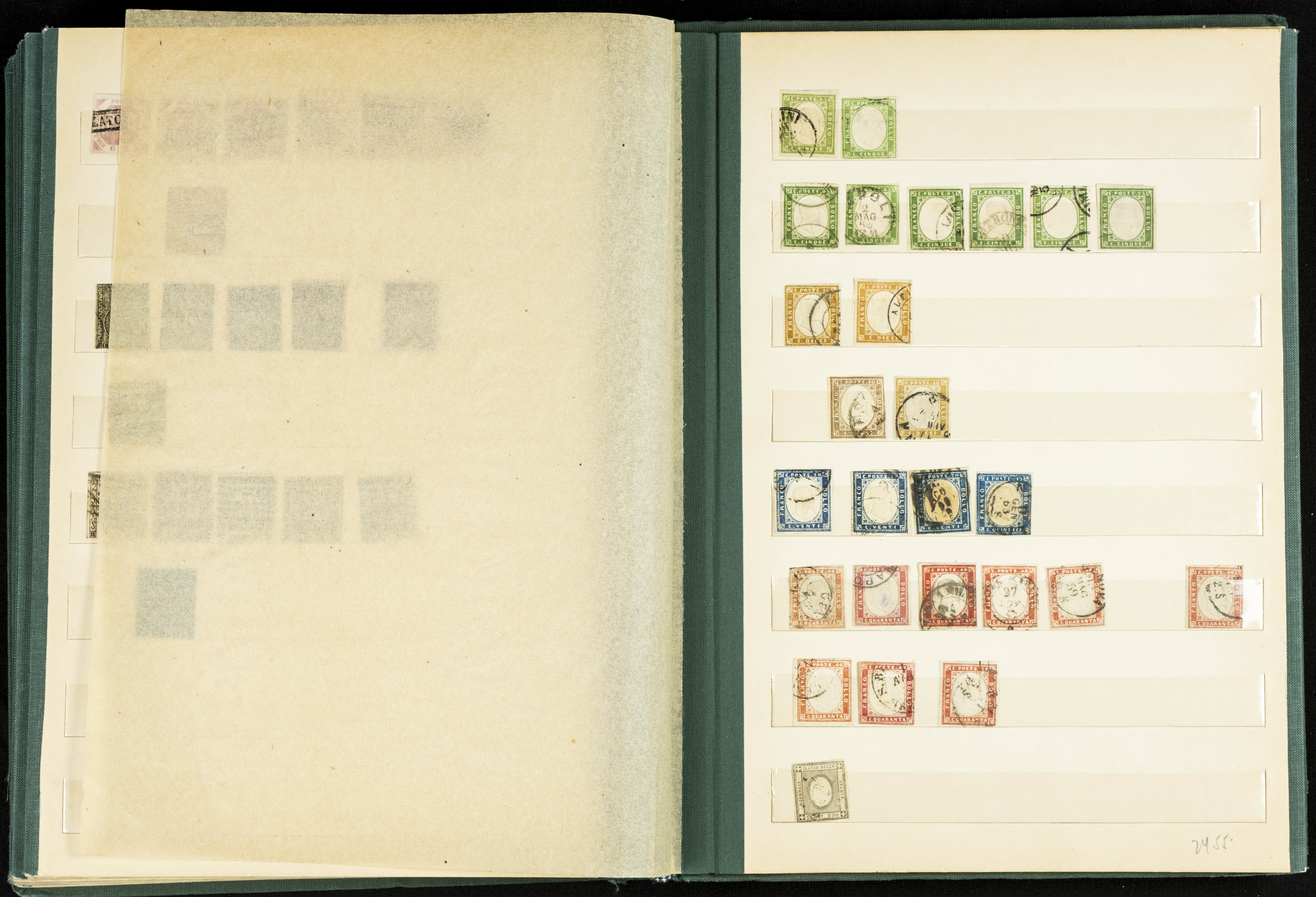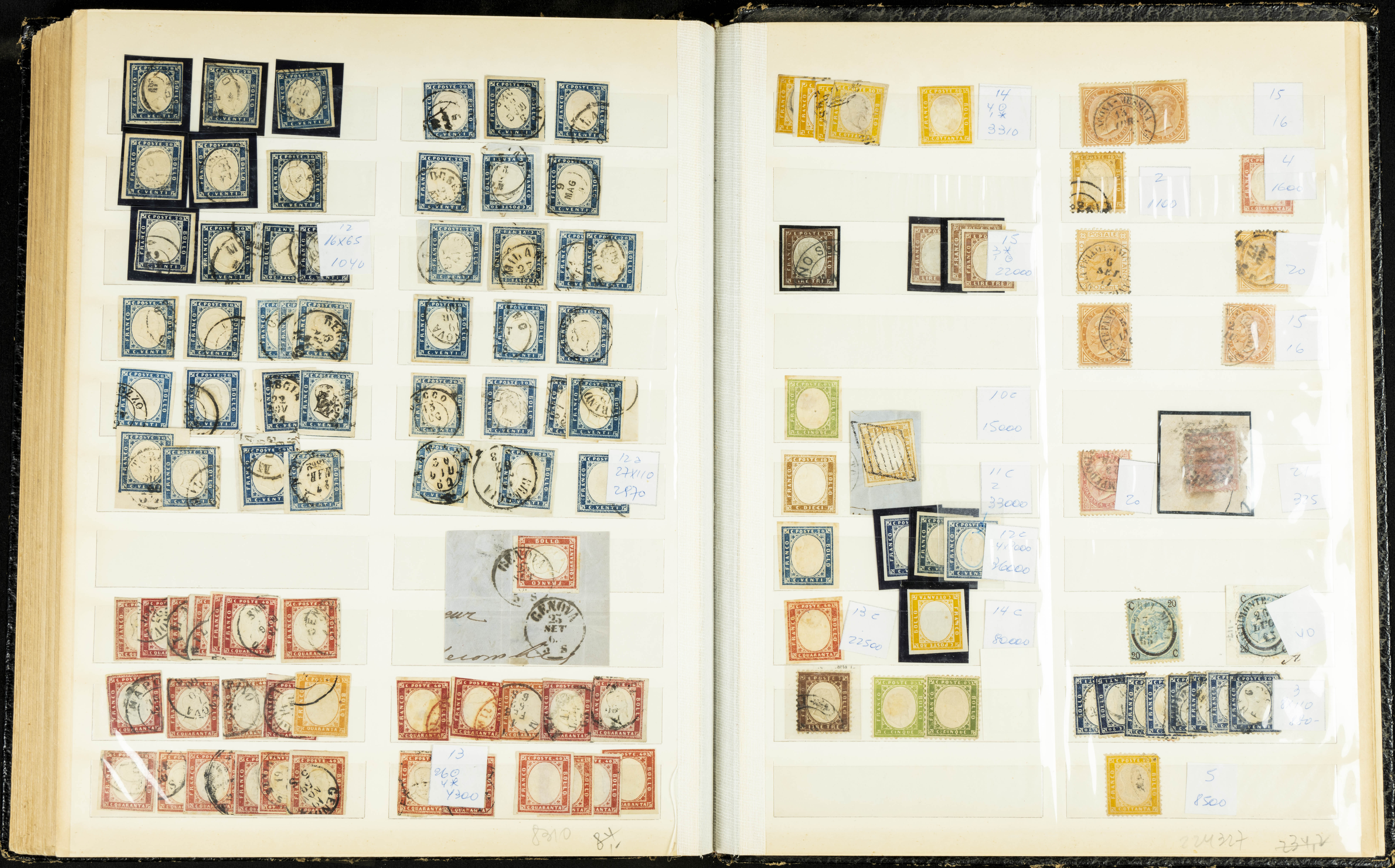 English (★)/(1851ca). Spectacular collection of classic stamps from Italian states, some in mint condition, with most repetitions. Includes some forgeries (especially those of very high value), some with linear postmarks and legible date stamps. EXTREMELY HIGH CATALOG VALUE. EXAMINATION IS ESSENTIAL.