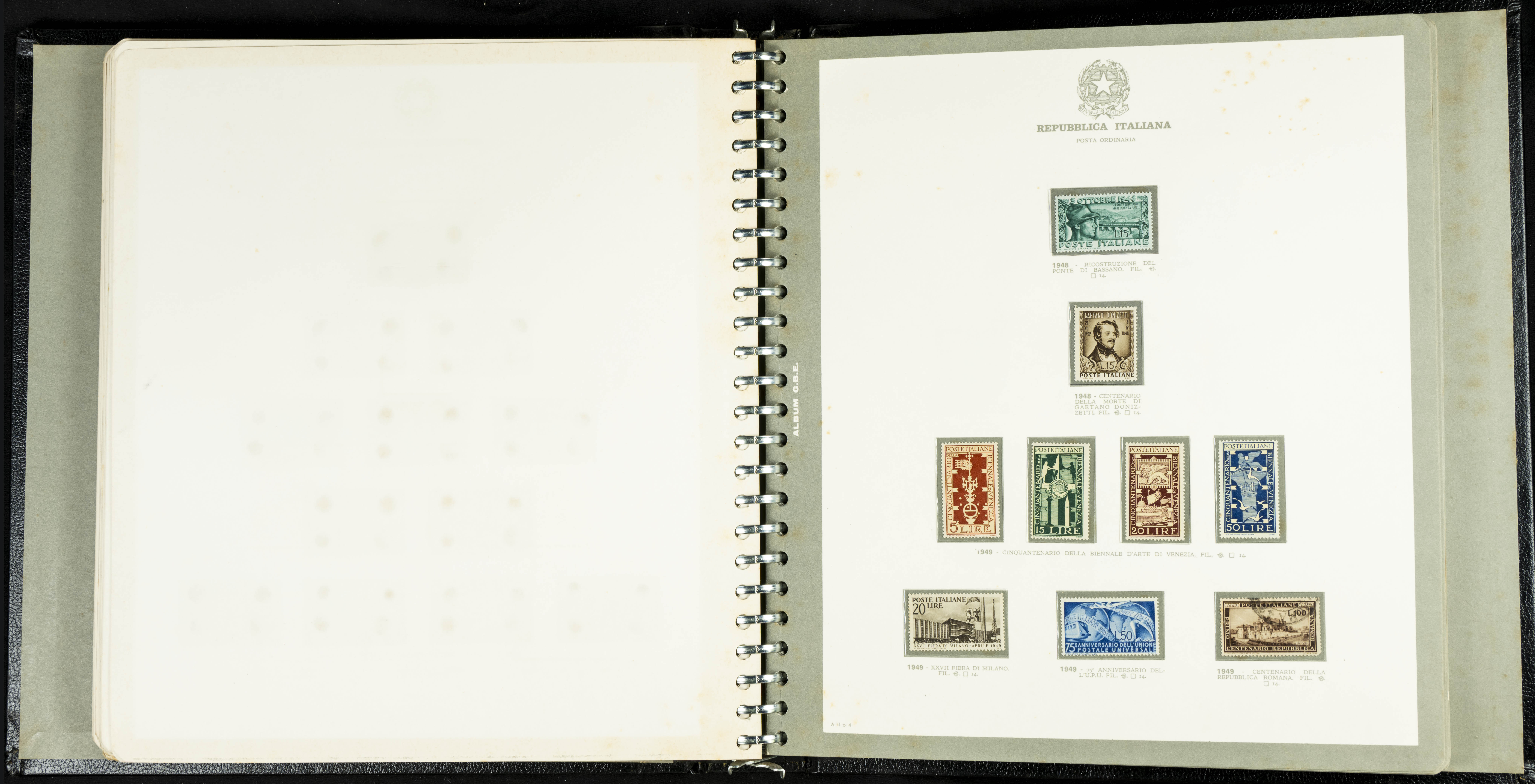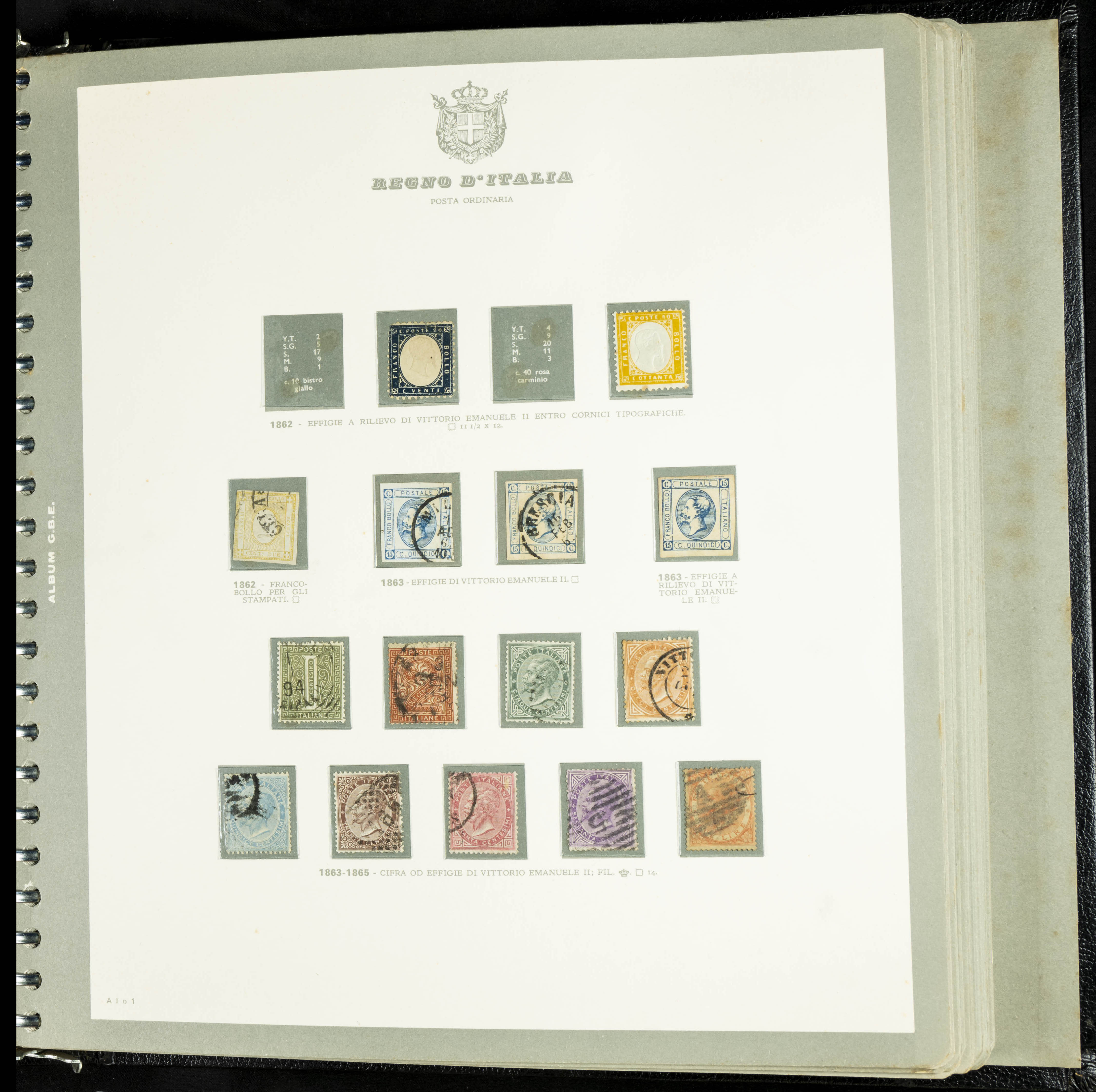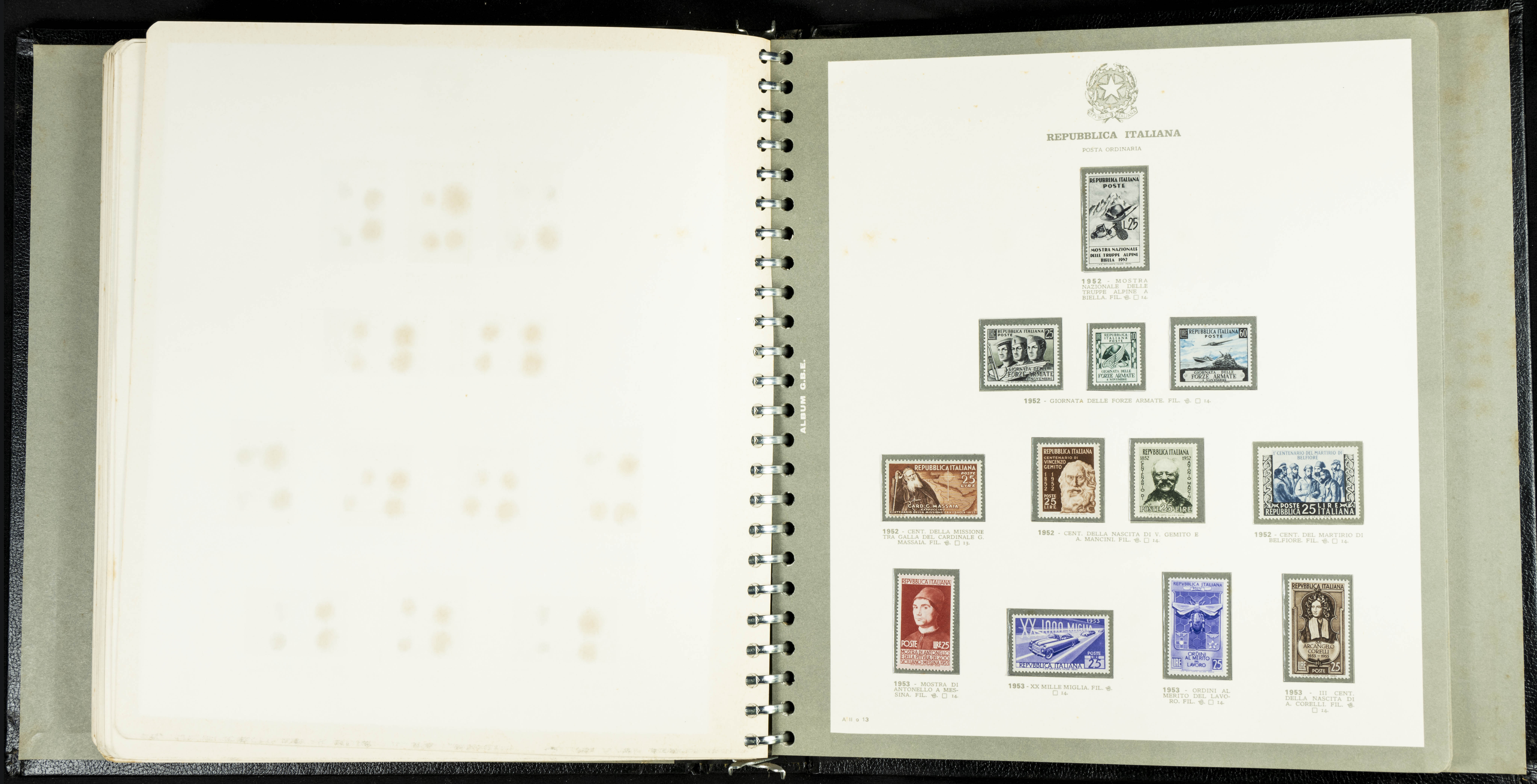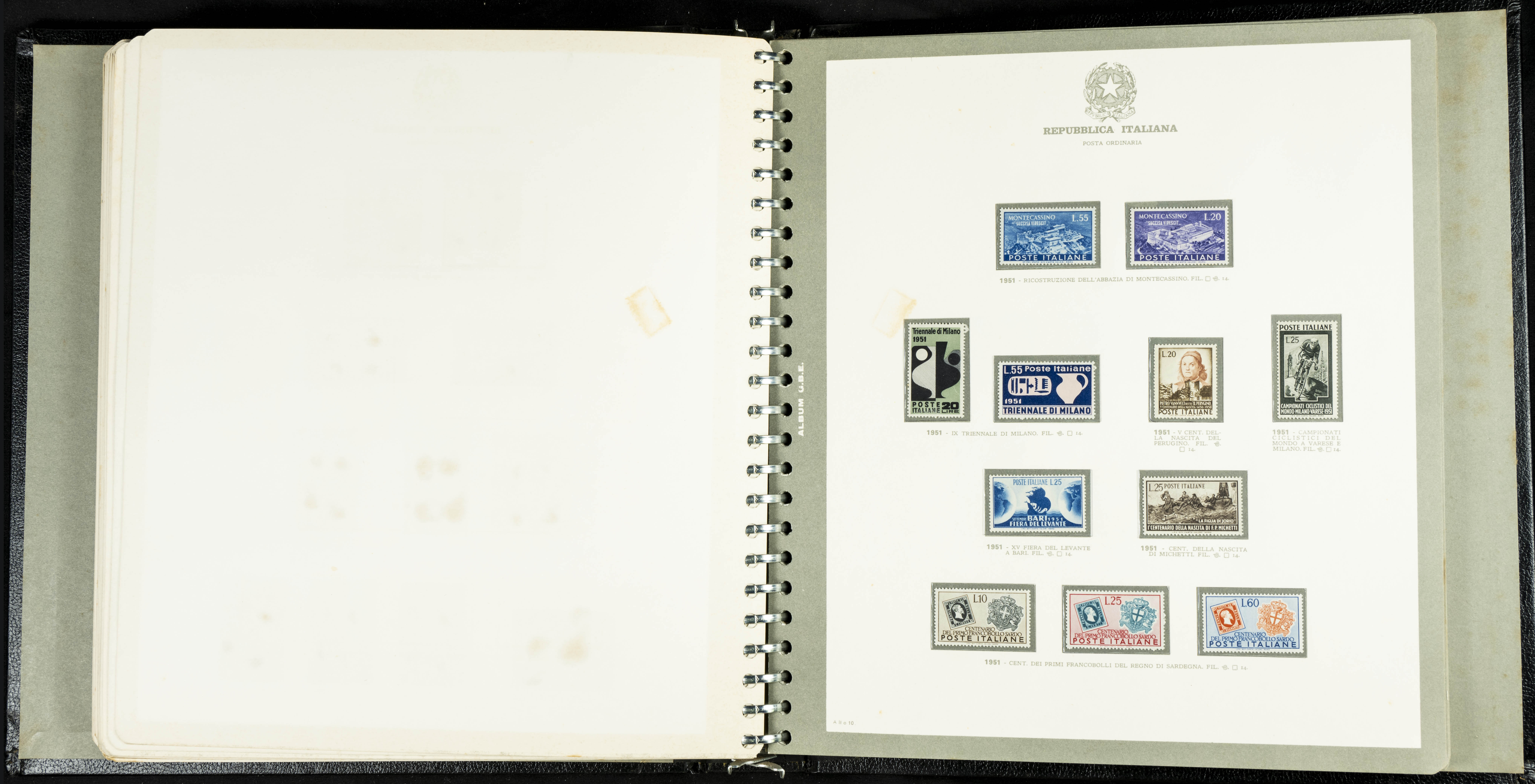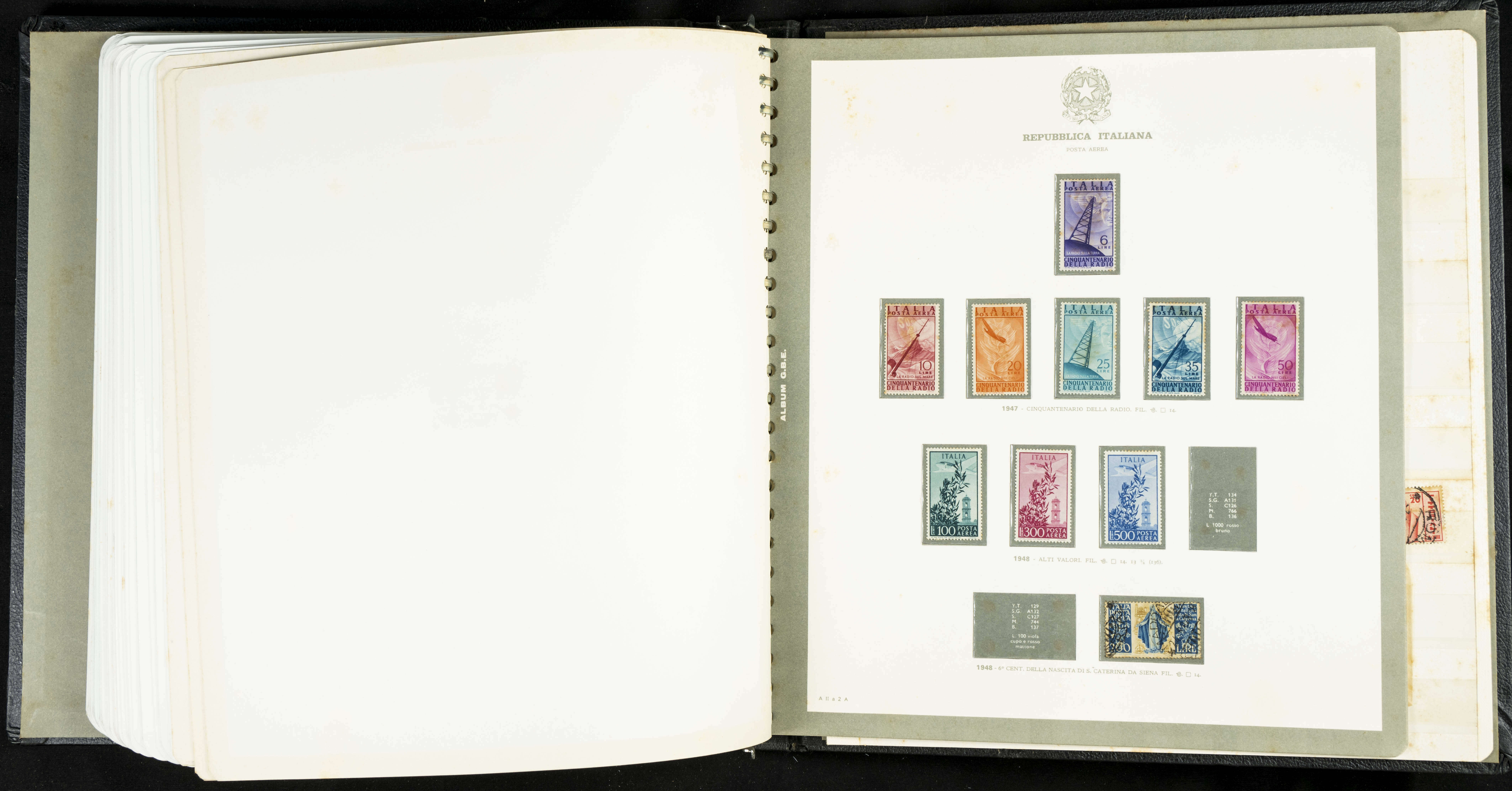 English ★★/(1862ca). Interesting collection from Italy between 1862 and 2010, in mint and used, practically complete from 1951 onwards, and most of that period without hinges, including souvenir sheets and some booklets (minor age spots mainly affecting the album pages). HIGH CATALOGUE AND FACE VALUE. TO BE EXAMINED.