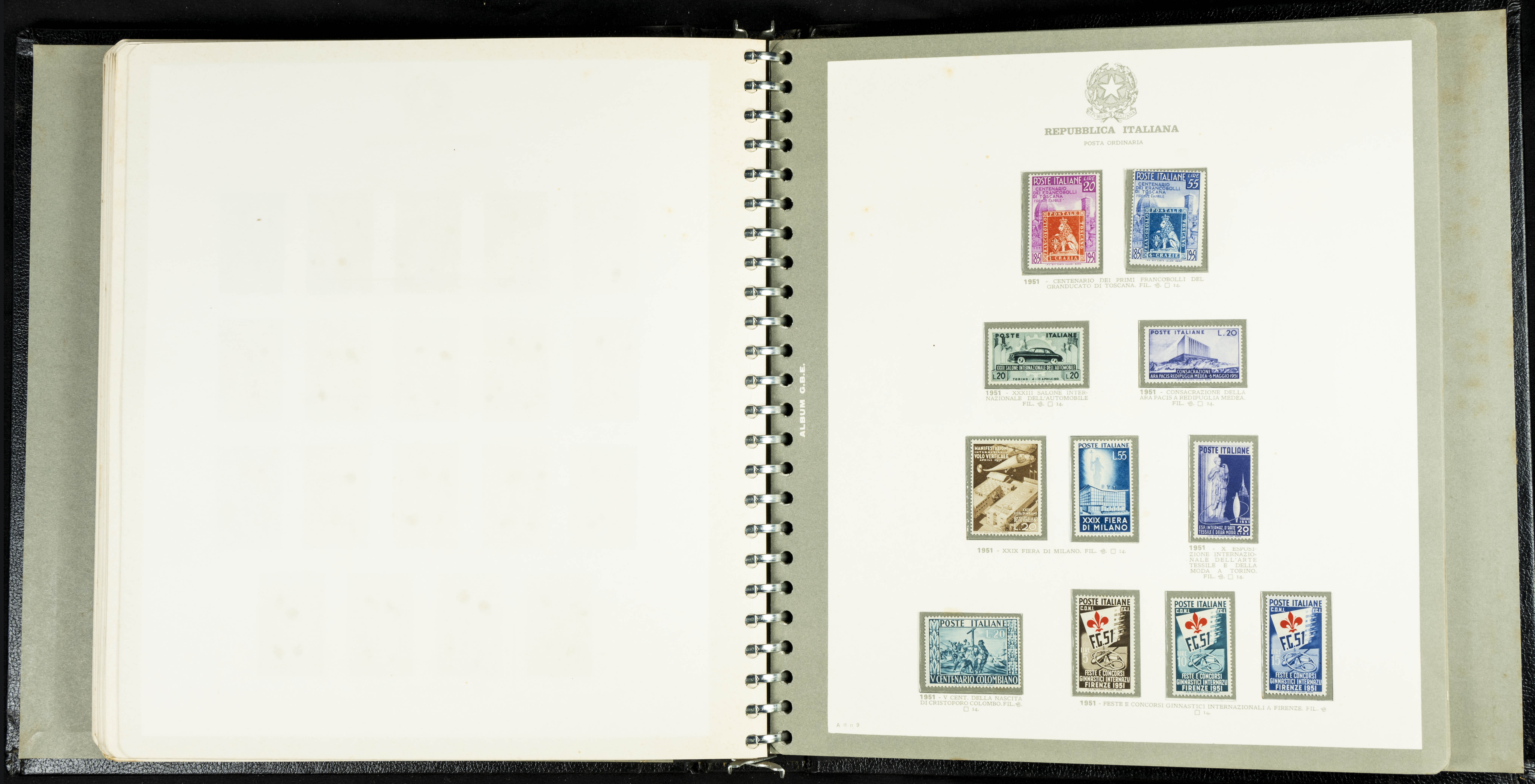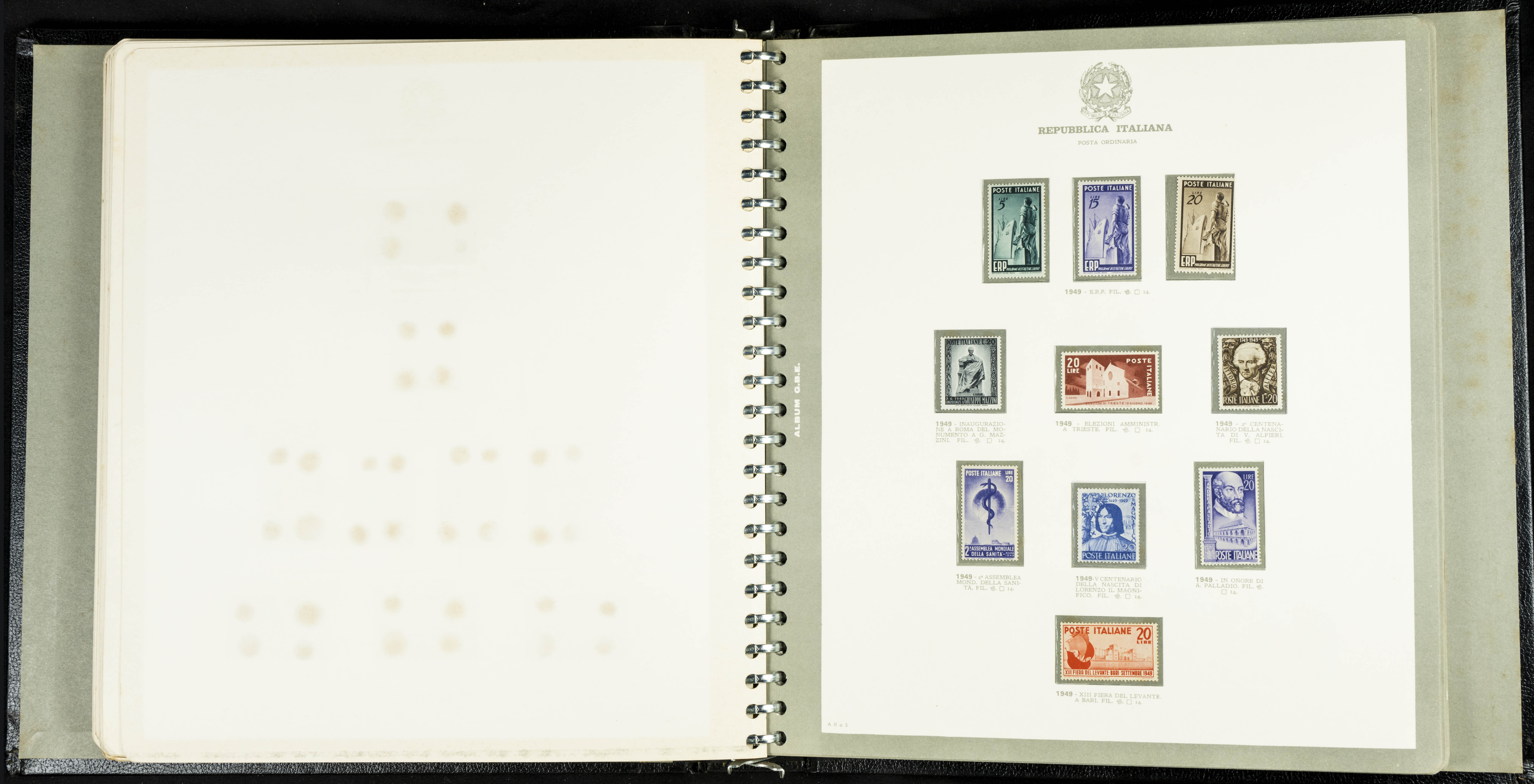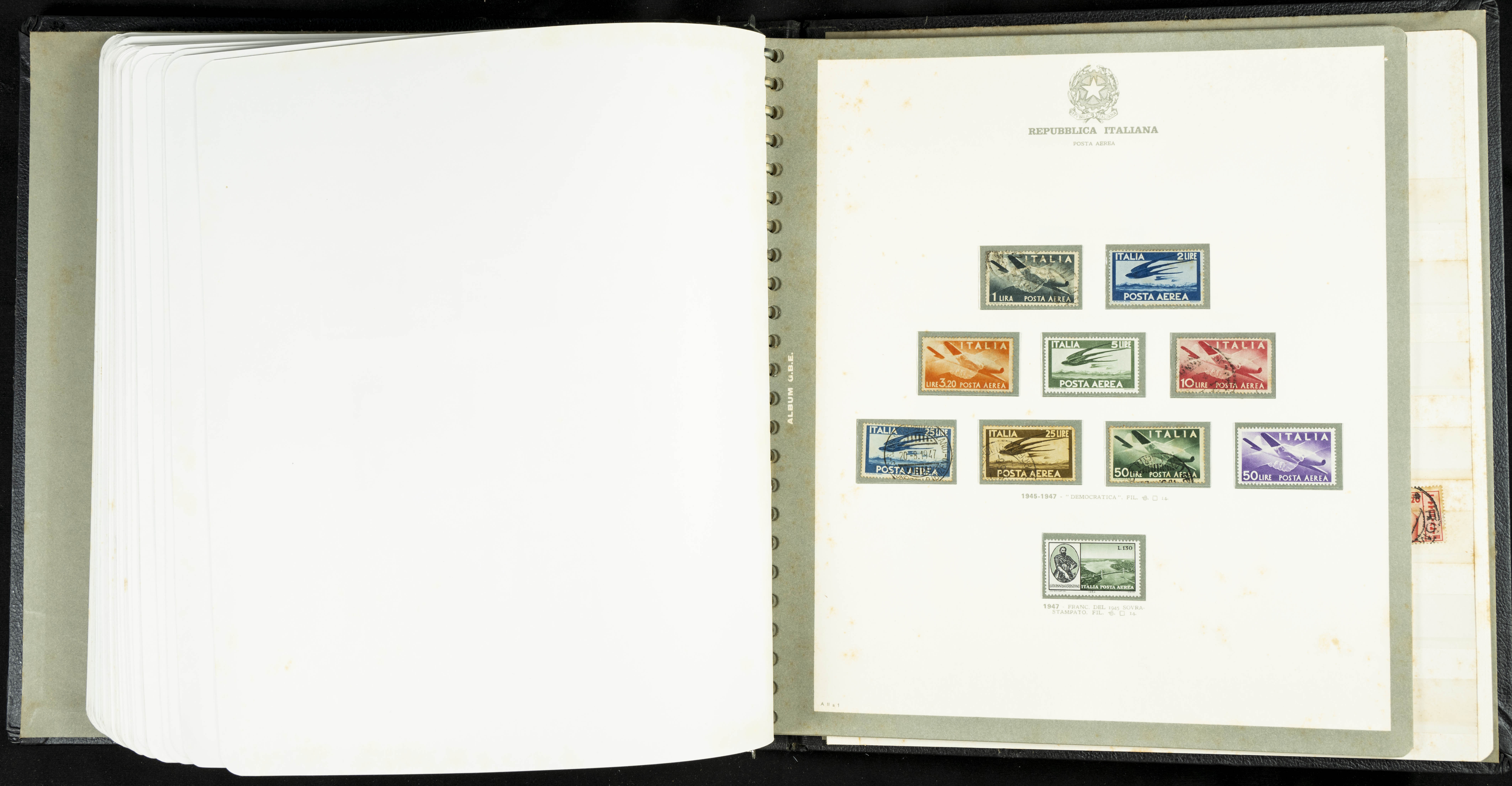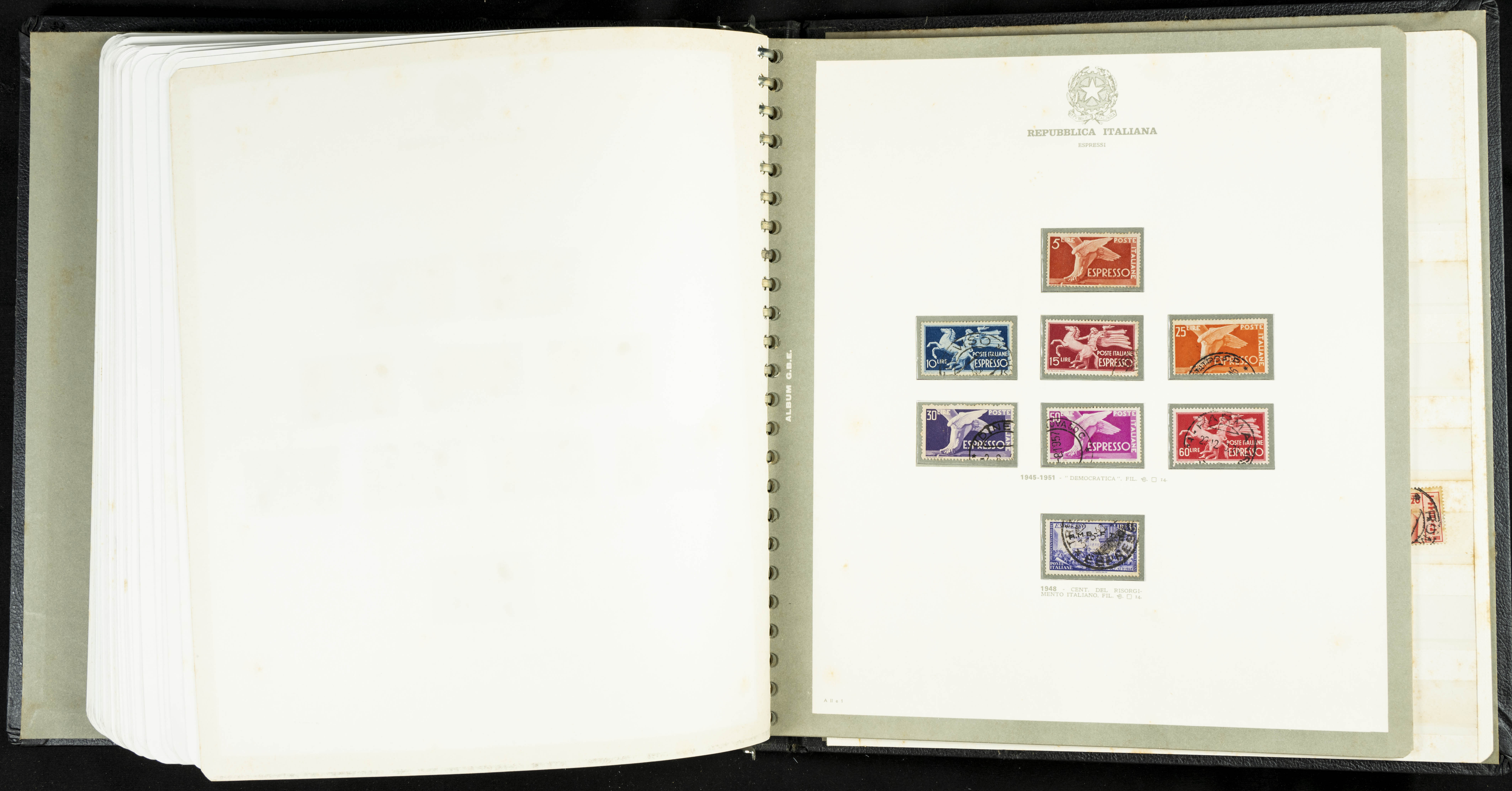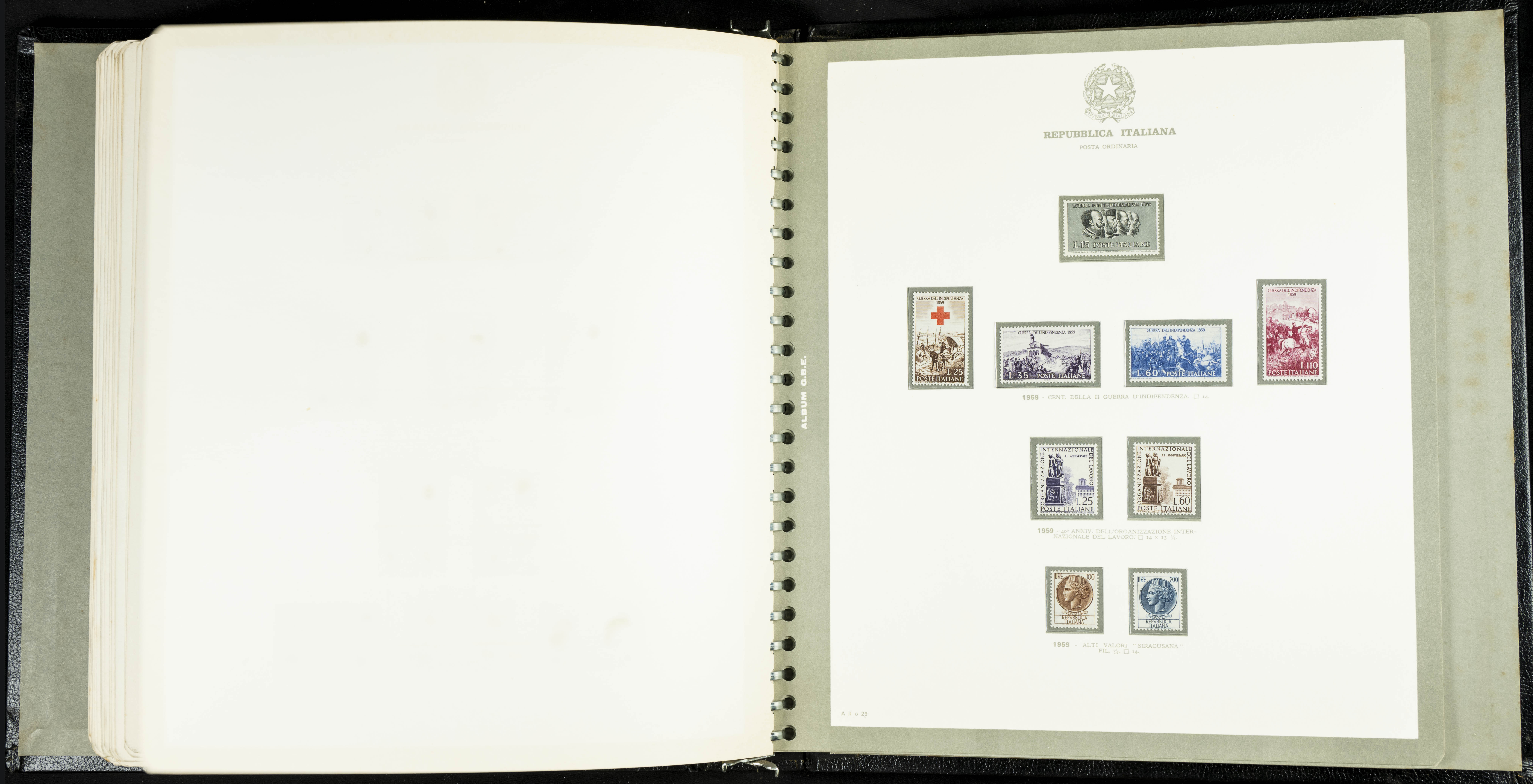 English ★★/(1862ca). Interesting collection from Italy between 1862 and 2010, in mint and used, practically complete from 1951 onwards, and most of that period without hinges, including souvenir sheets and some booklets (minor age spots mainly affecting the album pages). HIGH CATALOGUE AND FACE VALUE. TO BE EXAMINED.