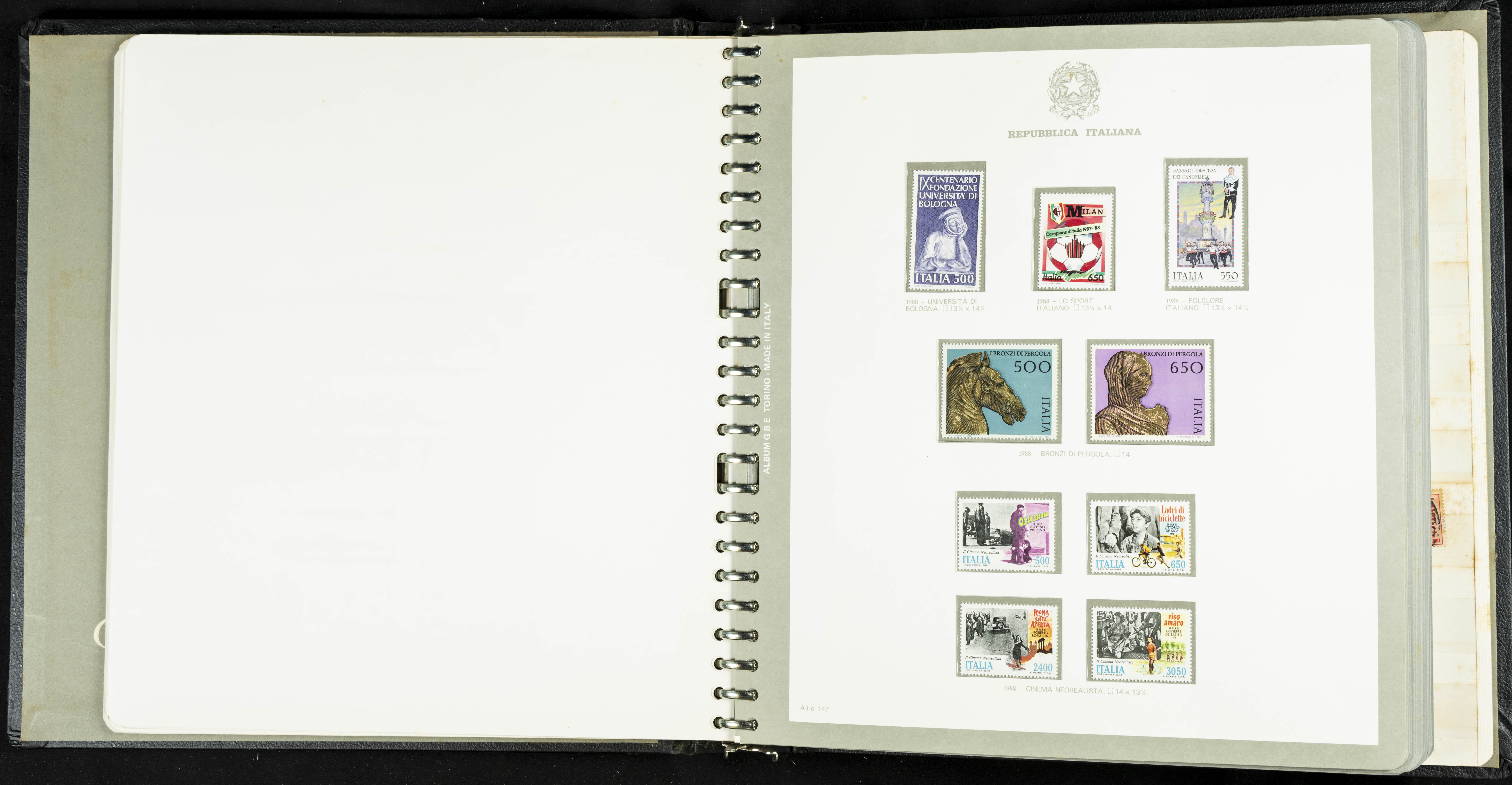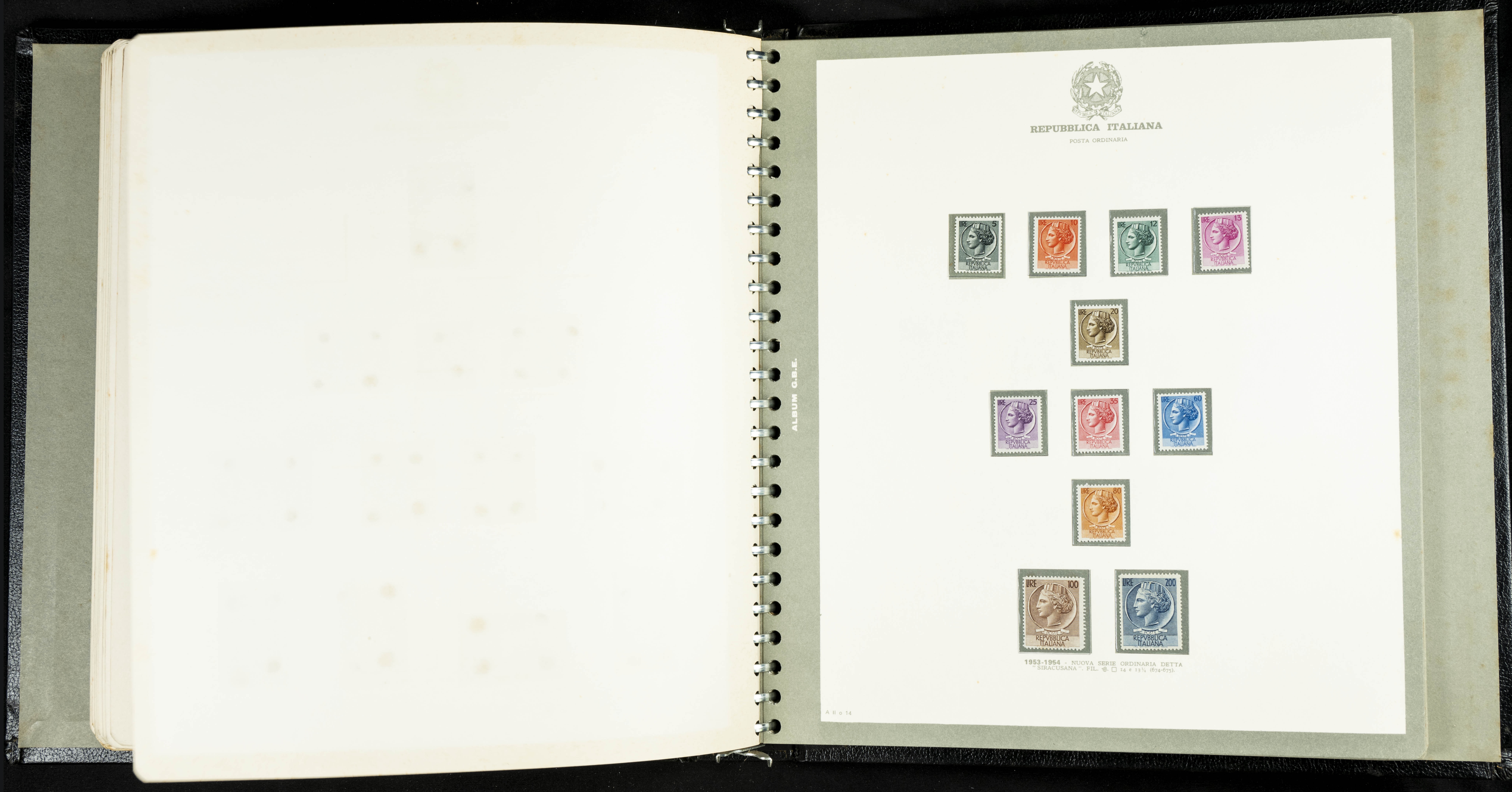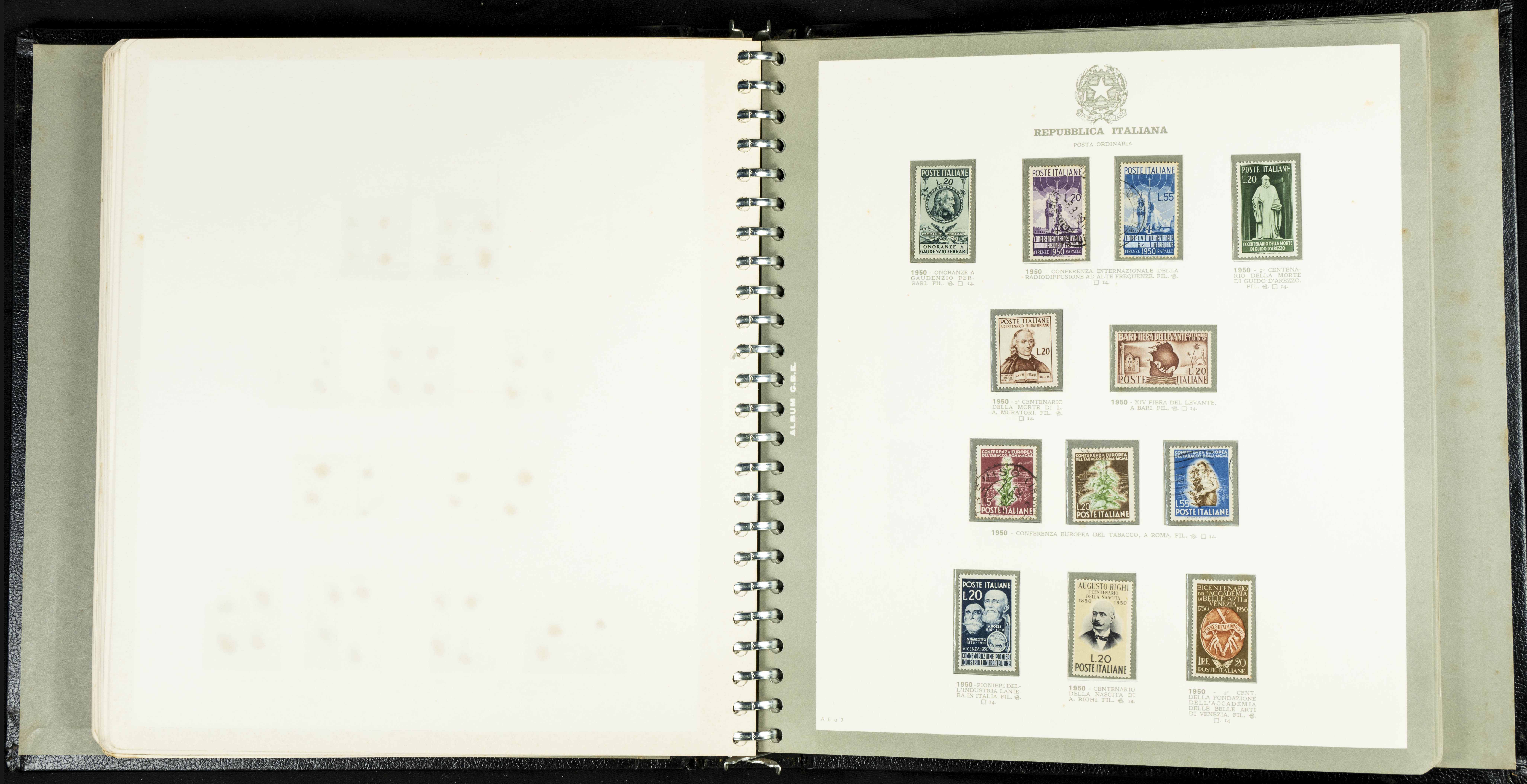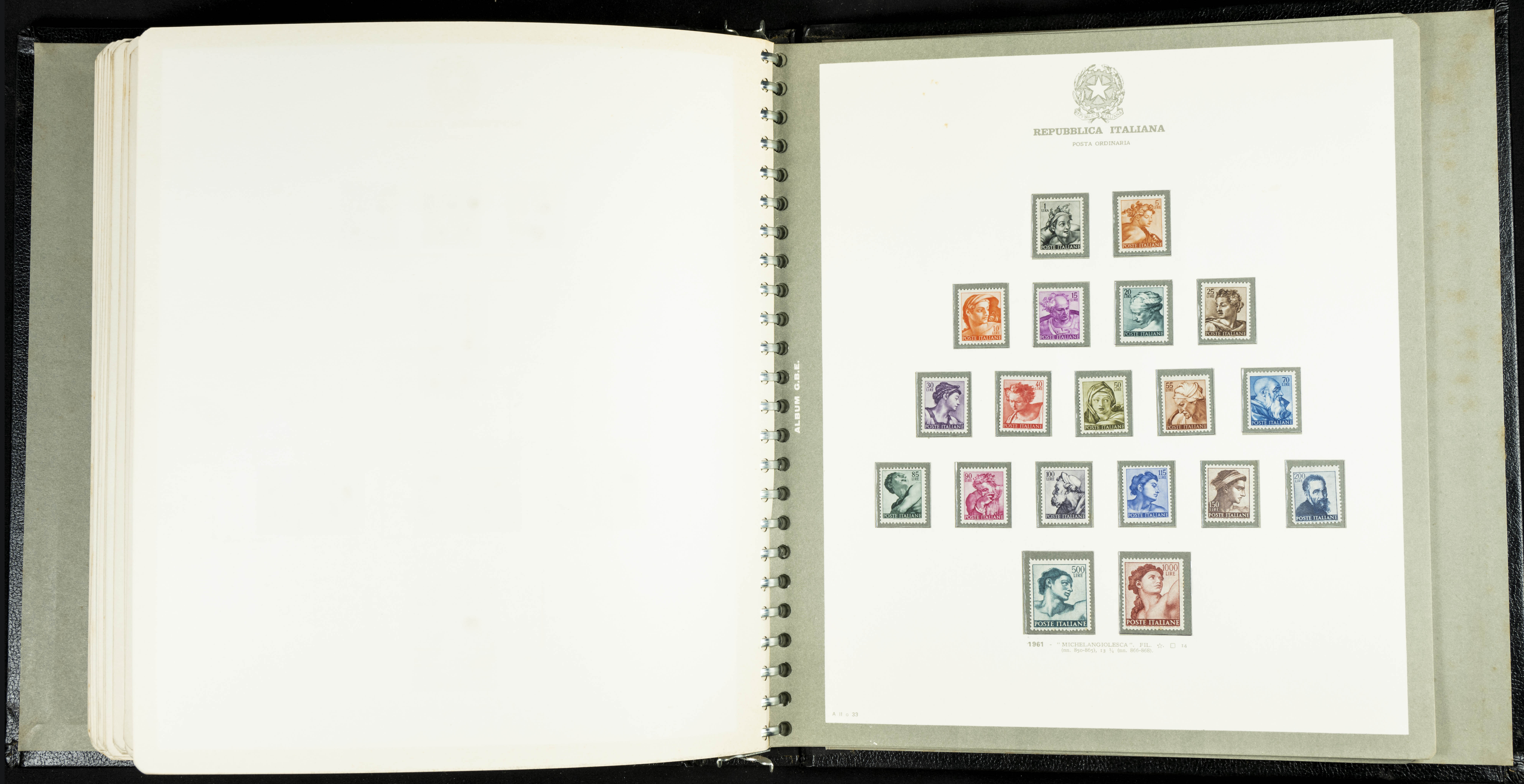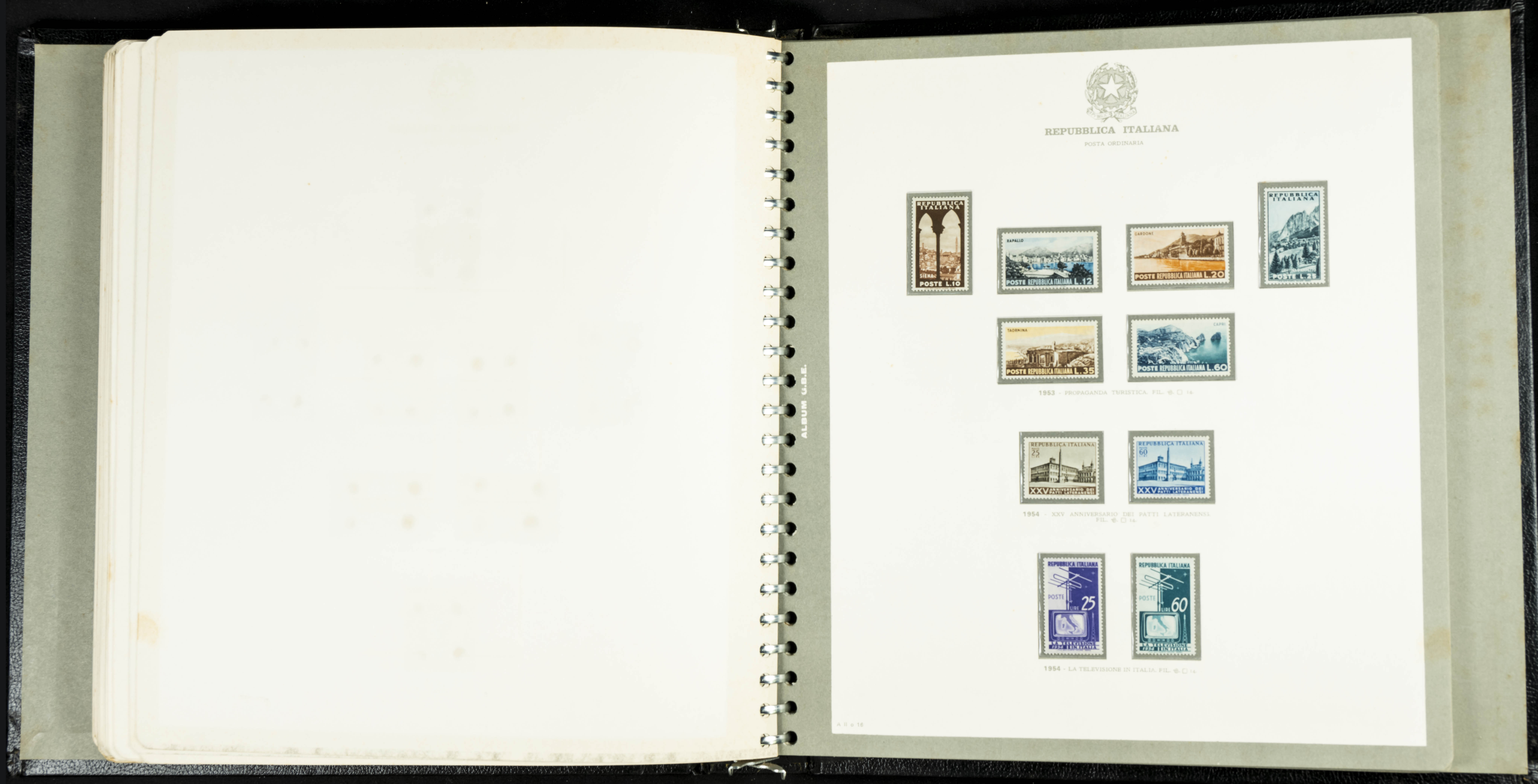 English ★★/(1862ca). Interesting collection from Italy between 1862 and 2010, in mint and used, practically complete from 1951 onwards, and most of that period without hinges, including souvenir sheets and some booklets (minor age spots mainly affecting the album pages). HIGH CATALOGUE AND FACE VALUE. TO BE EXAMINED.