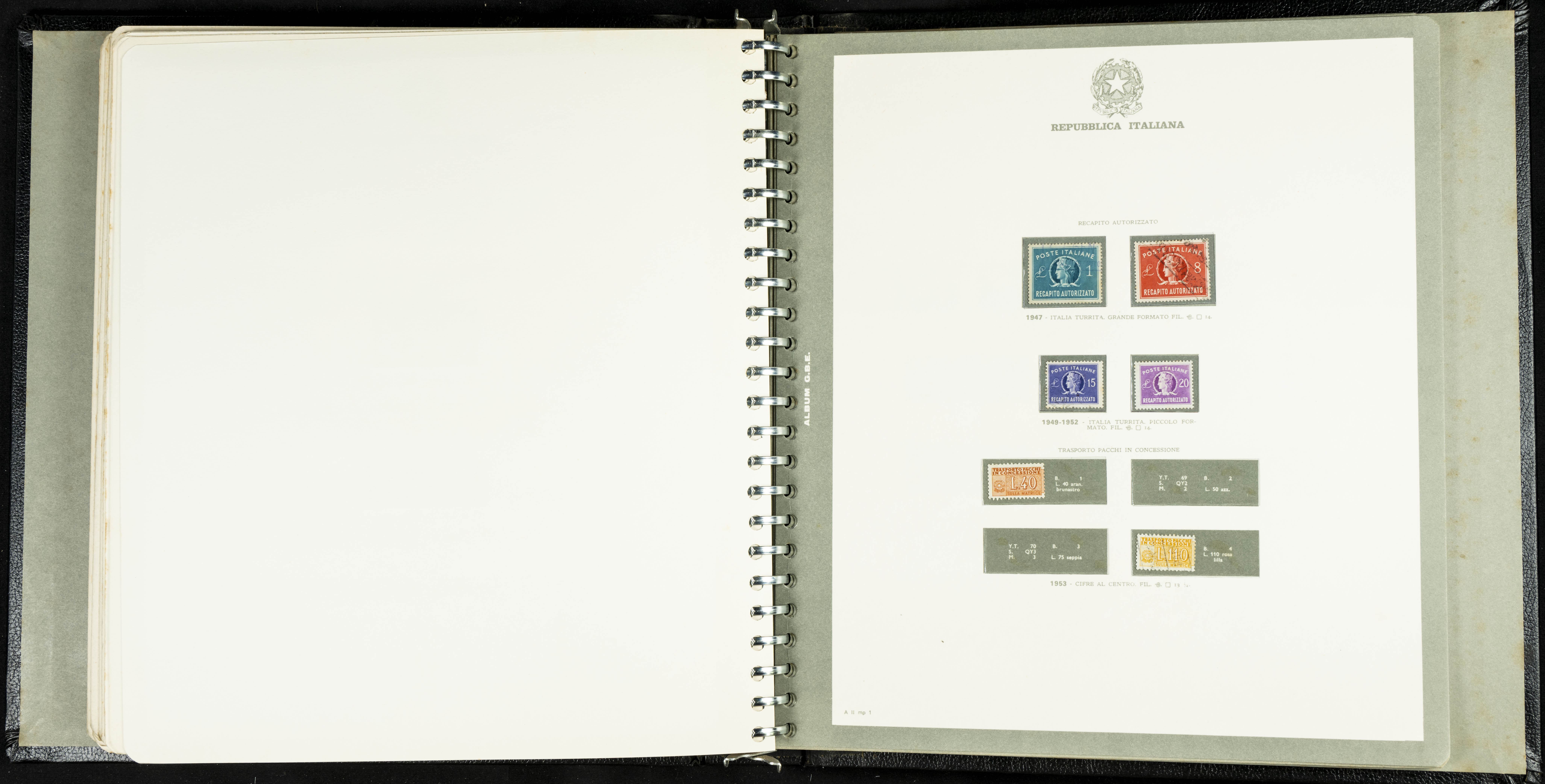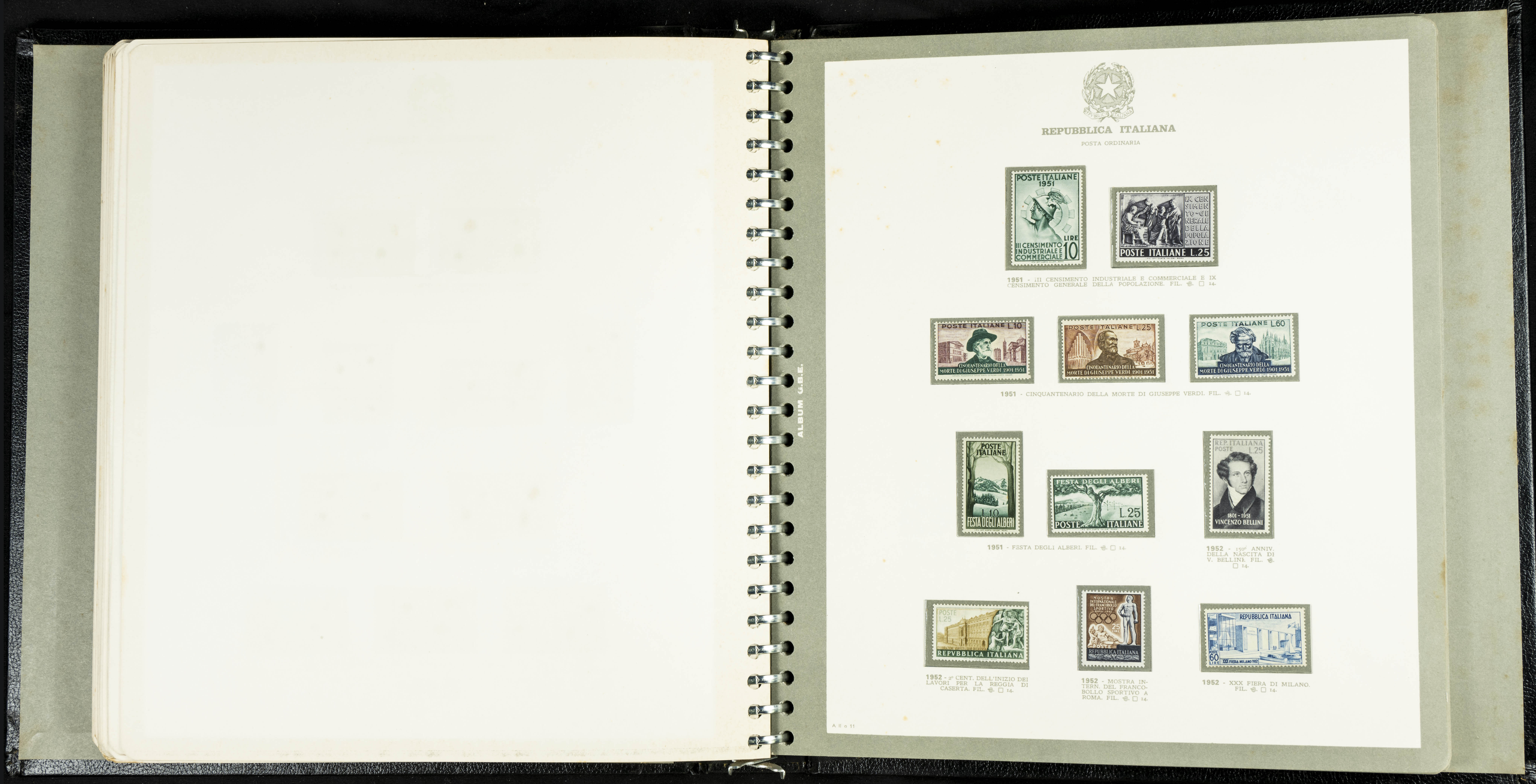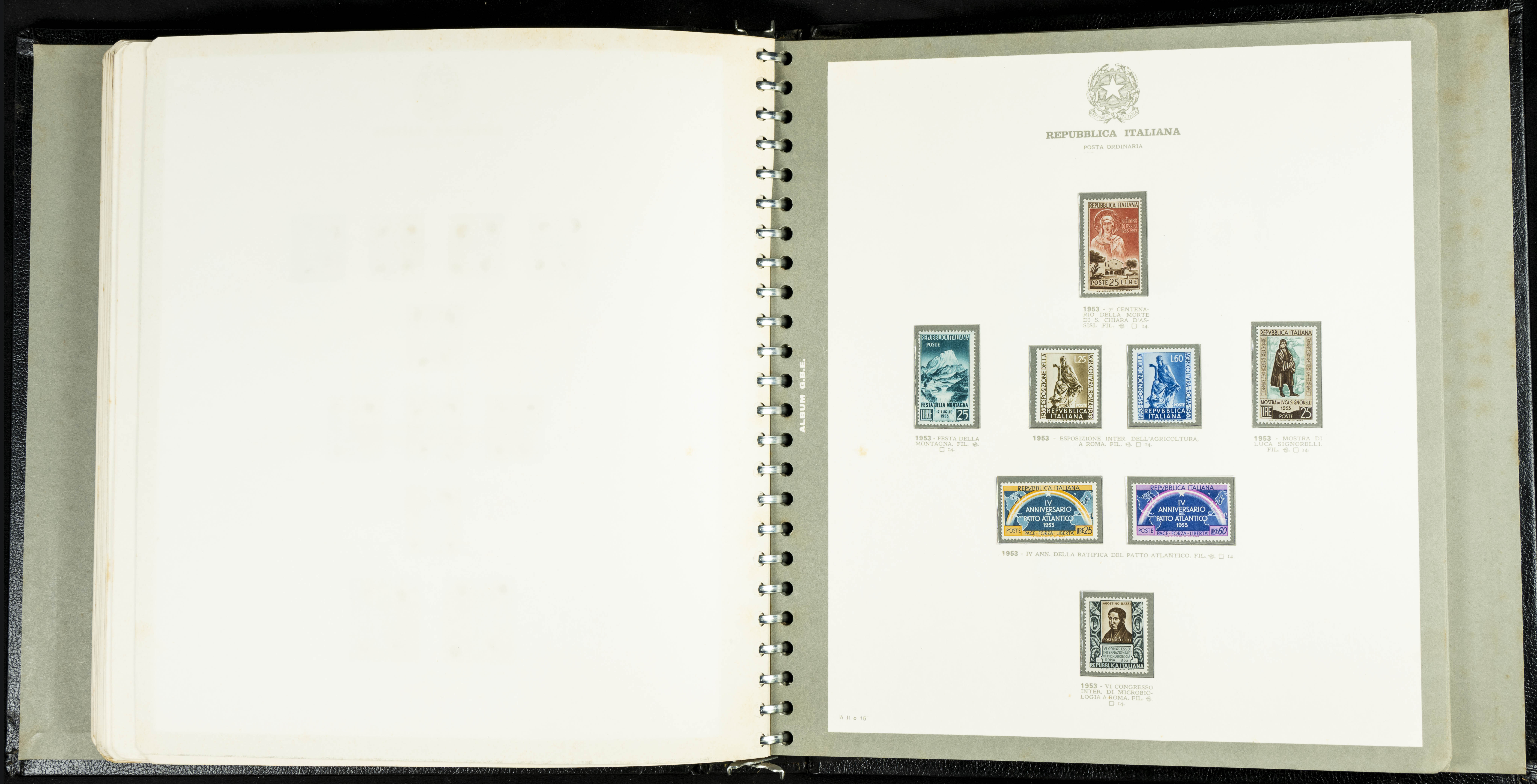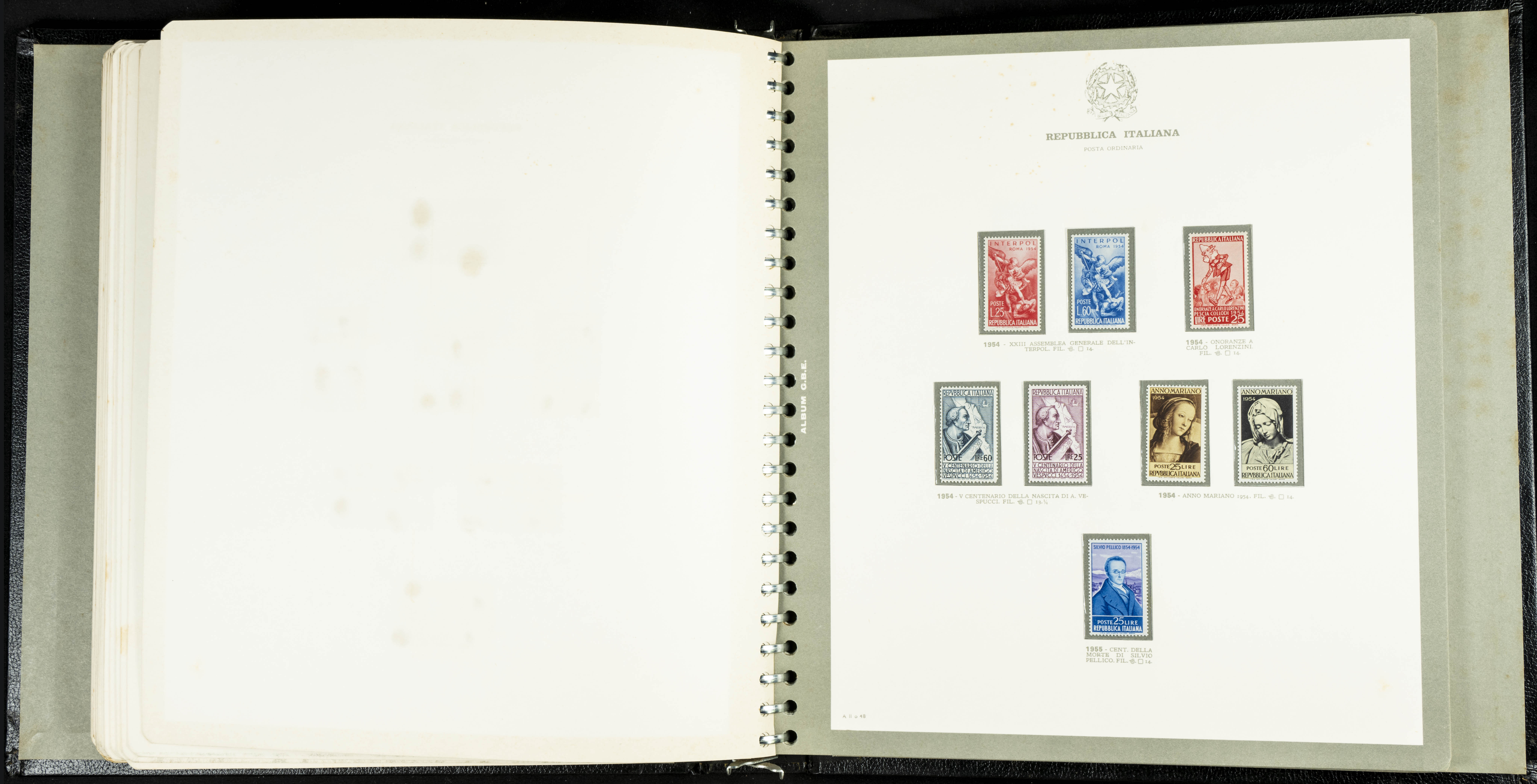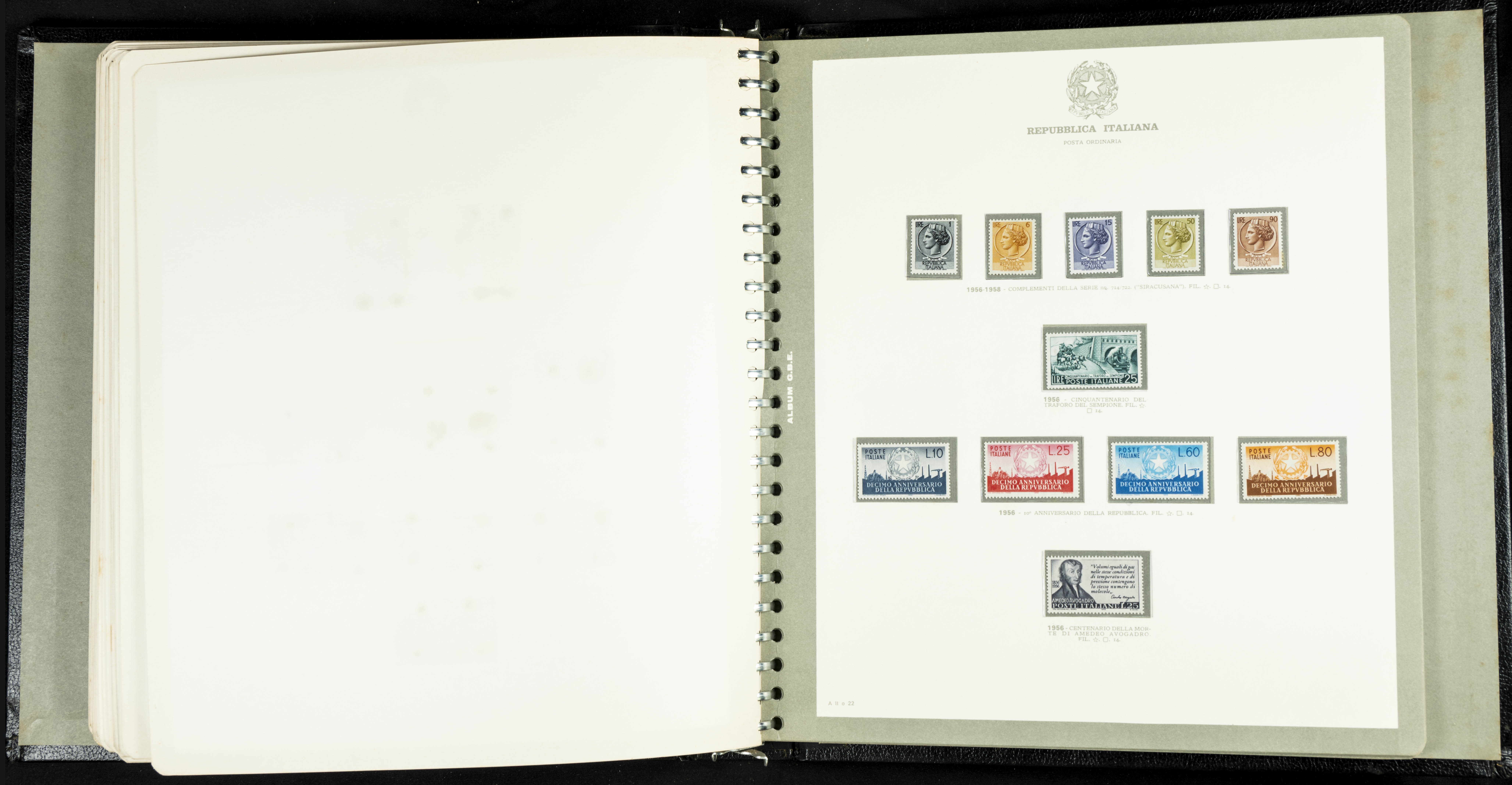 English ★★/(1862ca). Interesting collection from Italy between 1862 and 2010, in mint and used, practically complete from 1951 onwards, and most of that period without hinges, including souvenir sheets and some booklets (minor age spots mainly affecting the album pages). HIGH CATALOGUE AND FACE VALUE. TO BE EXAMINED.